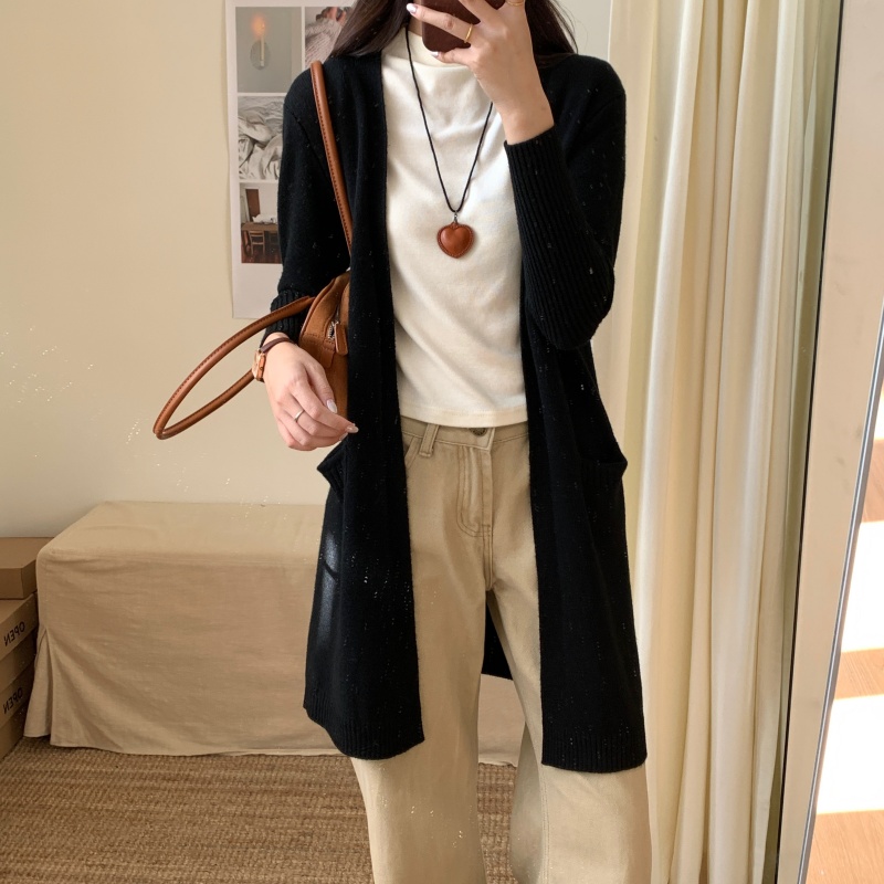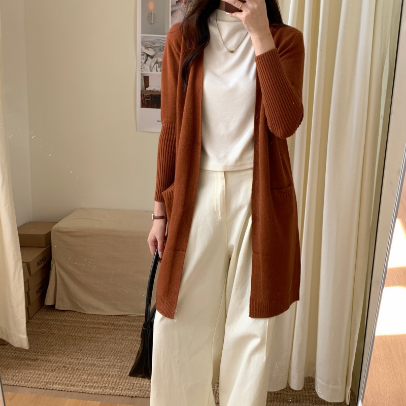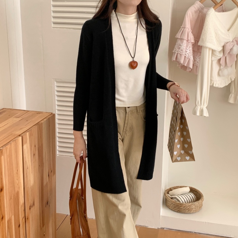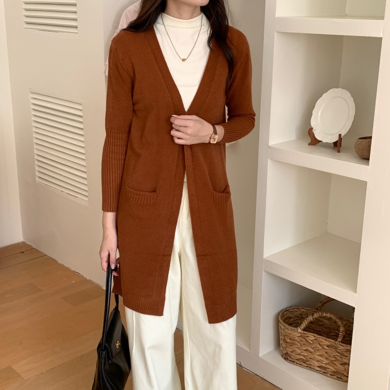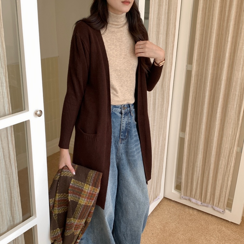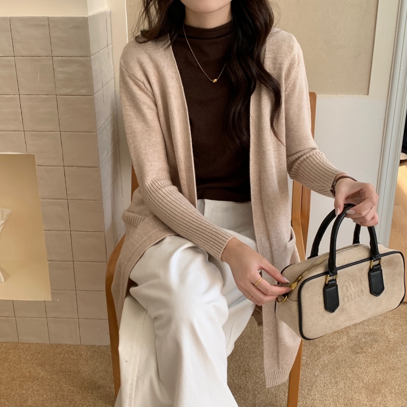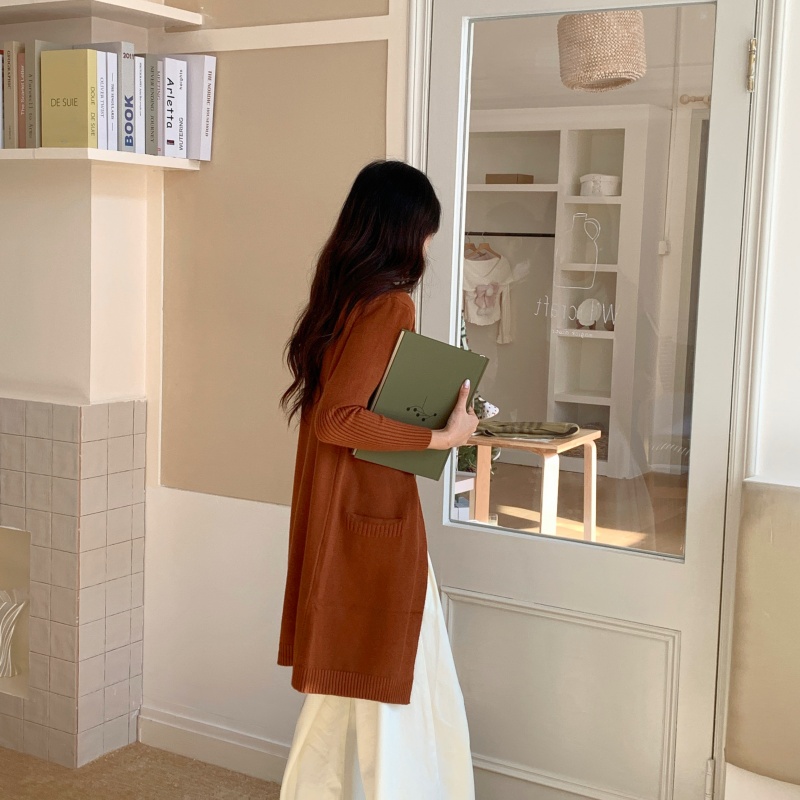 MY14998# 韩版慵懒风宽松V领纯色上衣针织衫女开衫中长款毛衣外套女裝貨源服裝批發