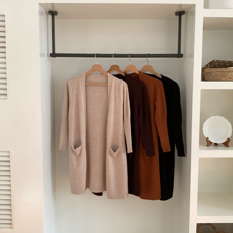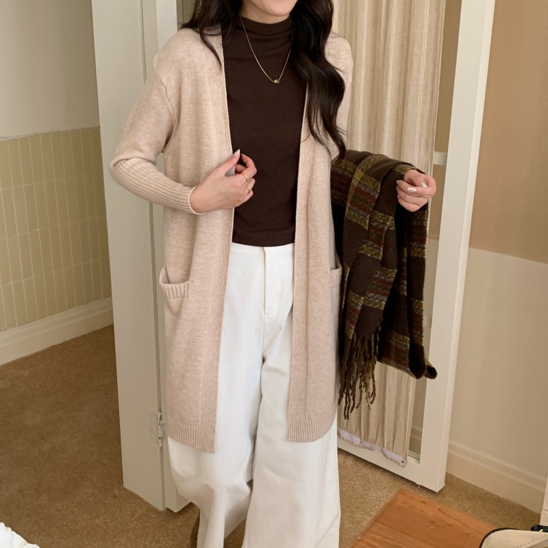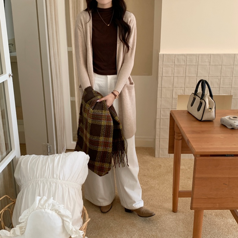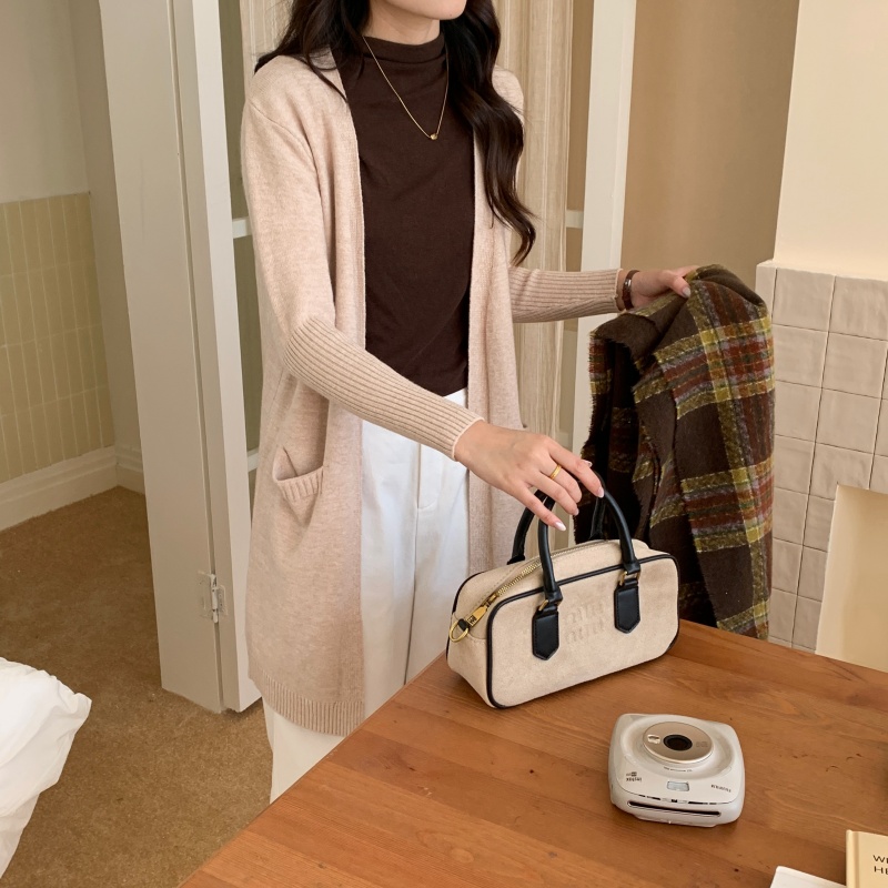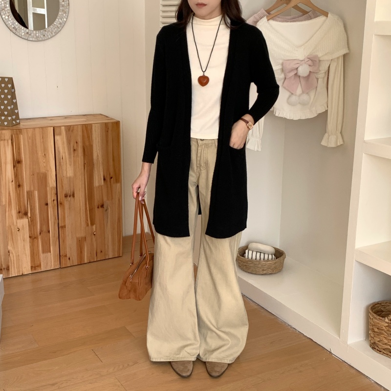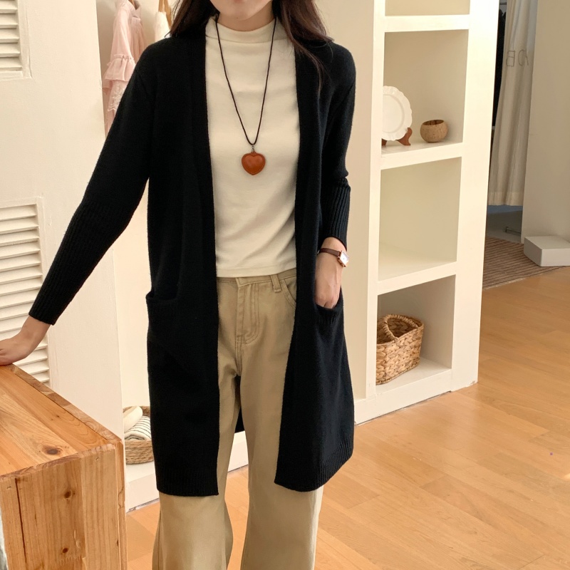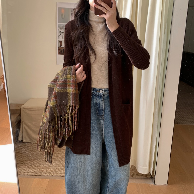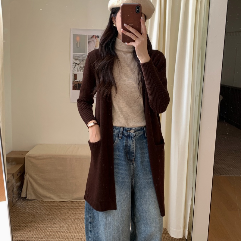 MY14998# 韩版慵懒风宽松V领纯色上衣针织衫女开衫中长款毛衣外套女裝貨源服裝批發