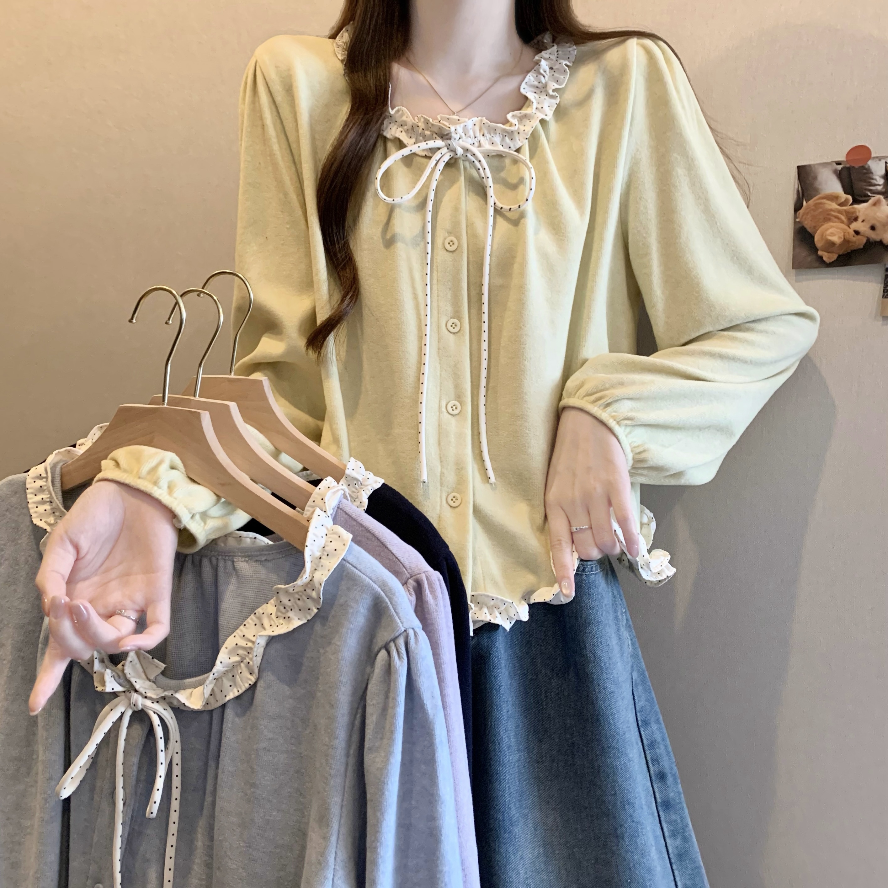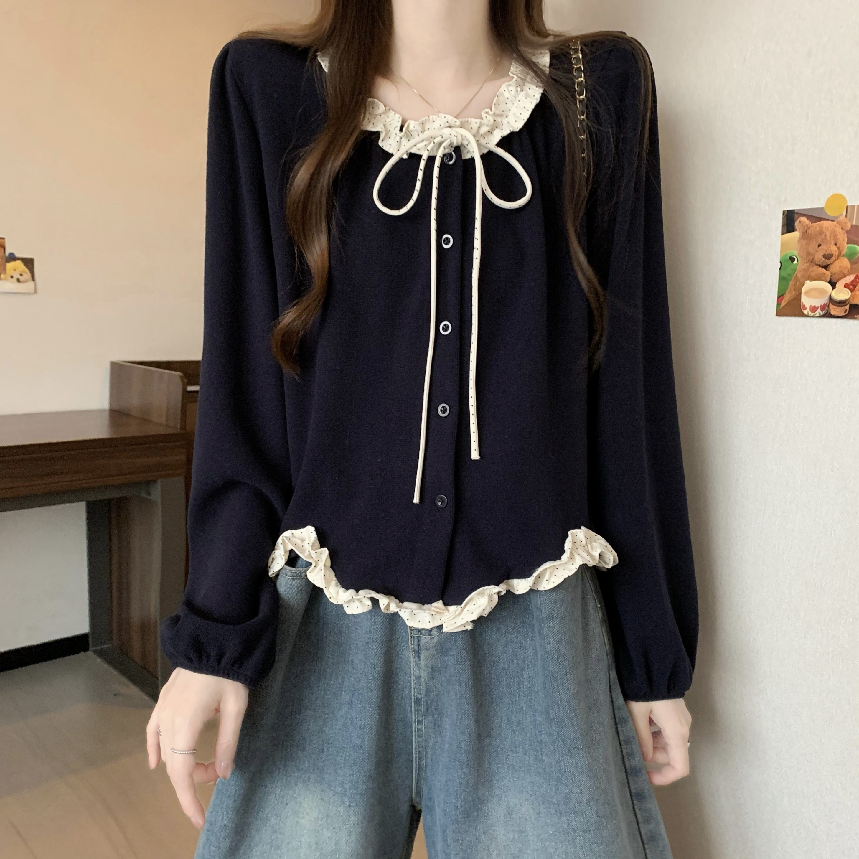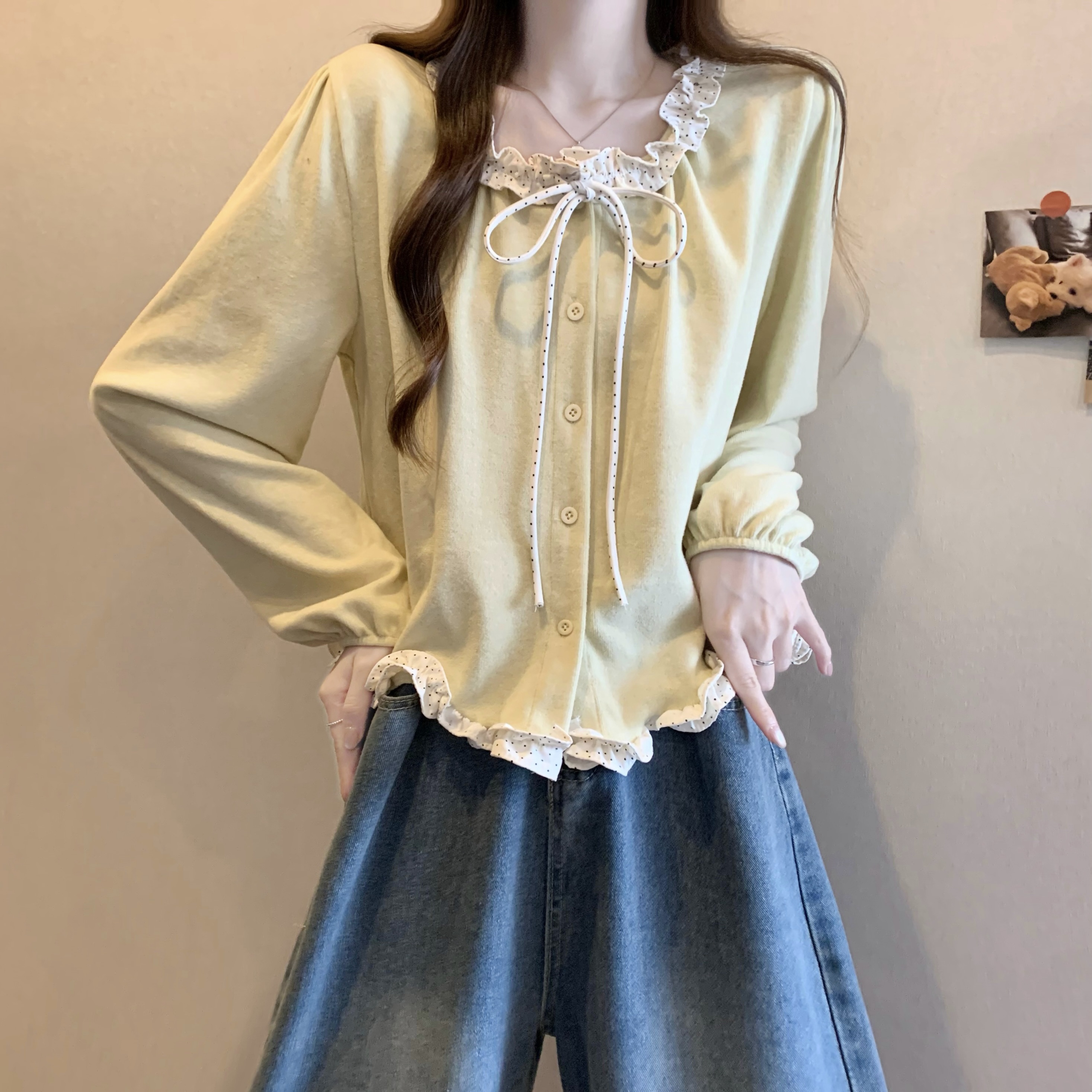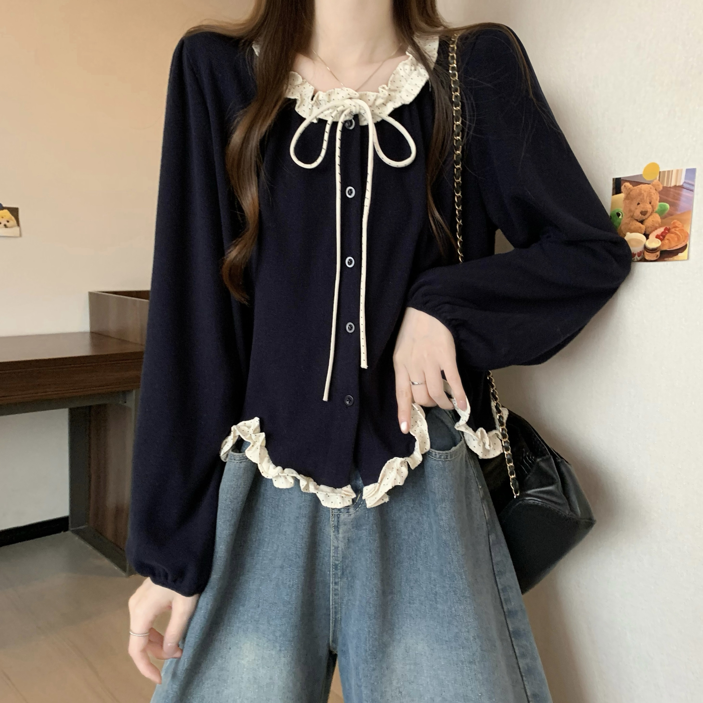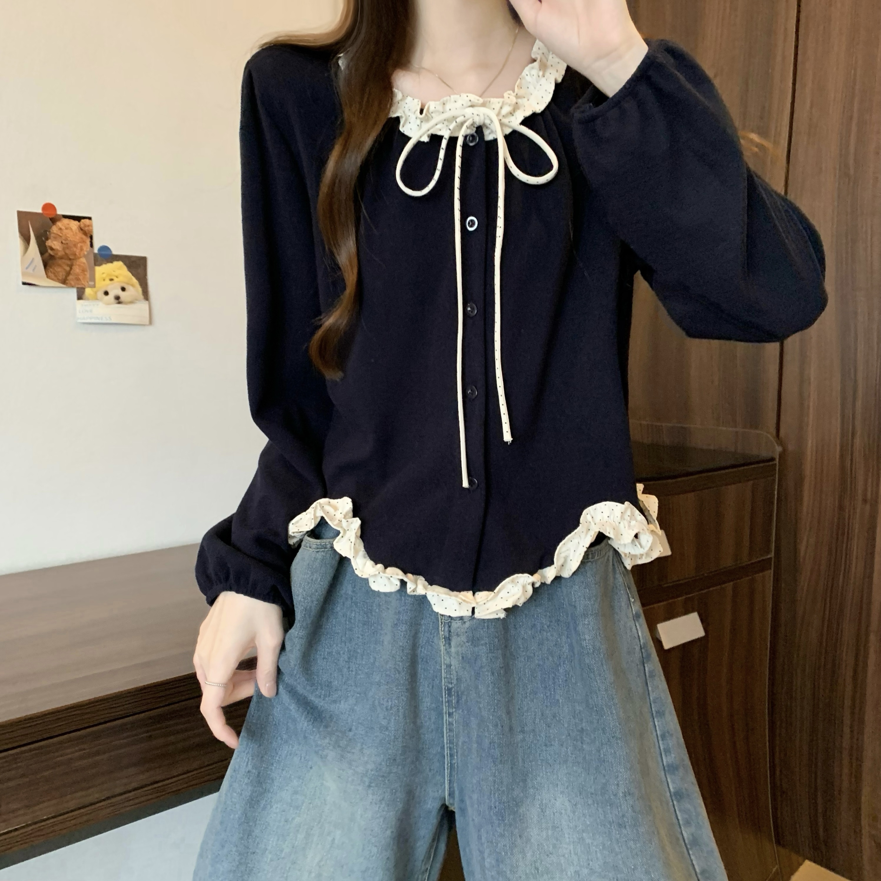 MY15179# 气质温柔毛衣蕾丝毛针织衫内搭打底衫时尚长袖上衣女女裝貨源...