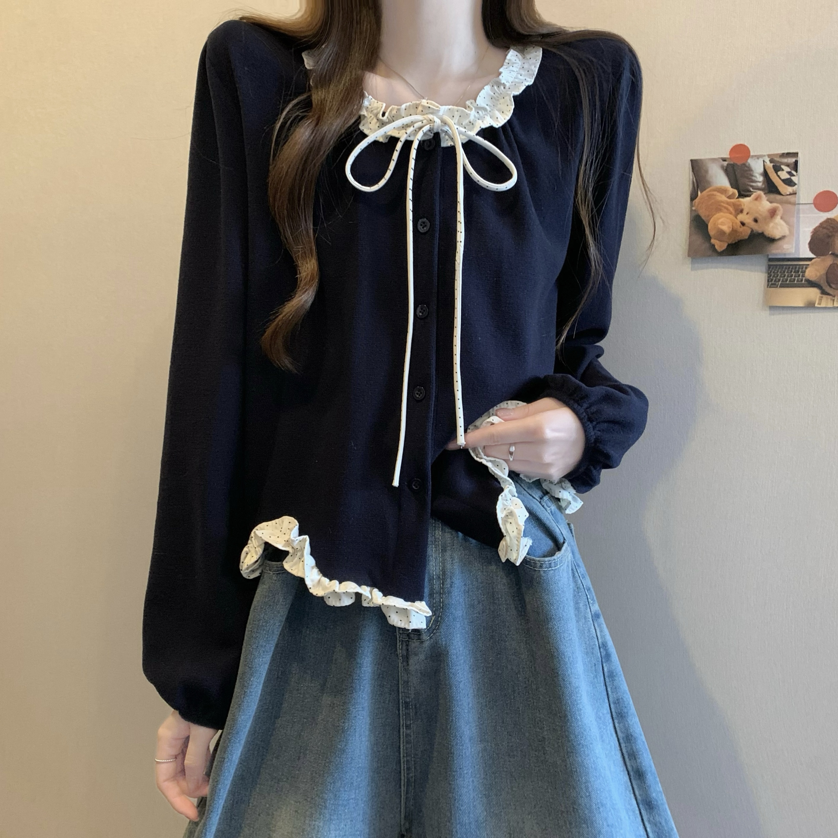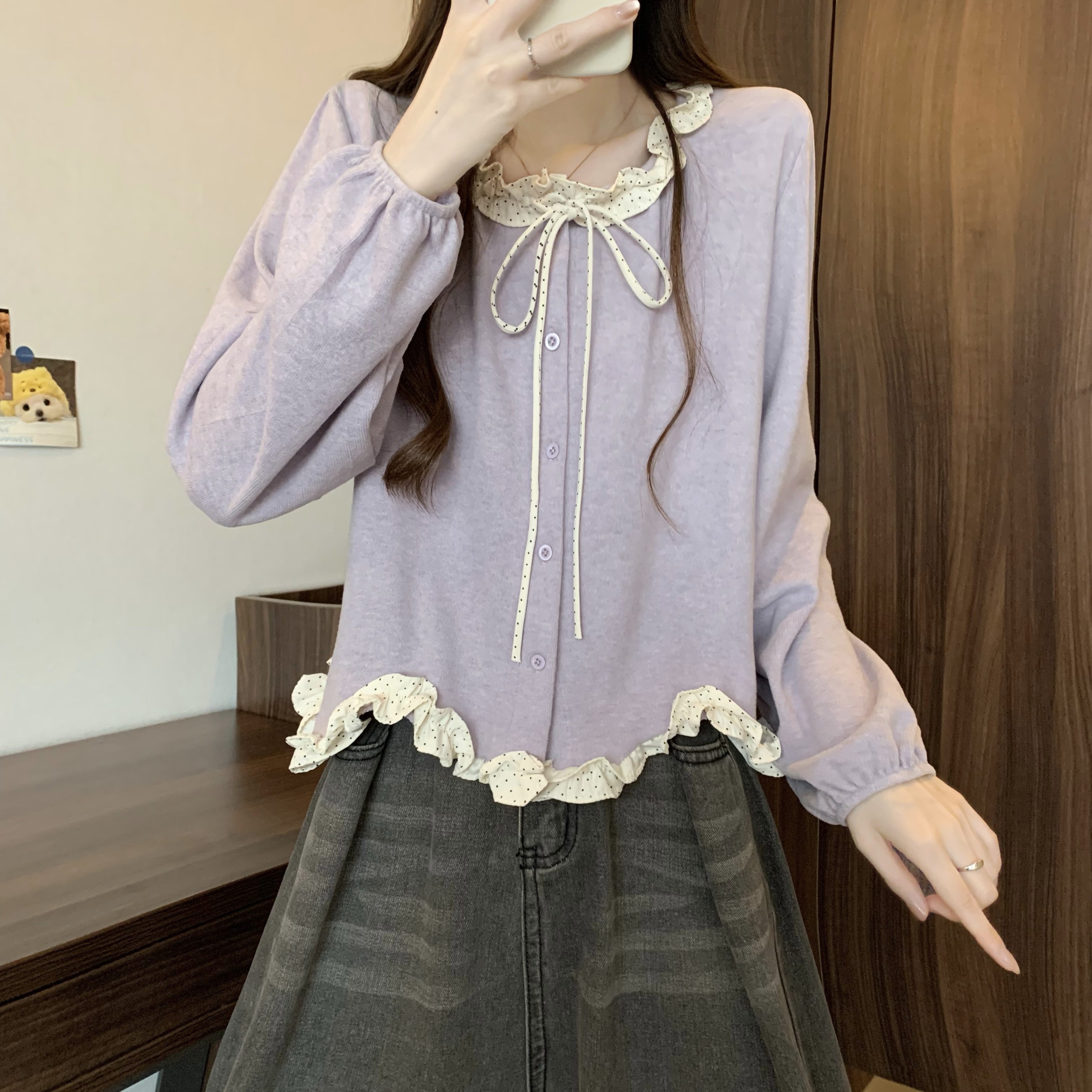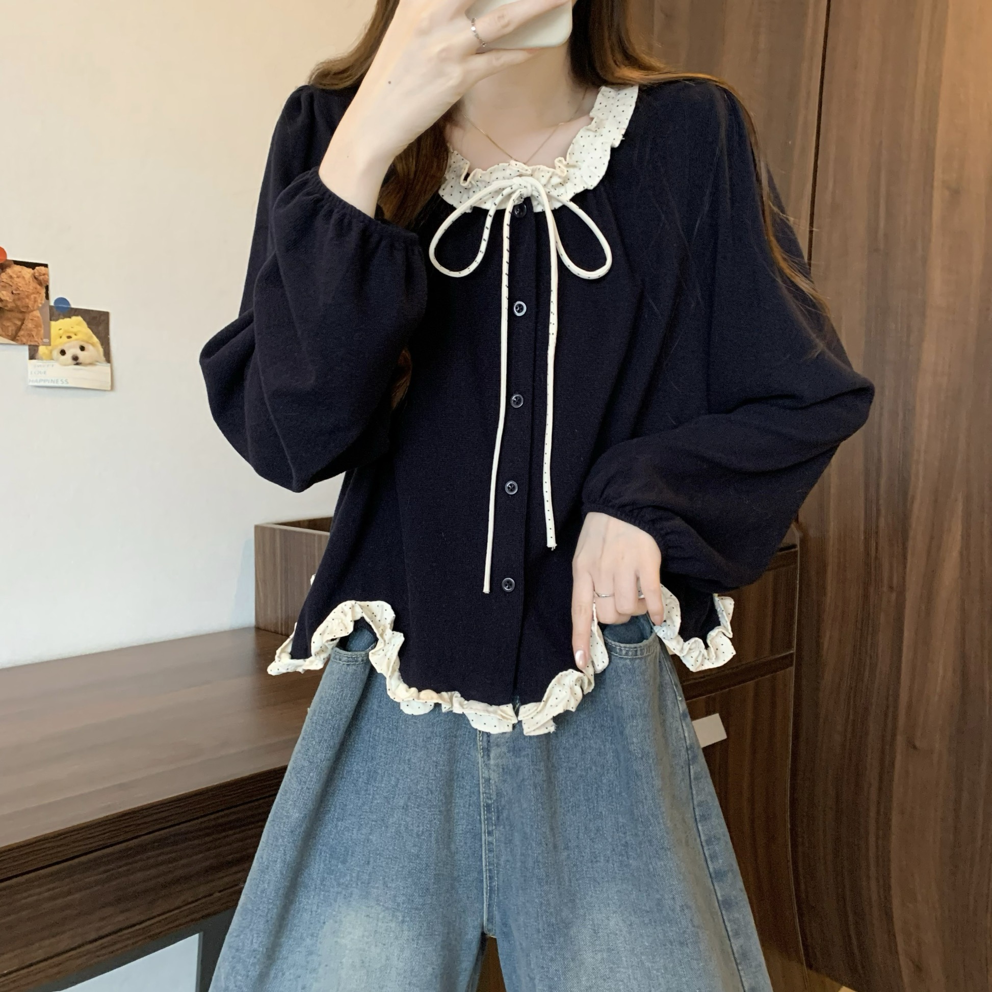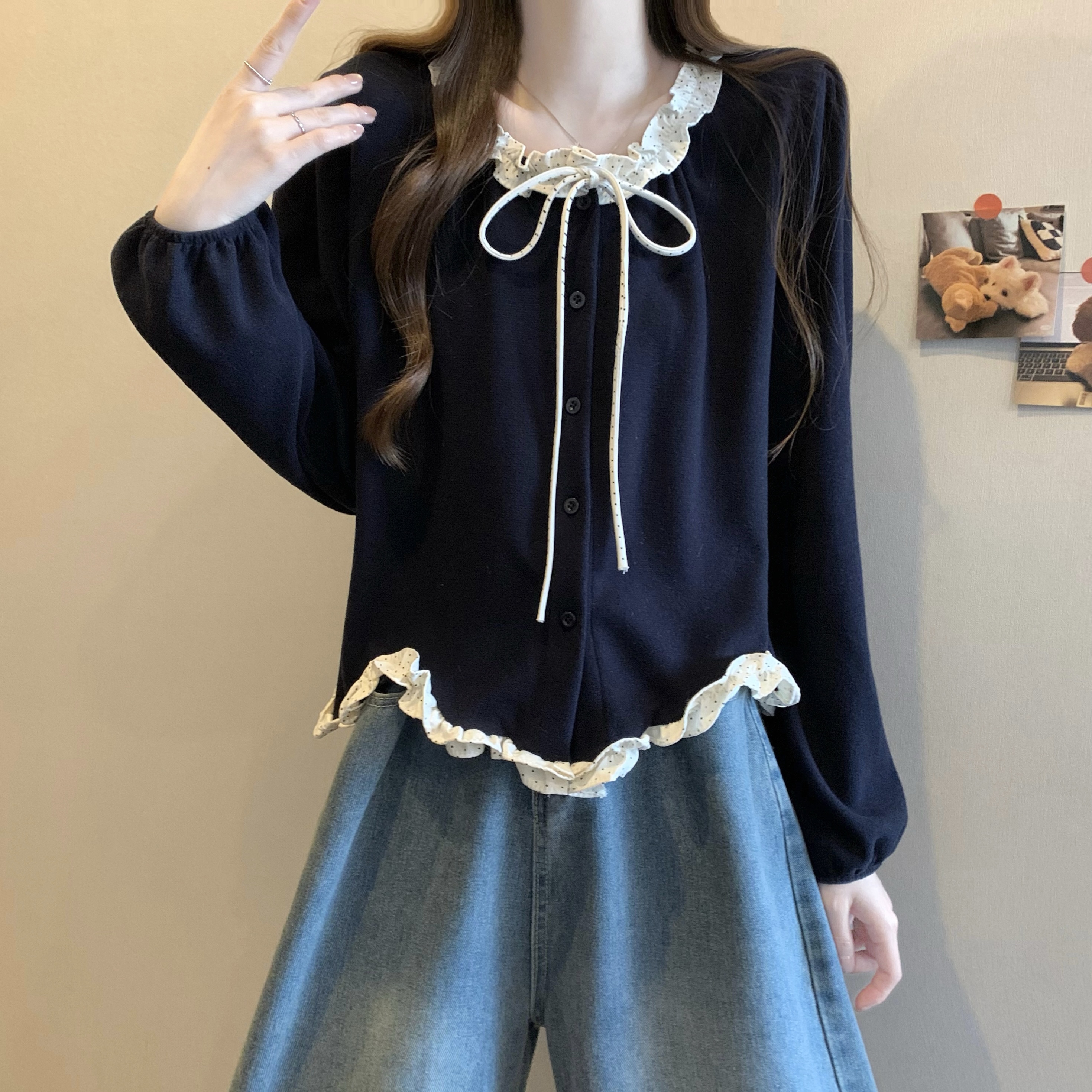 MY15179# 气质温柔毛衣蕾丝毛针织衫内搭打底衫时尚长袖上衣女女裝貨源...