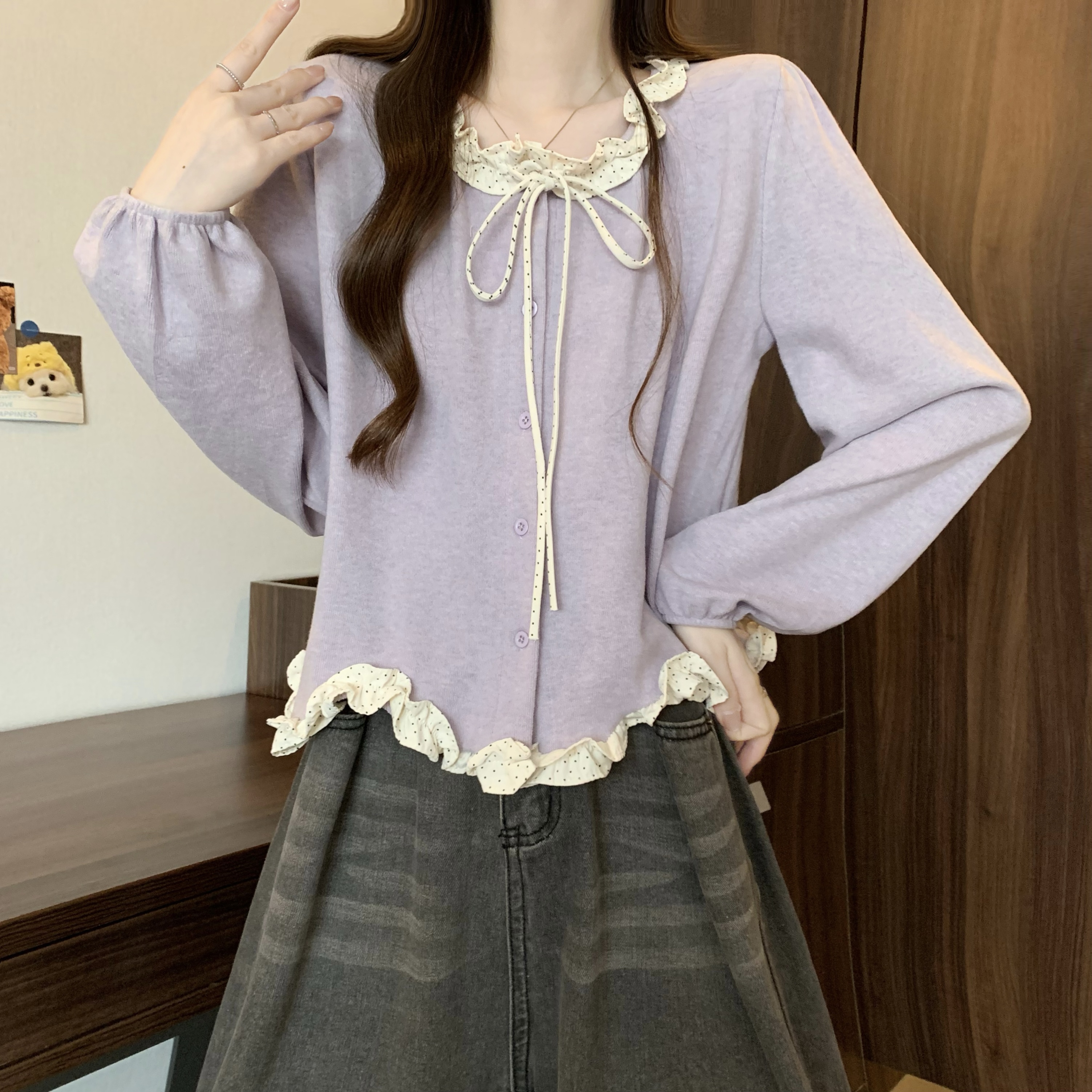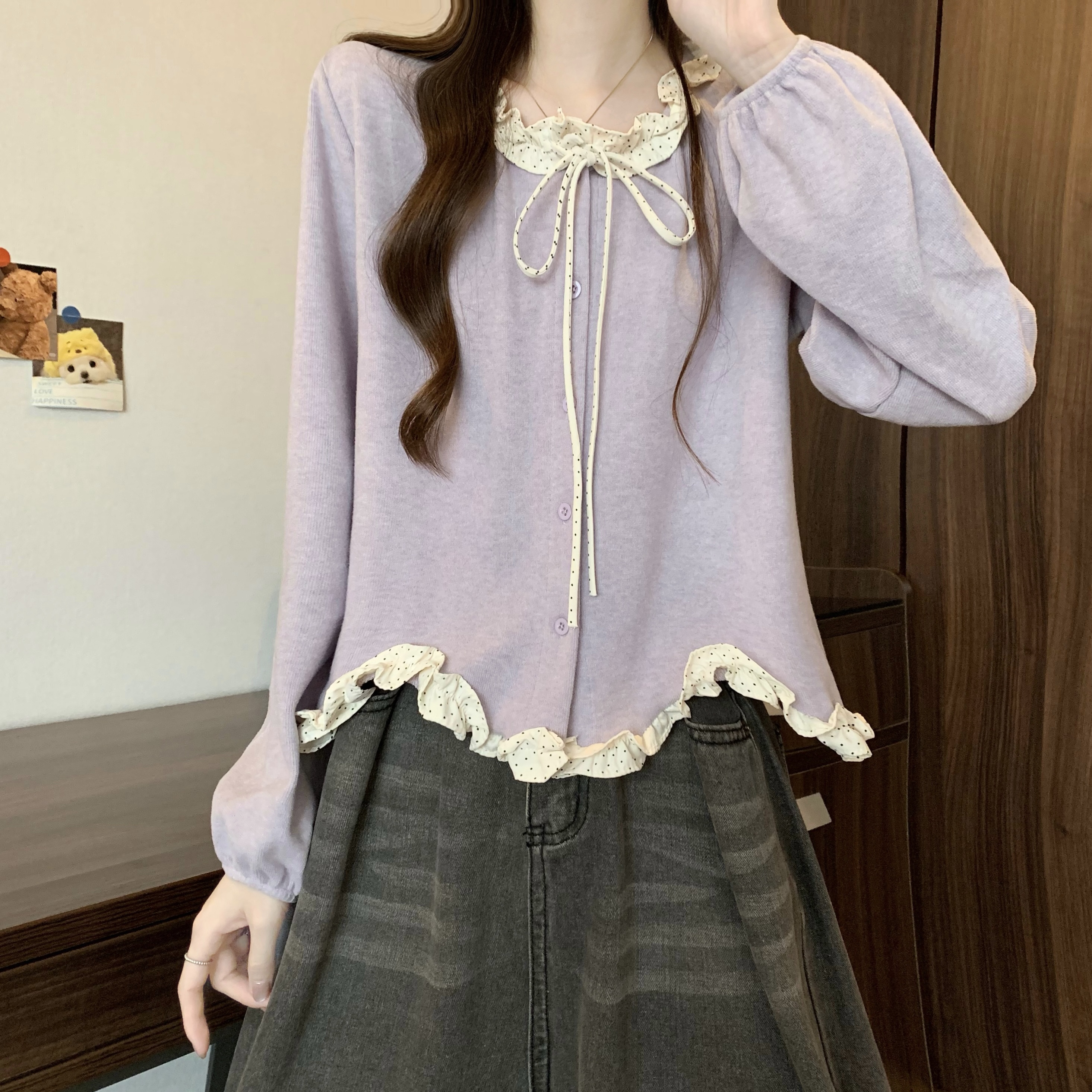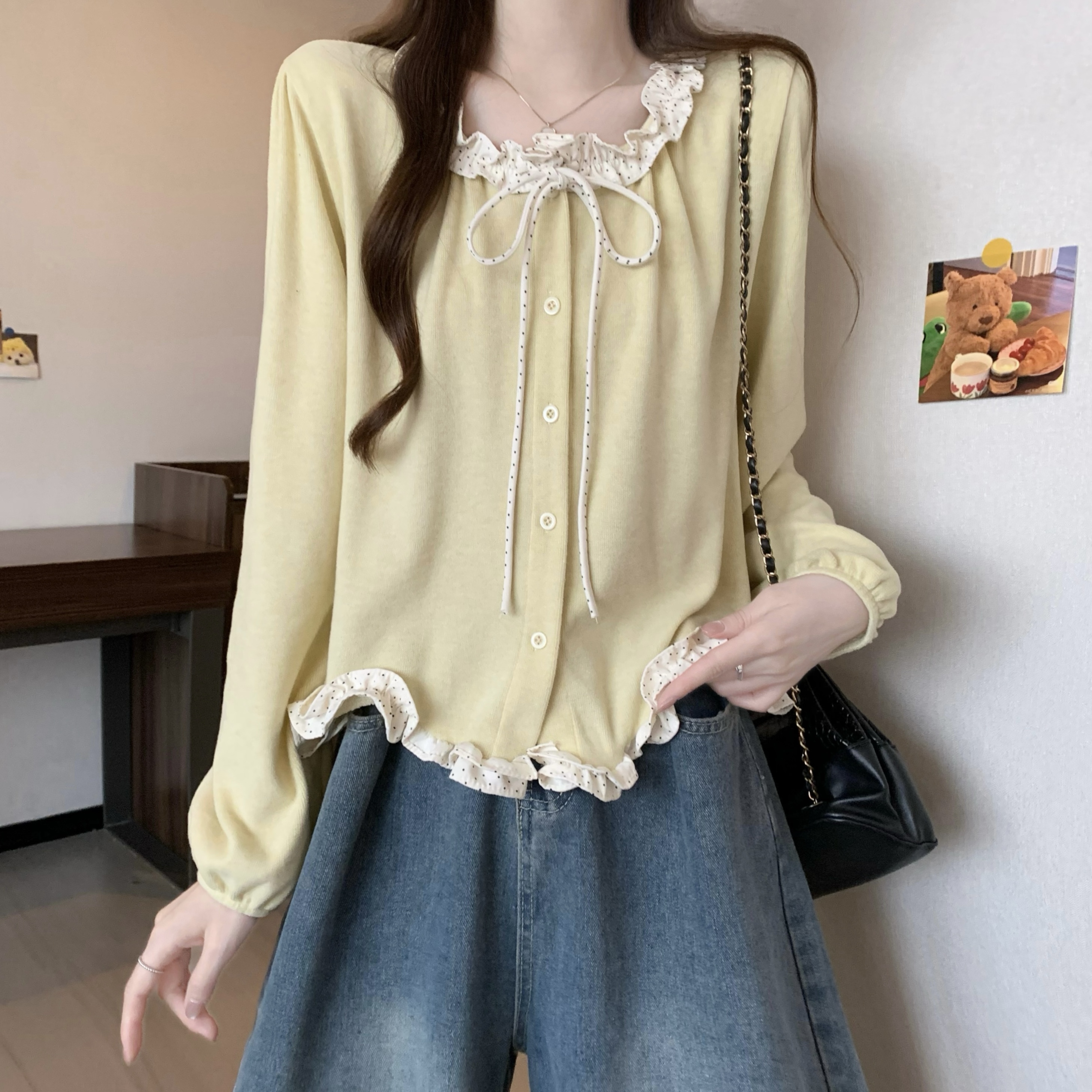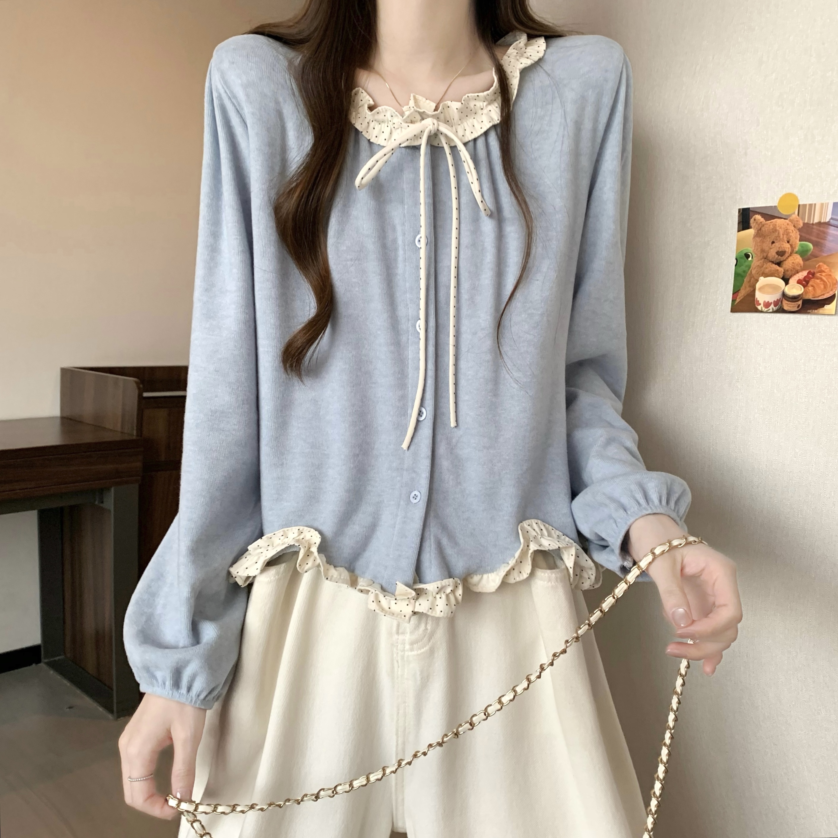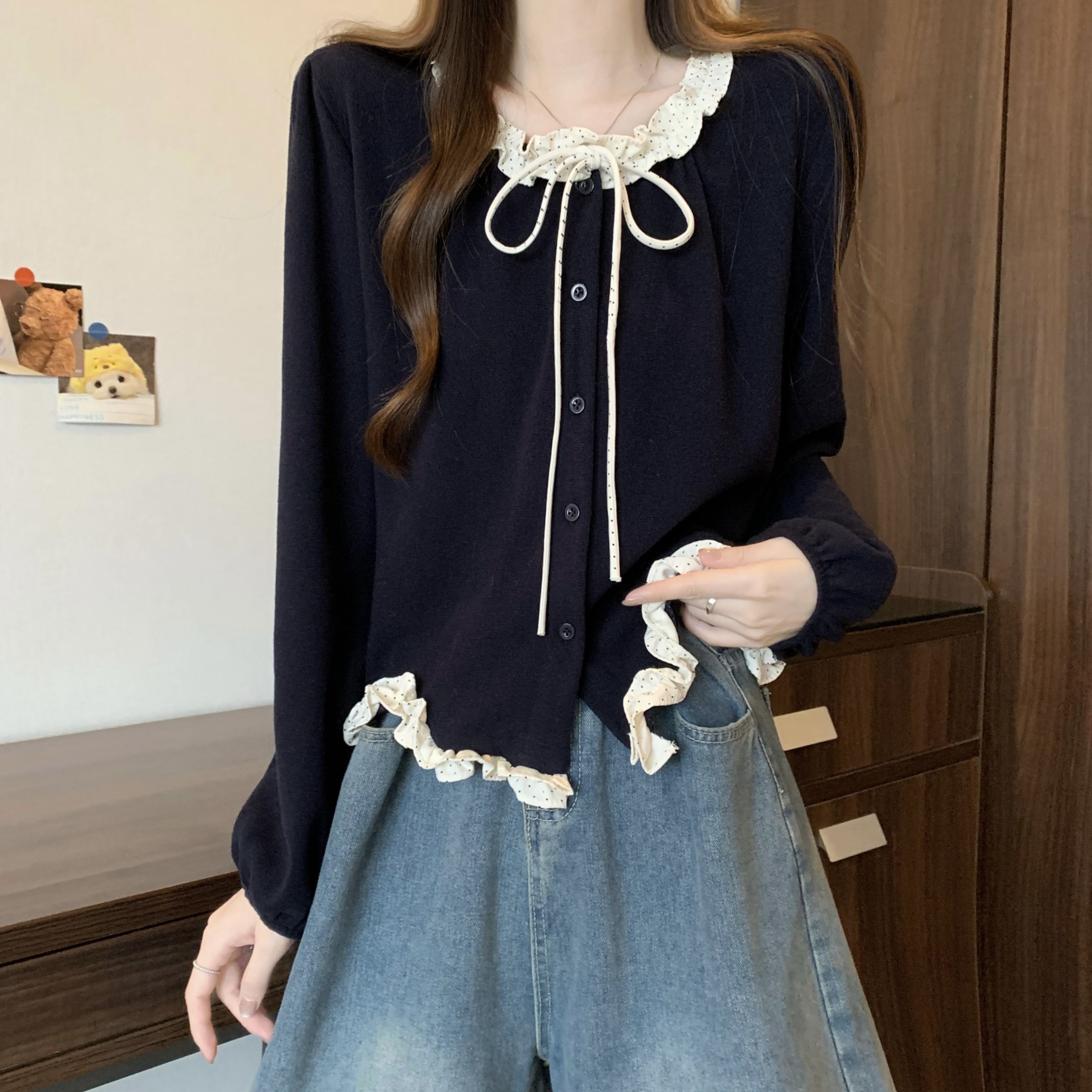 MY15179# 气质温柔毛衣蕾丝毛针织衫内搭打底衫时尚长袖上衣女女裝貨源...
