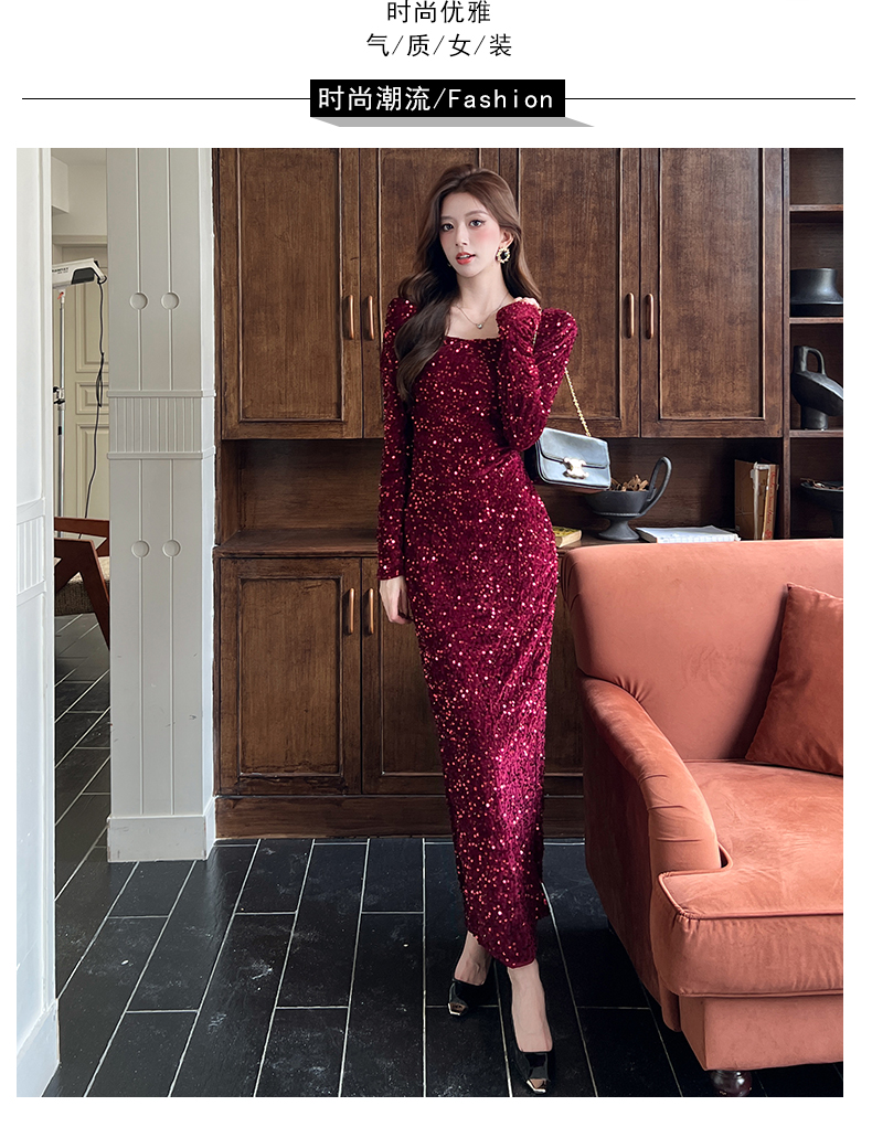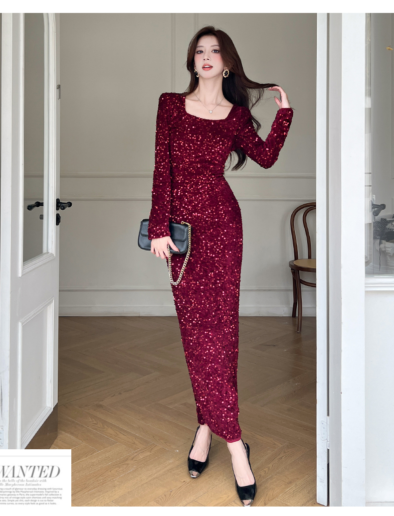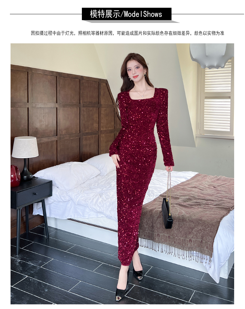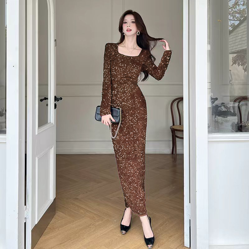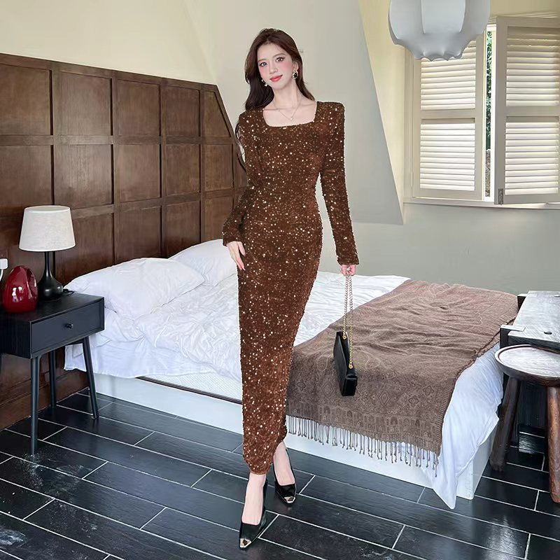 MY15009# 时尚网红亮片长裙包臀连衣裙女裝貨源服裝批發