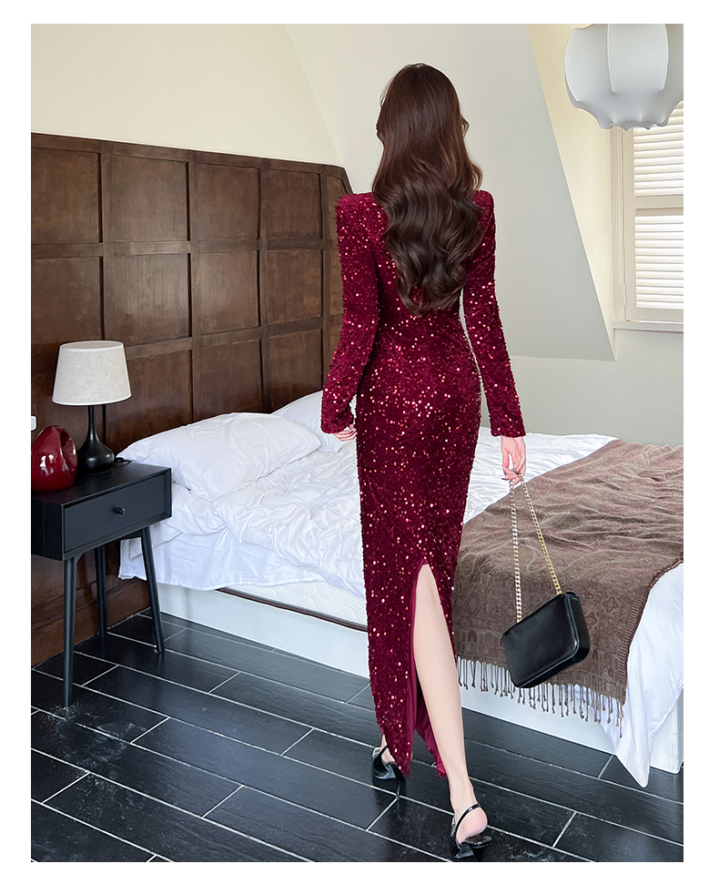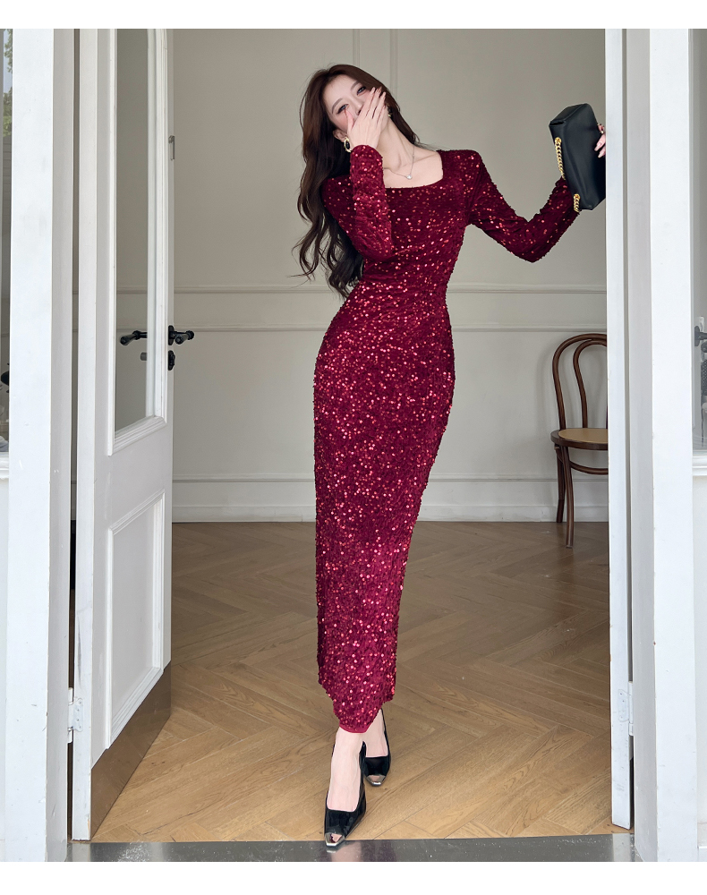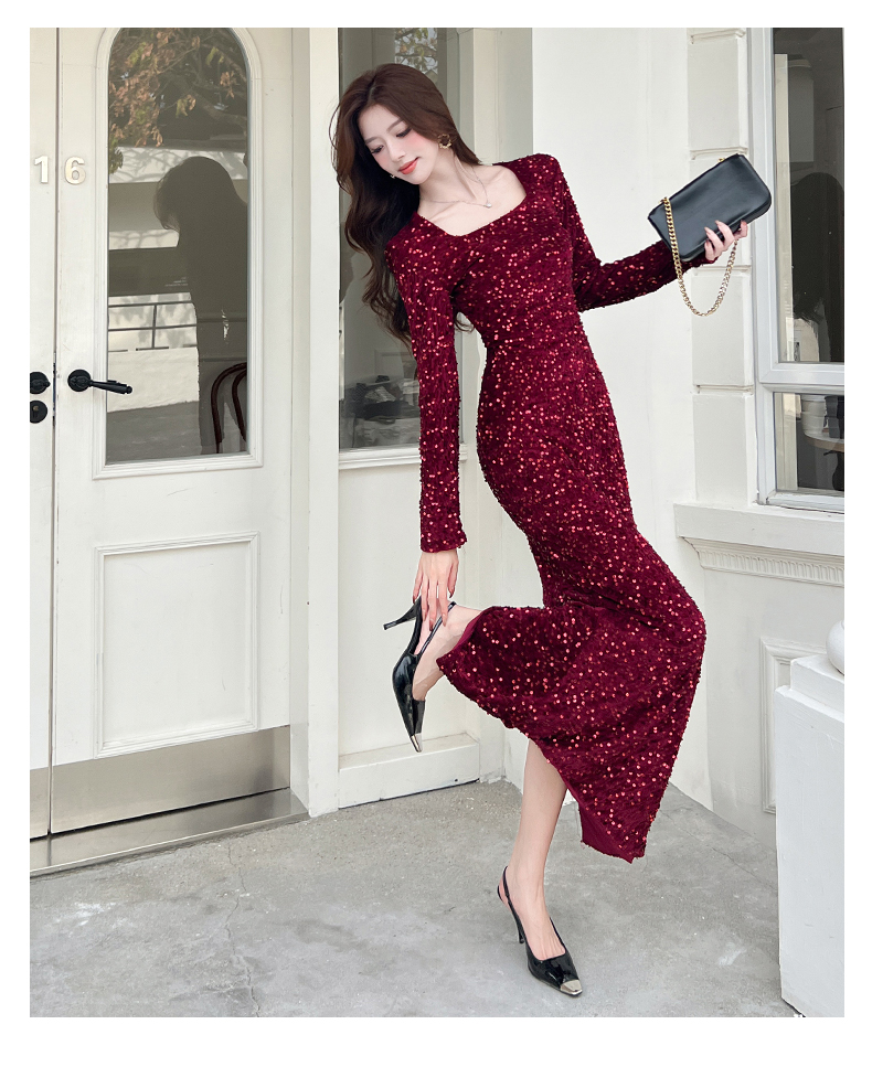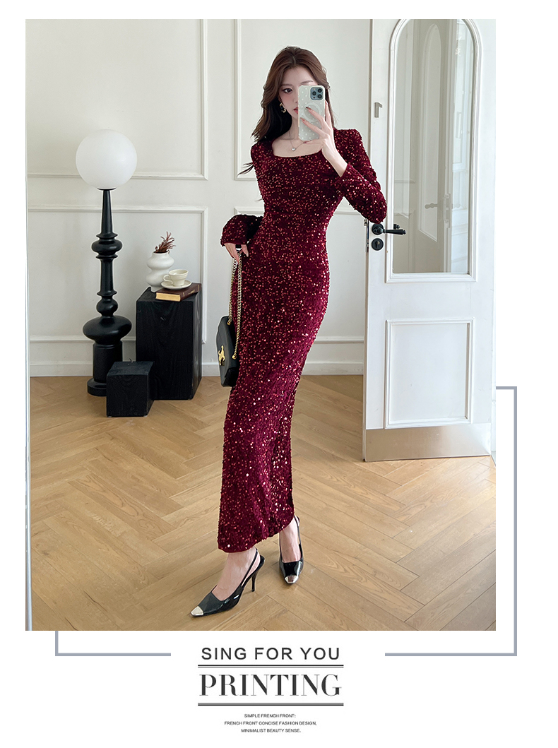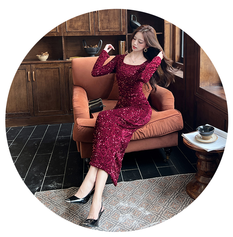 MY15009# 时尚网红亮片长裙包臀连衣裙女裝貨源服裝批發