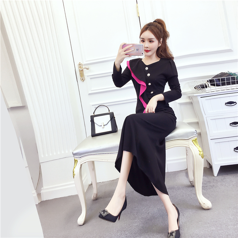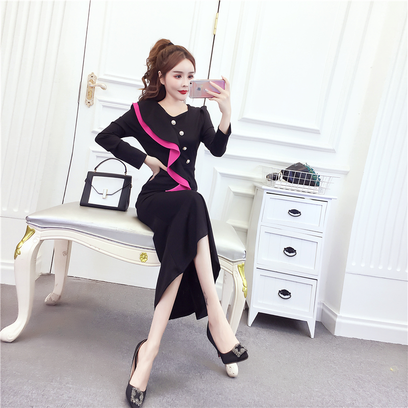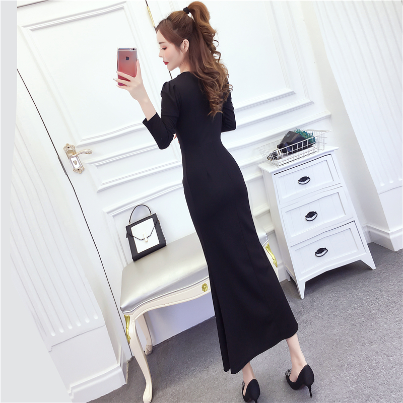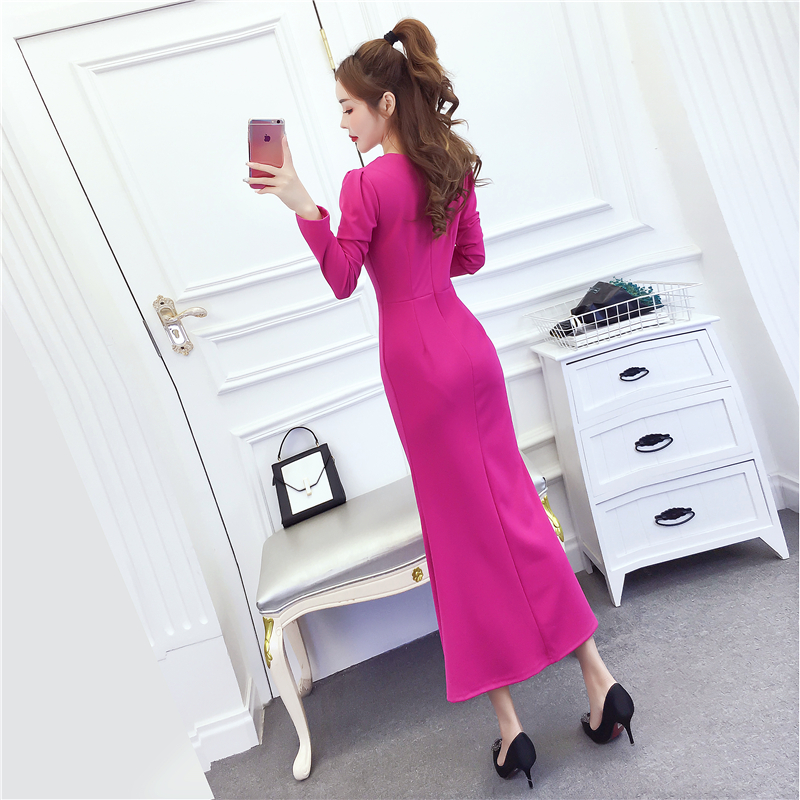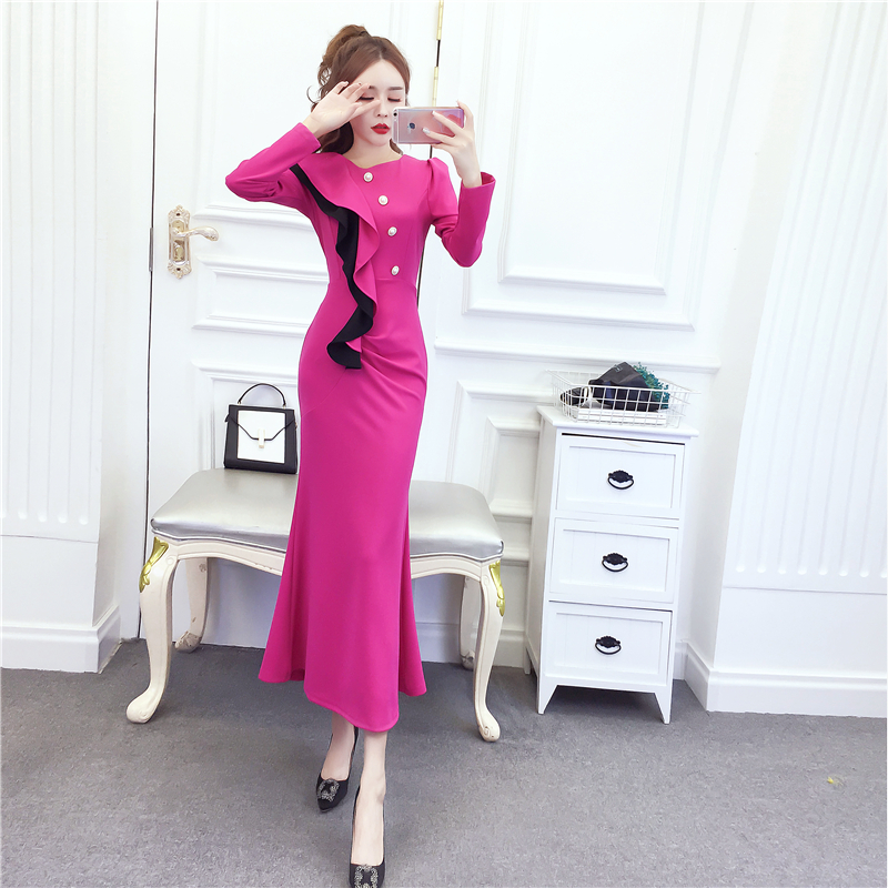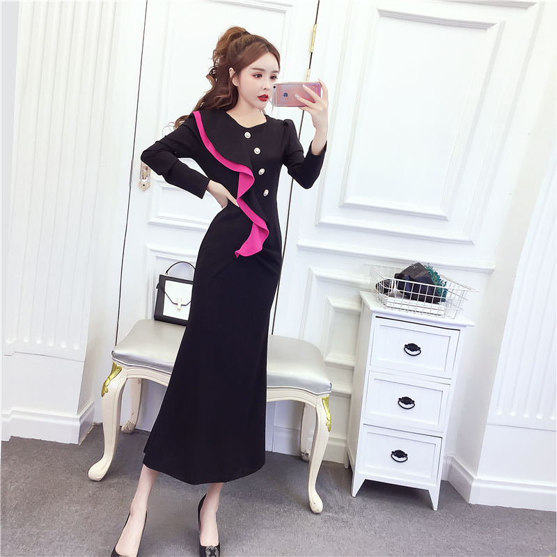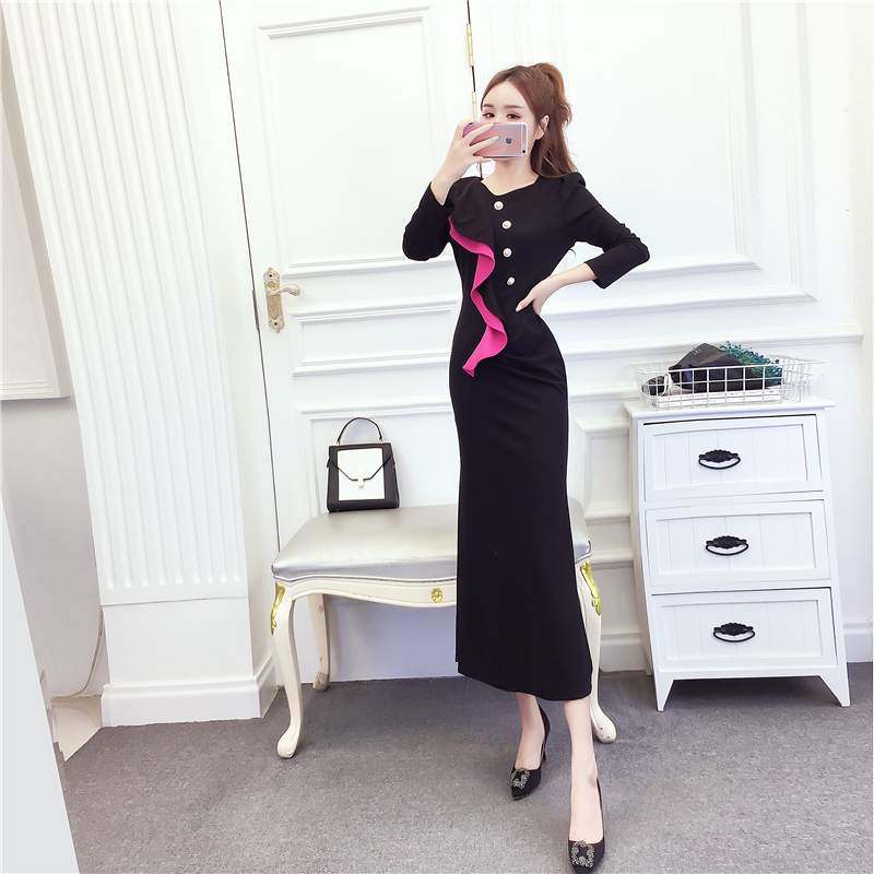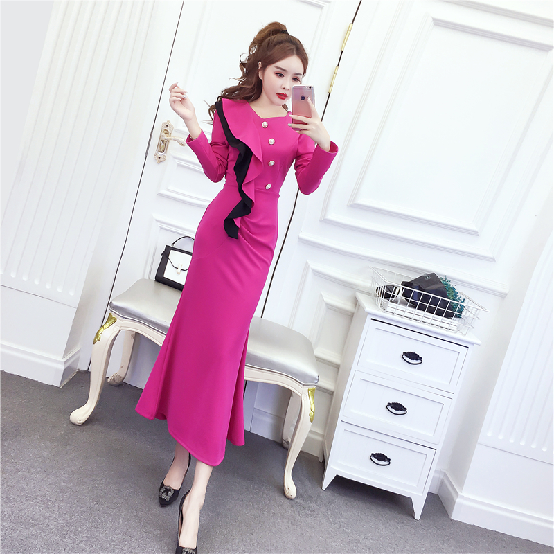 MY15026# 时尚网红气质v领修身荷叶边礼服长裙包臀连衣裙女裝貨源服裝批發