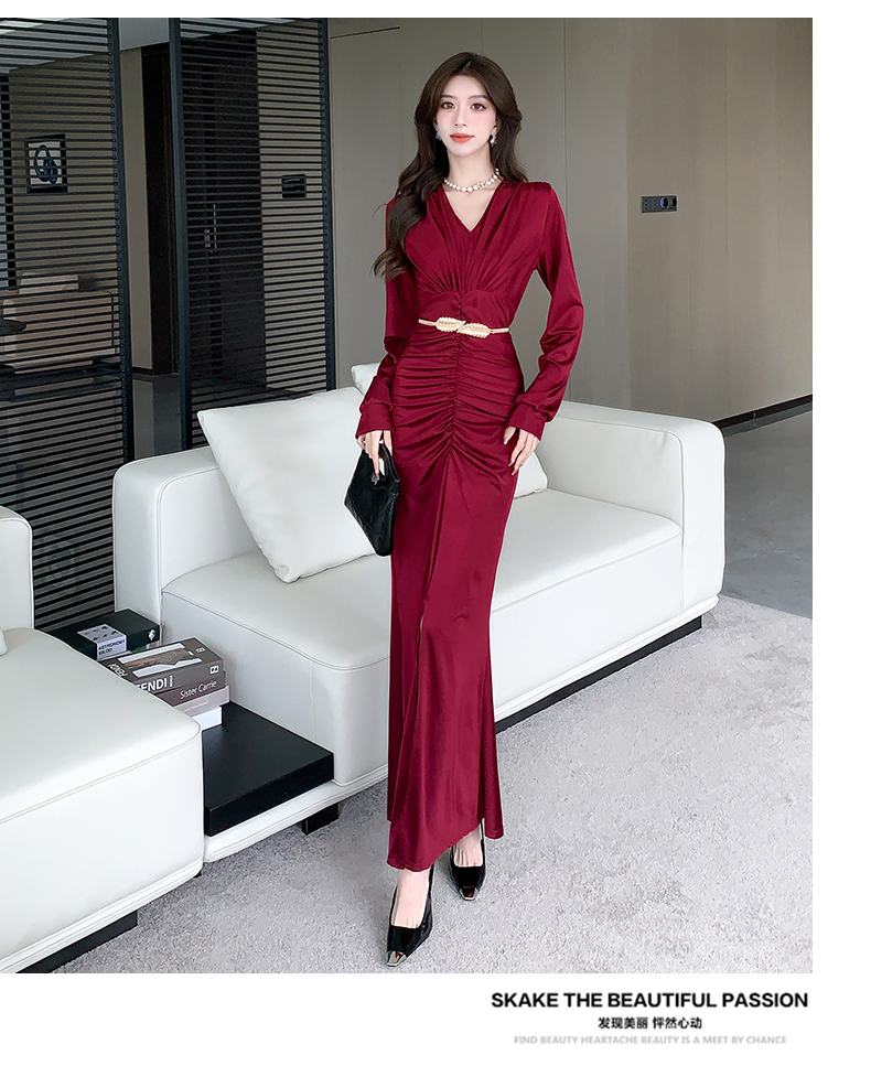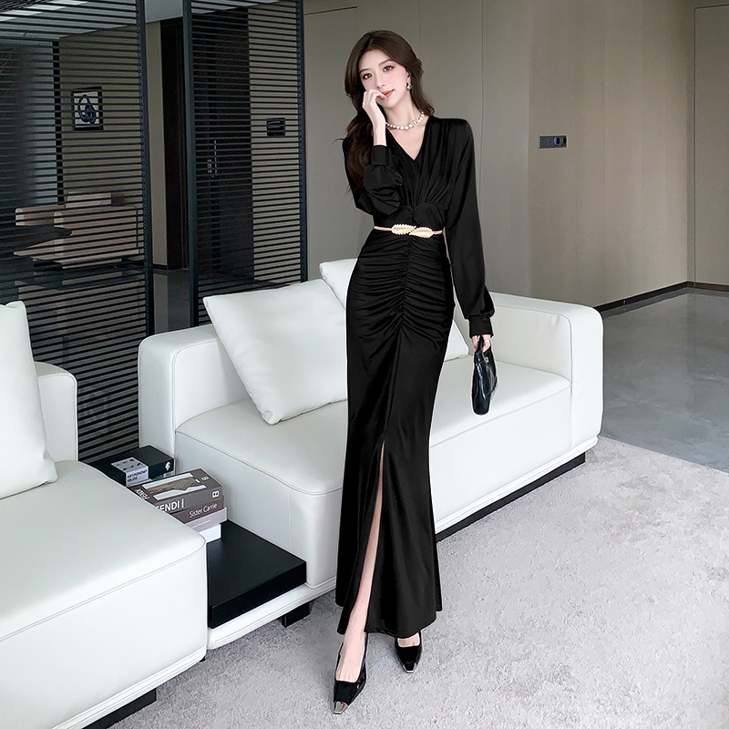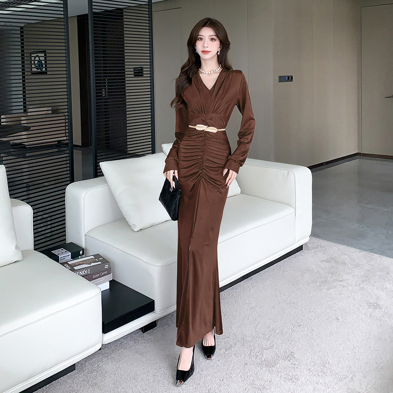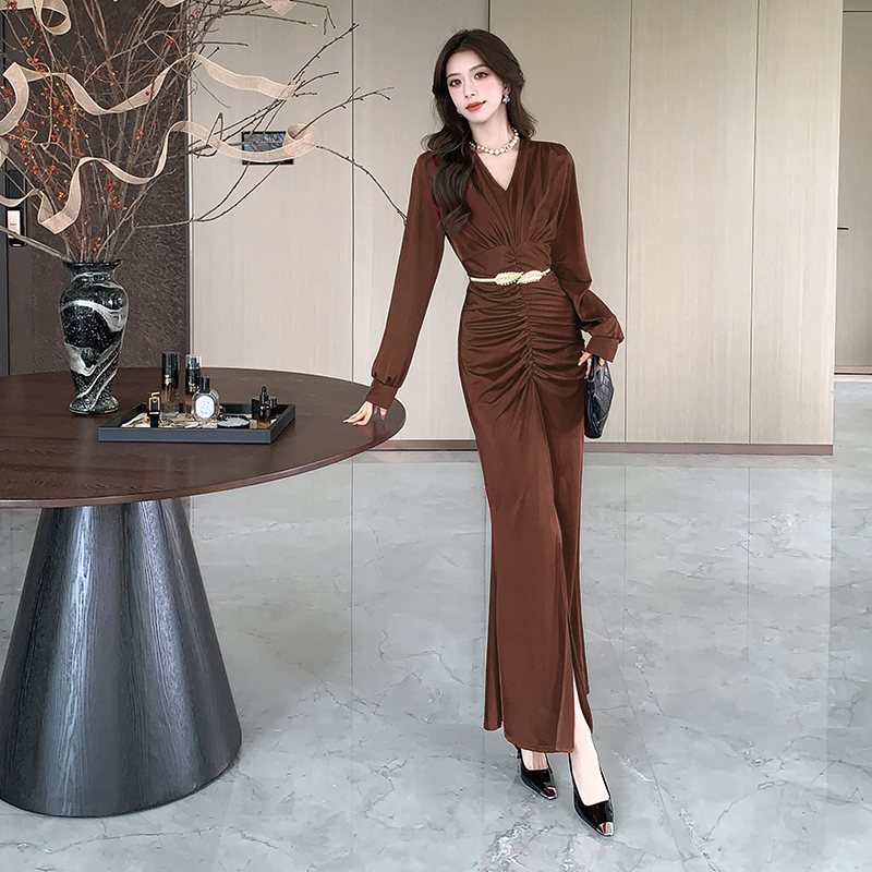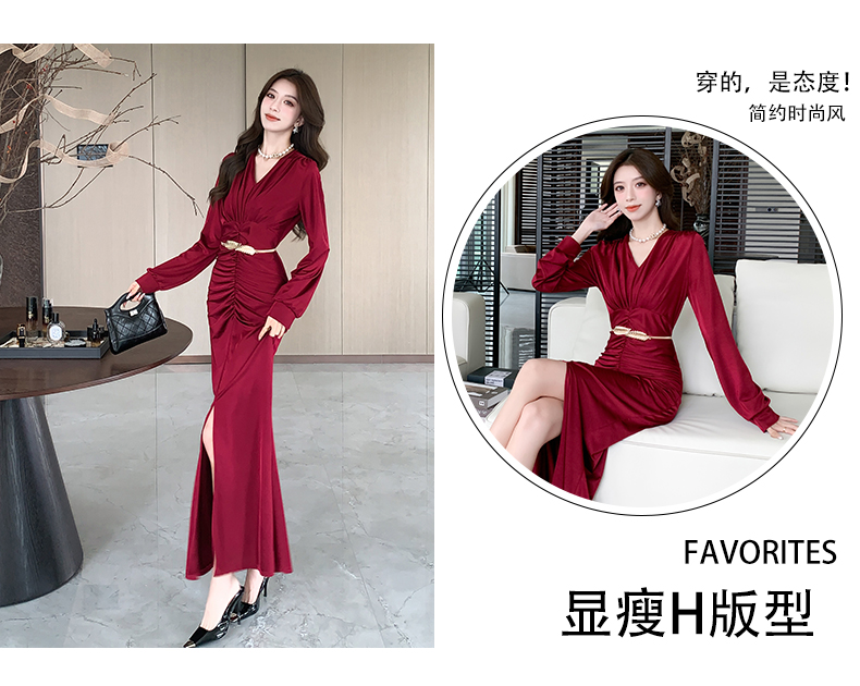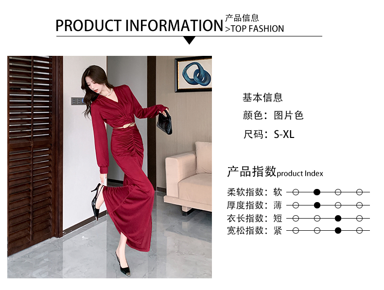 MY15030# 新款v领弹力时尚气质长裙包臀连衣裙女裝貨源服裝批發