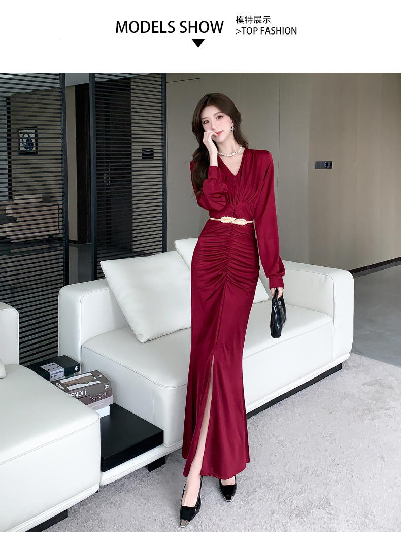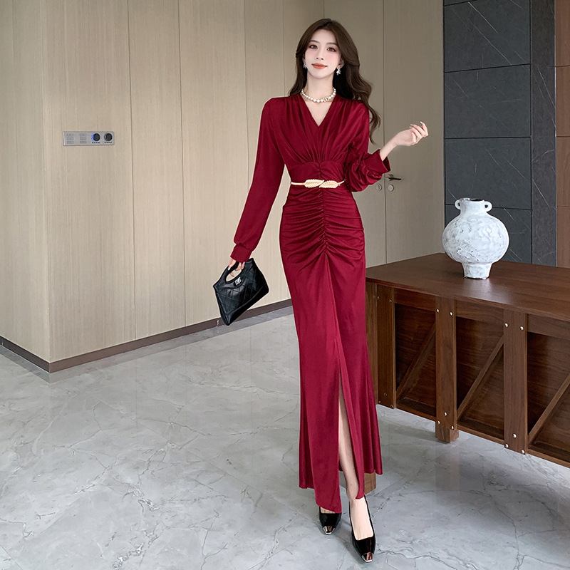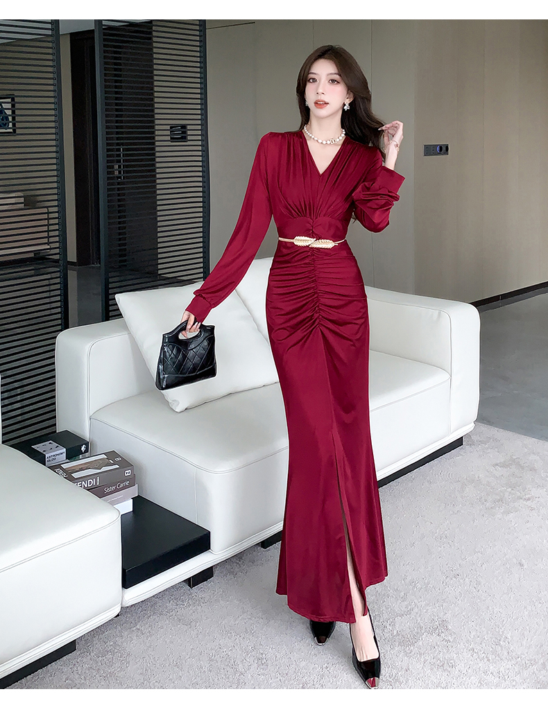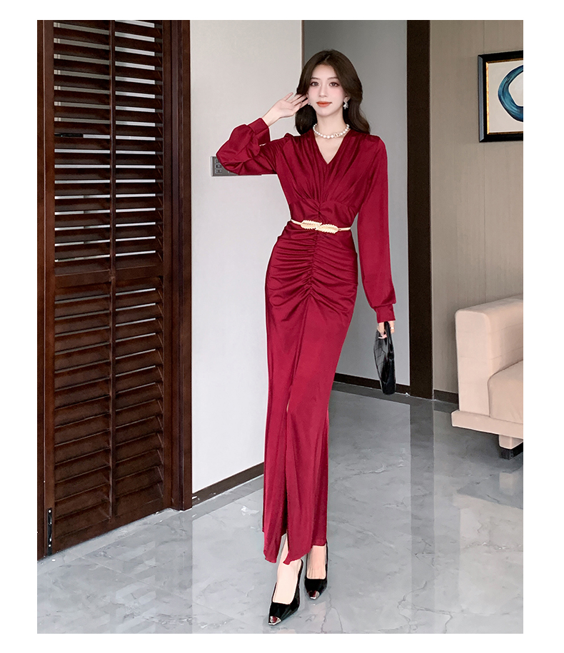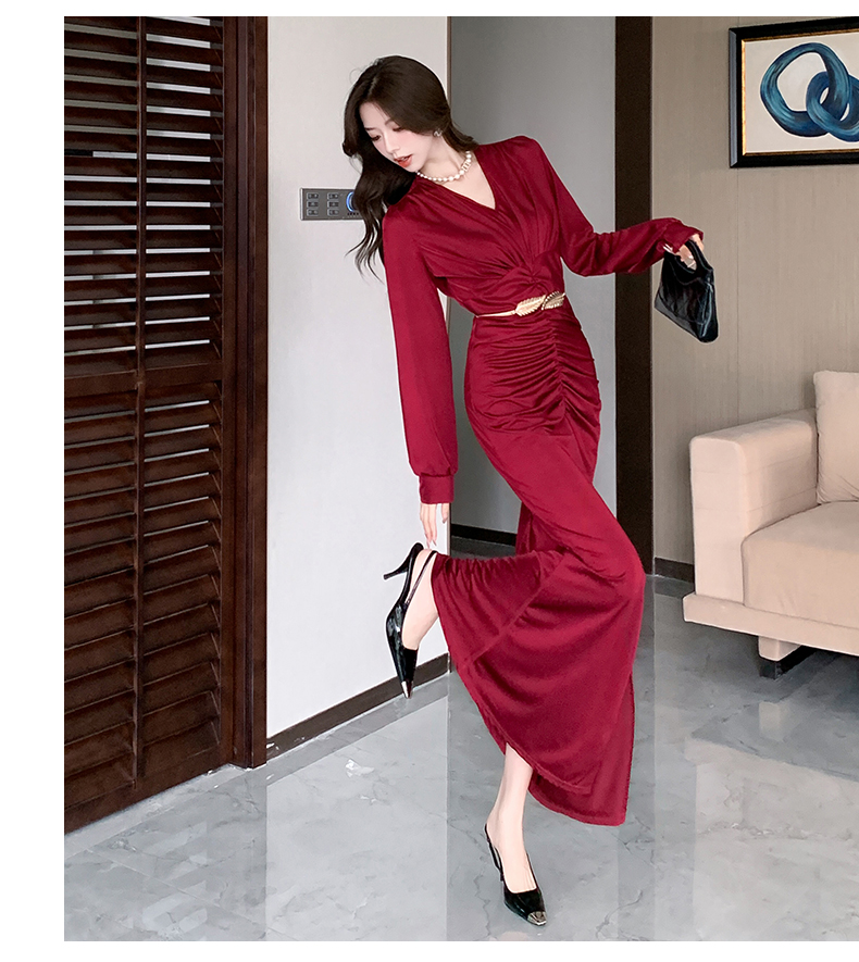 MY15030# 新款v领弹力时尚气质长裙包臀连衣裙女裝貨源服裝批發