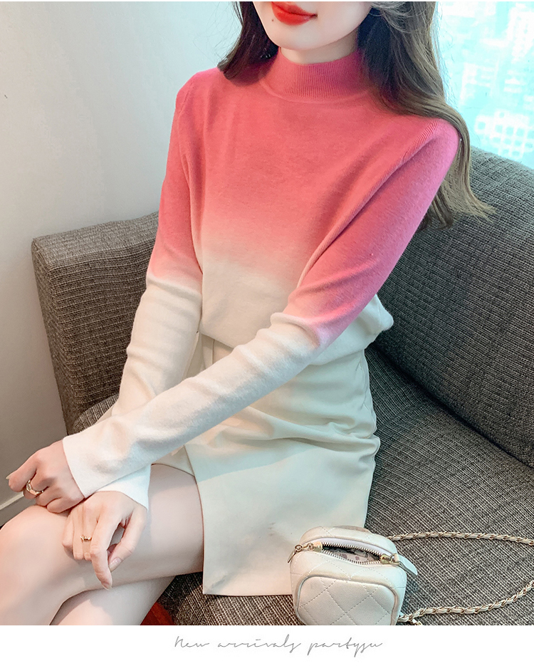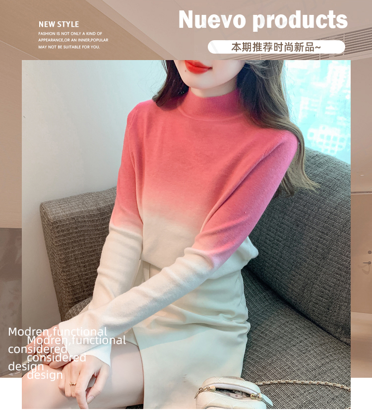 MY15140# 洋气新款女装毛衣裙半高领宽松中长款针织打底连衣裙女裝貨源...