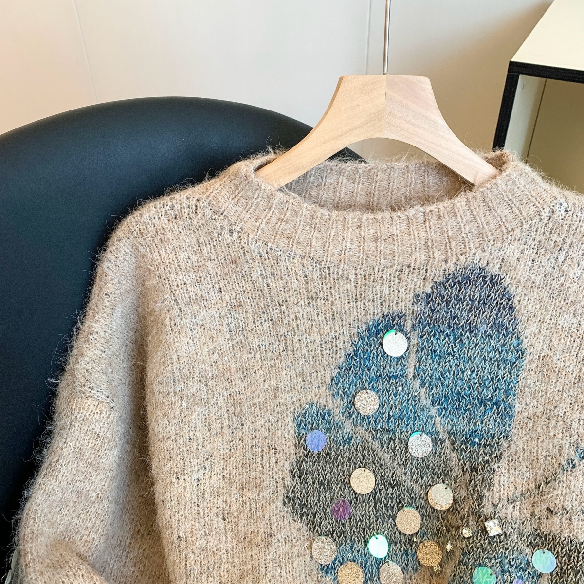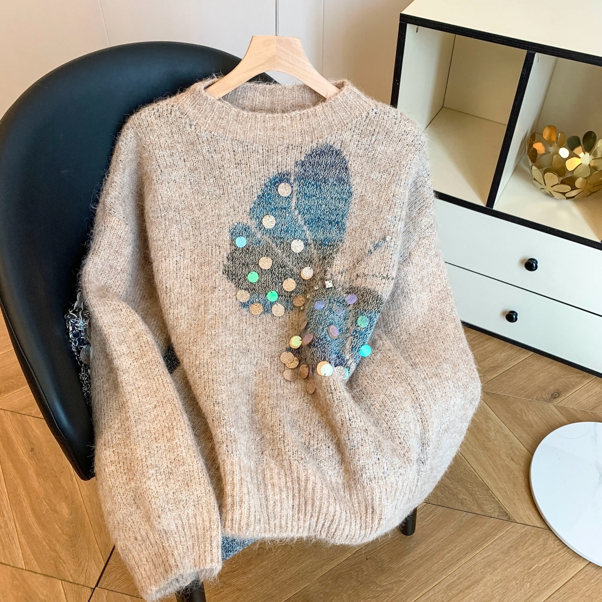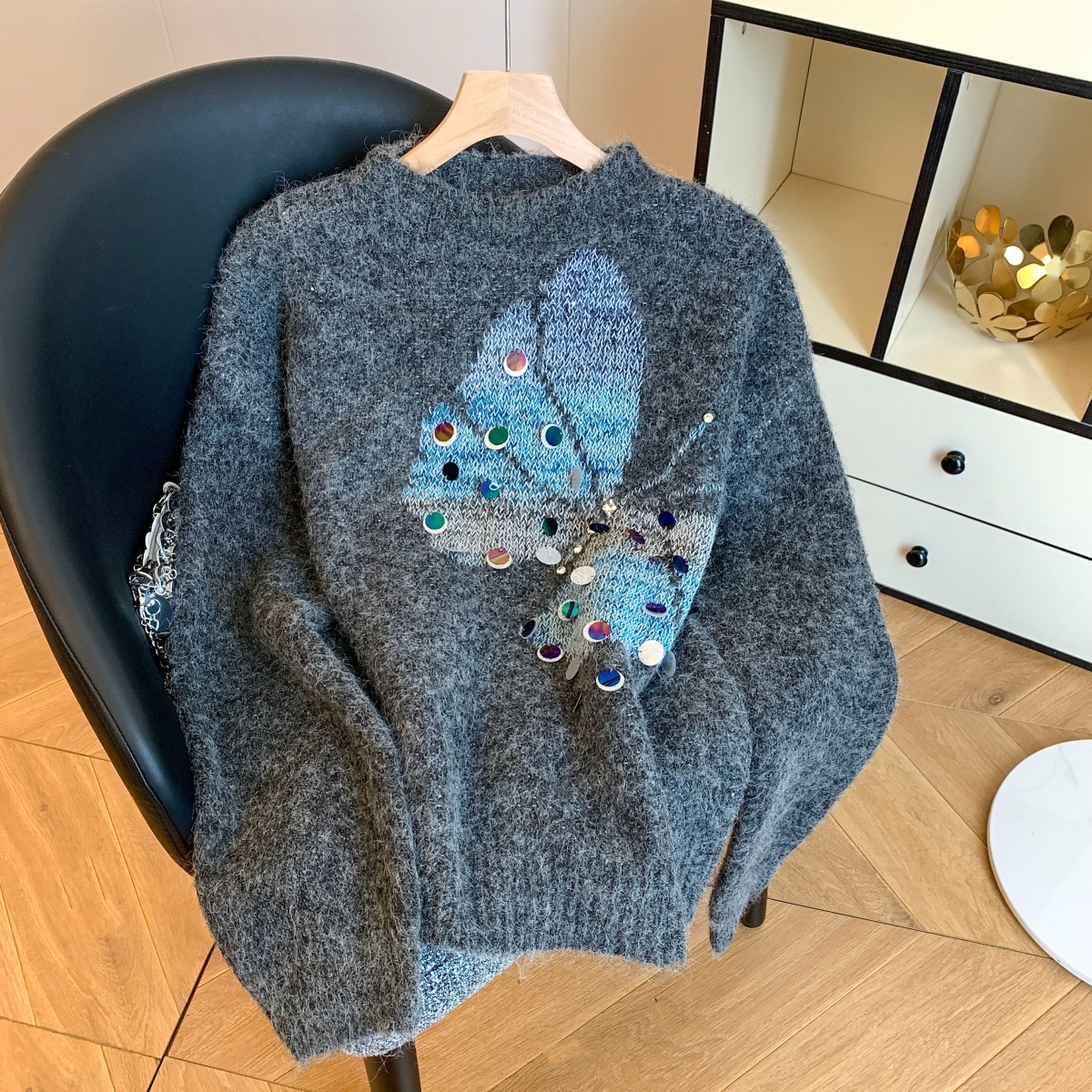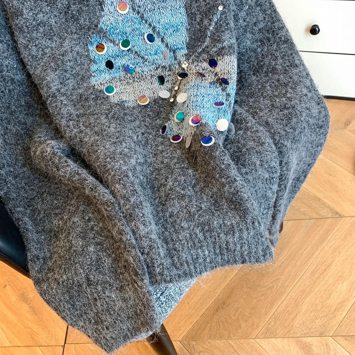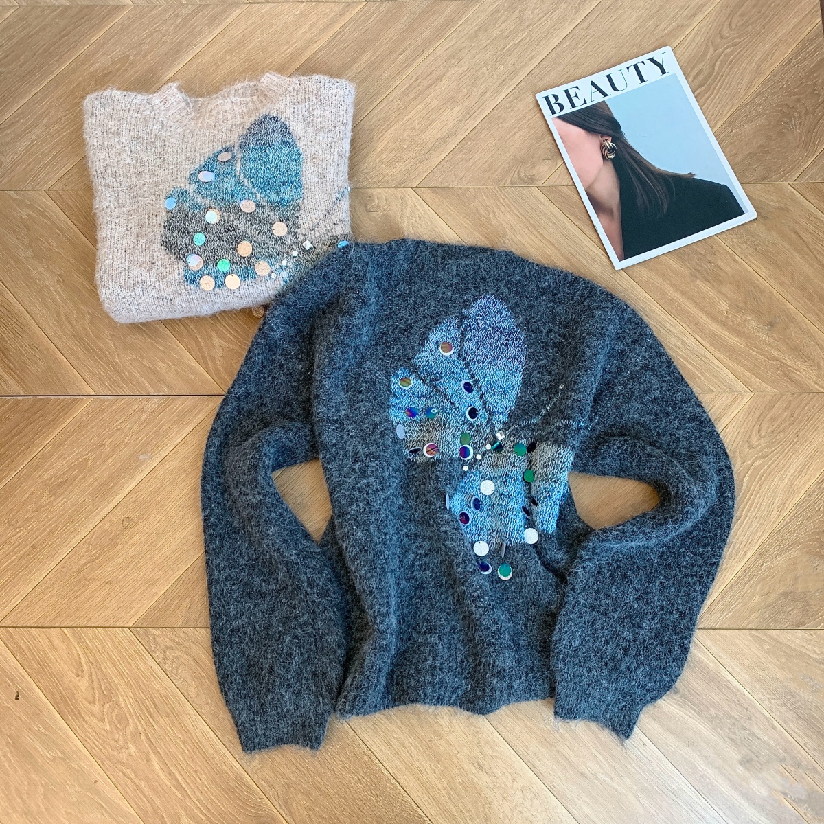 MY15285# 新款欧货蝴蝶亮片针织毛衣女慵懒风宽松显瘦洋气减龄女装女裝貨源服裝批發