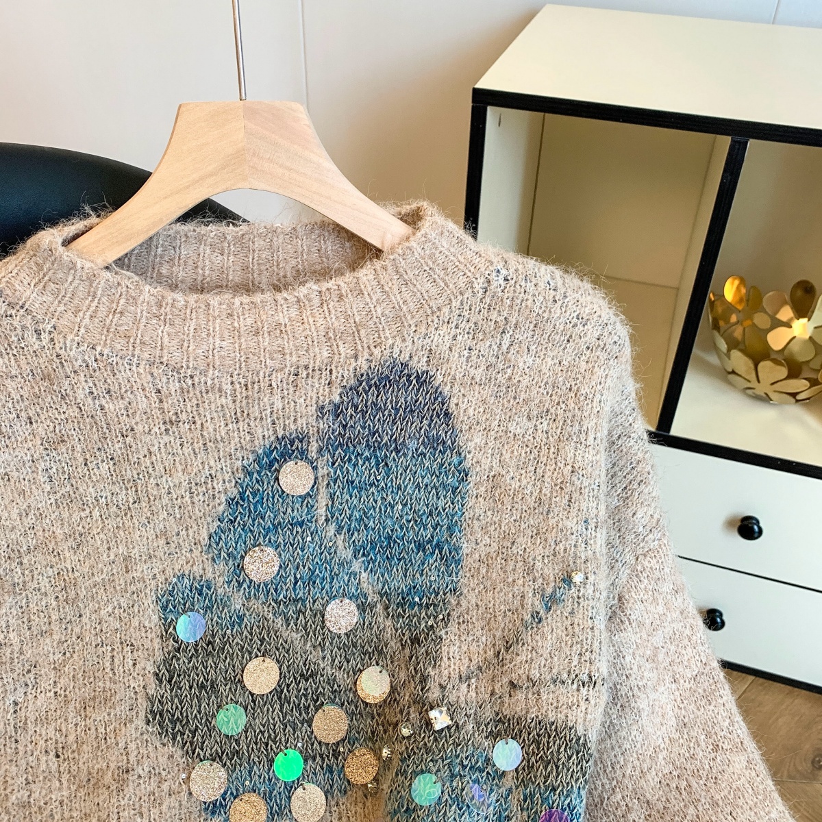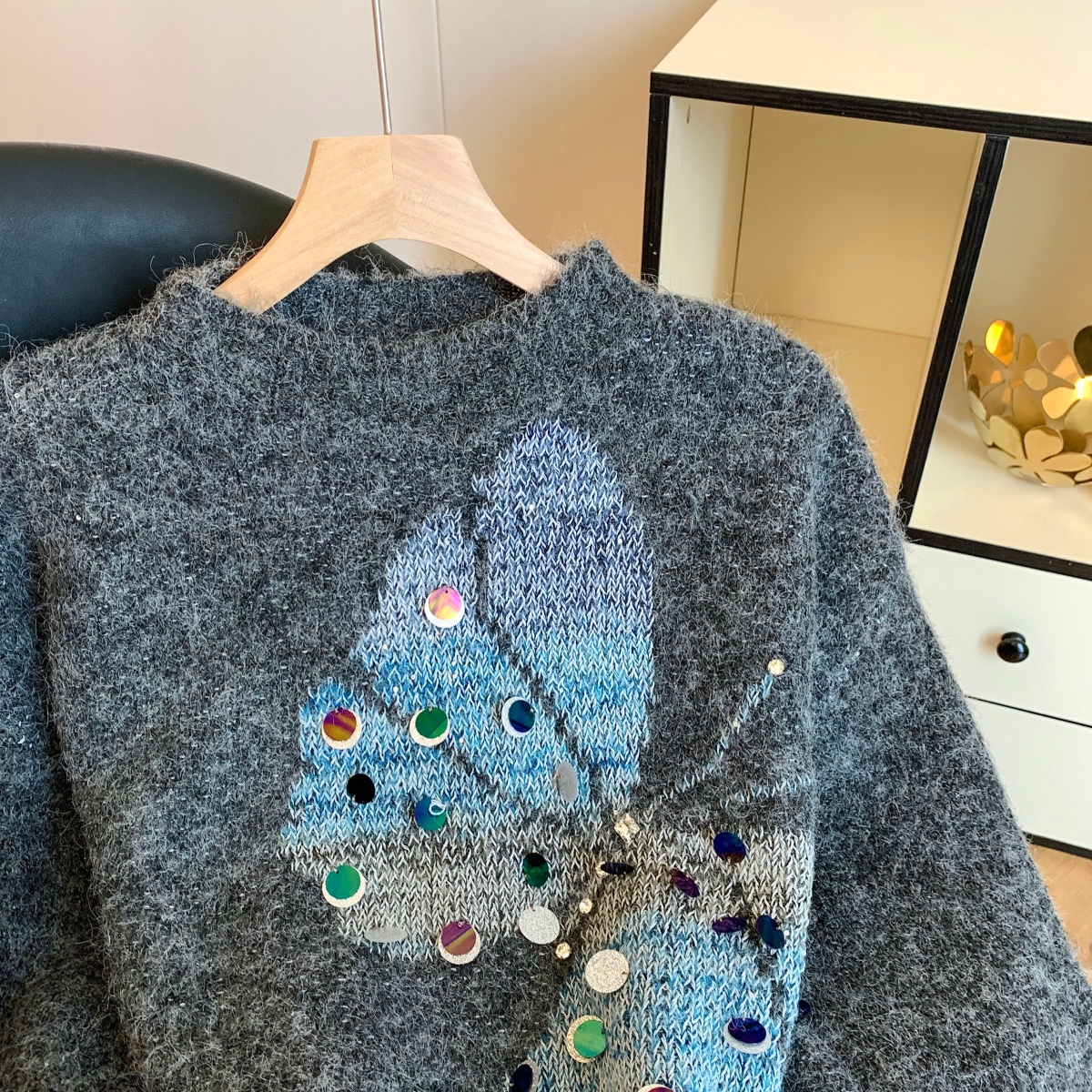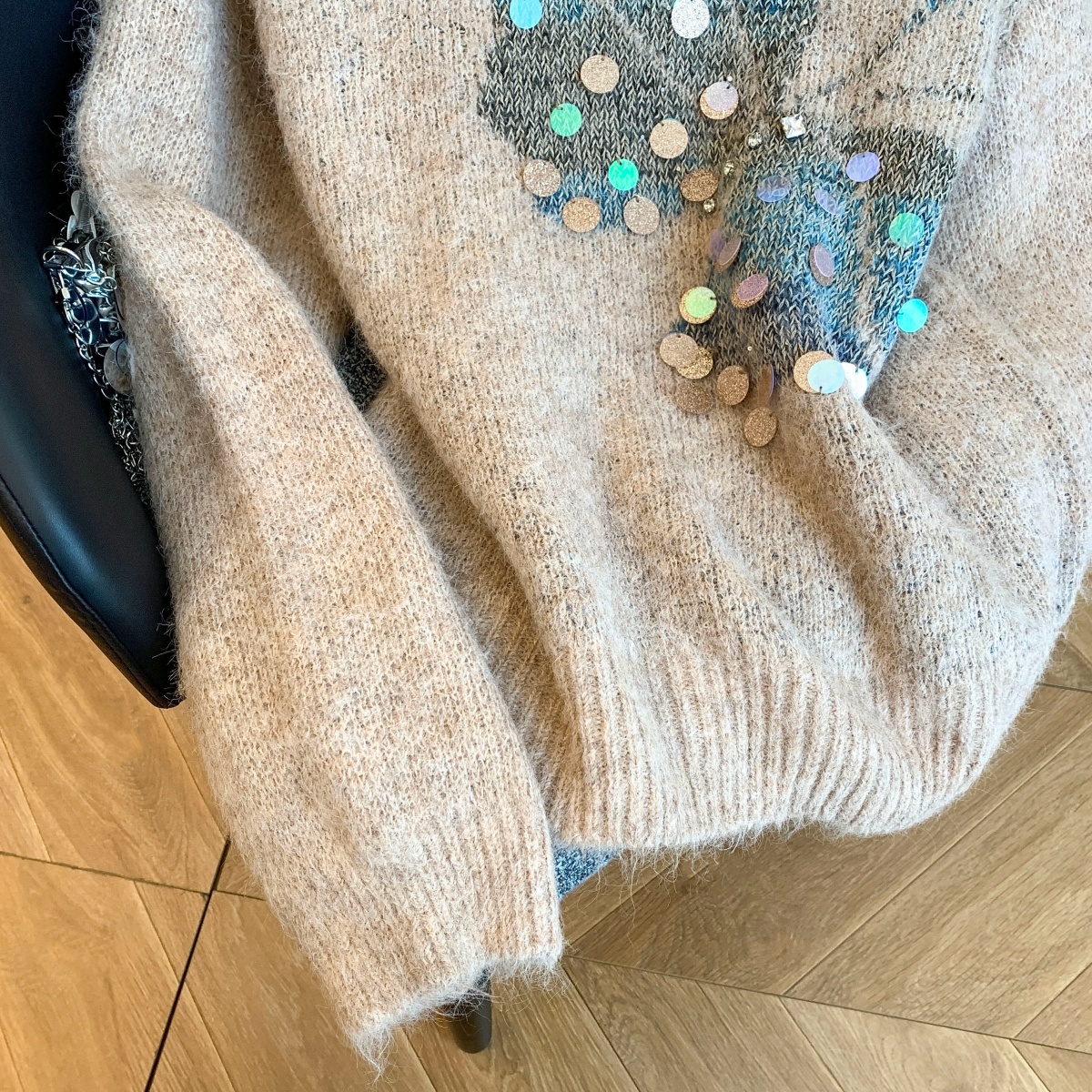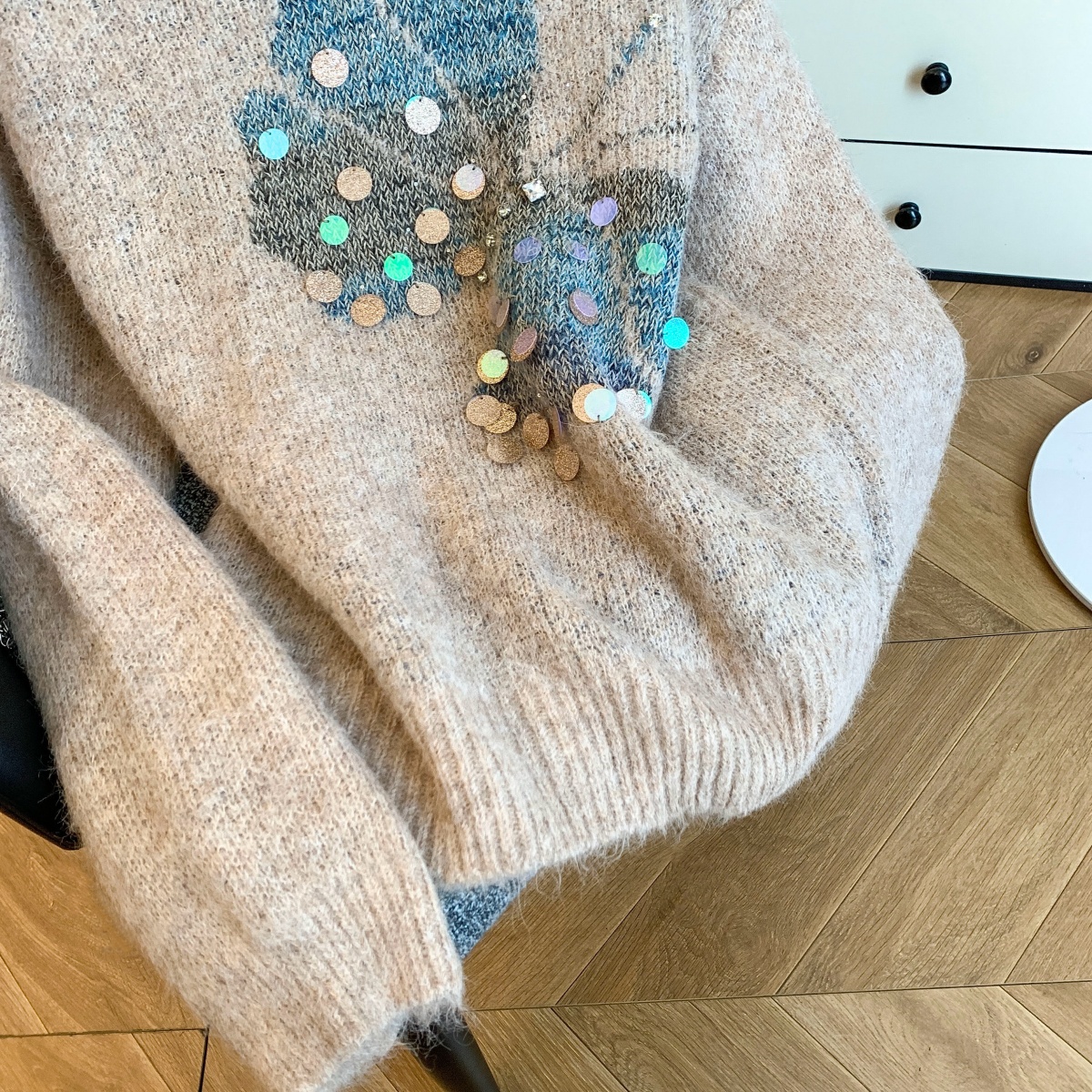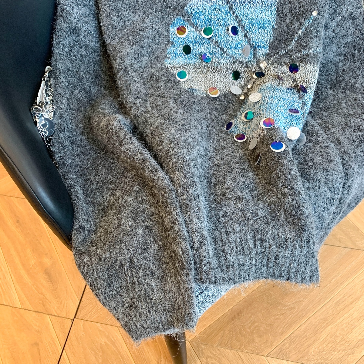 MY15285# 新款欧货蝴蝶亮片针织毛衣女慵懒风宽松显瘦洋气减龄女装女裝貨源服裝批發