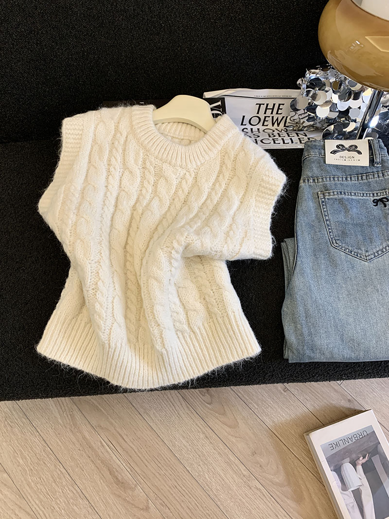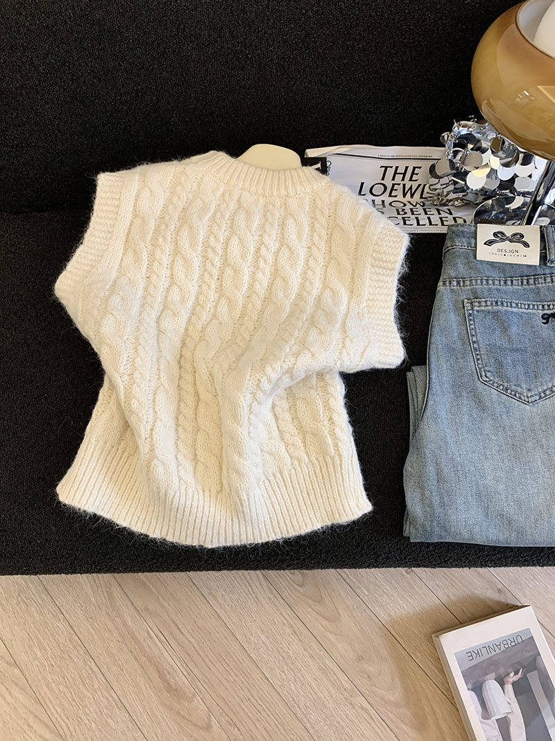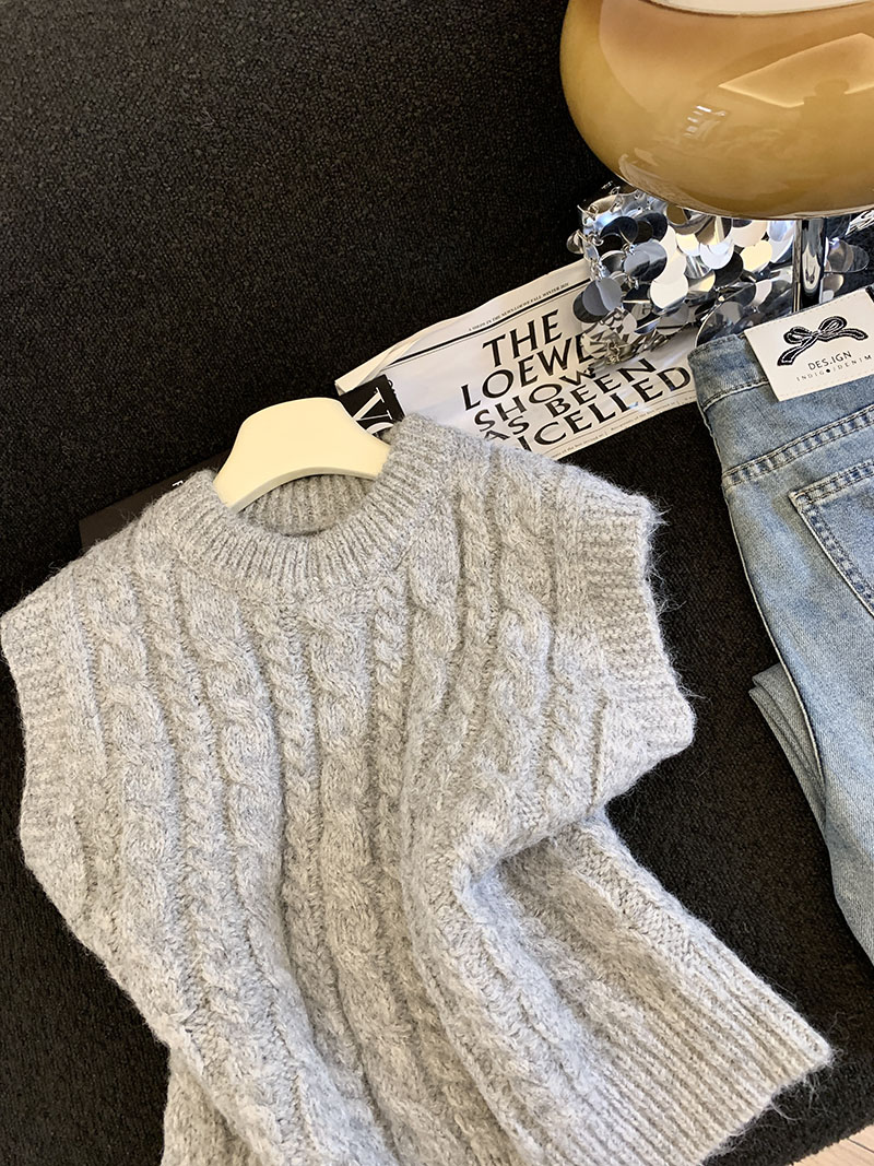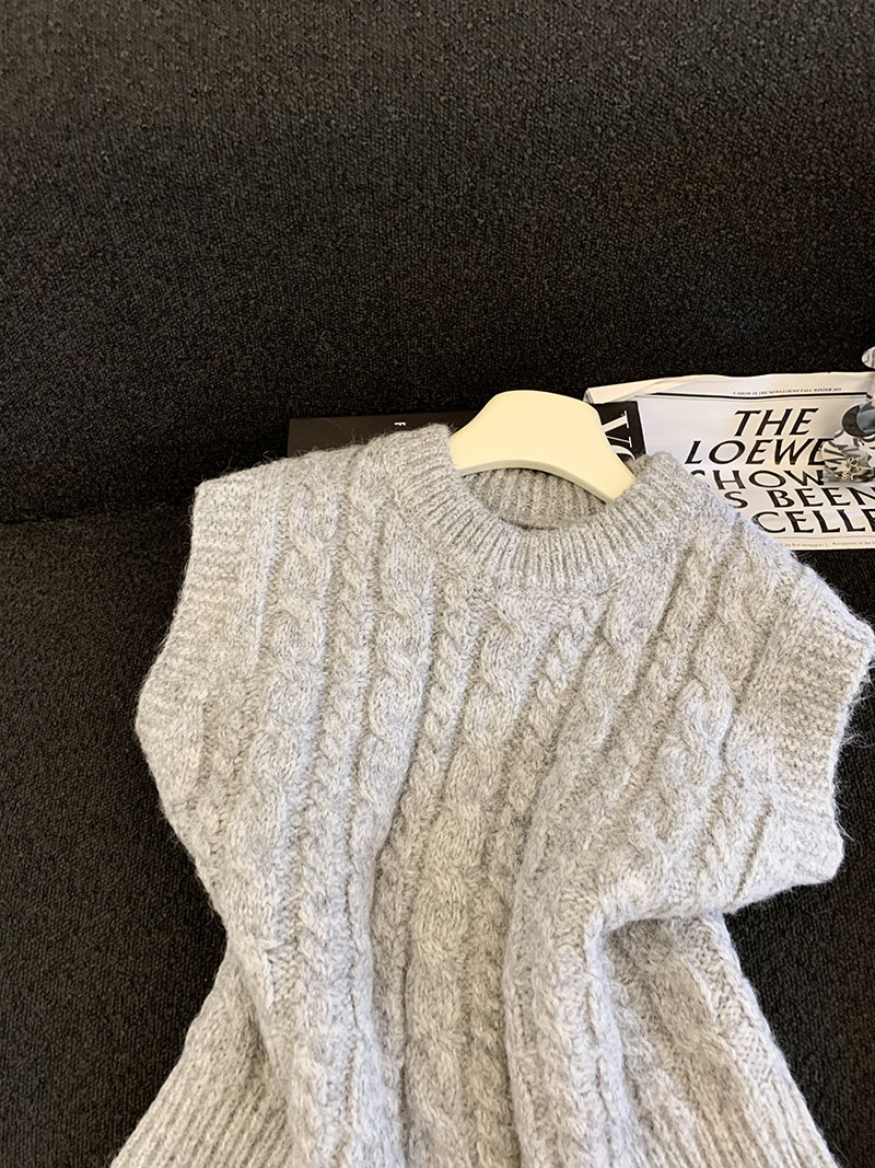 MY15296# 纯色麻花针织马甲新款韩系叠穿毛衣背心马外搭上衣女裝貨源服裝批發