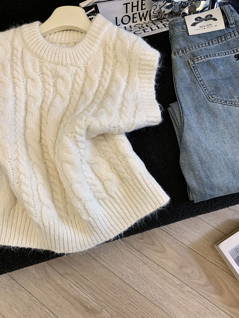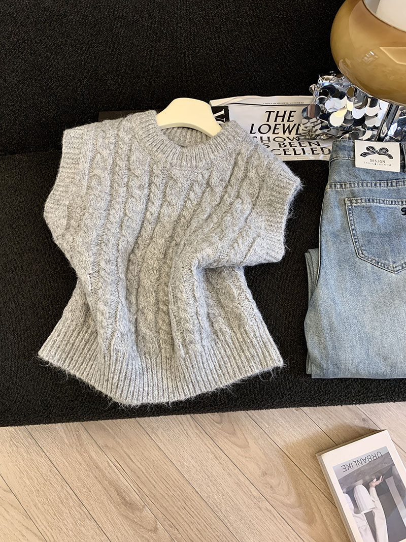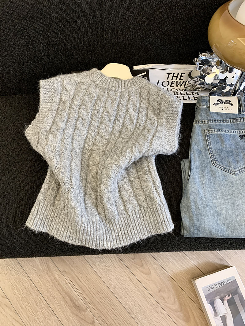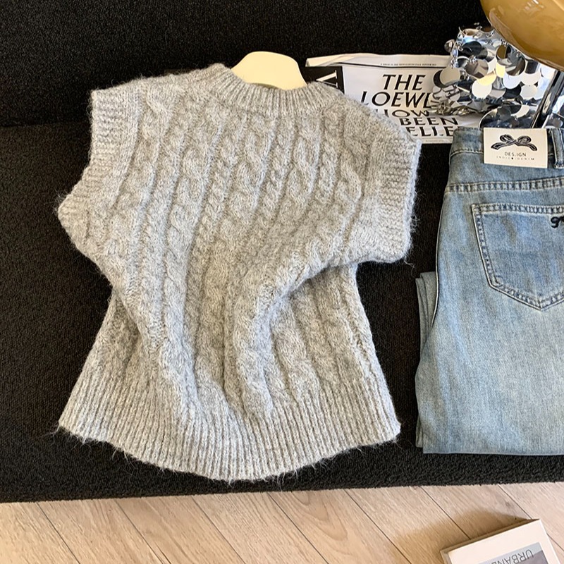 MY15296# 纯色麻花针织马甲新款韩系叠穿毛衣背心马外搭上衣女裝貨源服裝批發