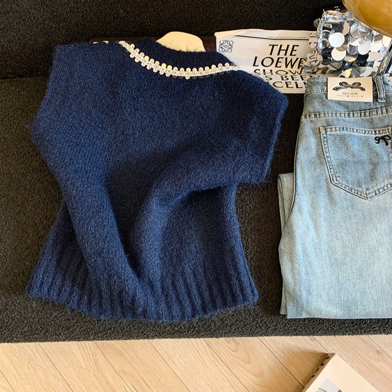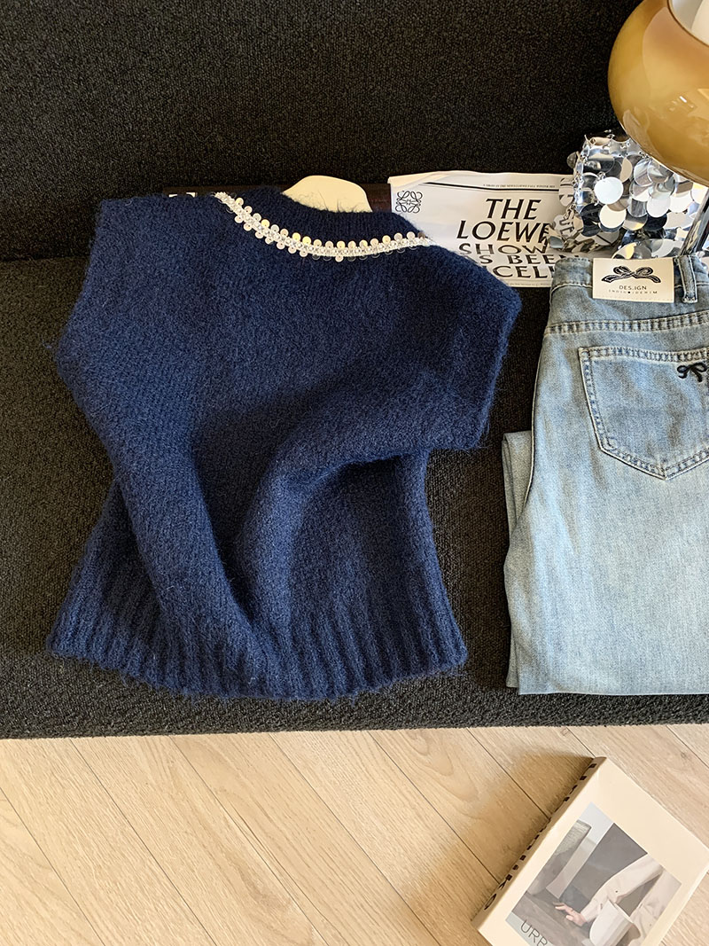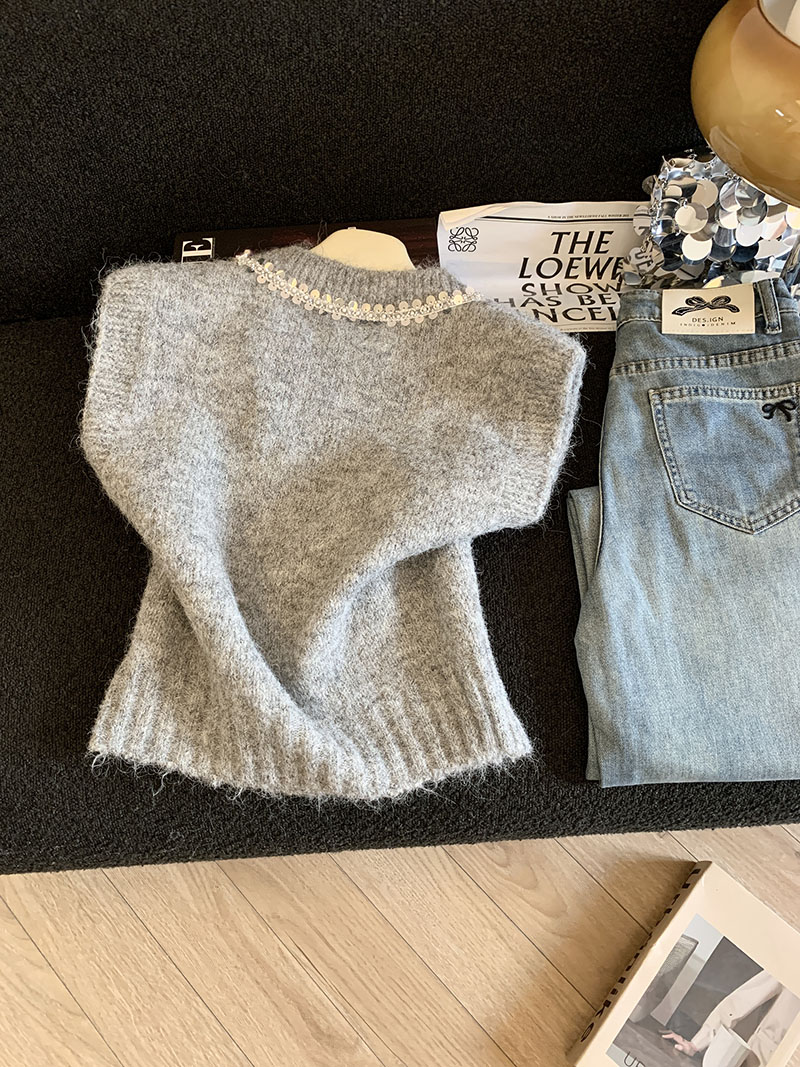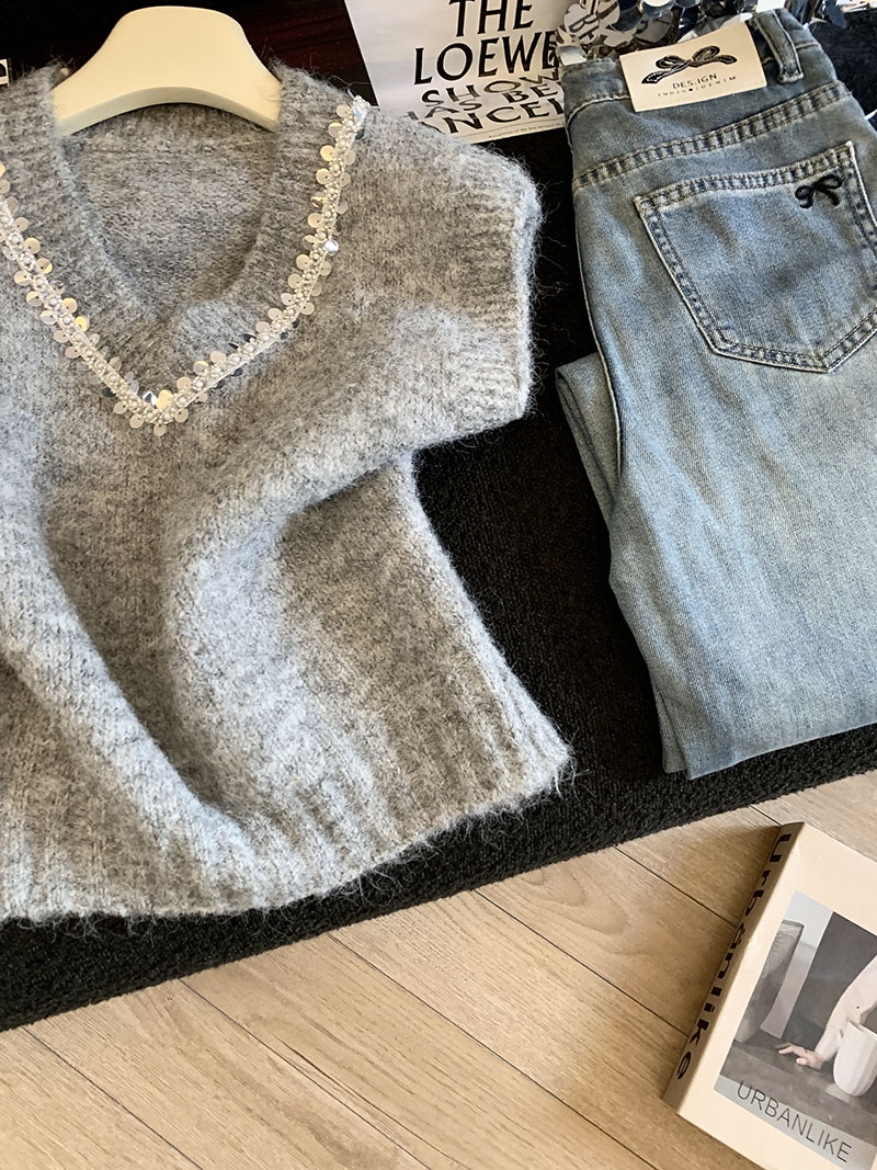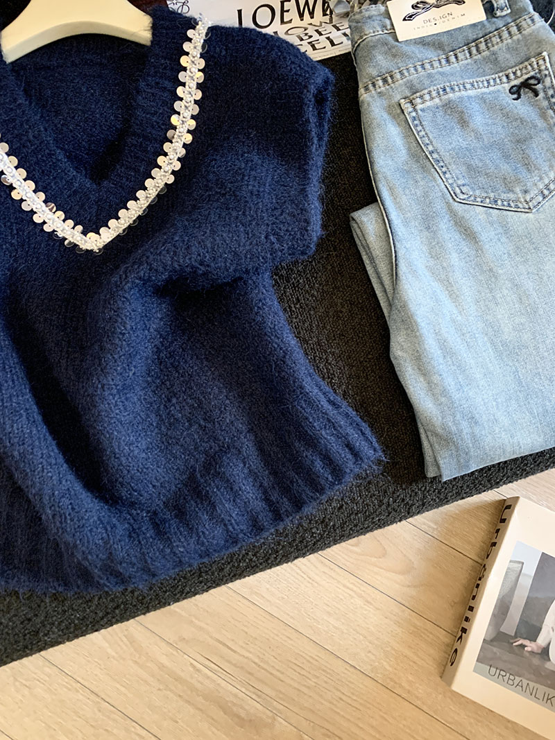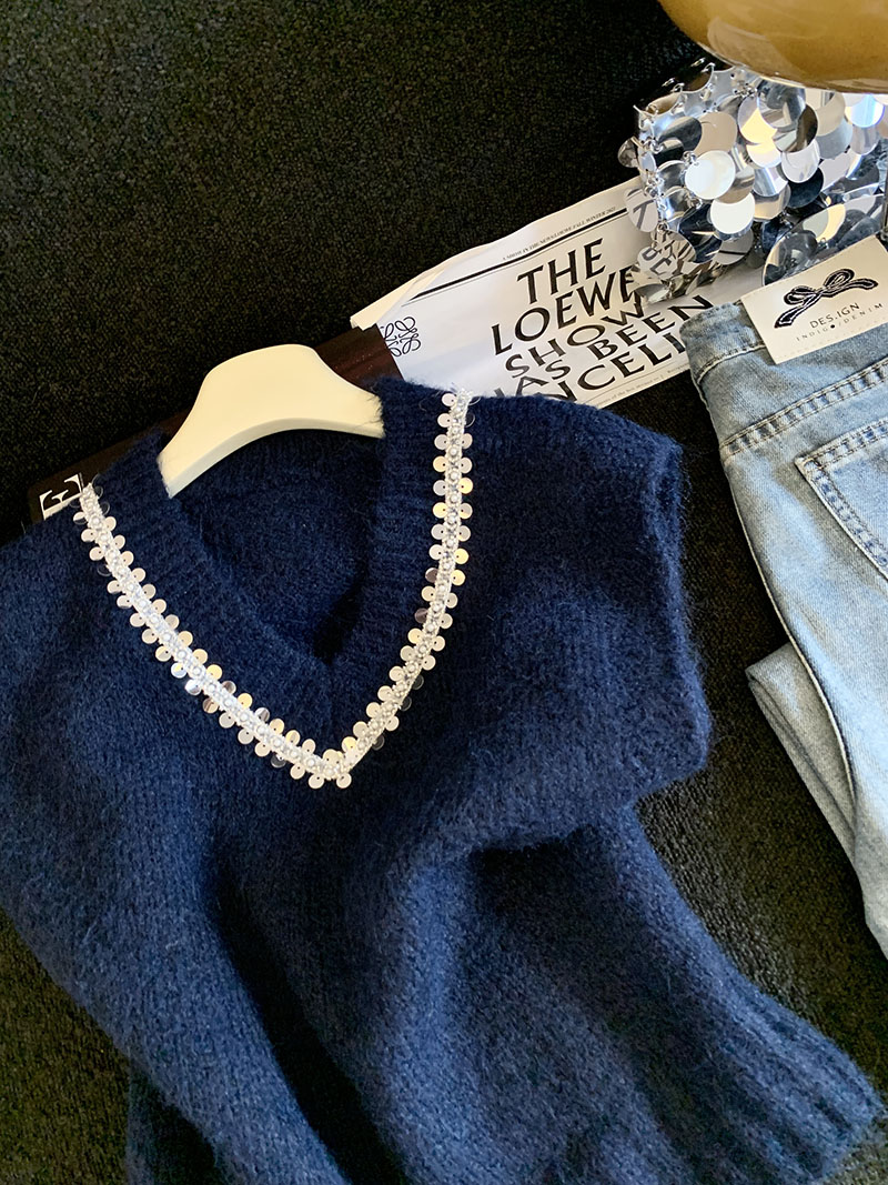 MY15297# V领针织毛衣马甲新款洋气显瘦叠穿亮片背心无袖上衣女裝貨源服裝批發