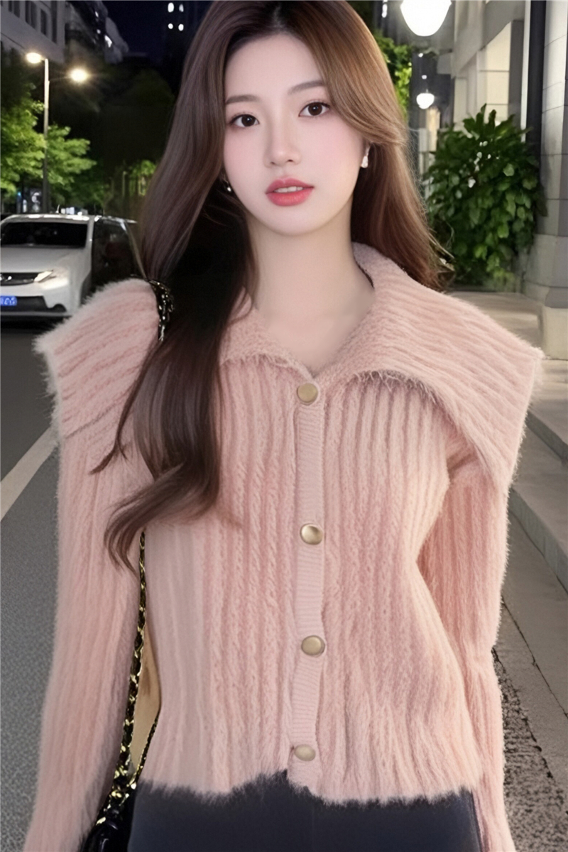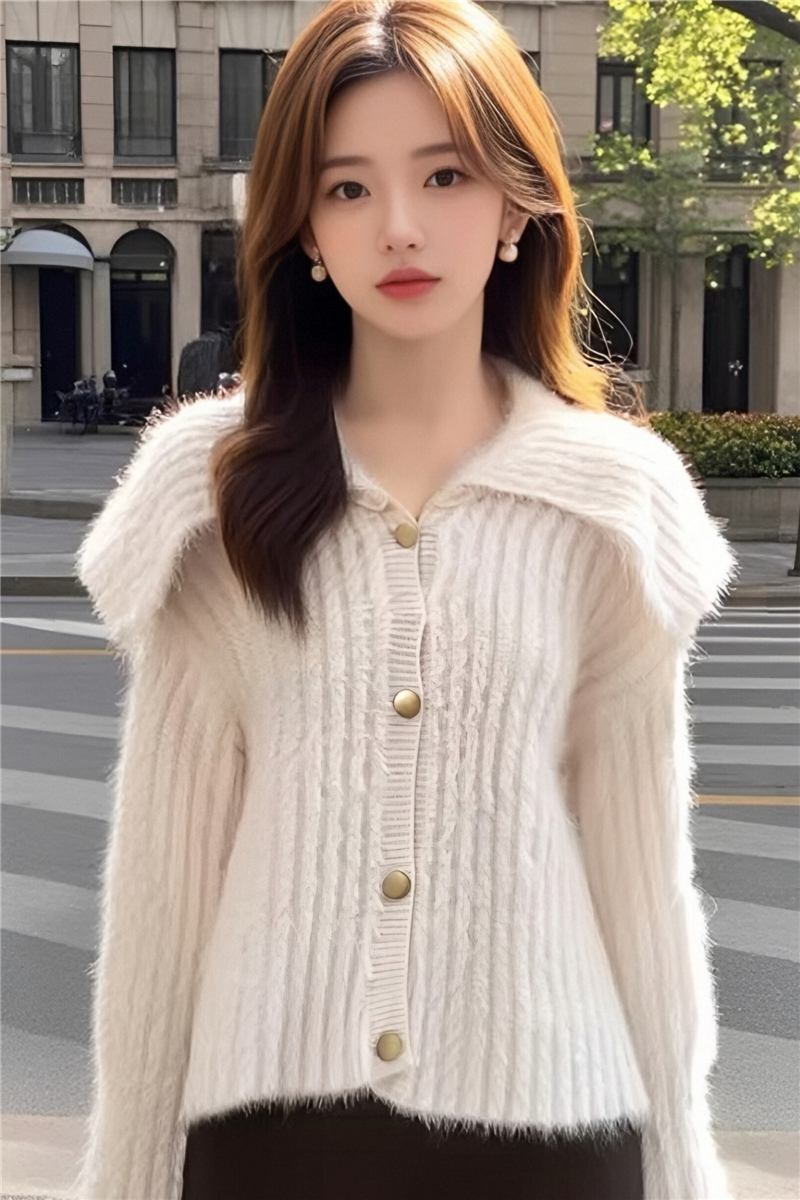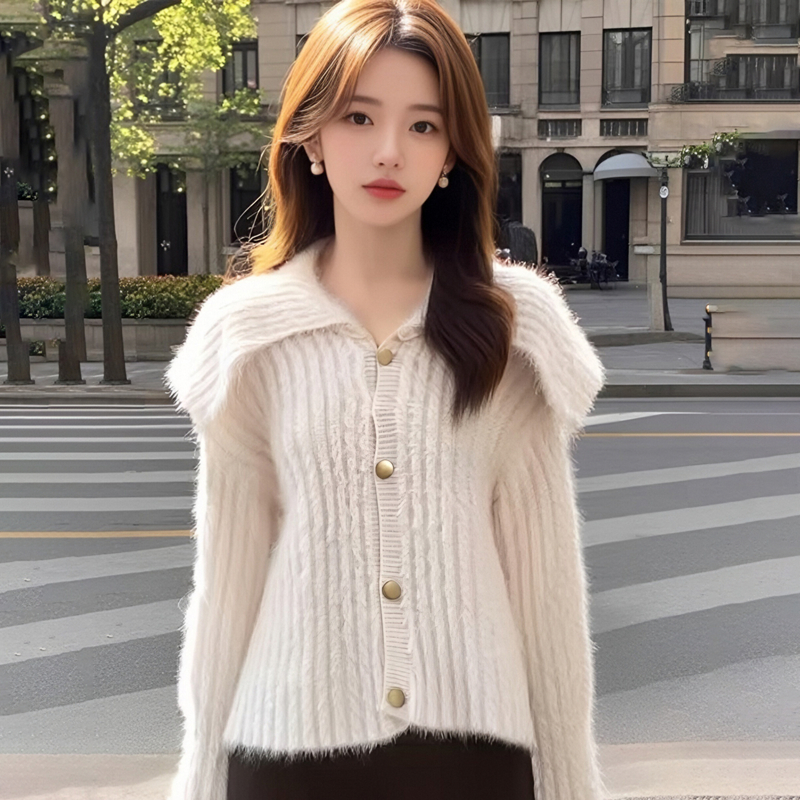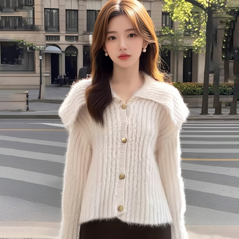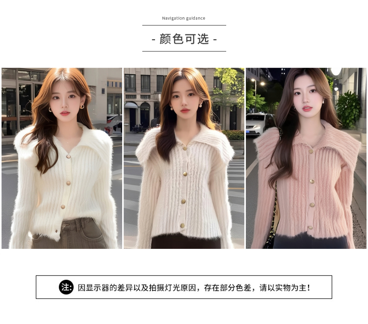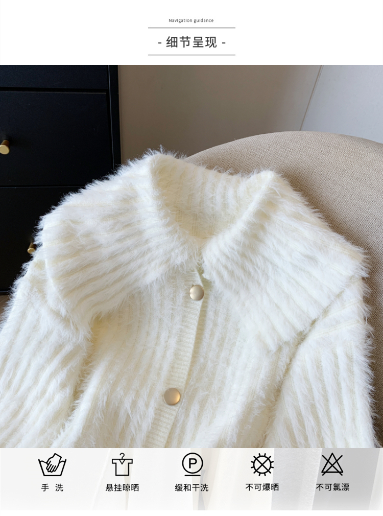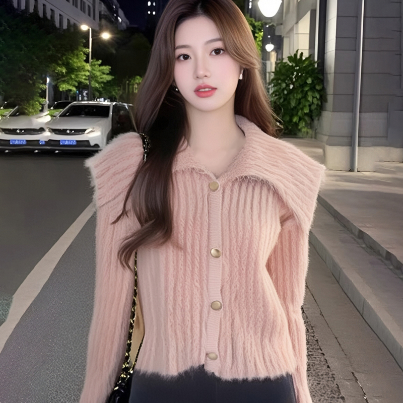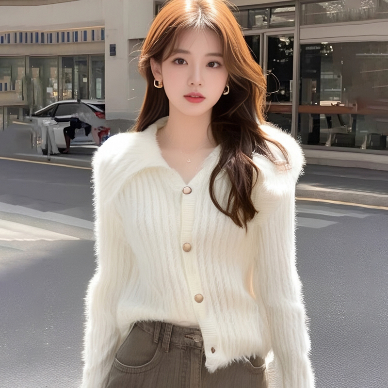 MY15299# 洋气毛娃娃领开衫针织外套新款慵懒风软糯加厚毛衣女裝貨源服裝批發