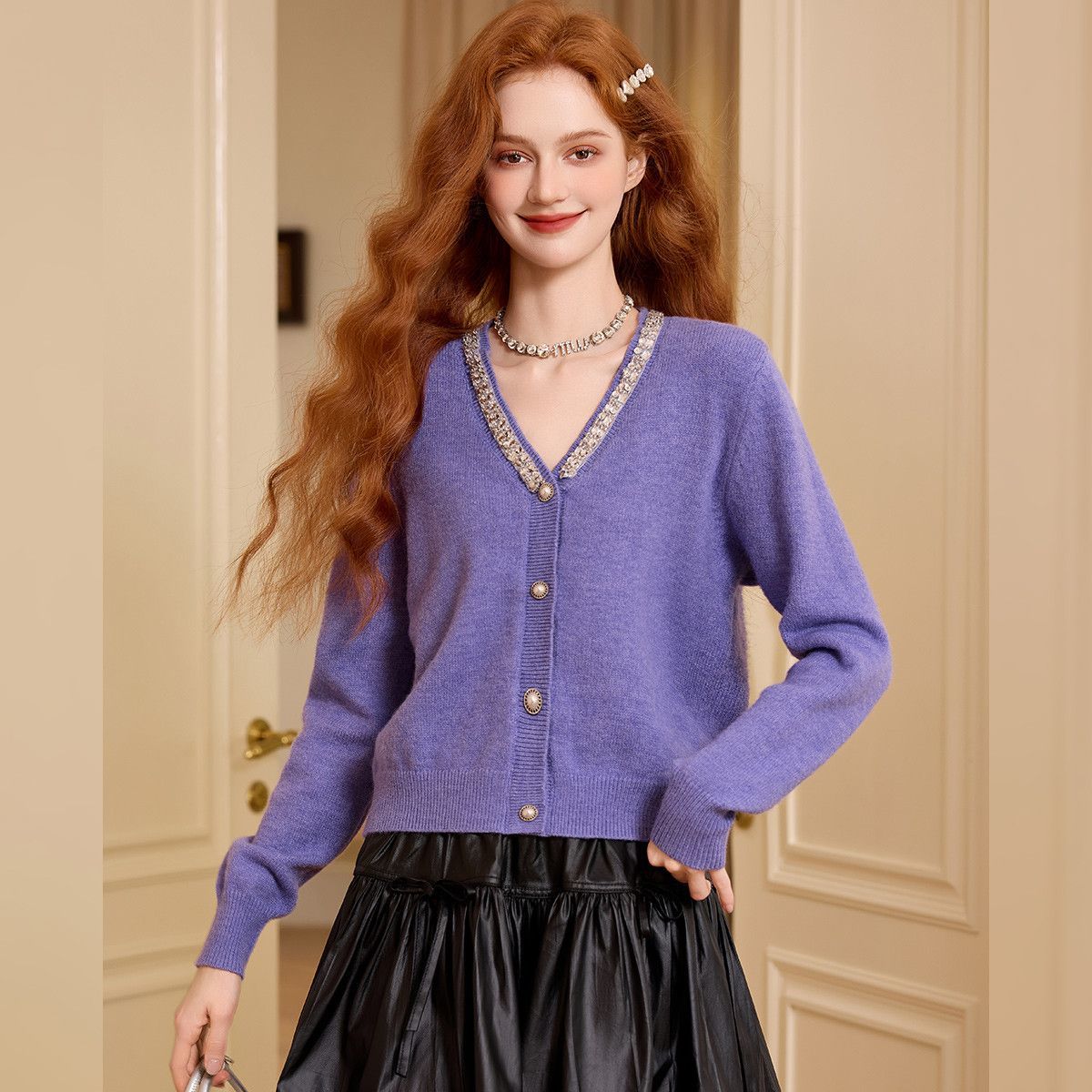 MY15328# 可外穿珠片v领针织开衫温柔气质高级感女式针织衫女裝貨源服裝批發