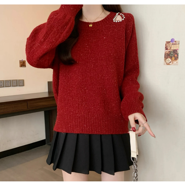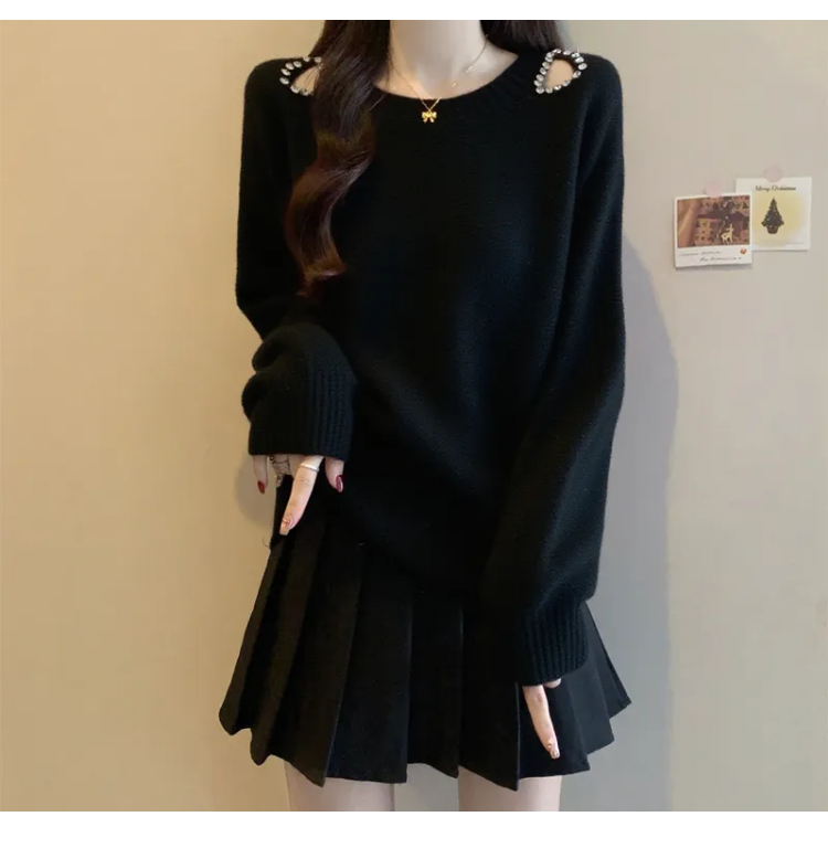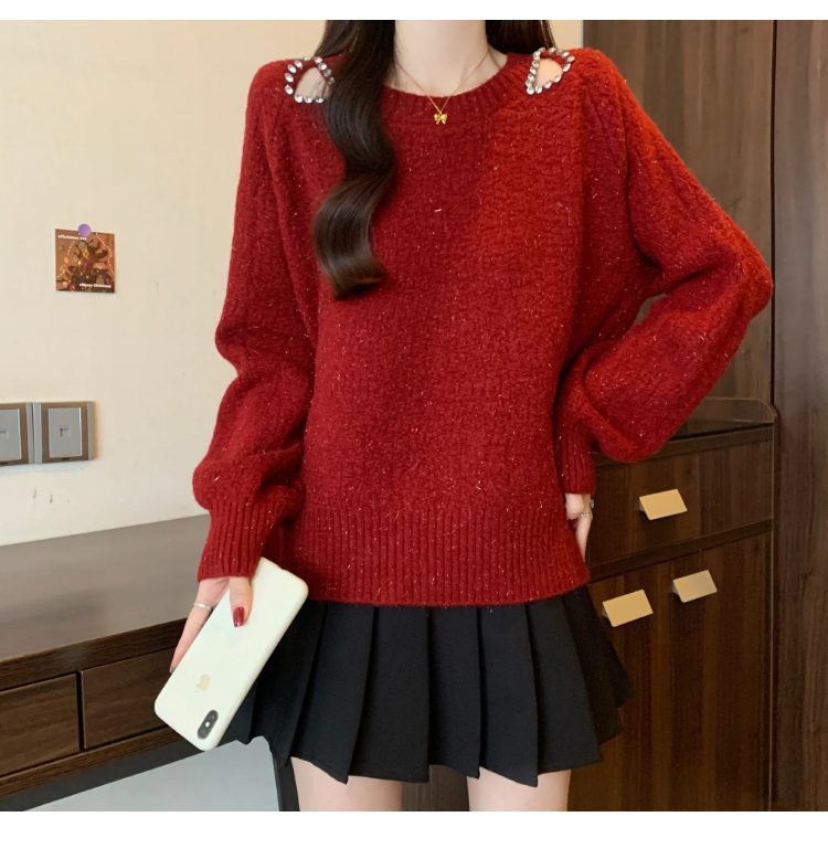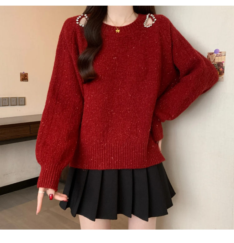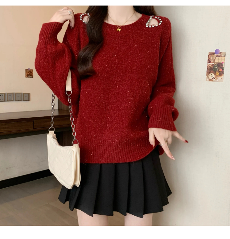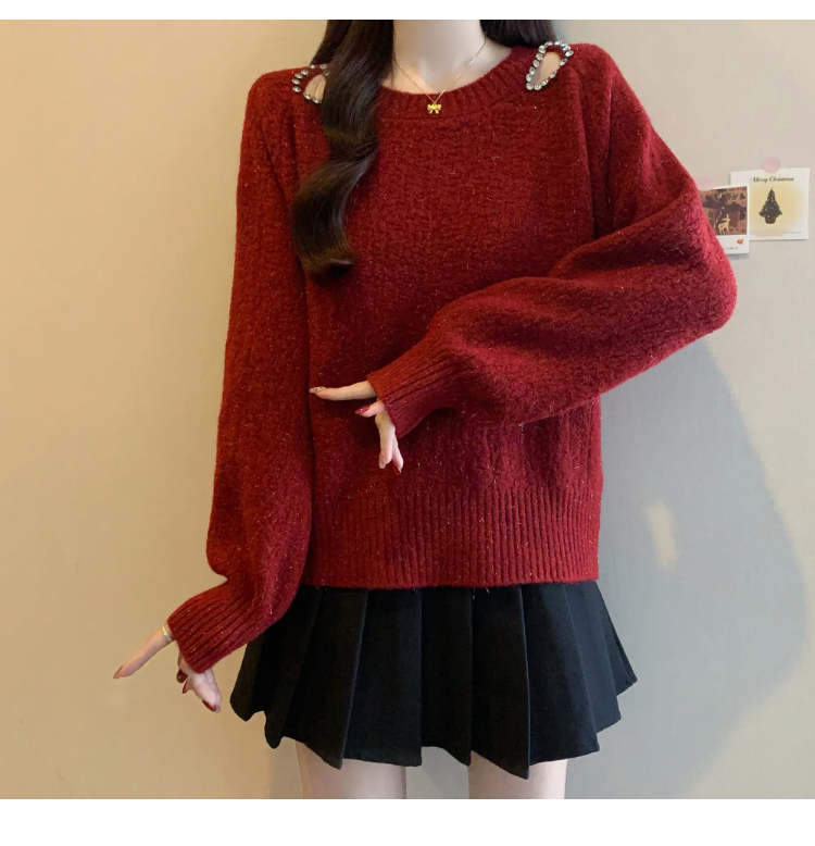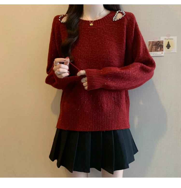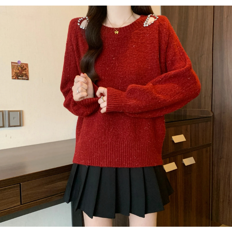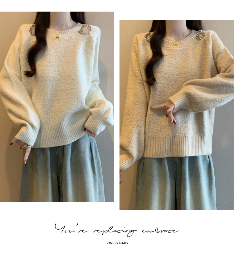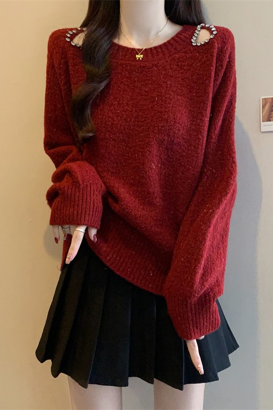 MY15372# 法式高级感镶钻毛衣新款设计感心机露肩显瘦针织衫女裝貨源服裝批發
