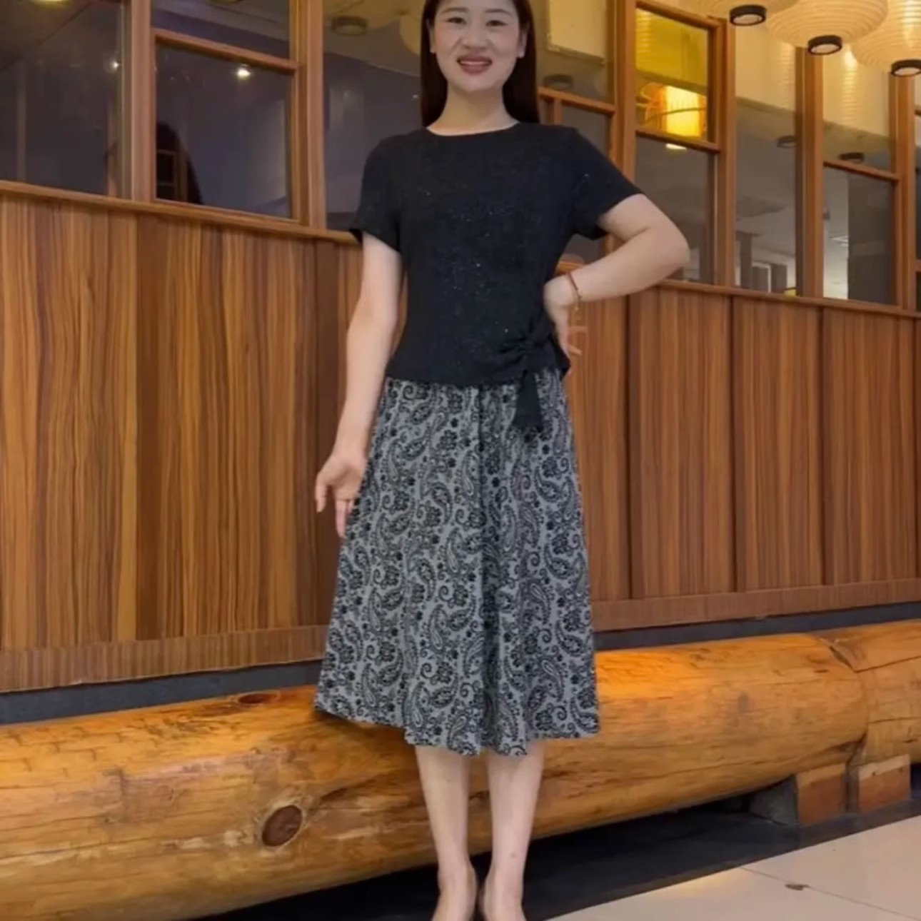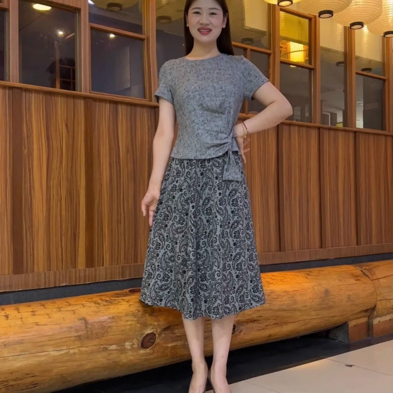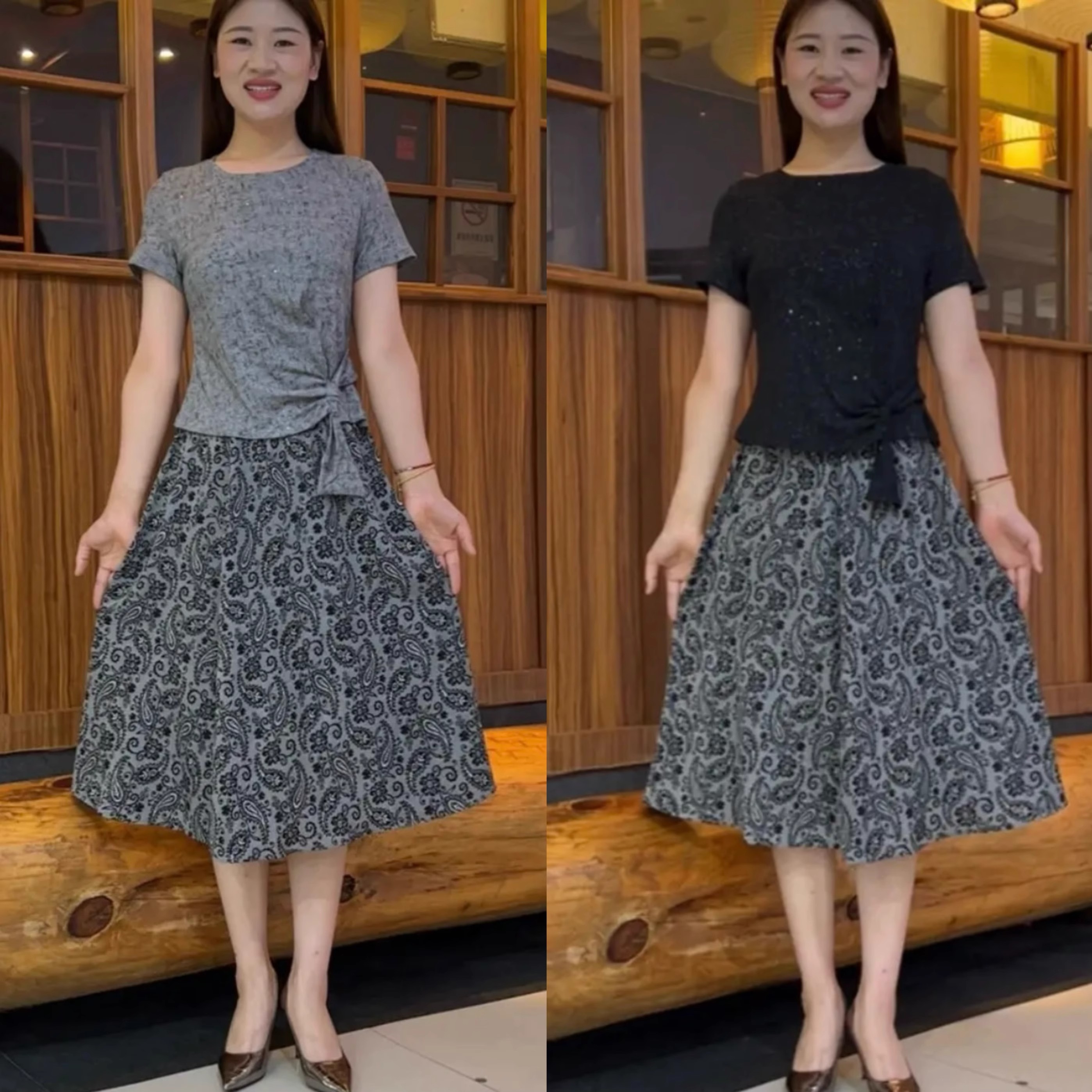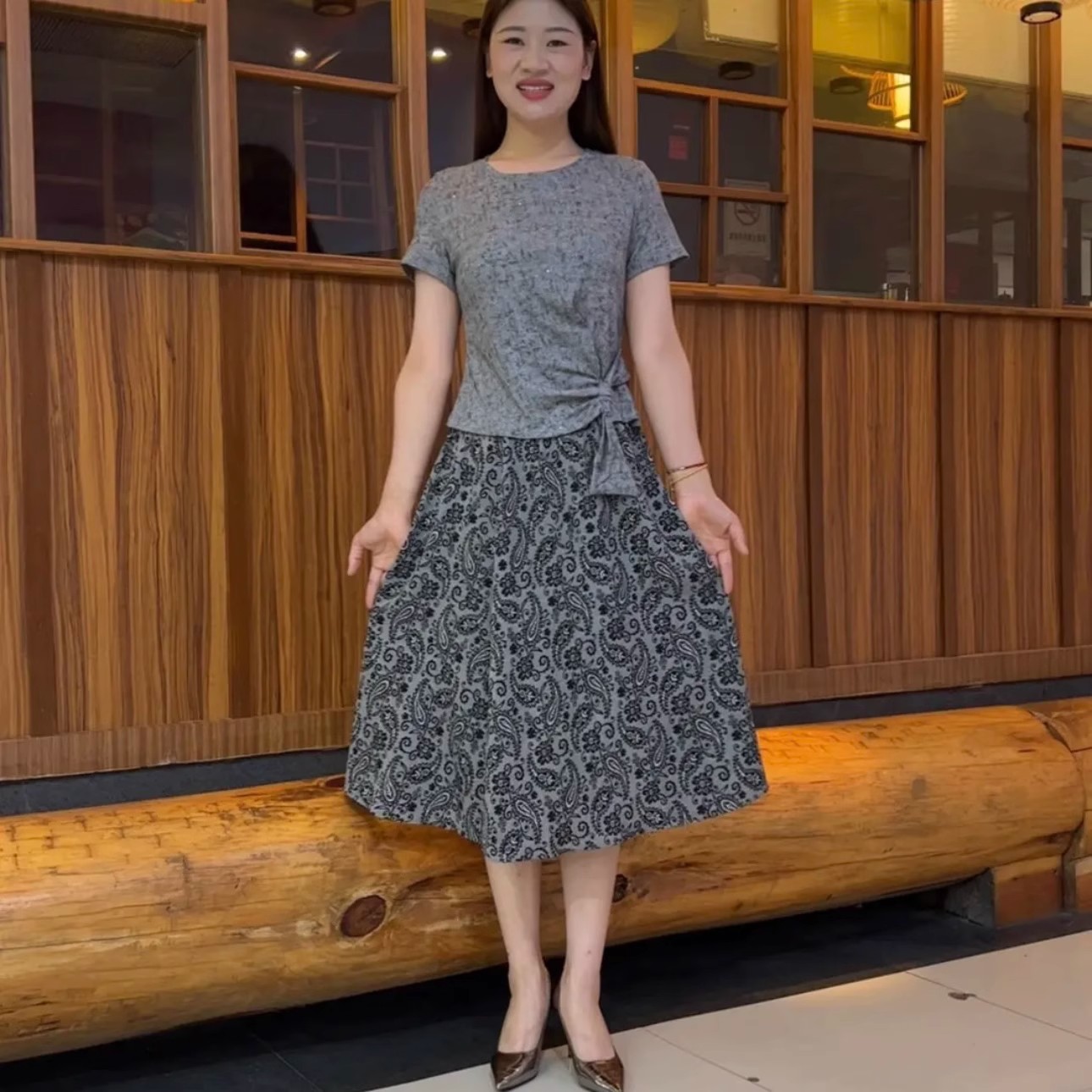 BY9179#时尚洋气短袖印花半身裙套装女2025年夏季新款显瘦减龄两件套裙子