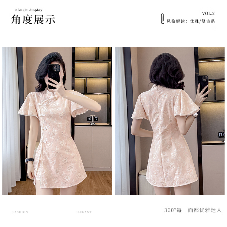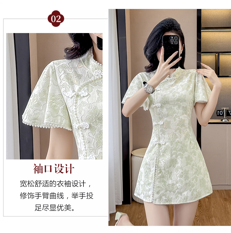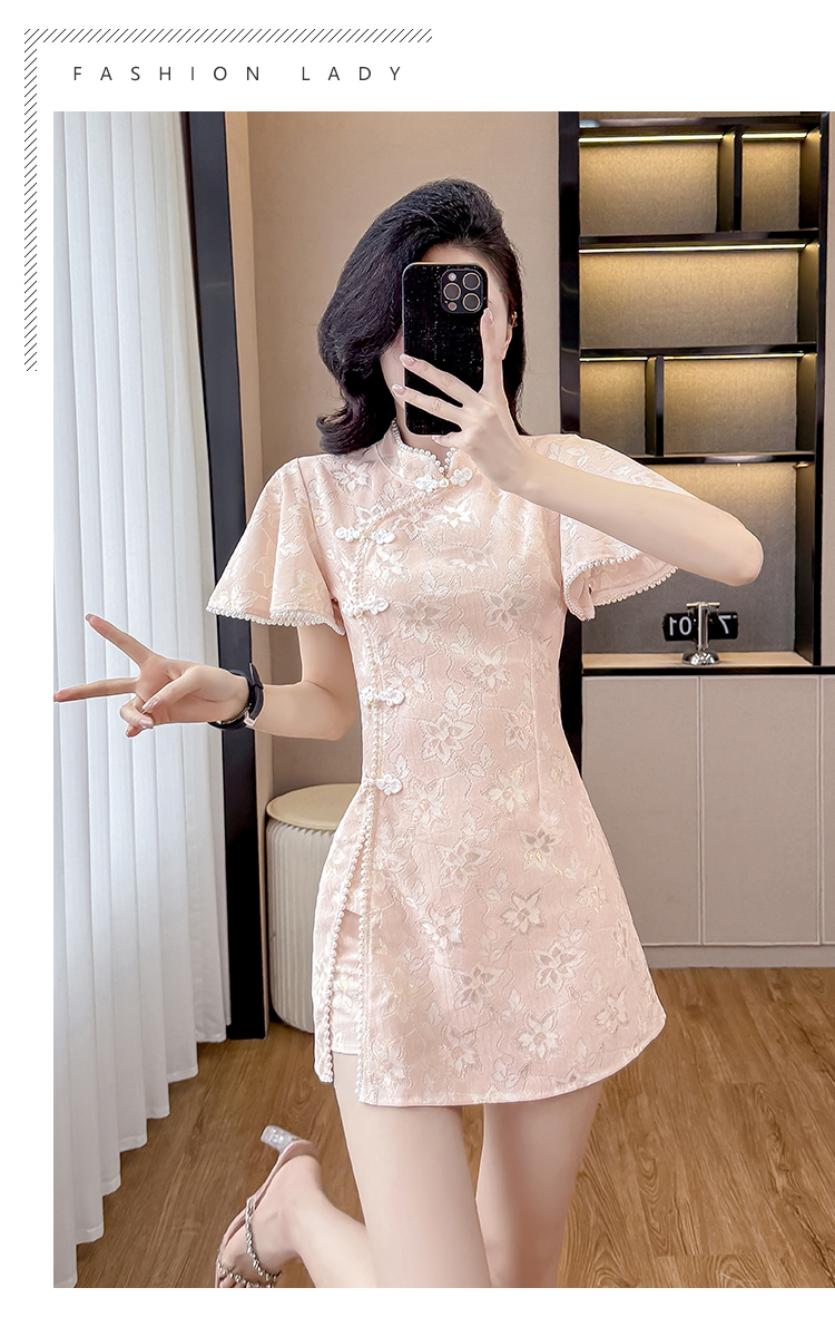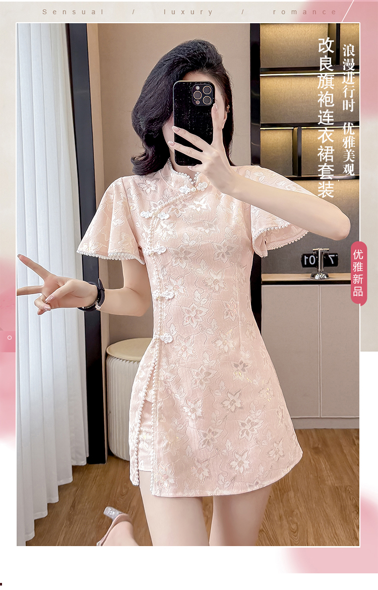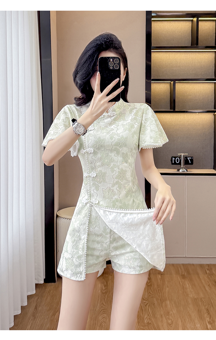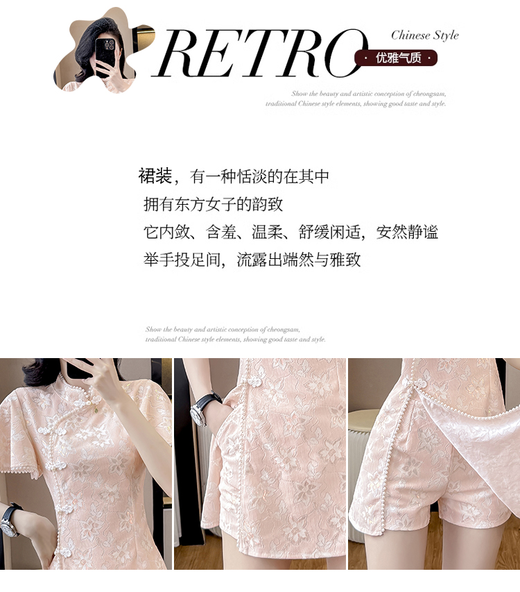 BY9180#夏季新中式复古改良旗袍裙盘扣蕾丝国风连衣裙短裤两件套