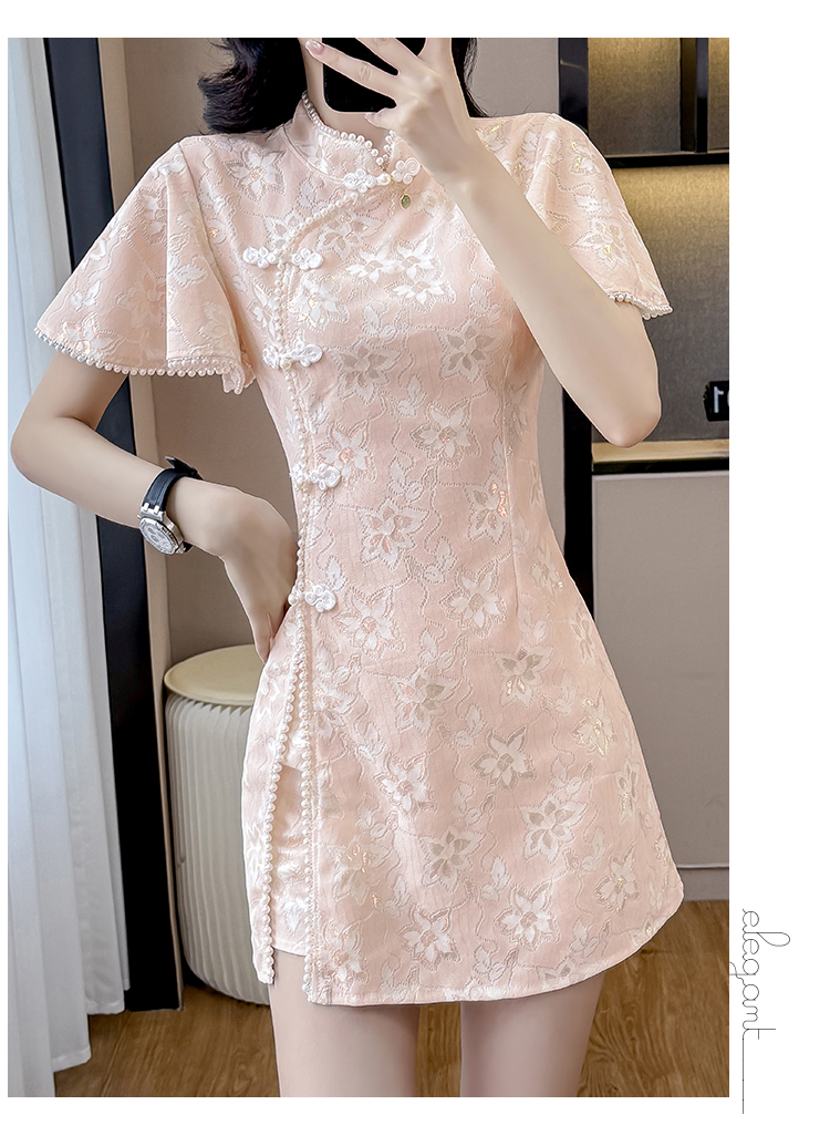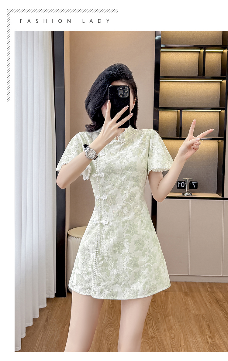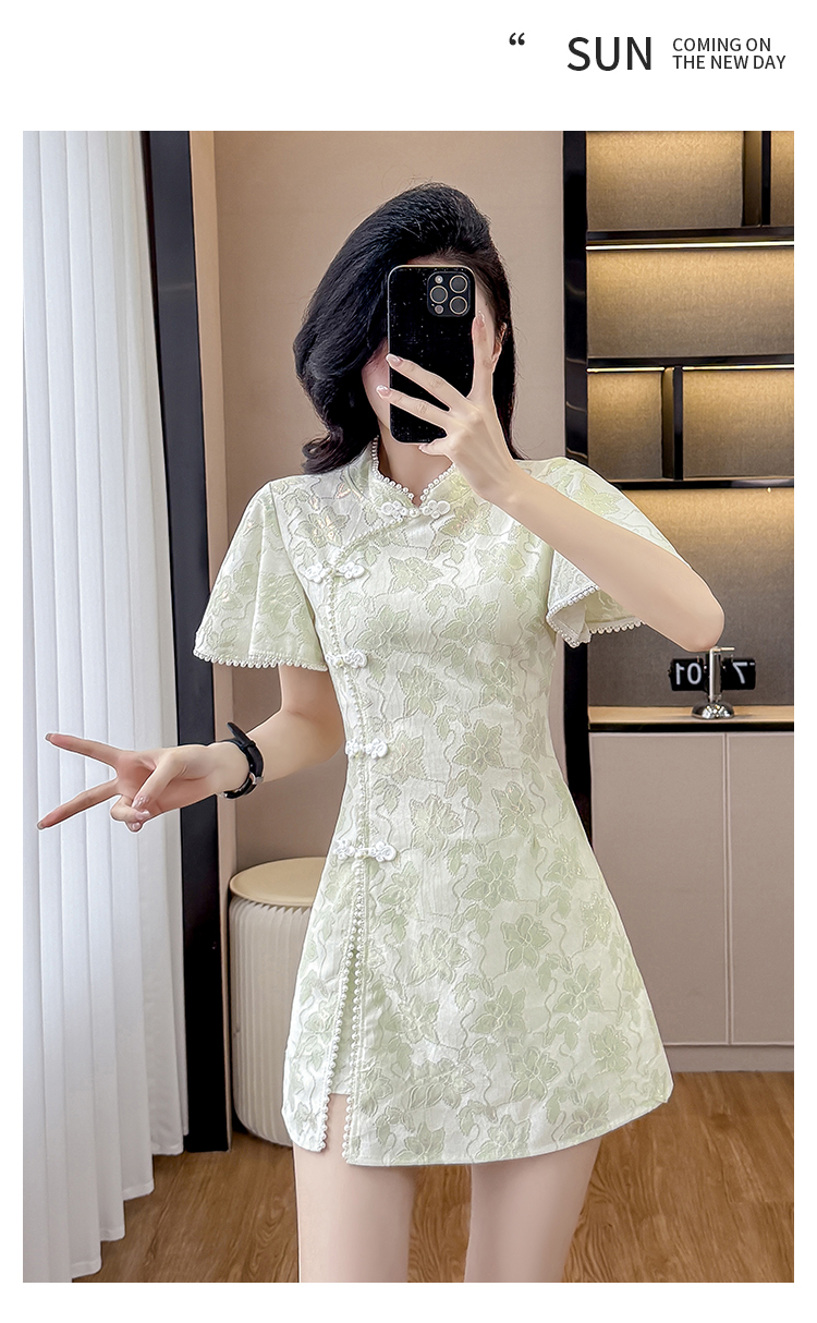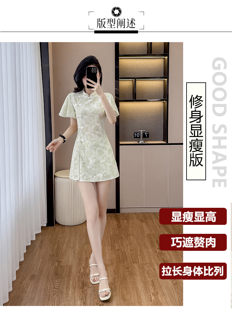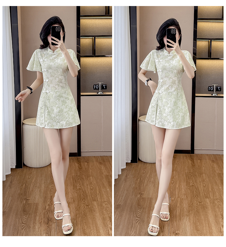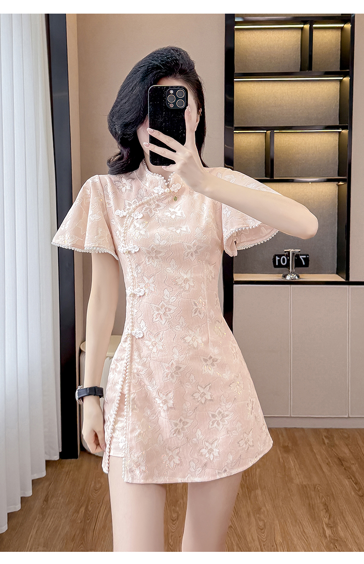 BY9180#夏季新中式复古改良旗袍裙盘扣蕾丝国风连衣裙短裤两件套