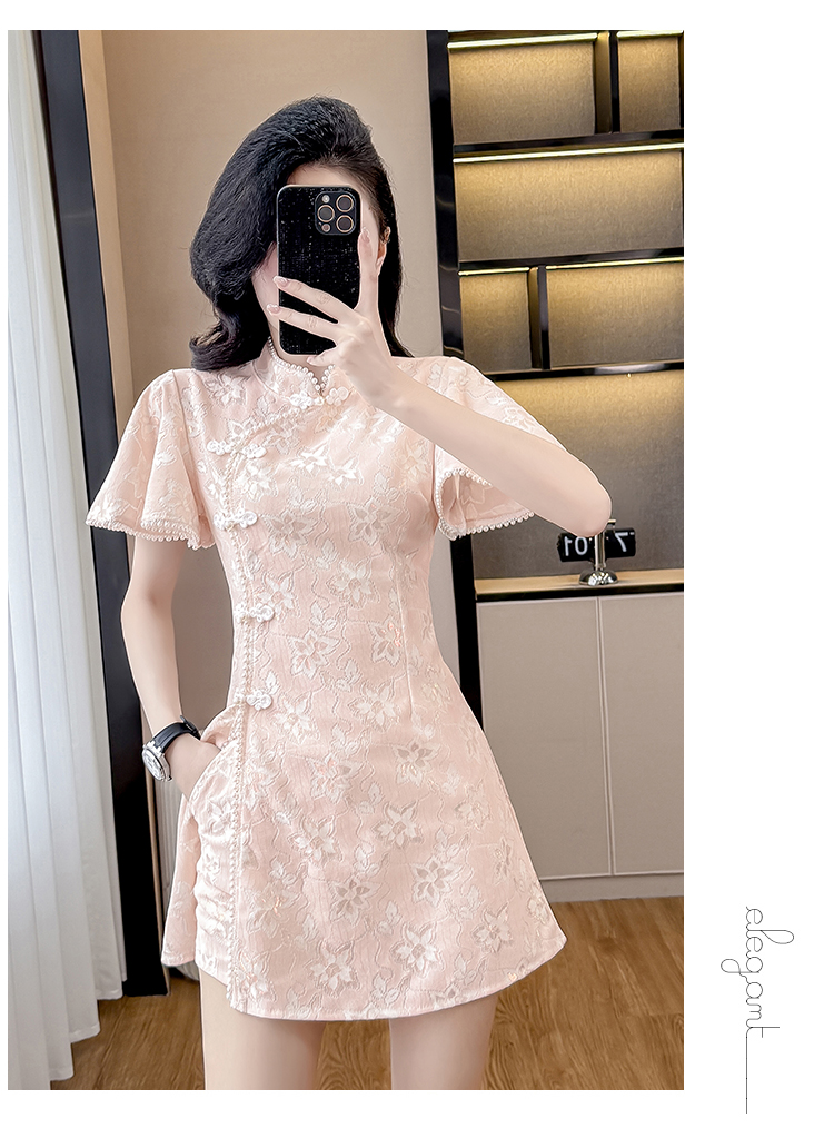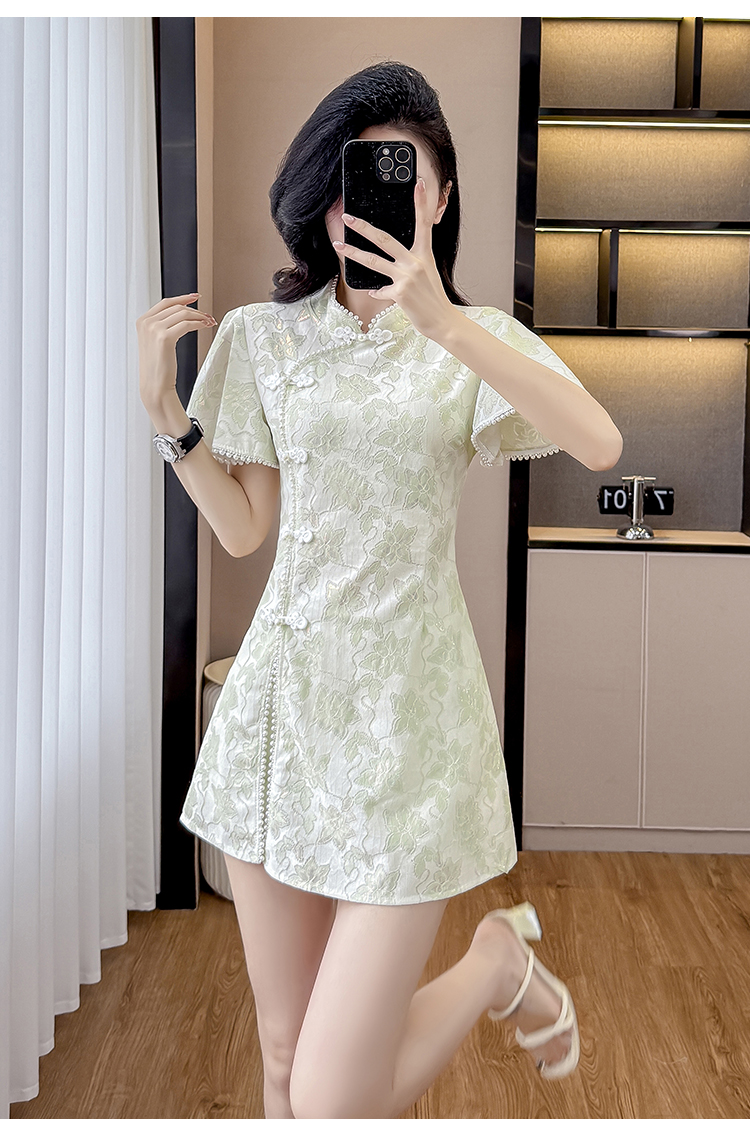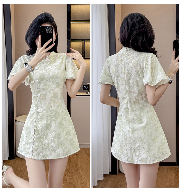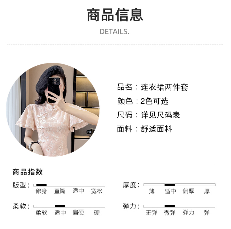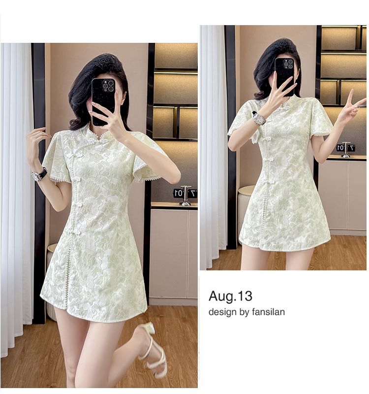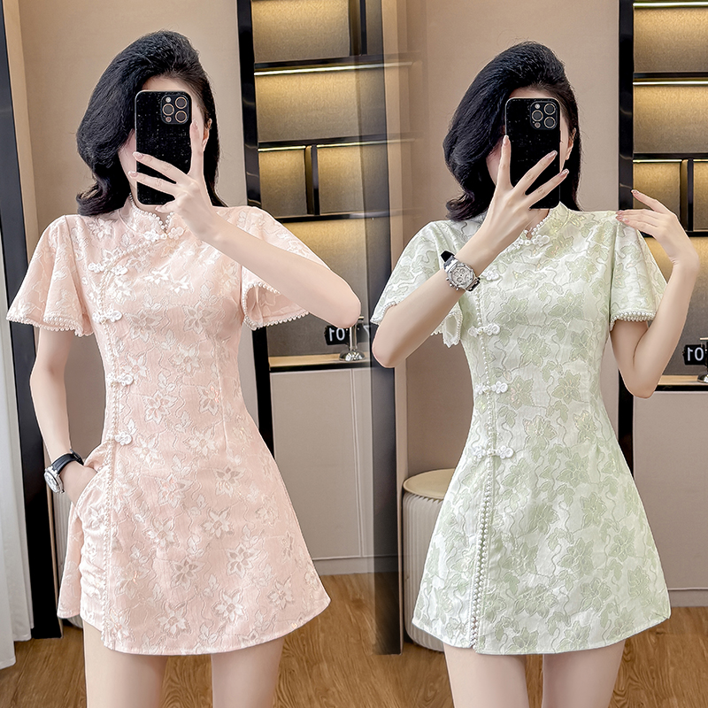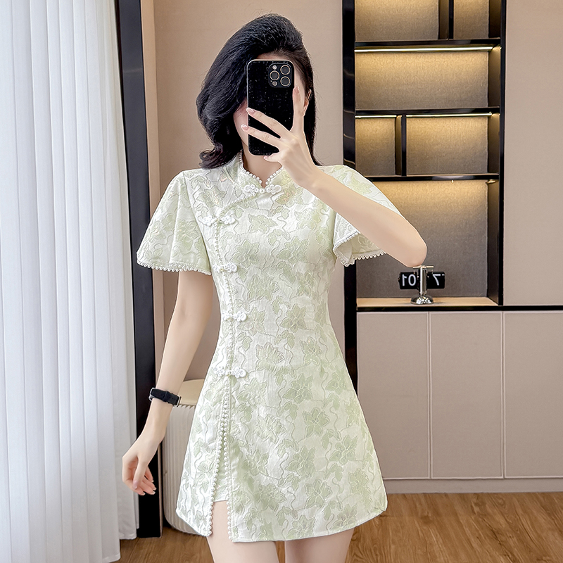 BY9180#夏季新中式复古改良旗袍裙盘扣蕾丝国风连衣裙短裤两件套
