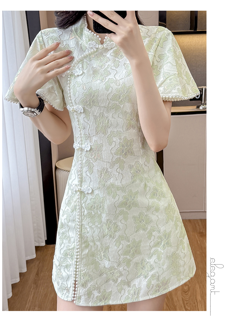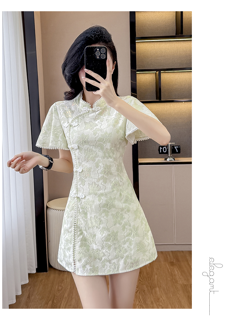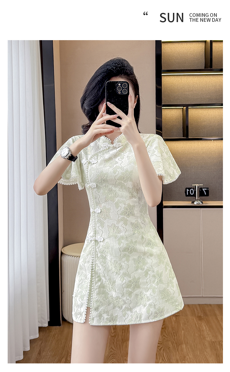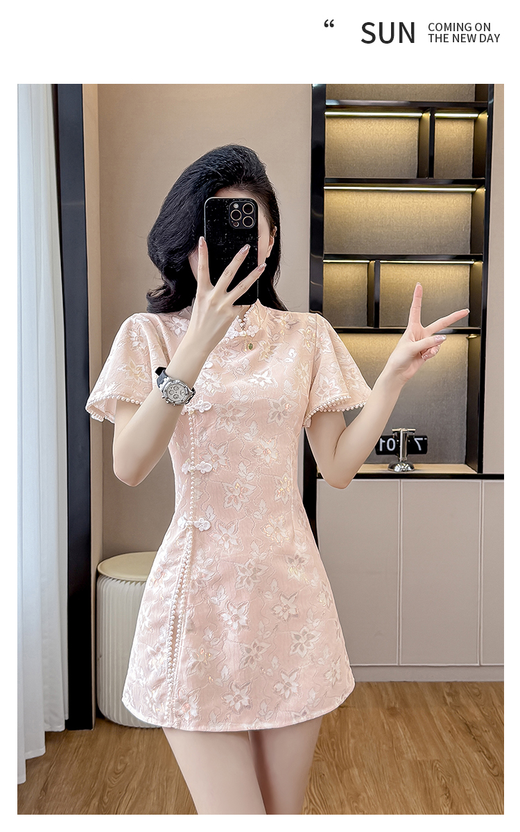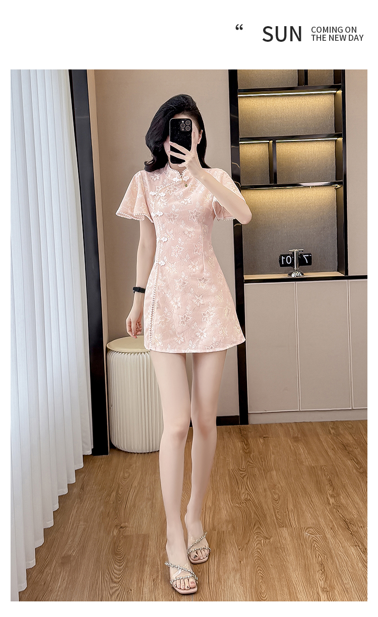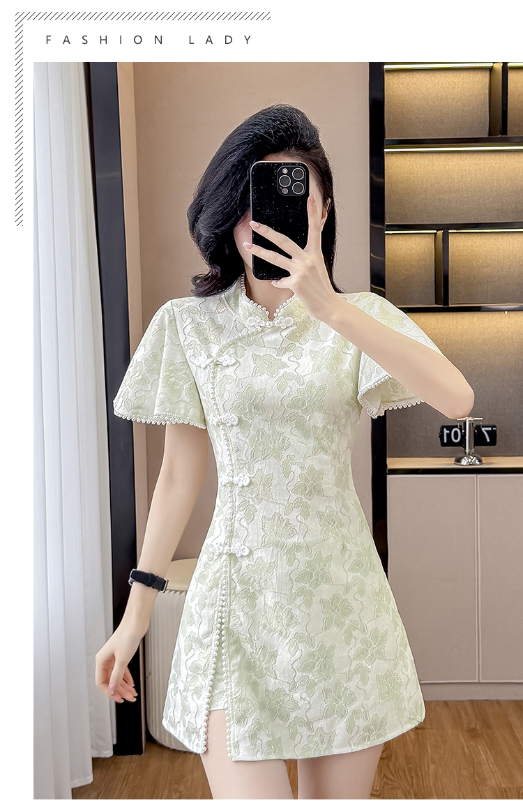 BY9180#夏季新中式复古改良旗袍裙盘扣蕾丝国风连衣裙短裤两件套