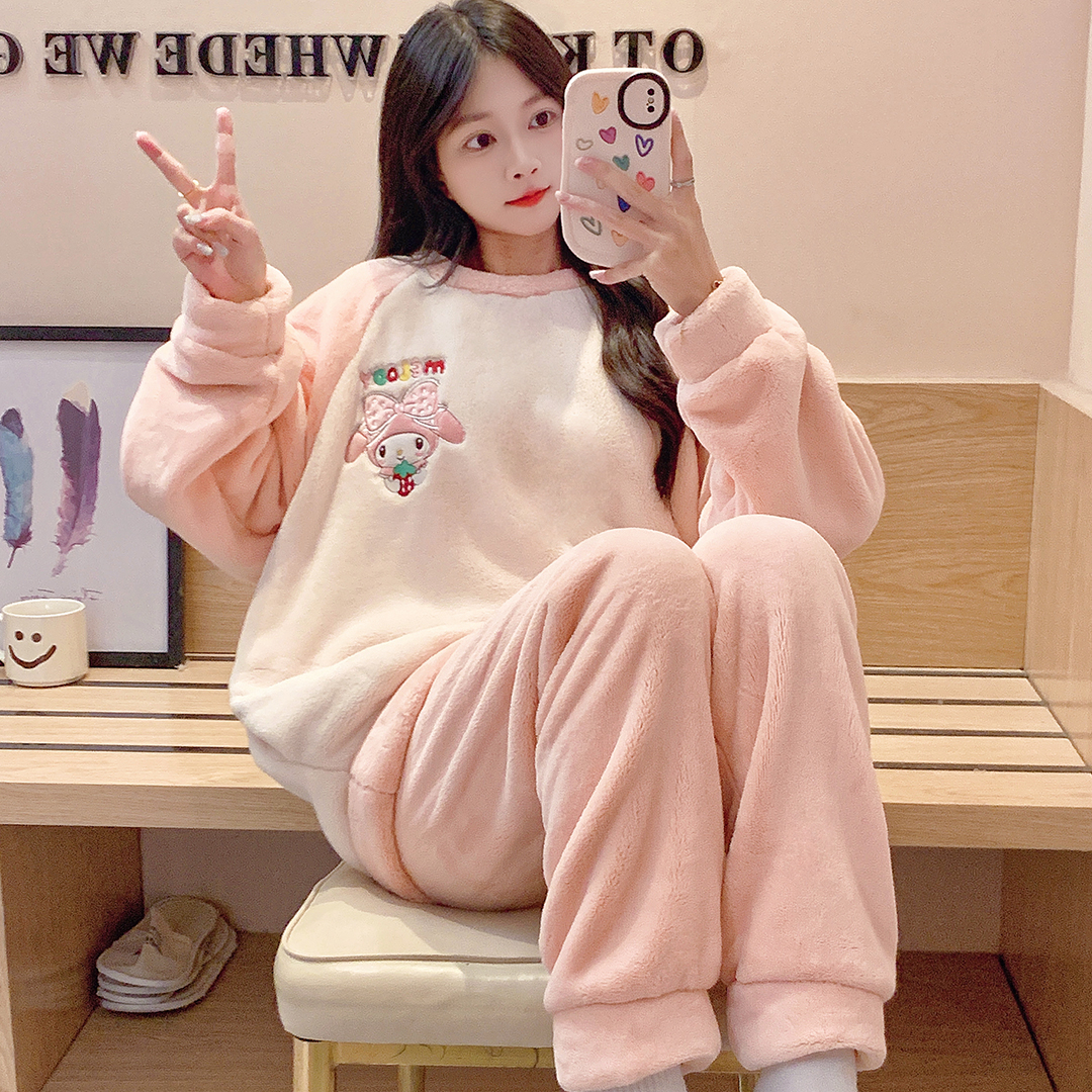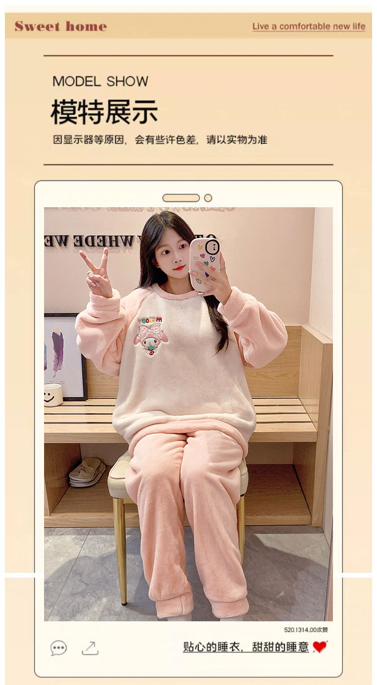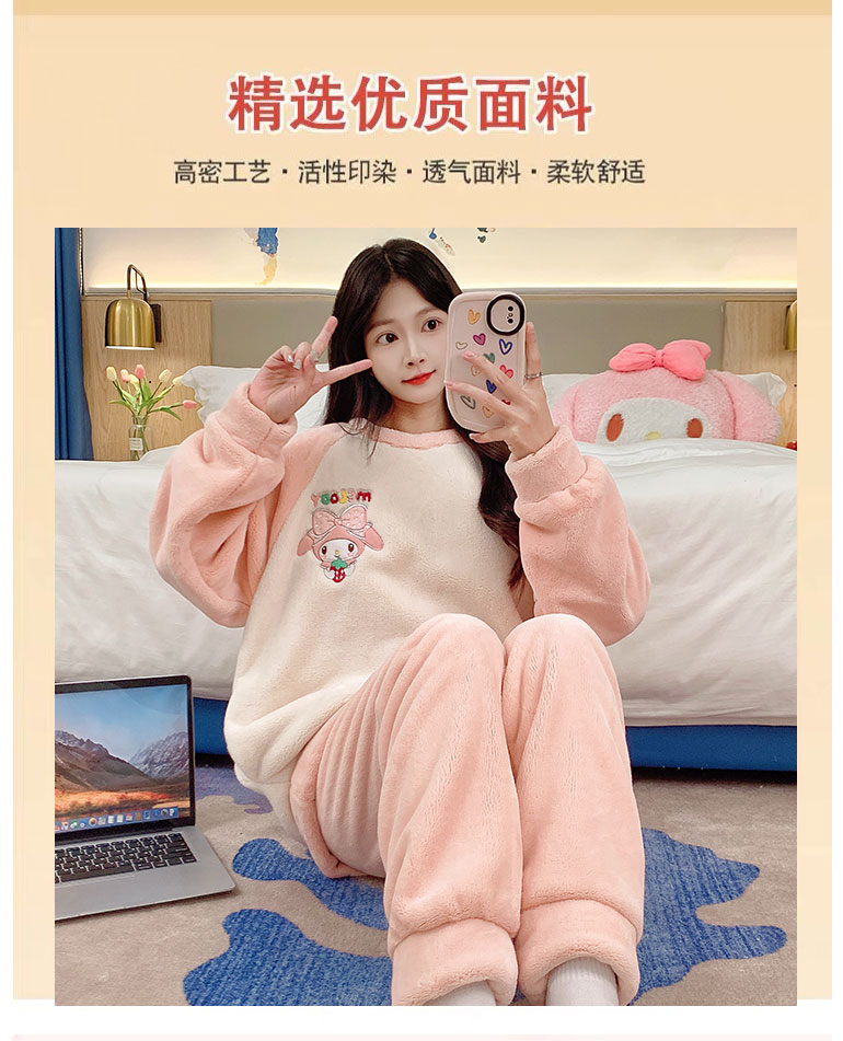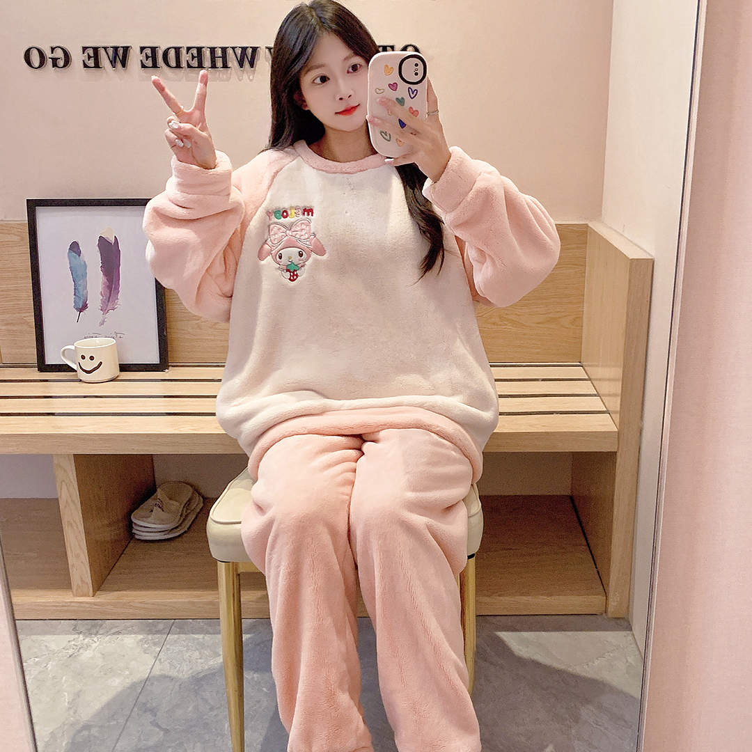 MY15409# 法兰绒休闲绒套装女士套头睡衣家居服卡通可爱珊瑚绒女裝貨源服裝批發