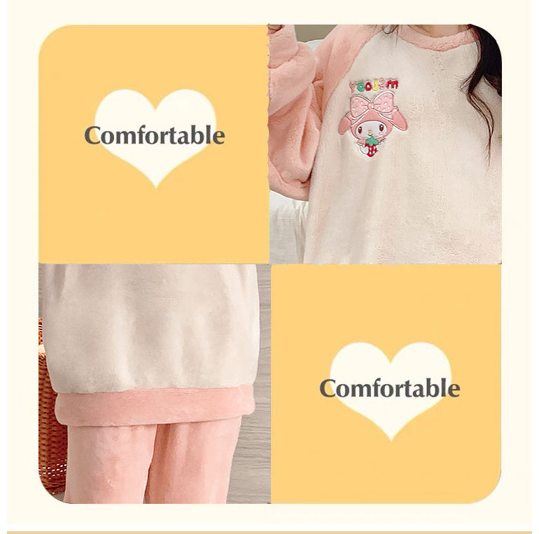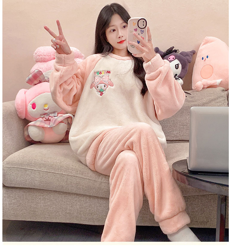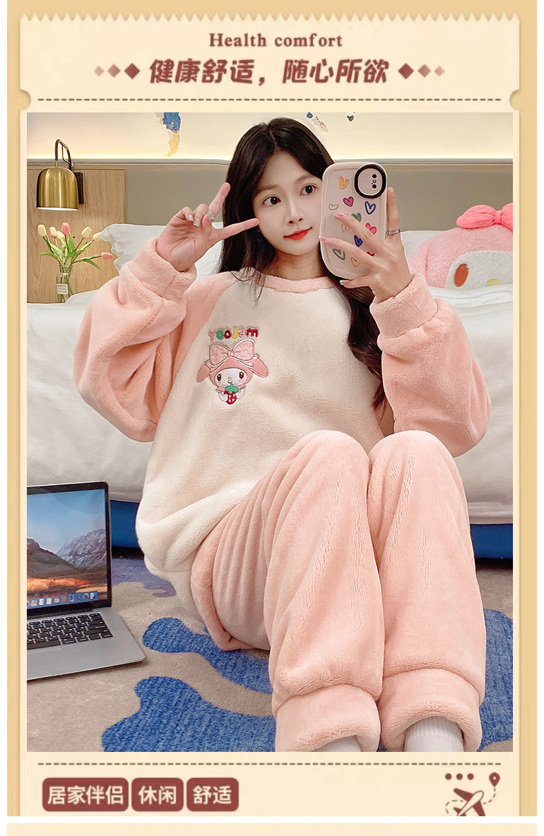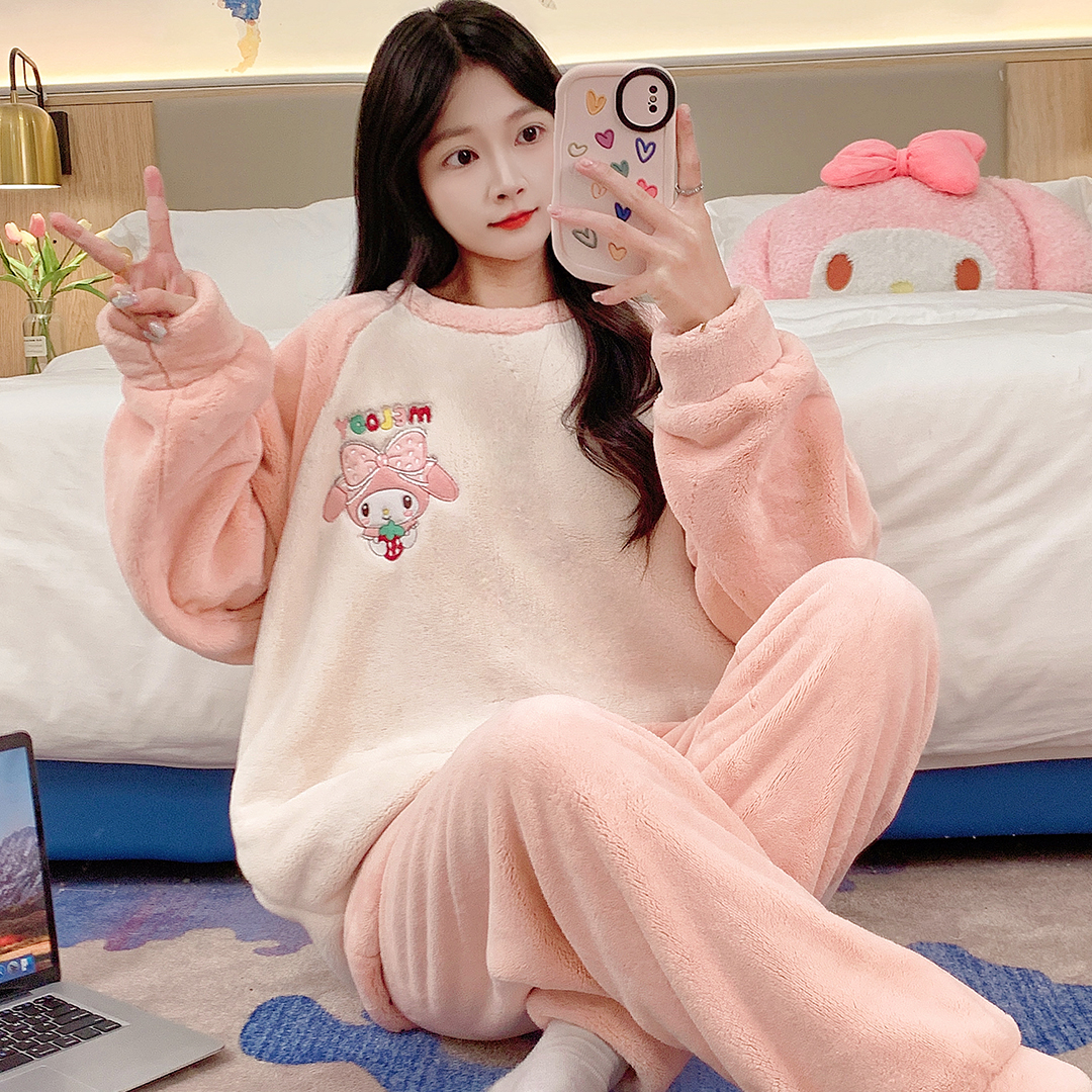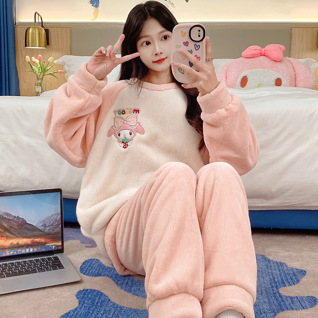 MY15409# 法兰绒休闲绒套装女士套头睡衣家居服卡通可爱珊瑚绒女裝貨源服裝批發