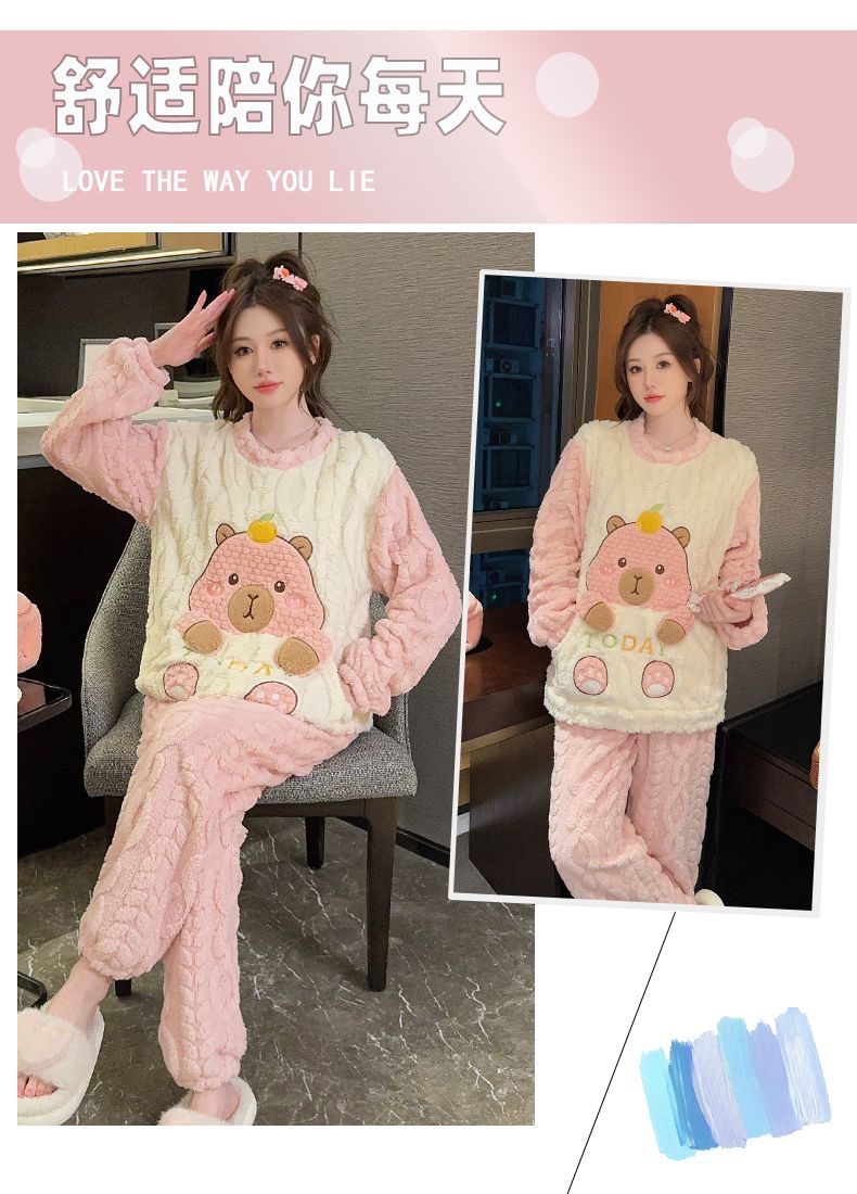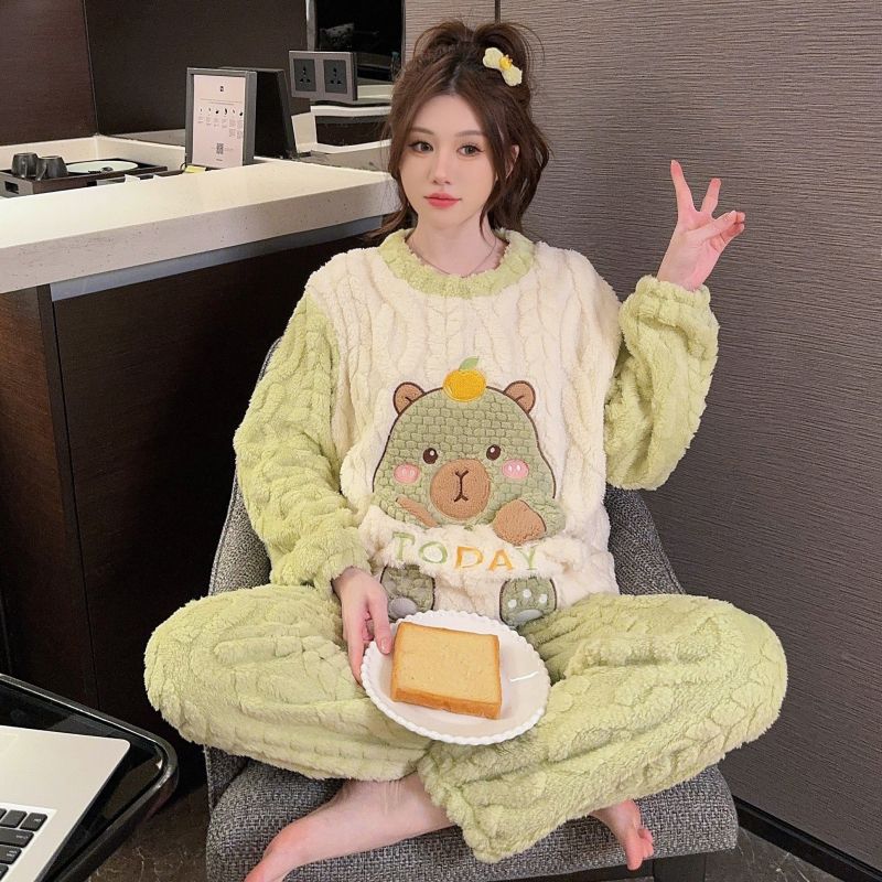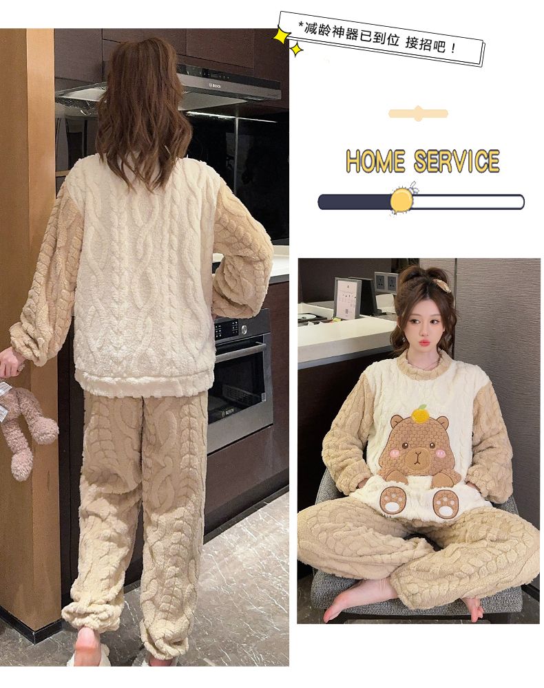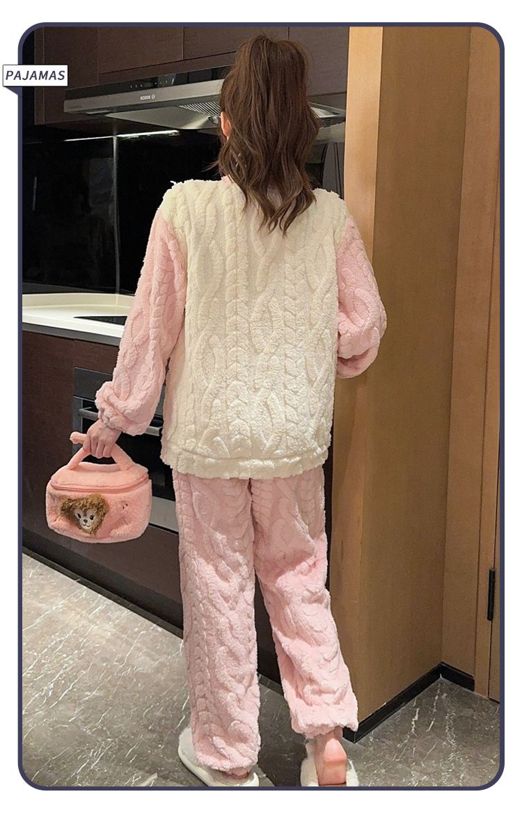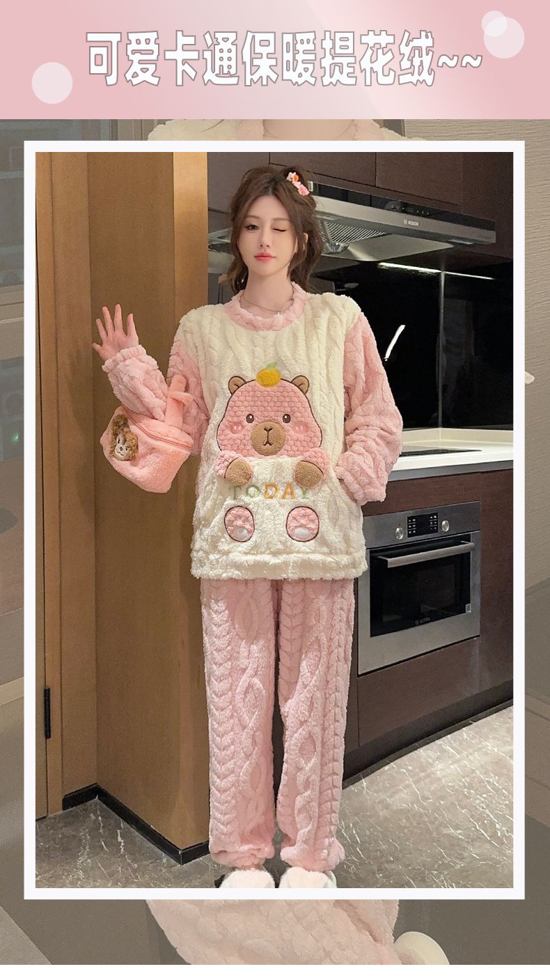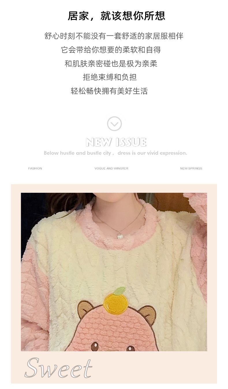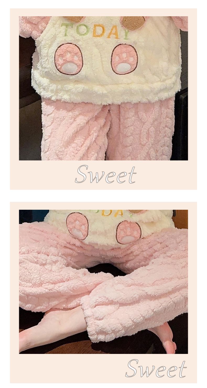 MY15411# 提花绒睡衣少女甜美时尚花边长袖加肥大码230斤胖M家居服女裝貨源服裝批發