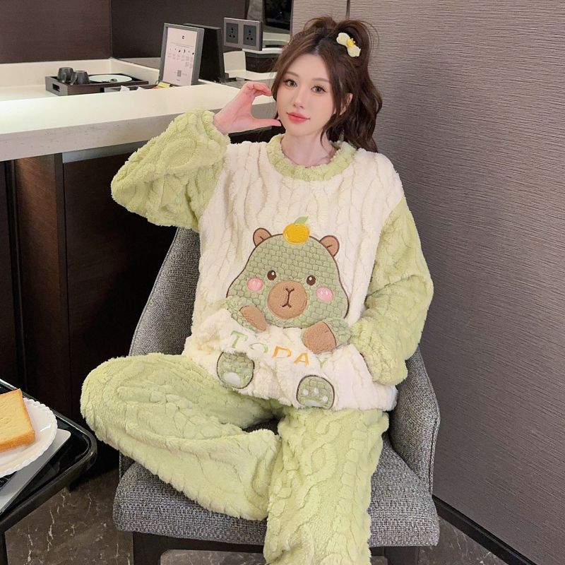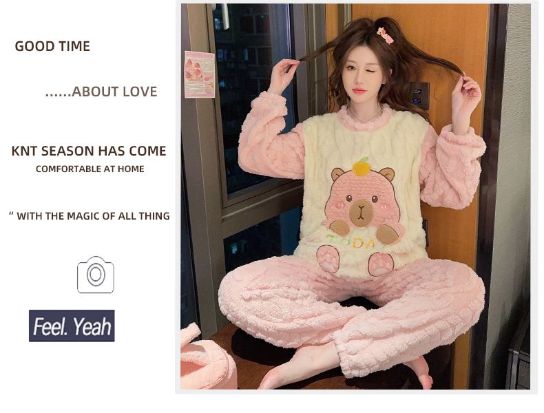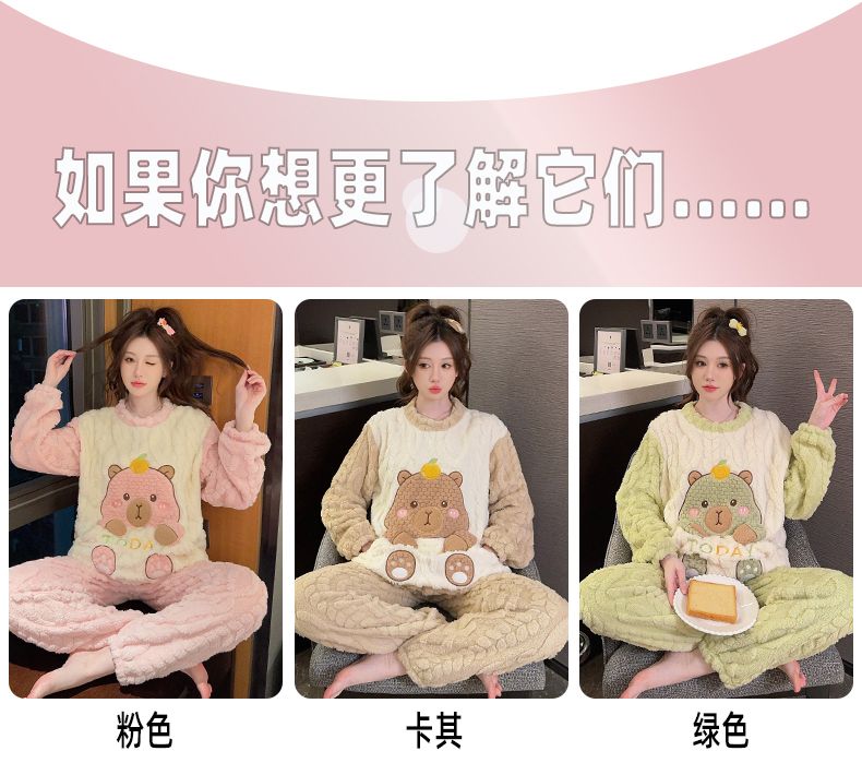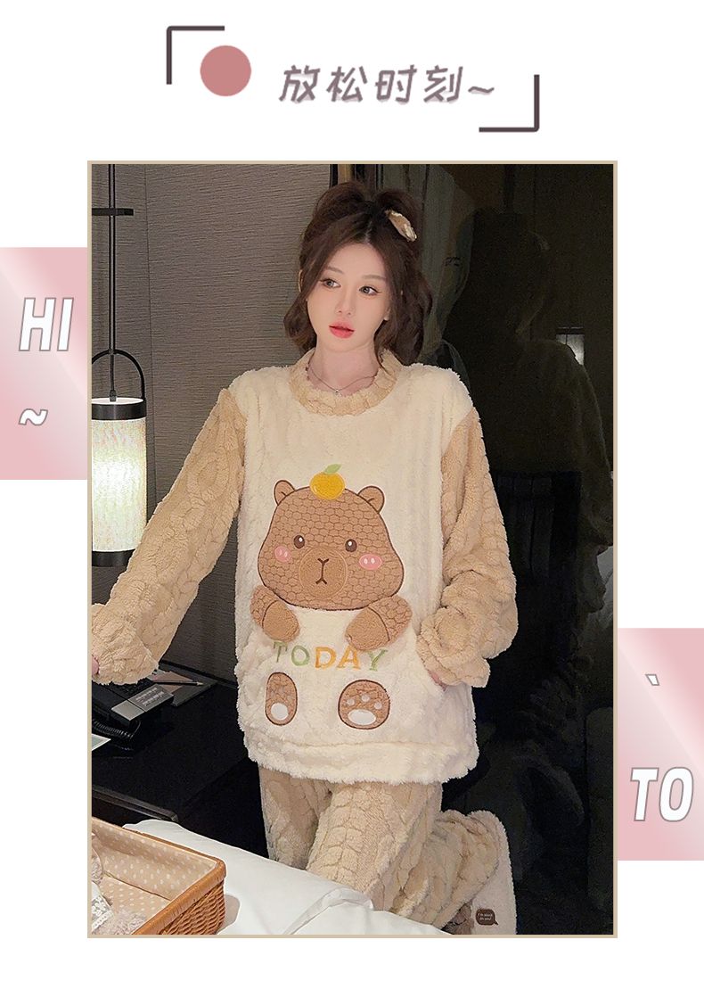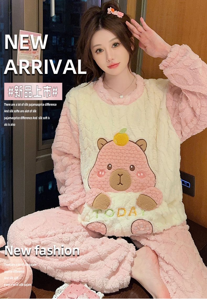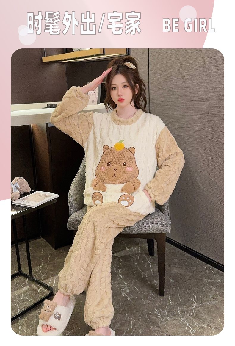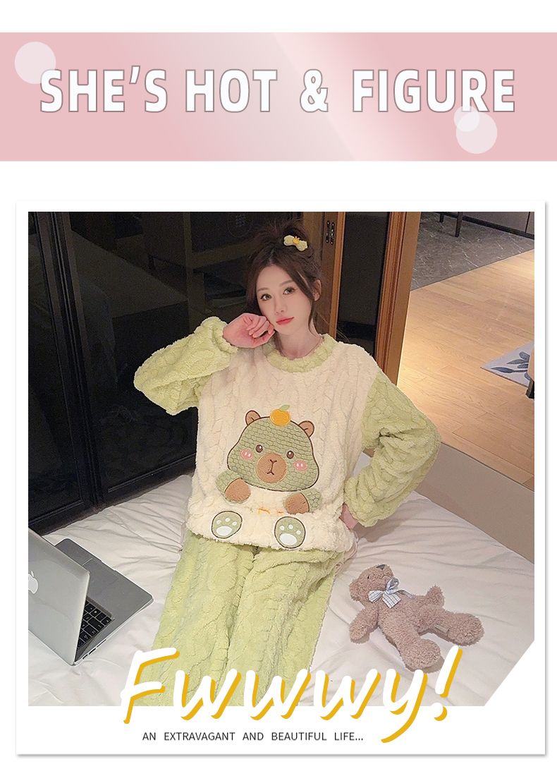 MY15411# 提花绒睡衣少女甜美时尚花边长袖加肥大码230斤胖M家居服女裝貨源服裝批發