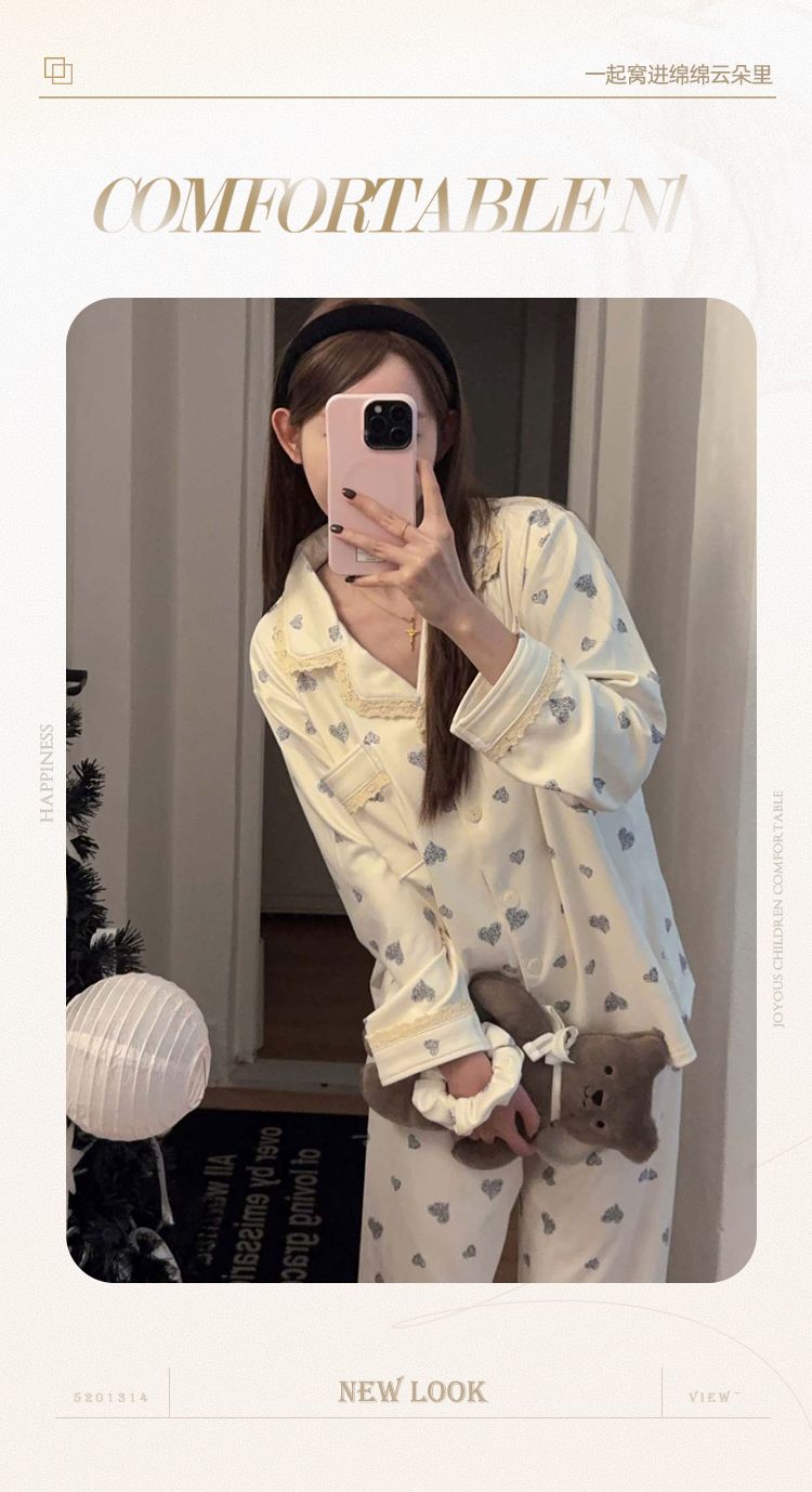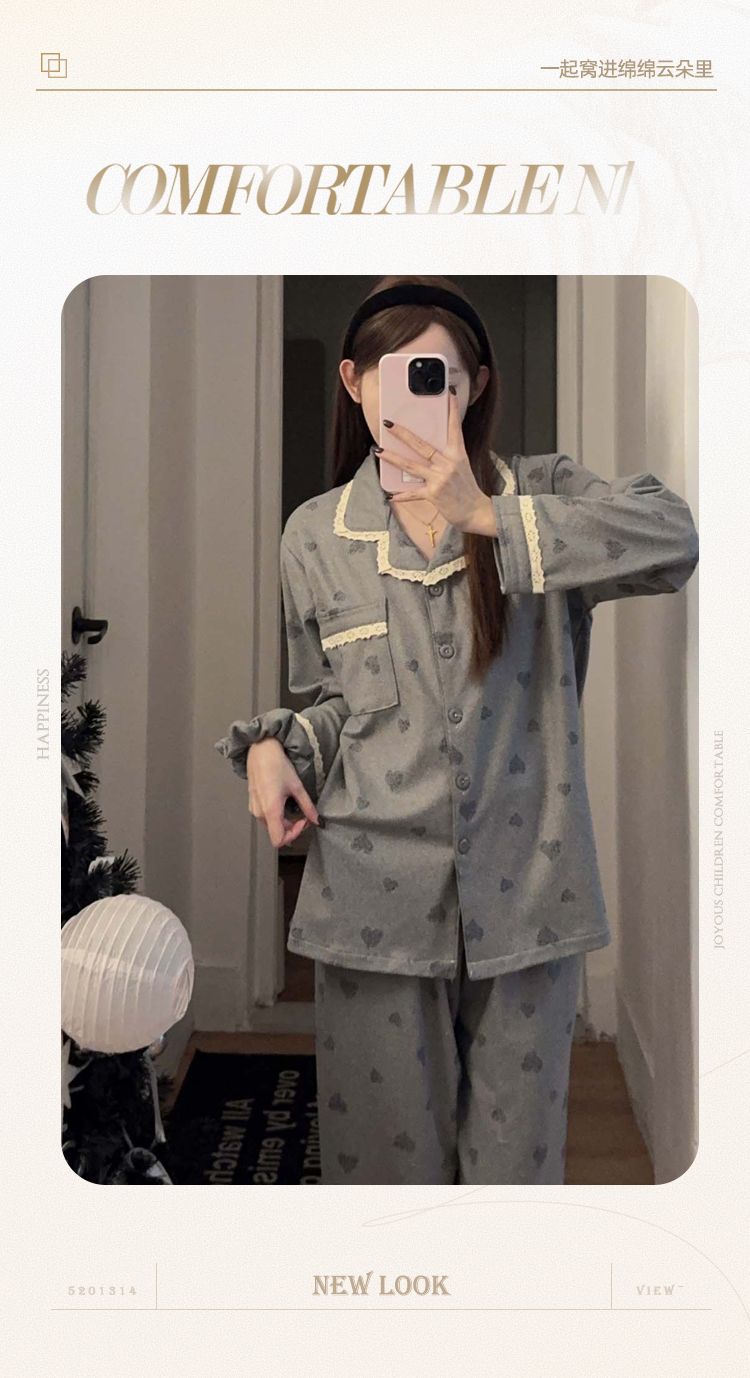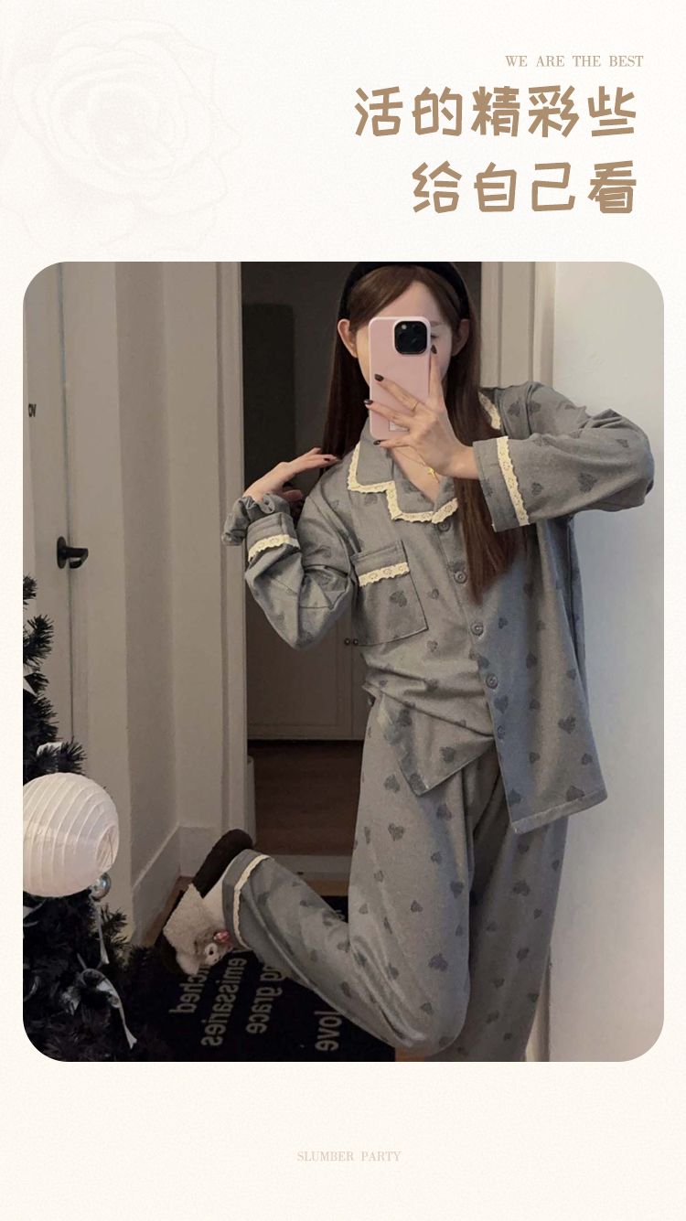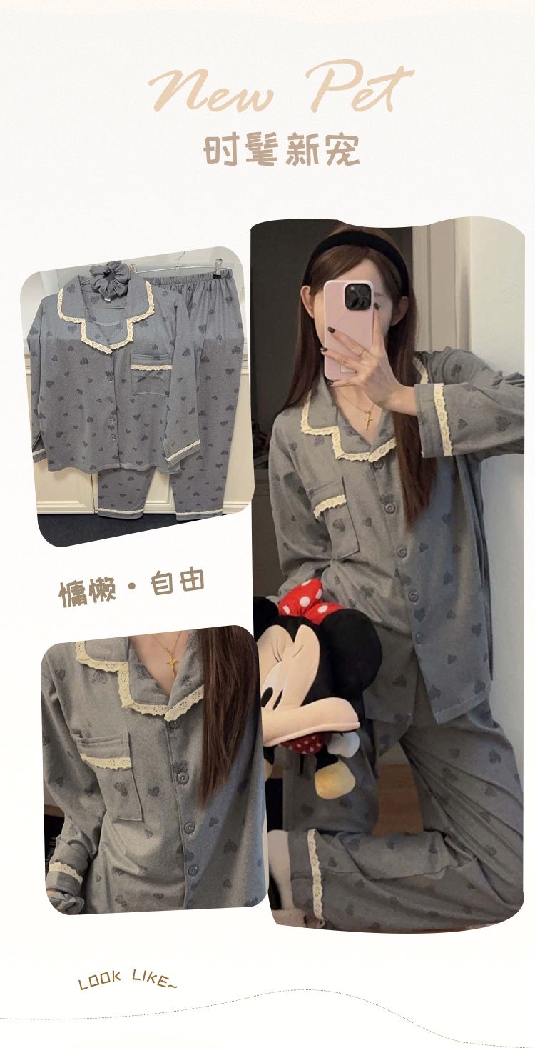MY15411# 提花绒睡衣少女甜美时尚花边长袖加肥大码230斤胖M家居服...