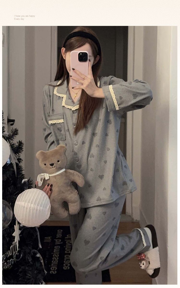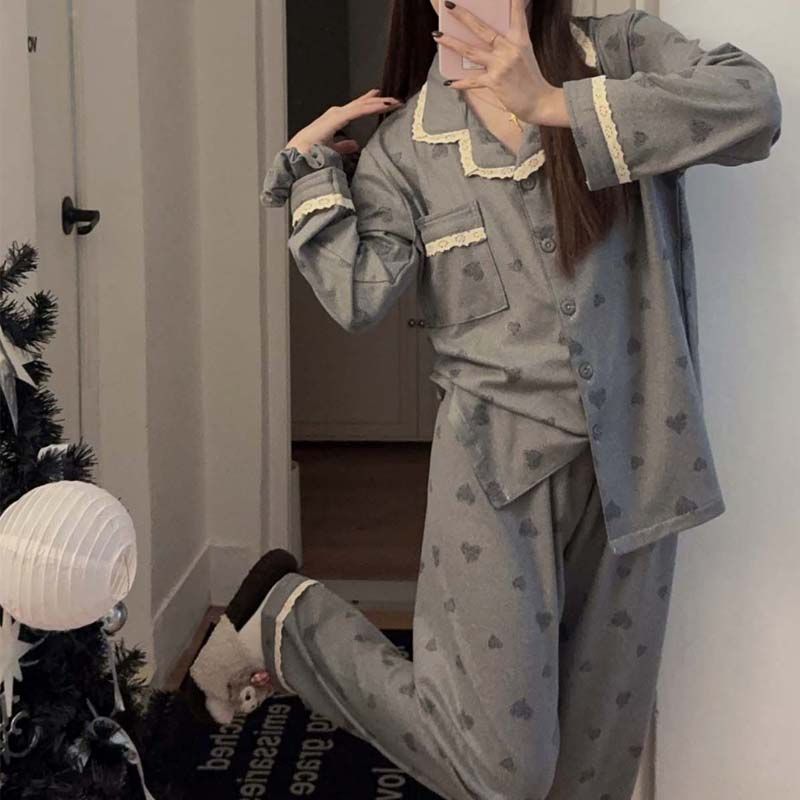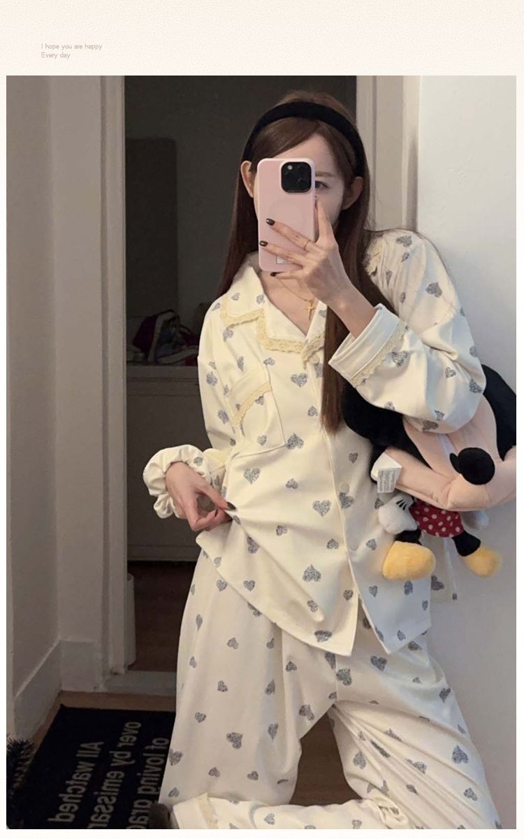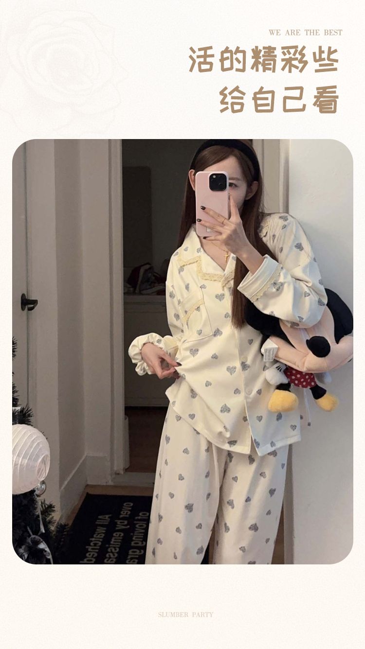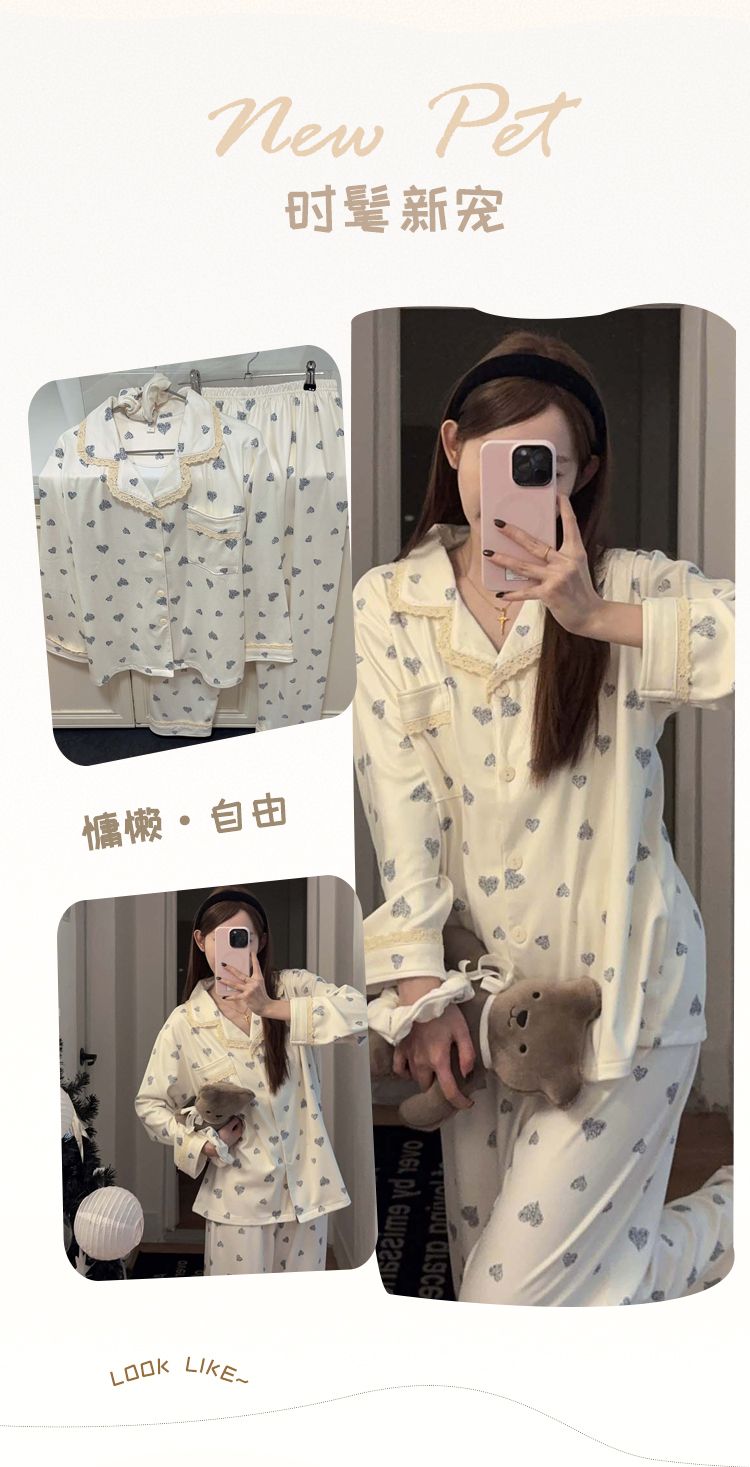 MY15411# 提花绒睡衣少女甜美时尚花边长袖加肥大码230斤胖M家居服...