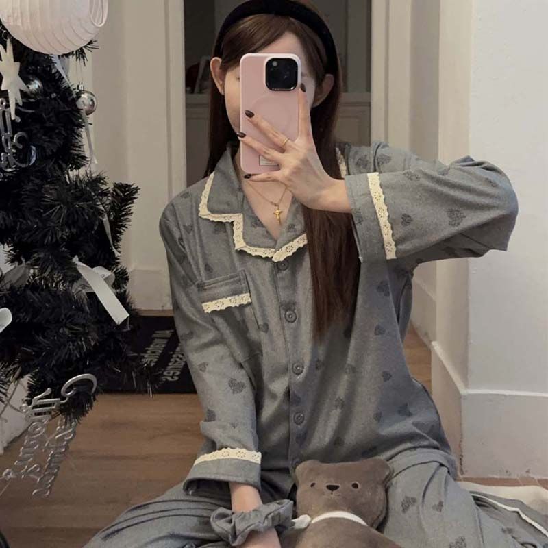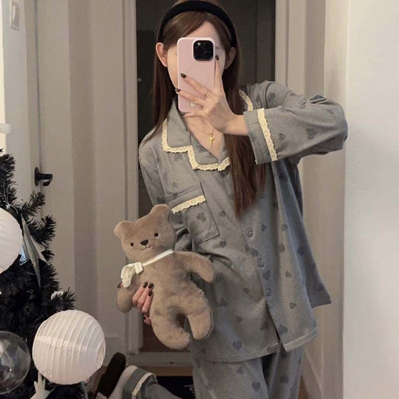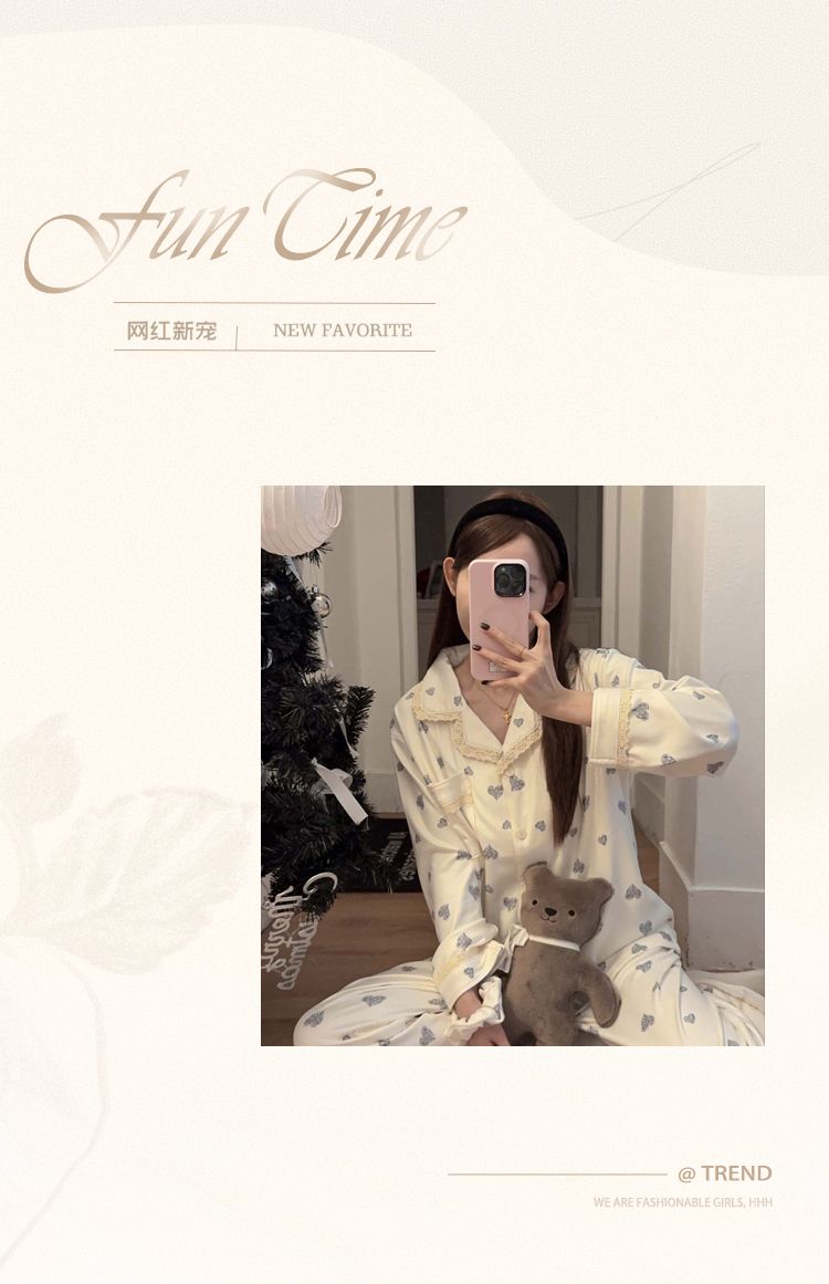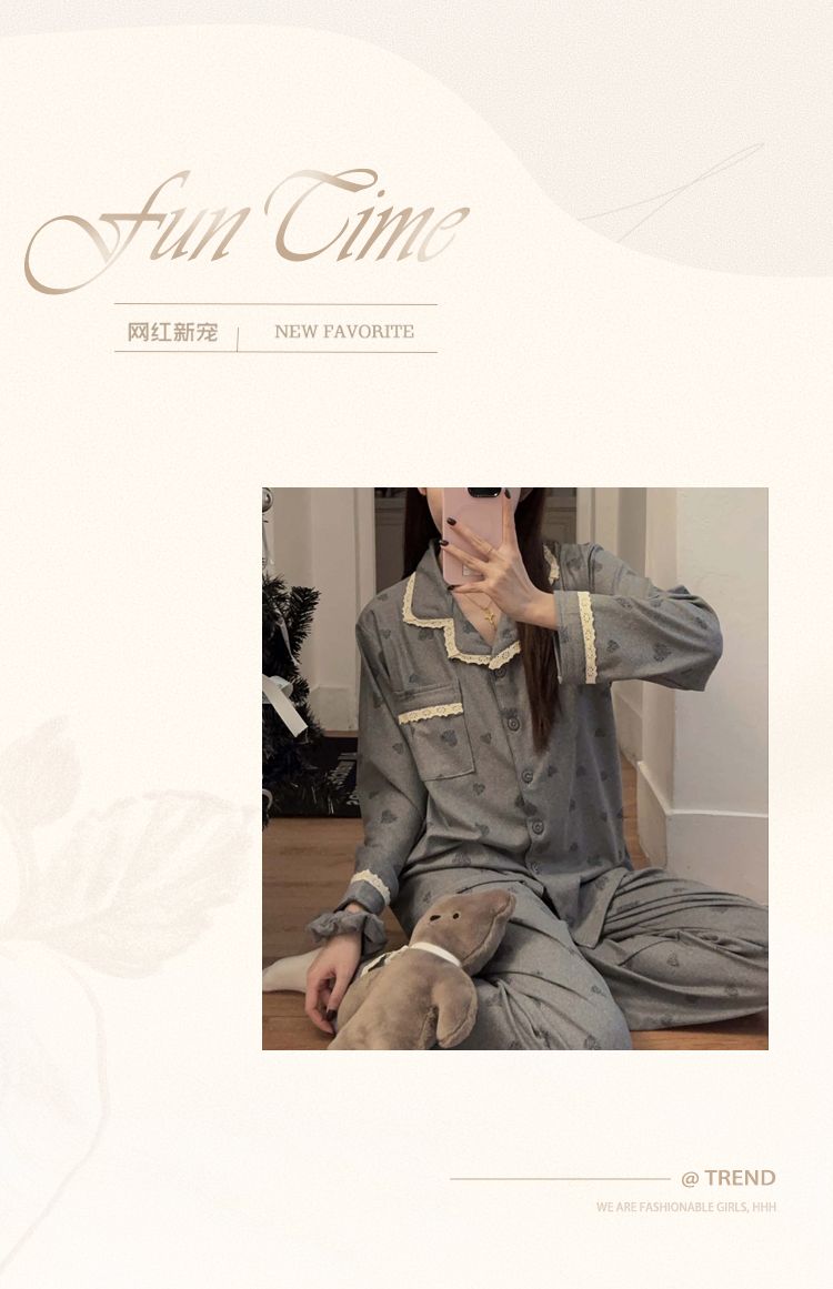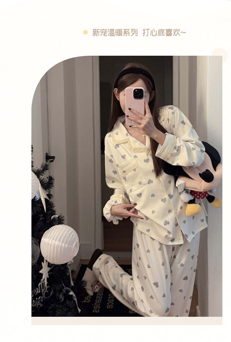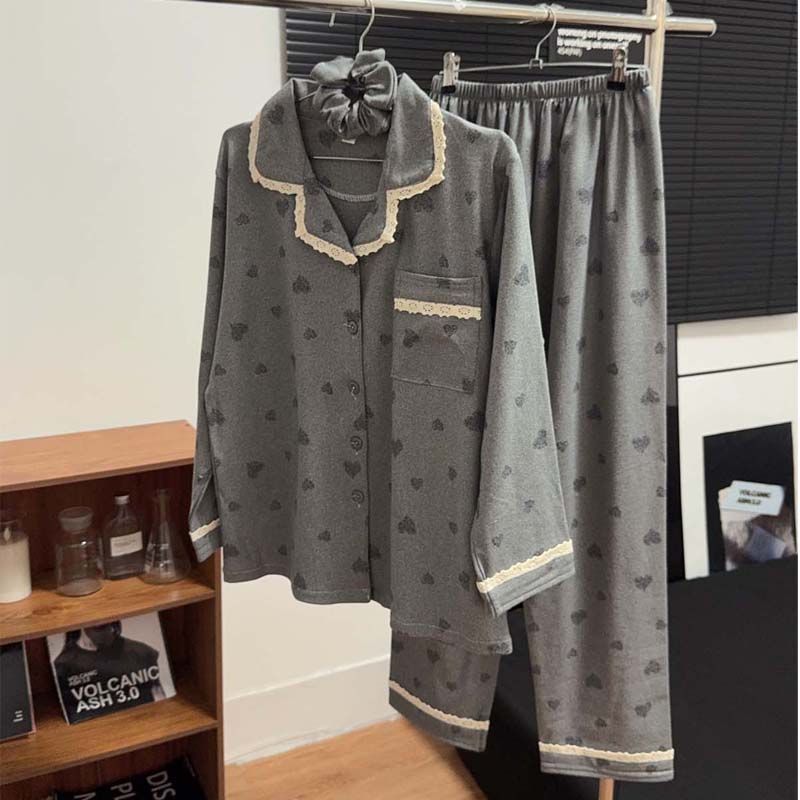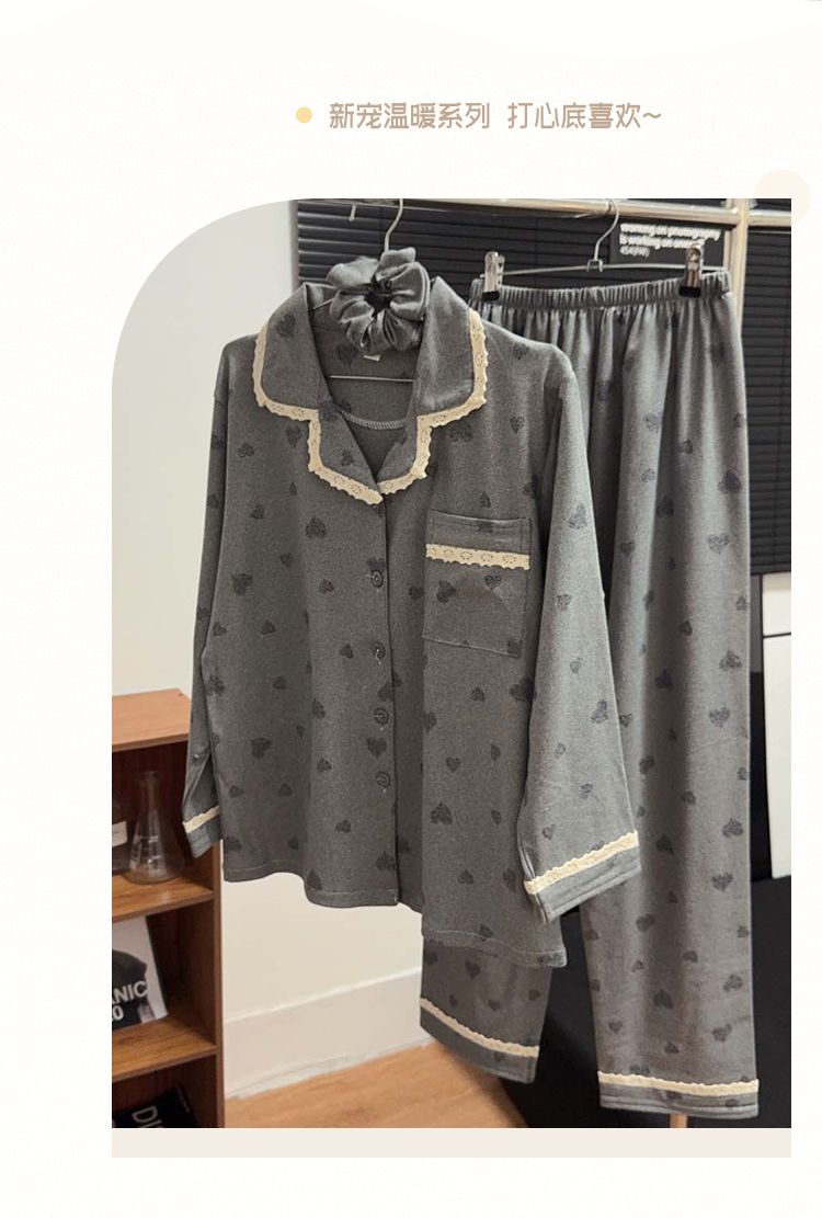 MY15412# 甜美花边睡衣女冬季保暖加厚德绒宽松家居服送发圈女裝貨源服裝批發