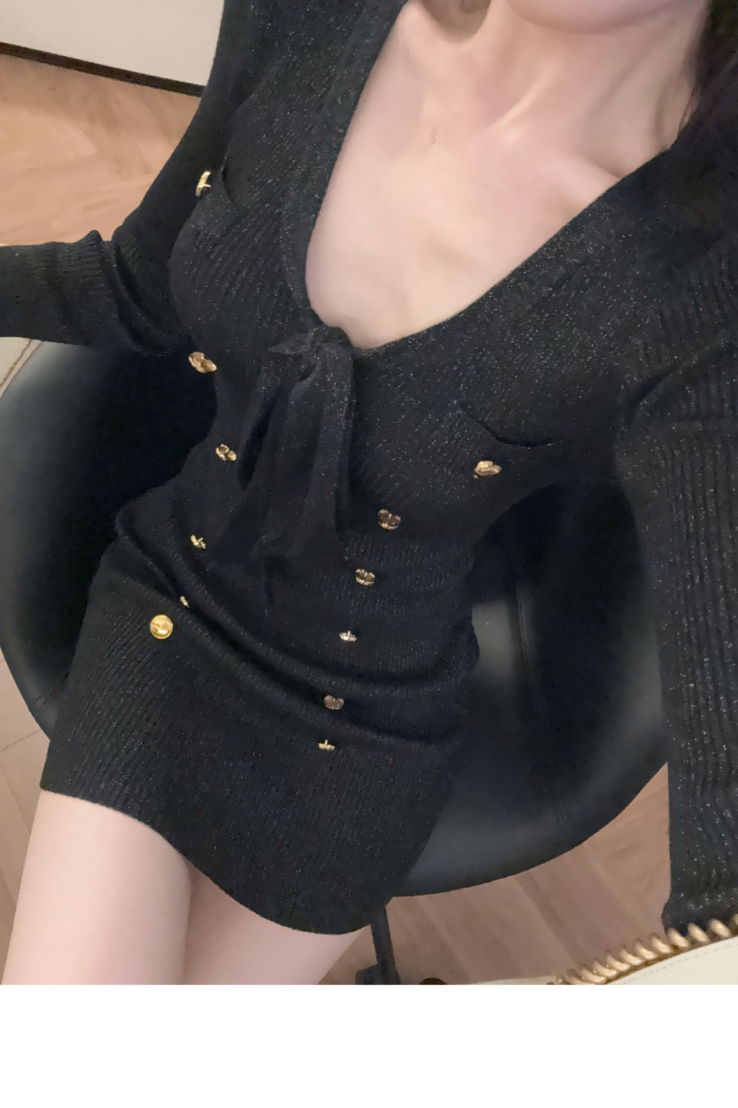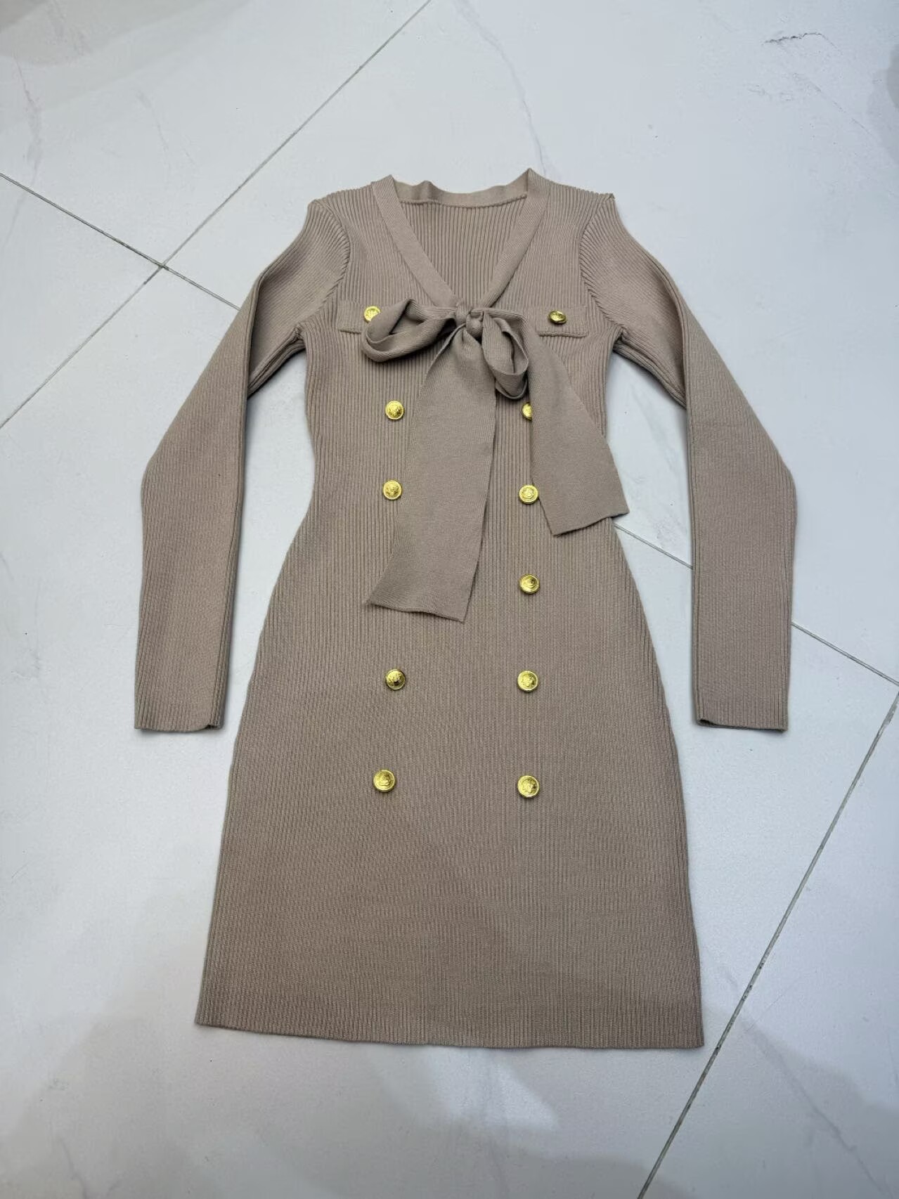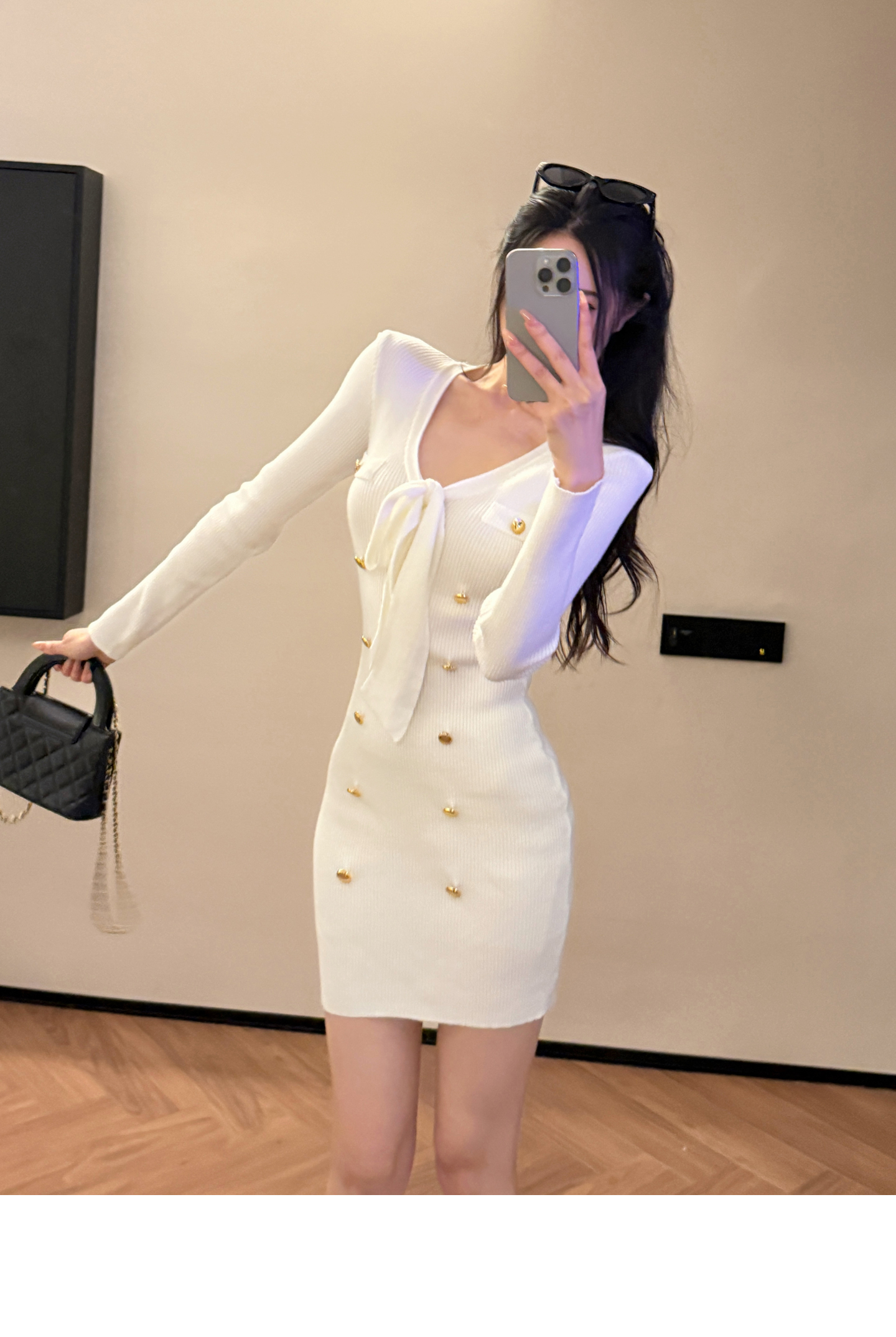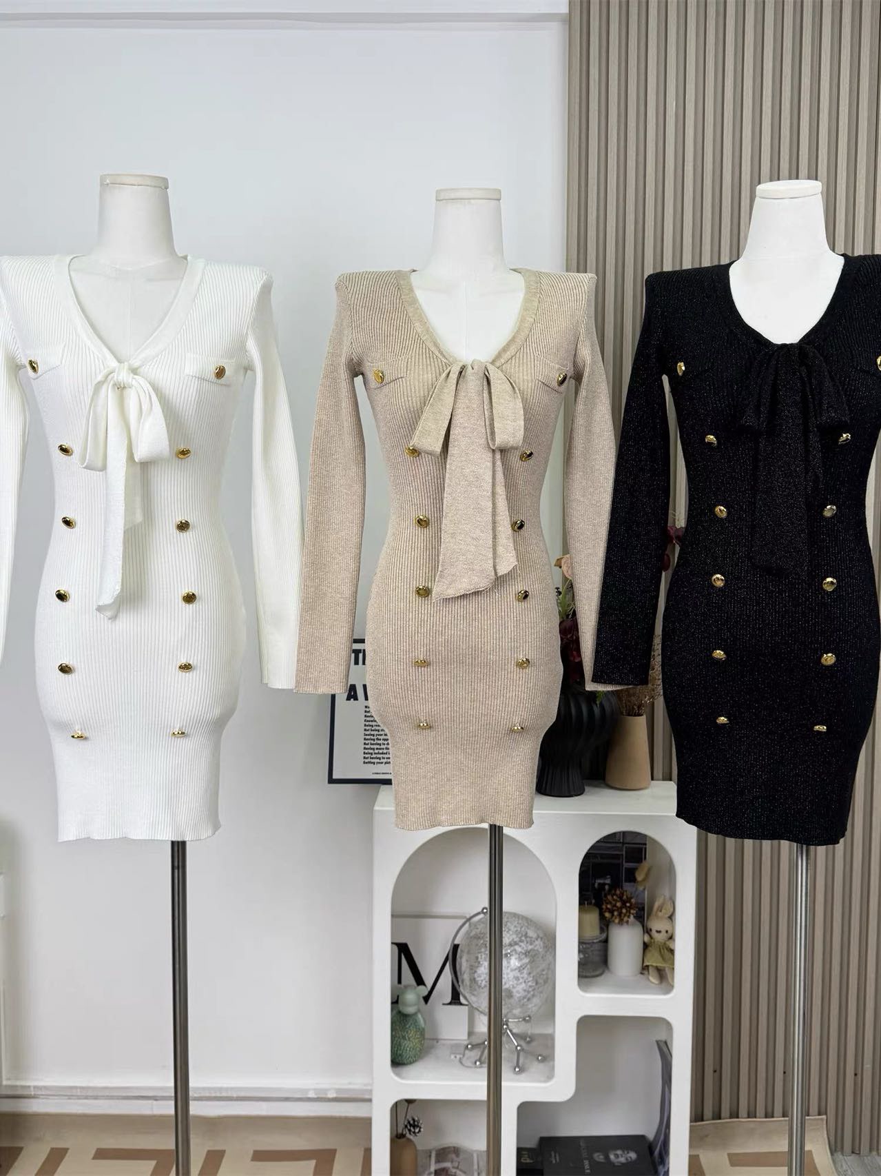 MY15498# 陈一丁Helee 气质小香风系带针织连衣裙收腰长袖打底包臀短裙女裝貨源服裝批發