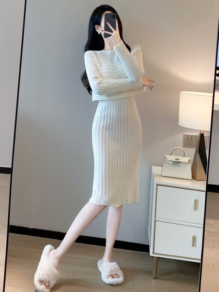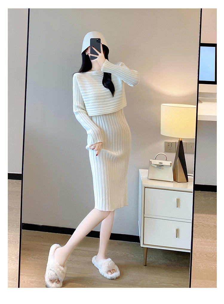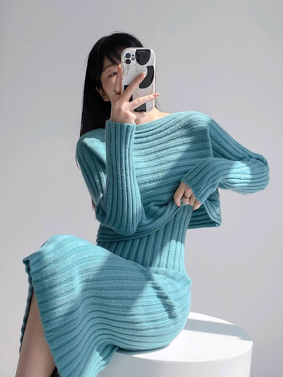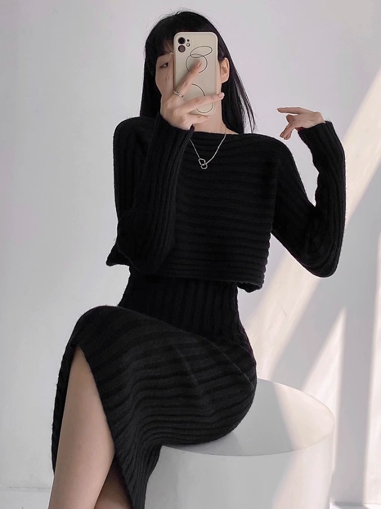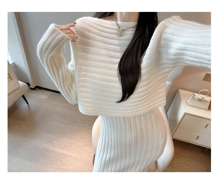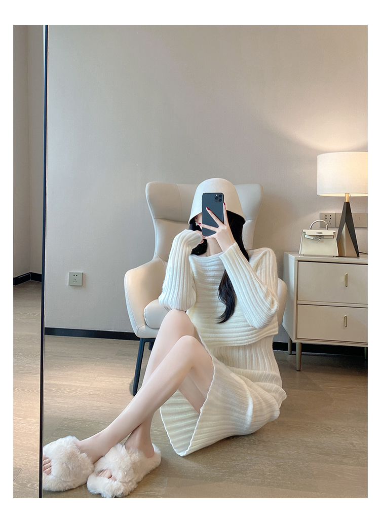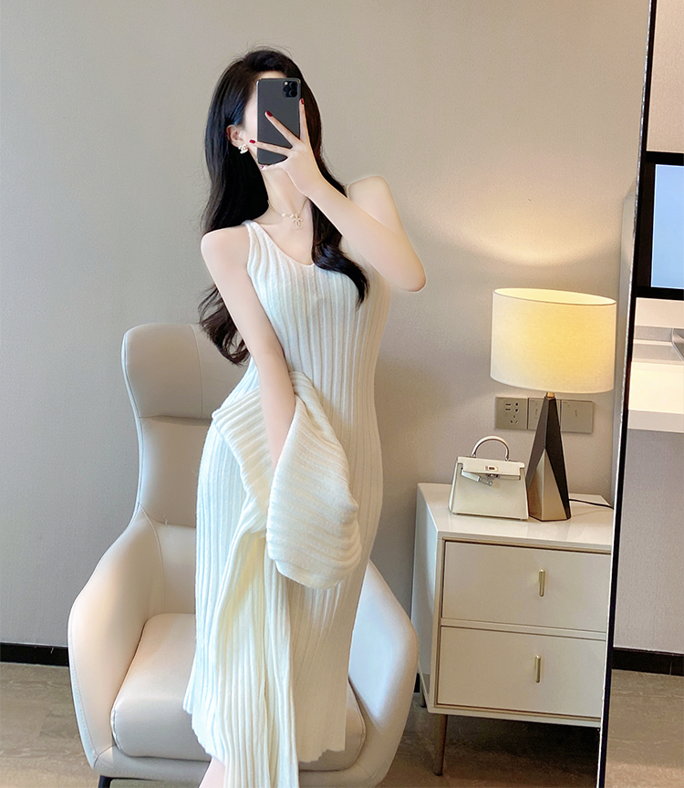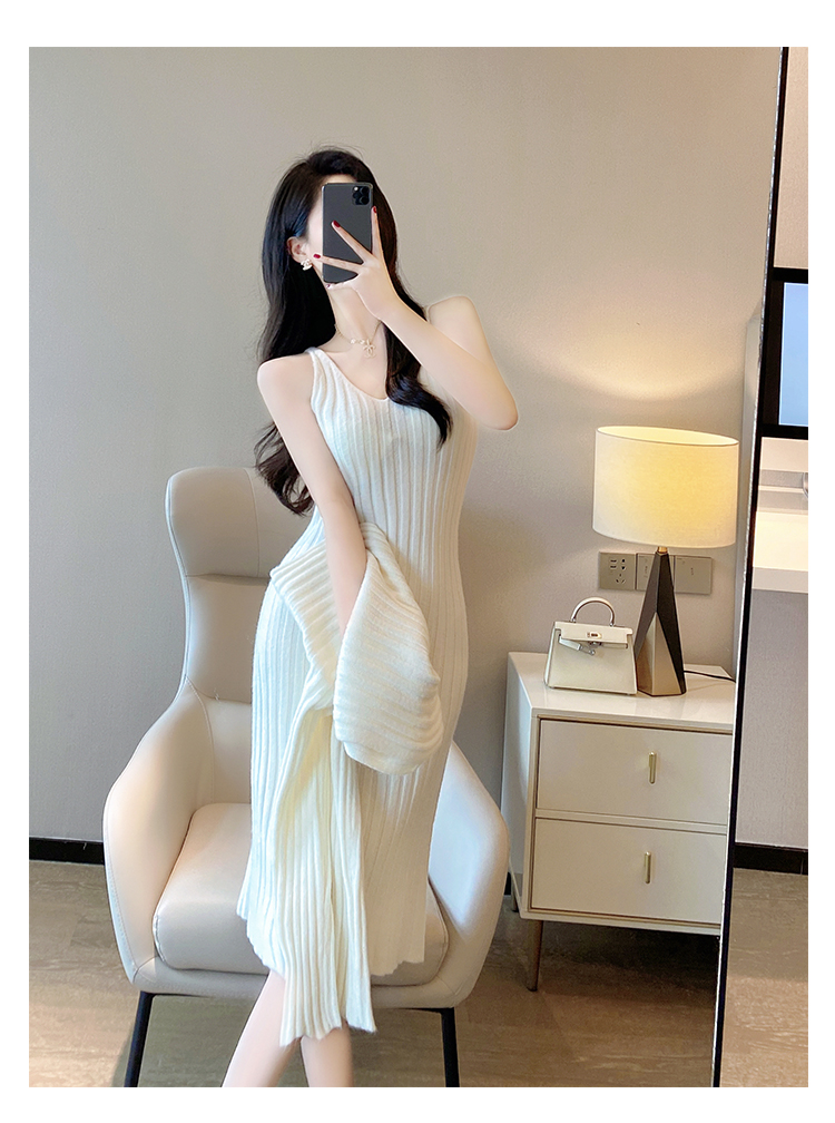 MY15499# 韩系吊带针织连衣裙轻奢高级感长袖温柔气质名媛两件套装女裝貨源服裝批發
