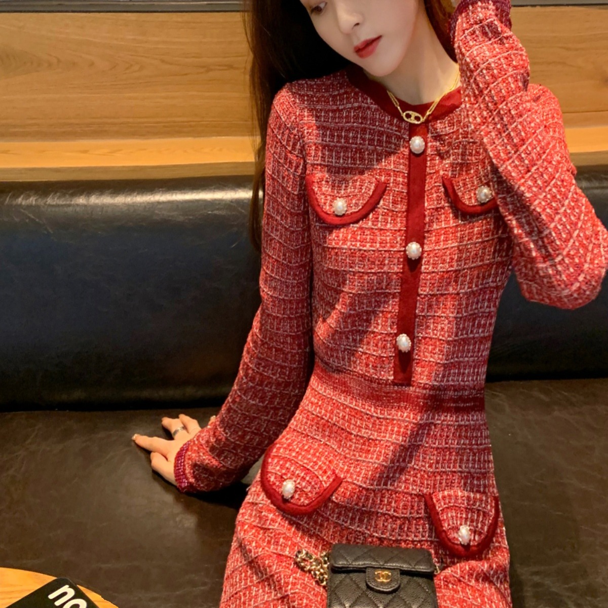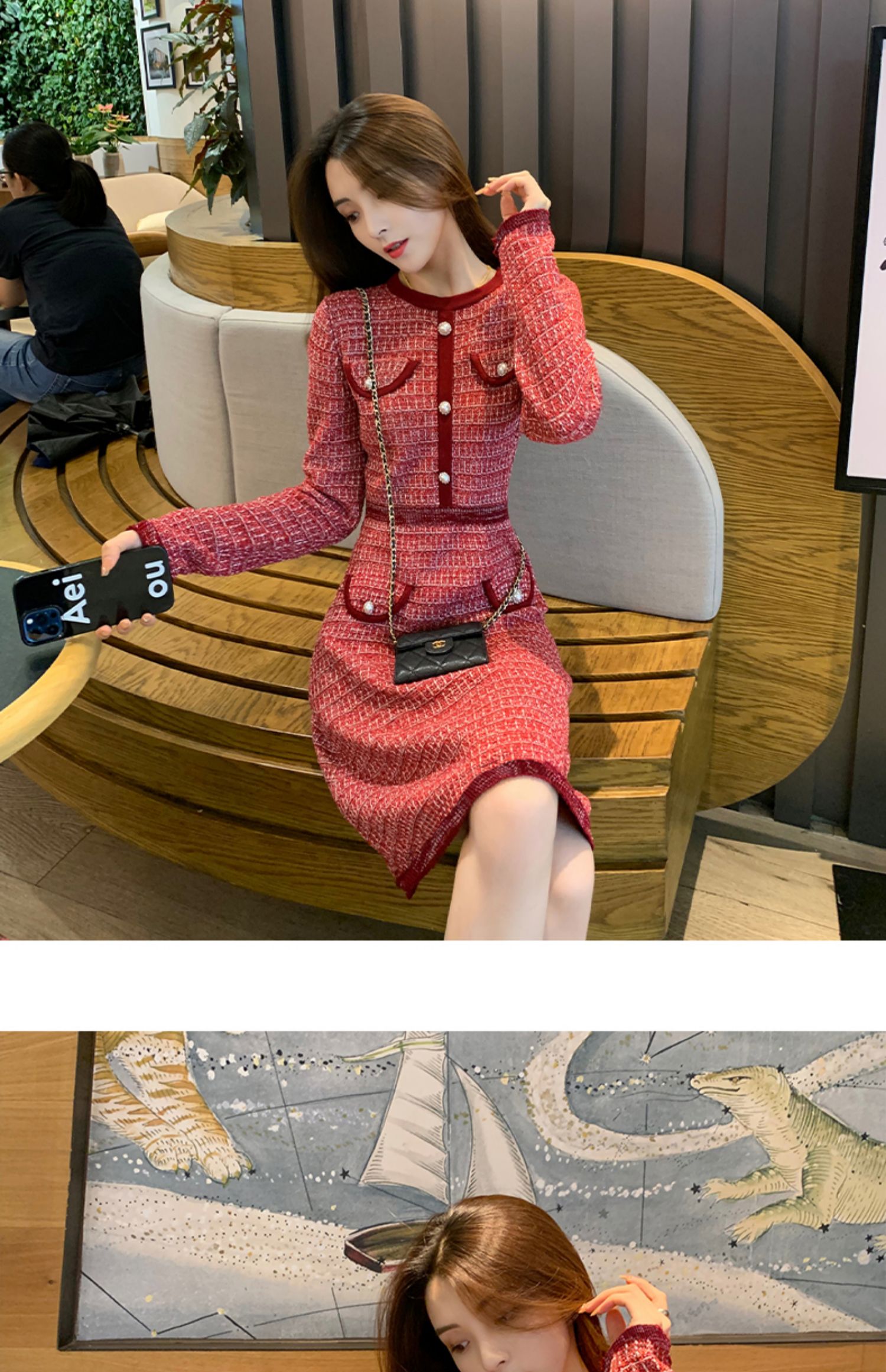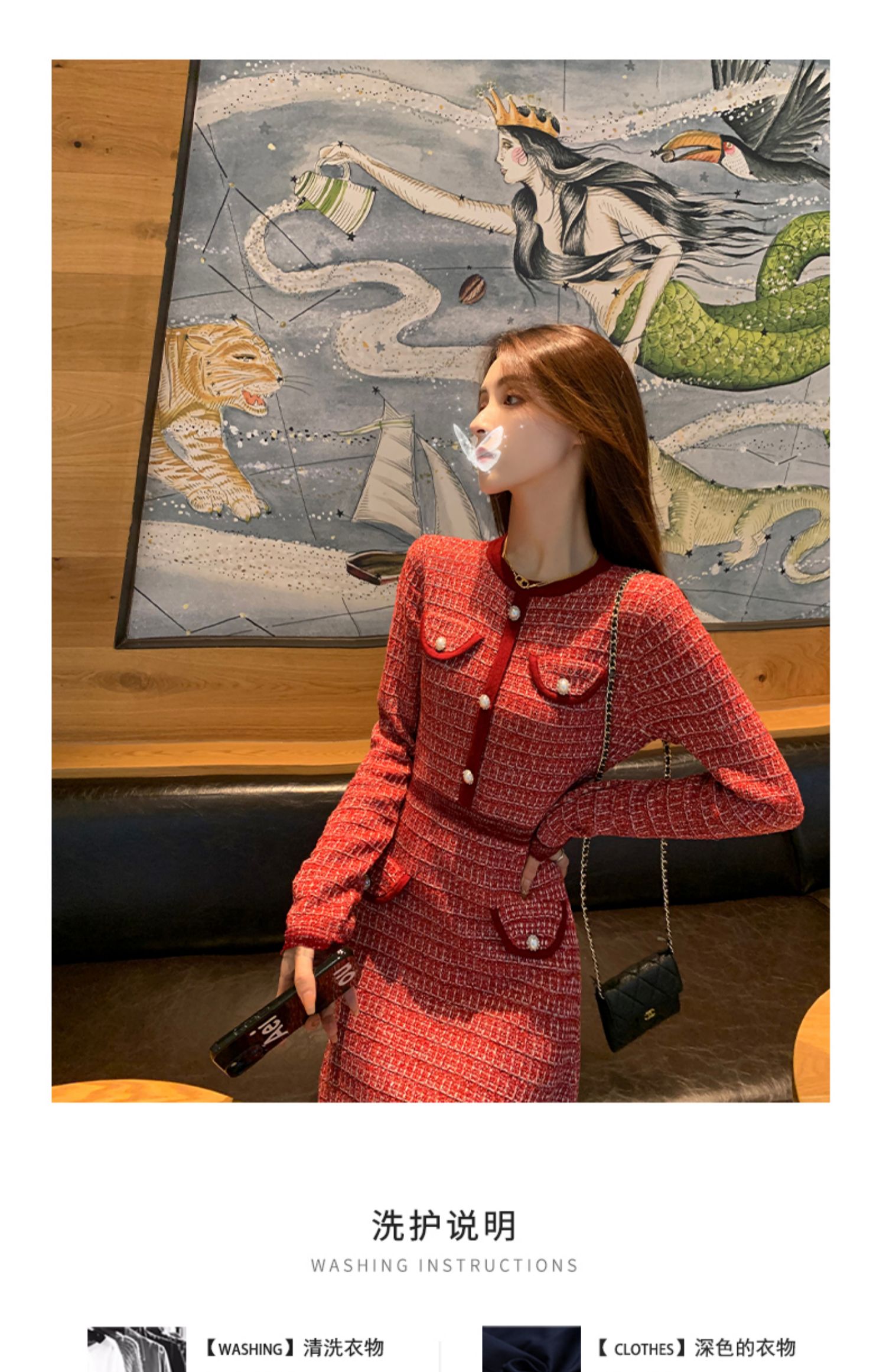MY15505# 韩国小香风高级感名媛气质针织毛衣连衣裙女秋冬小个子收腰包臀裙女裝貨源服裝批發