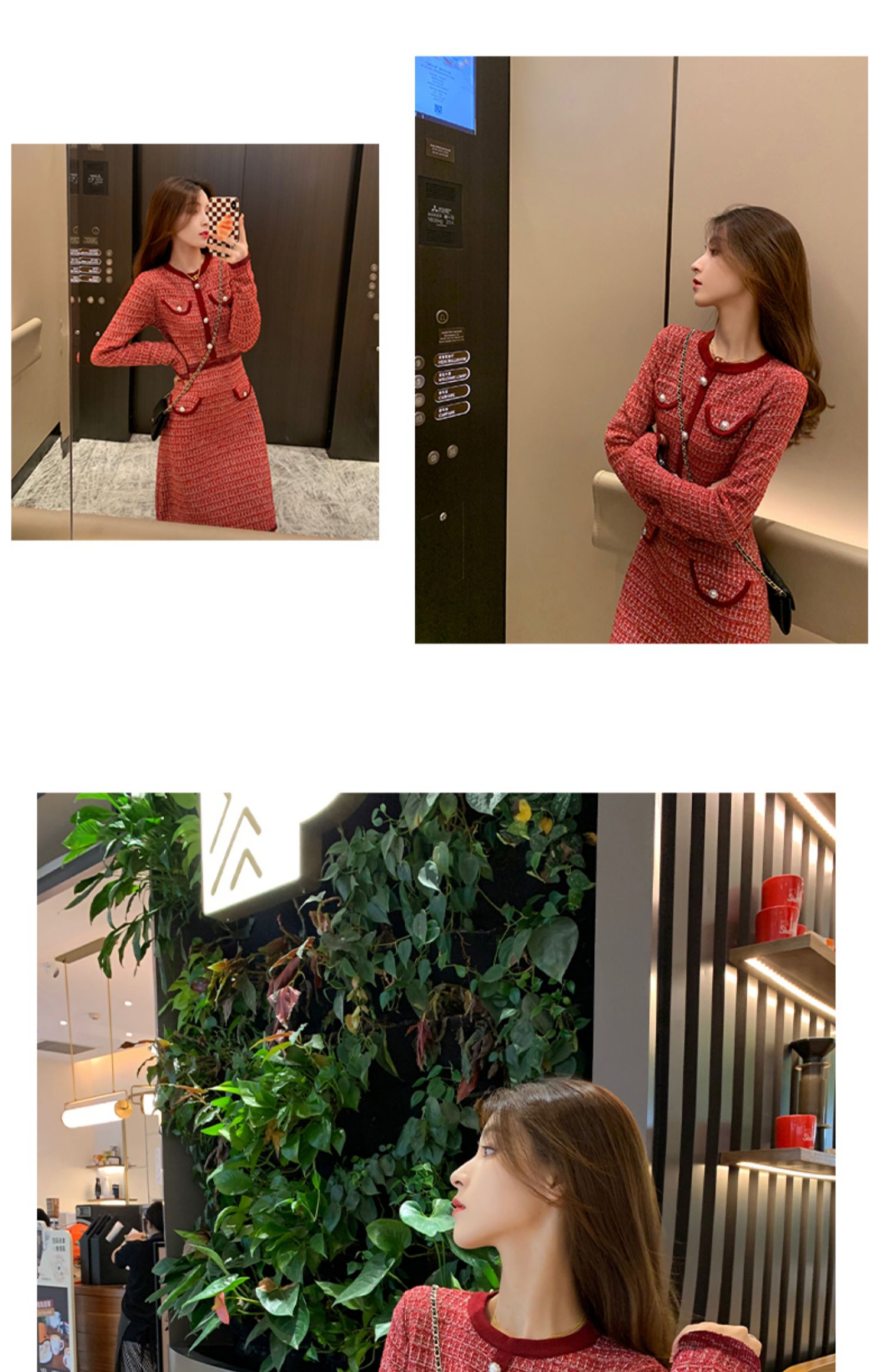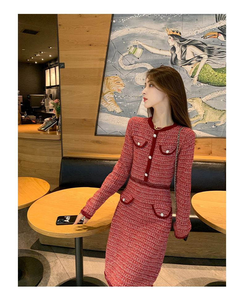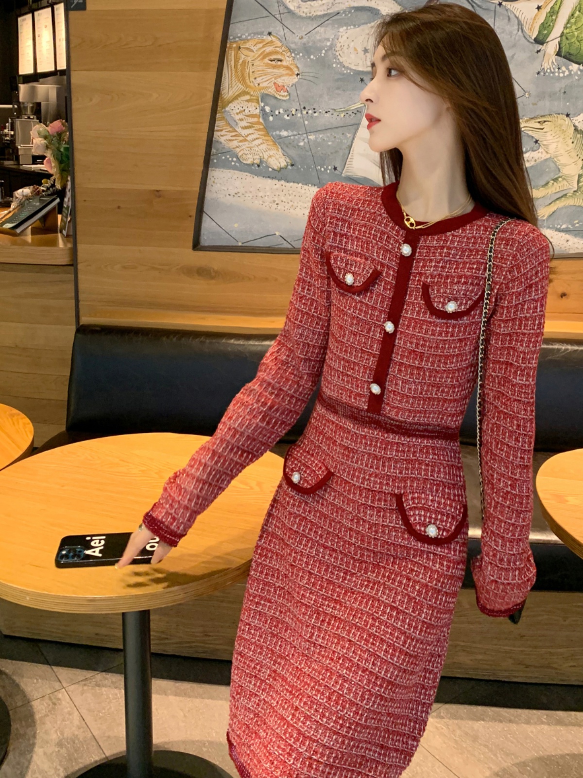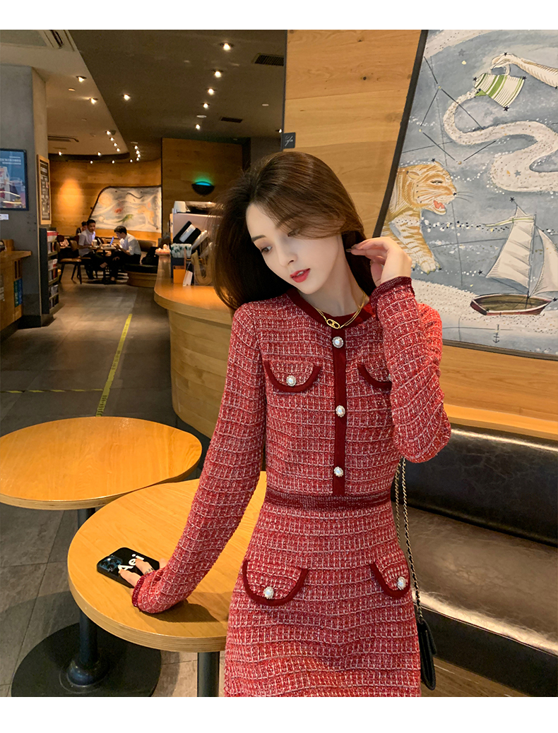 MY15505# 韩国小香风高级感名媛气质针织毛衣连衣裙女秋冬小个子收腰包臀裙女裝貨源服裝批發
