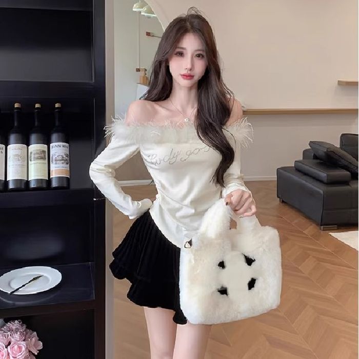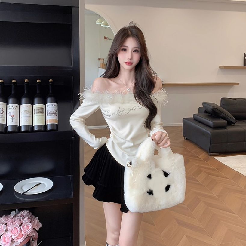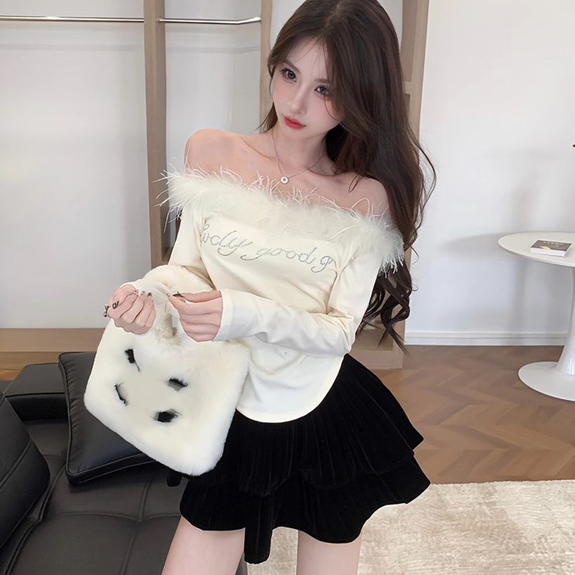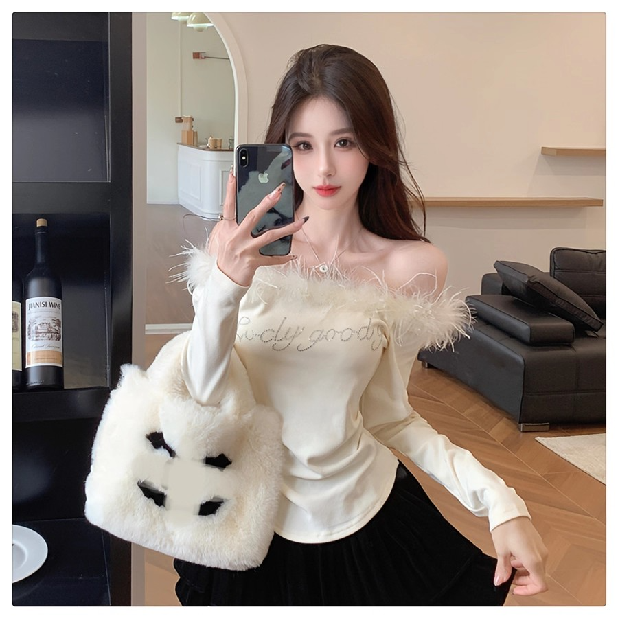 MY15513# 原版做工纯欲风长袖打底衫女装秋季修身显瘦辣妹绝美露肩上衣女裝貨源服裝批發
