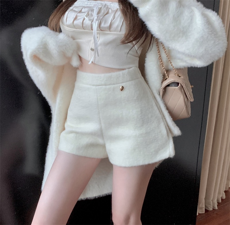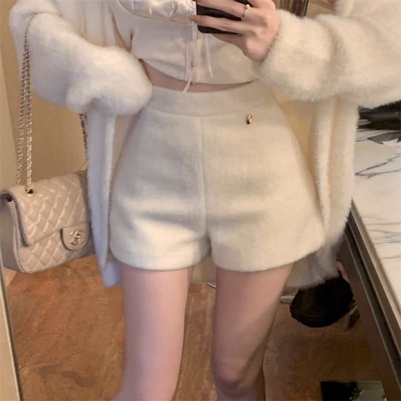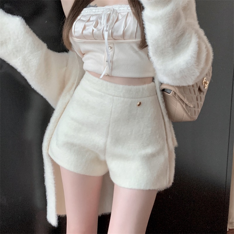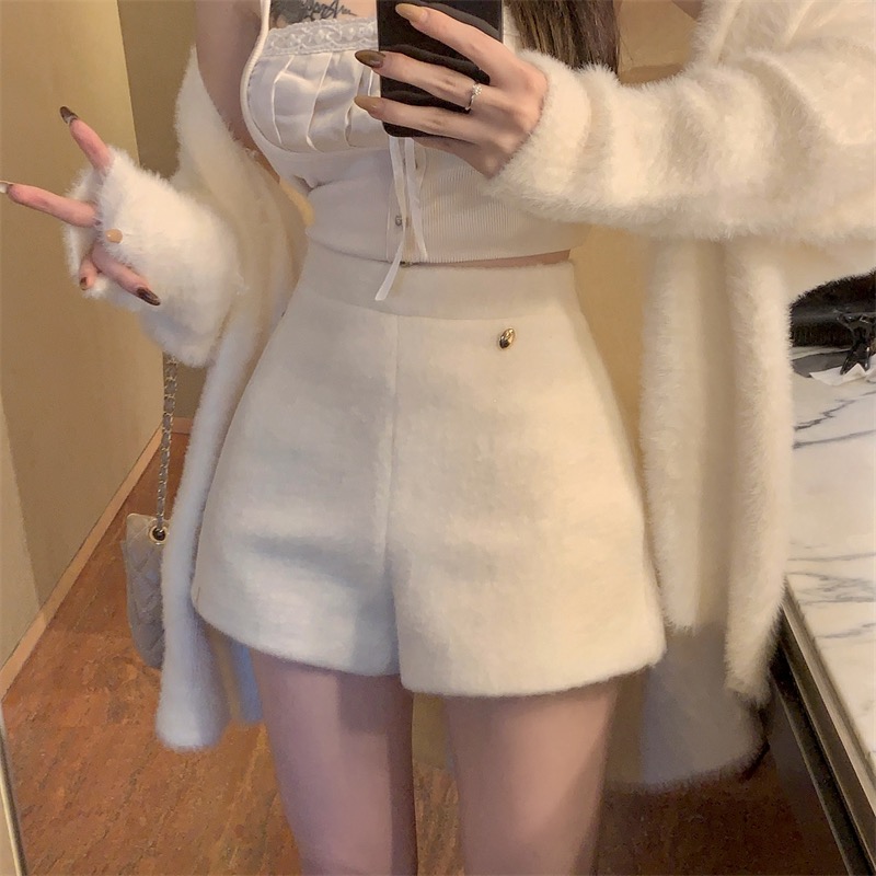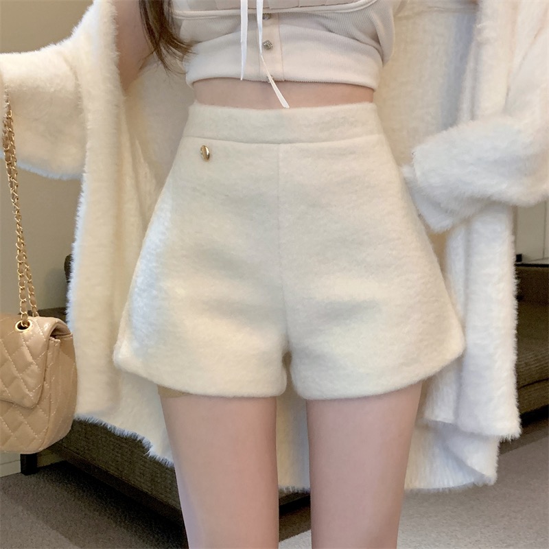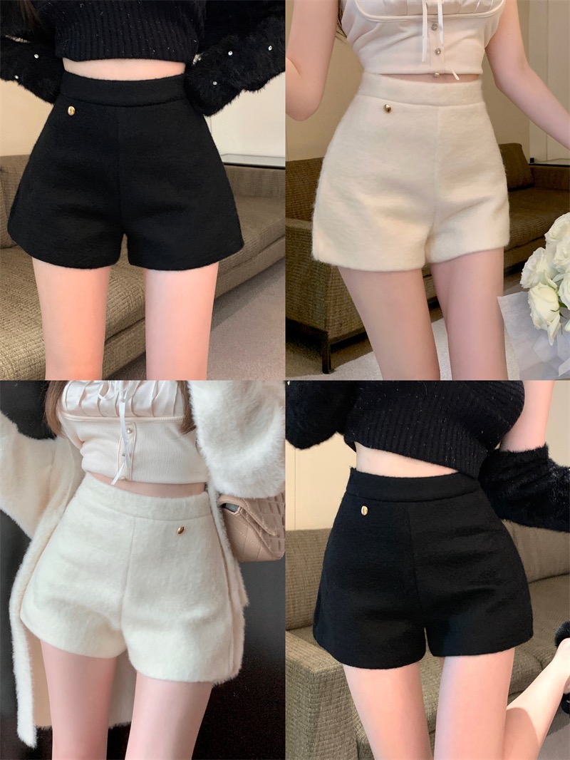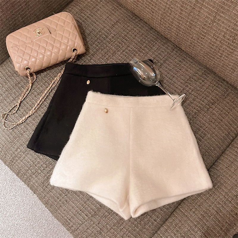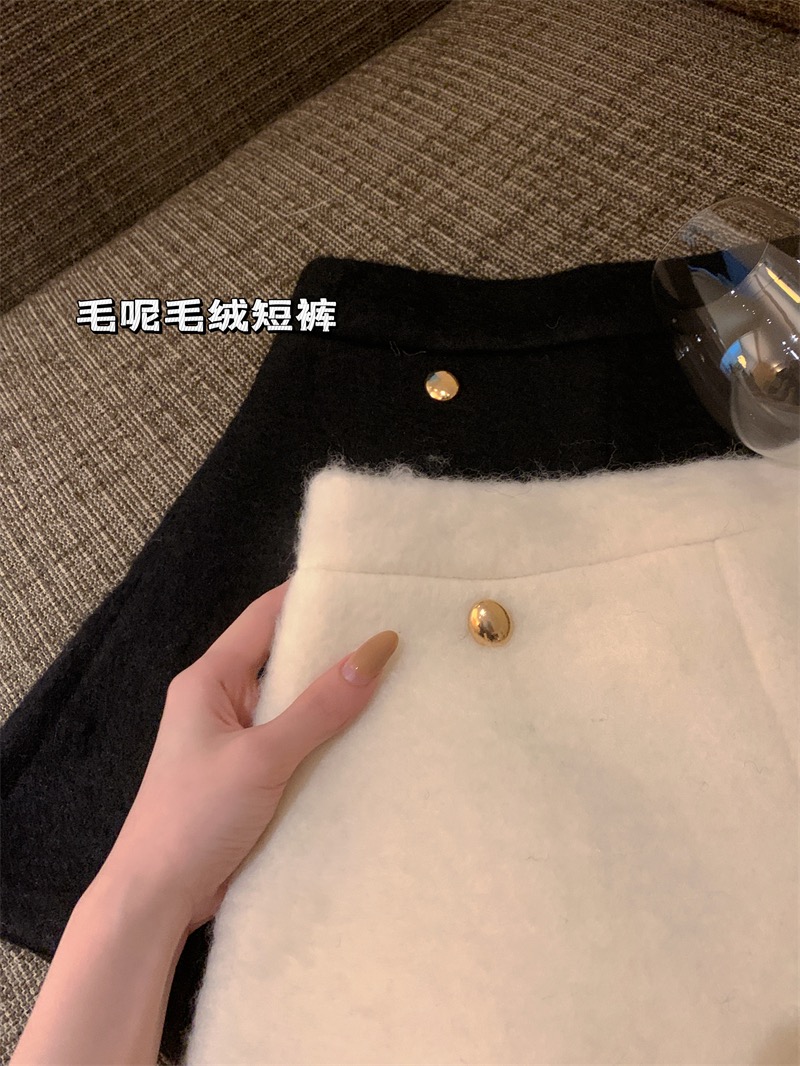 MY15517# 洋气软糯毛绒A字休闲短裤百搭靴裤子高腰阔腿热裤女女裝貨源服裝批發