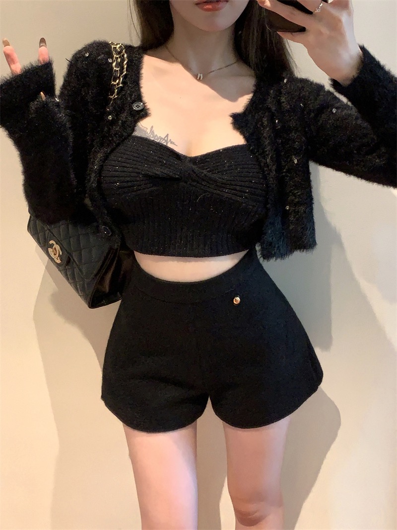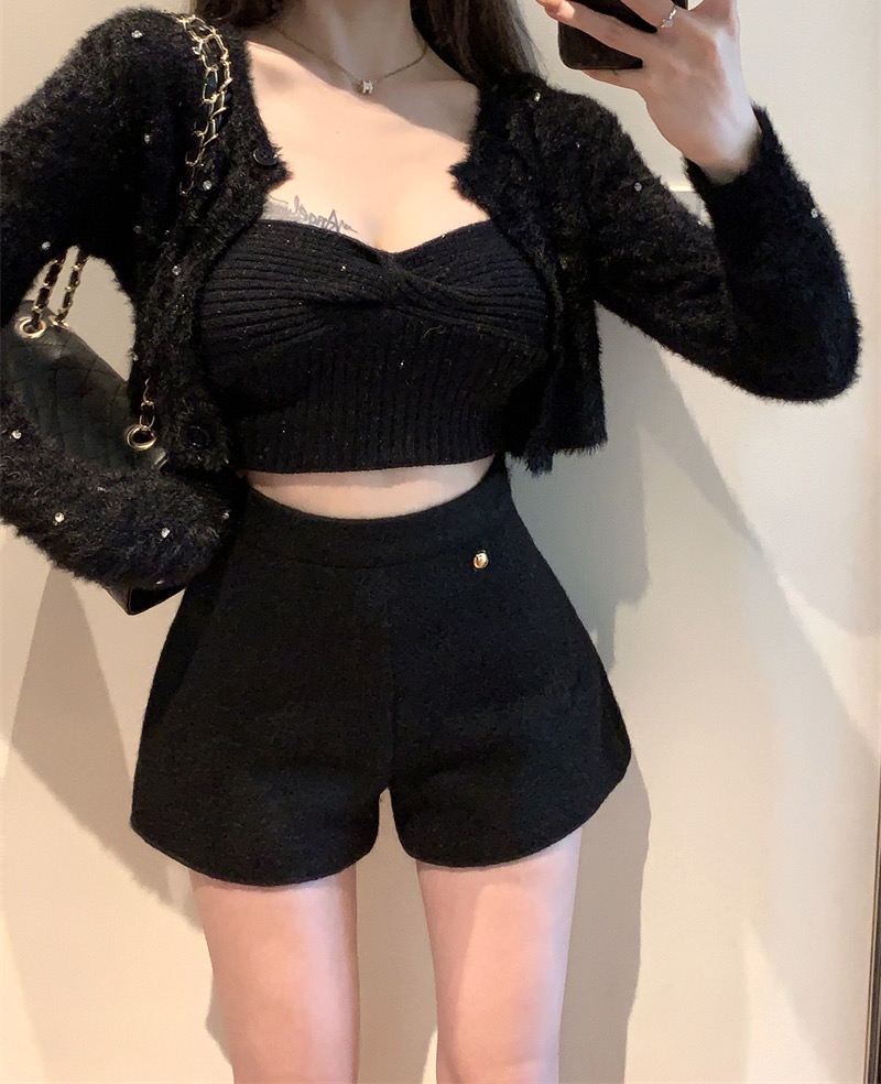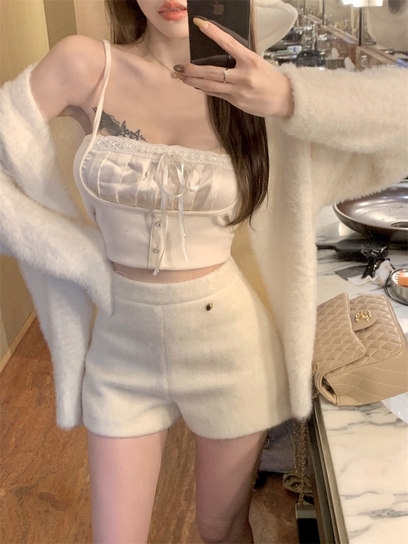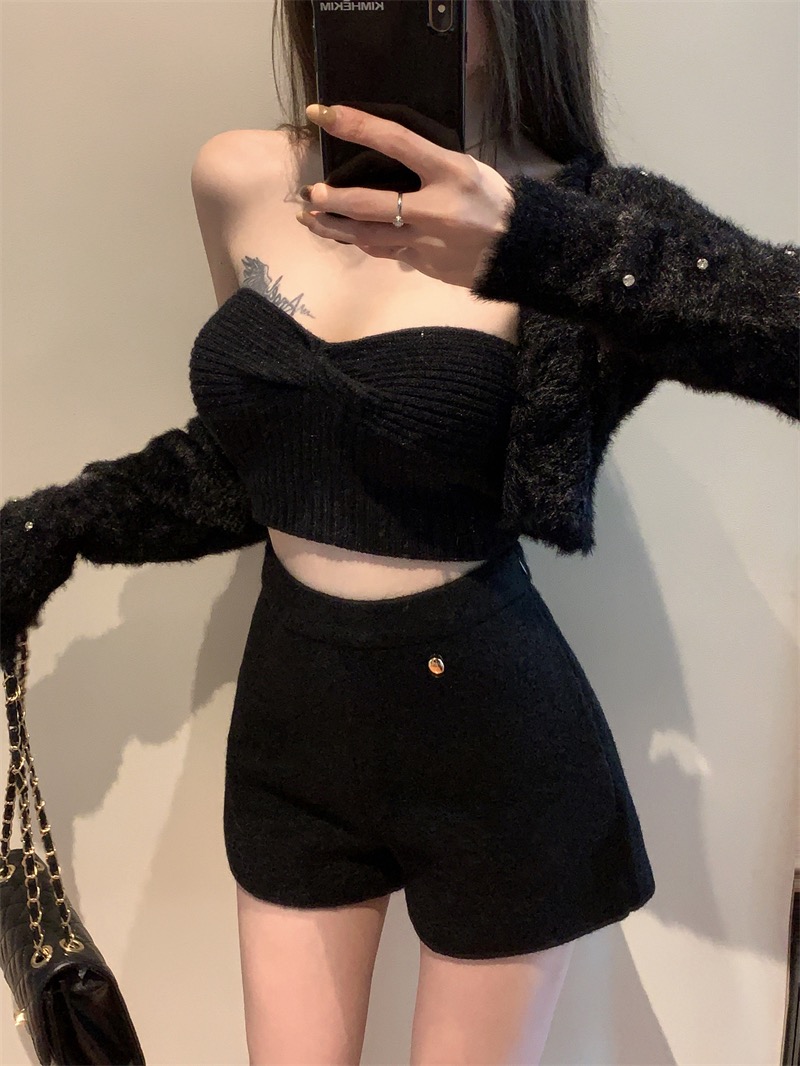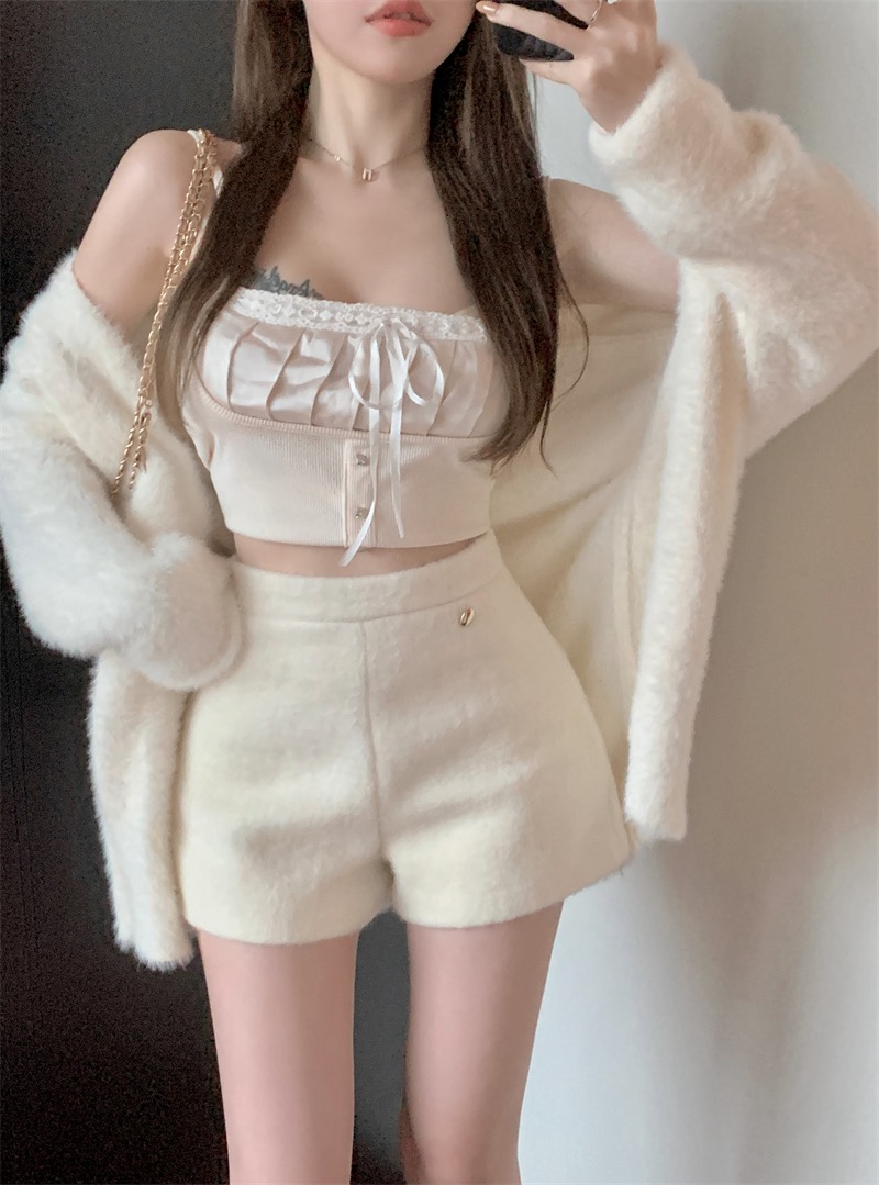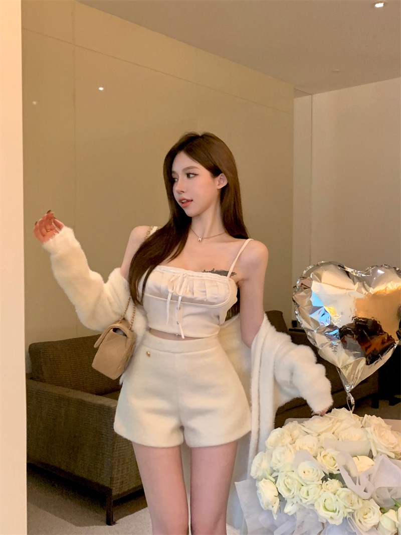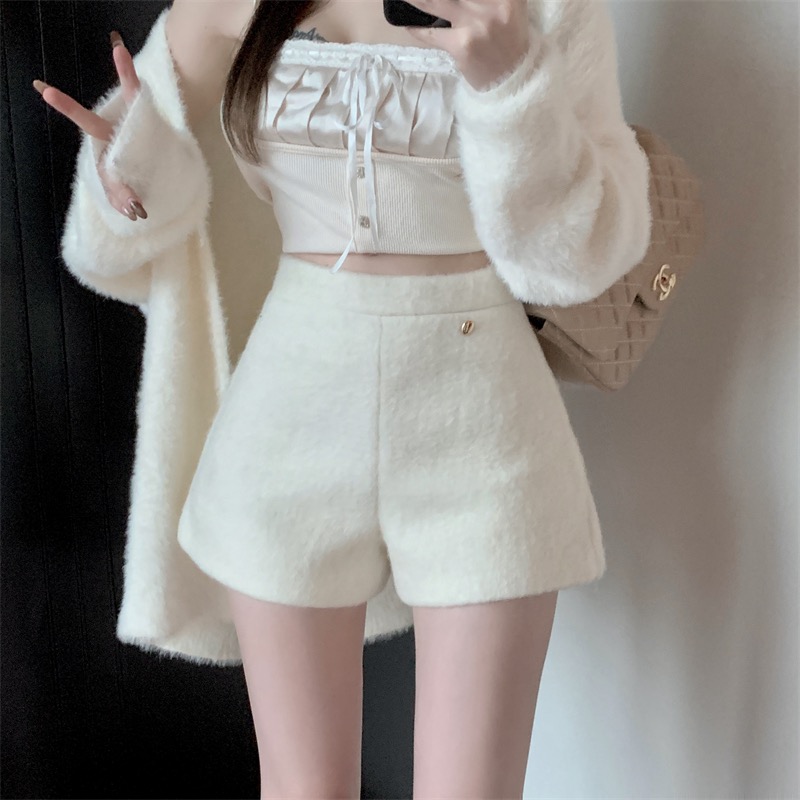 MY15517# 洋气软糯毛绒A字休闲短裤百搭靴裤子高腰阔腿热裤女女裝貨源服裝批發