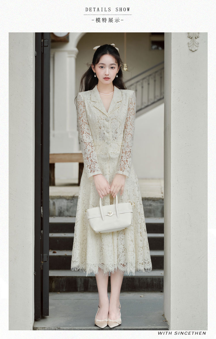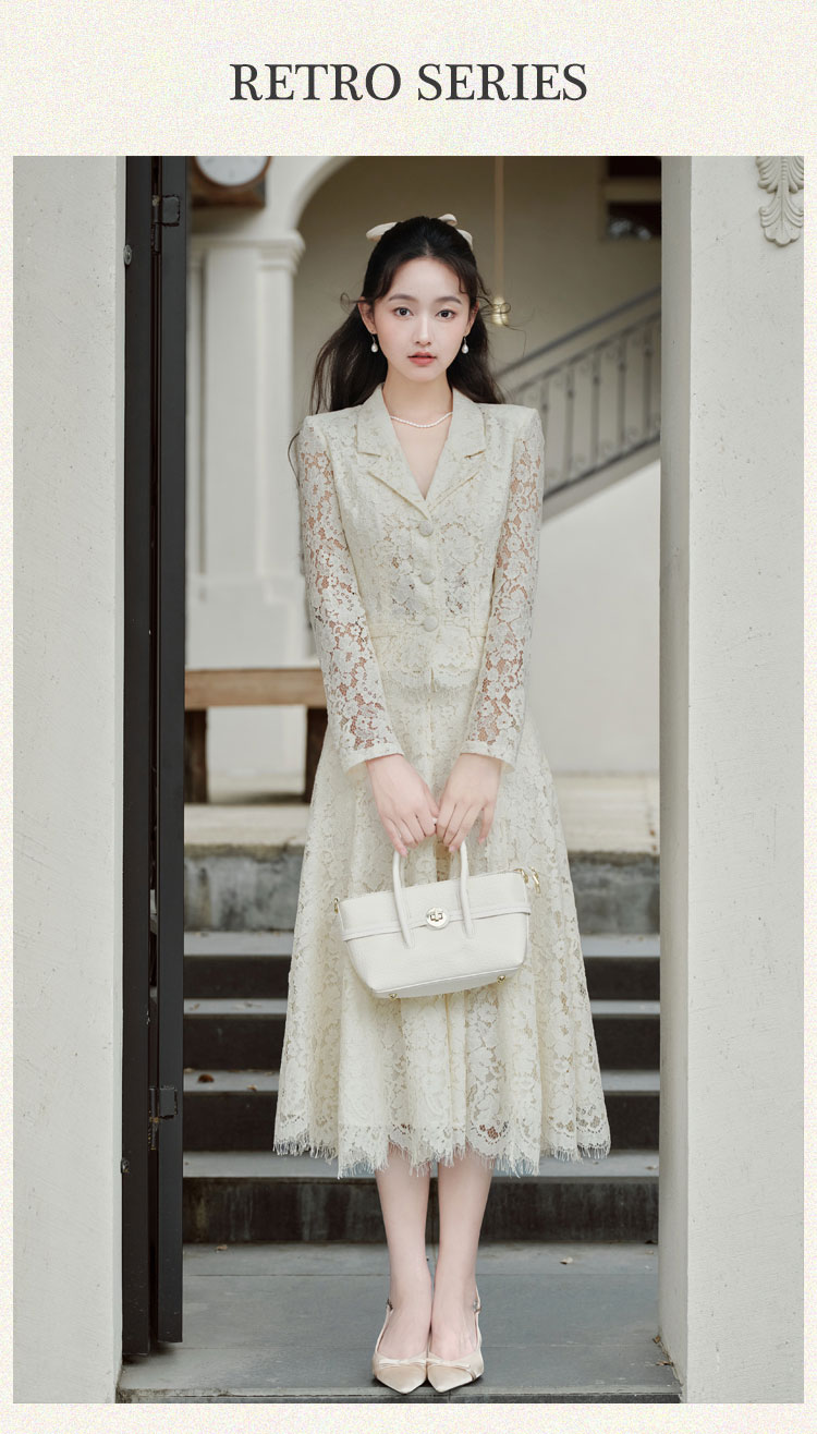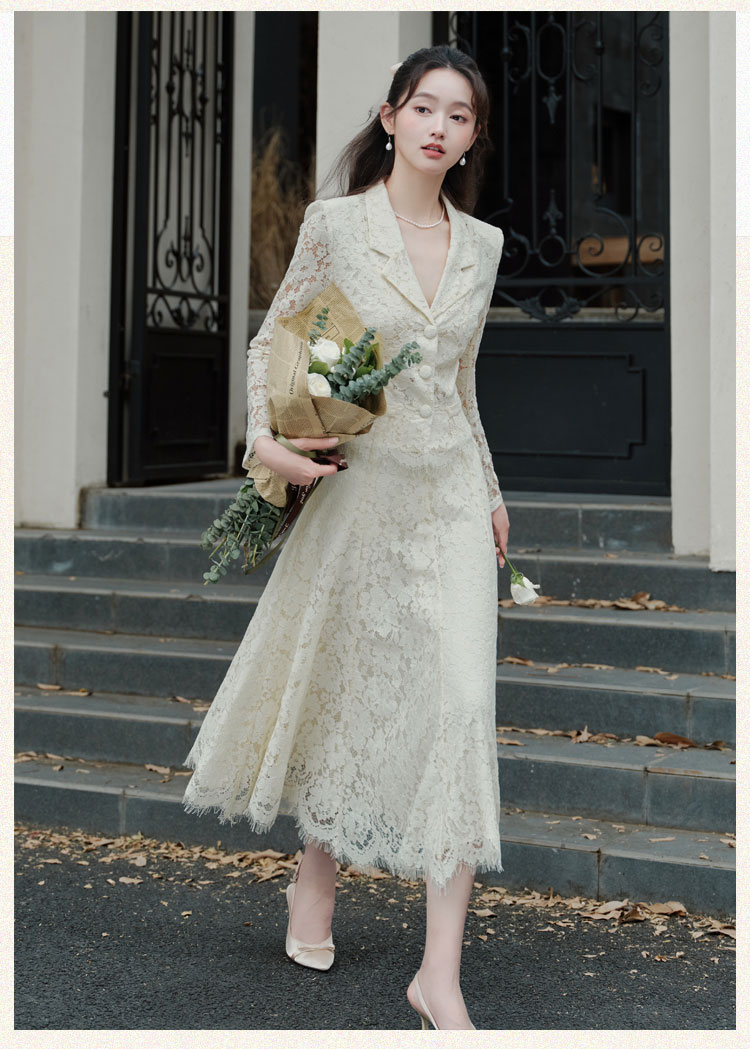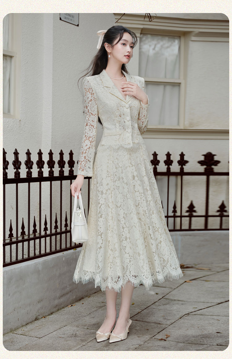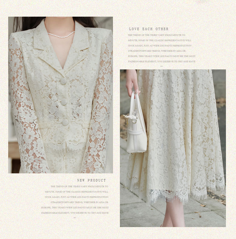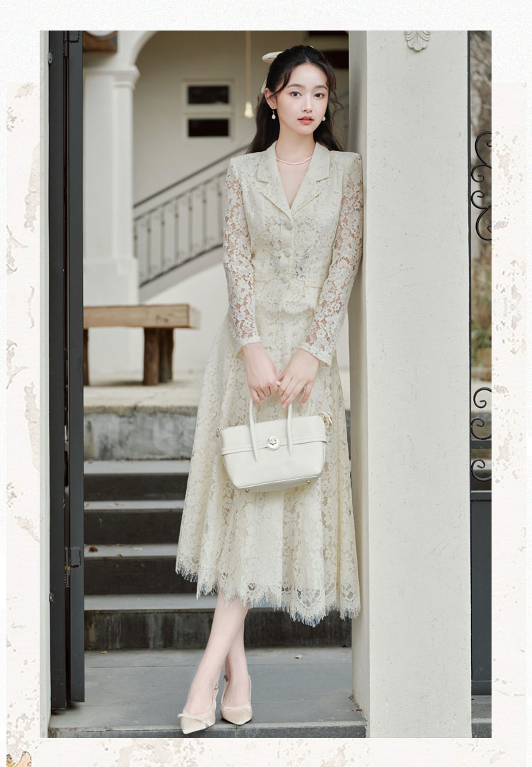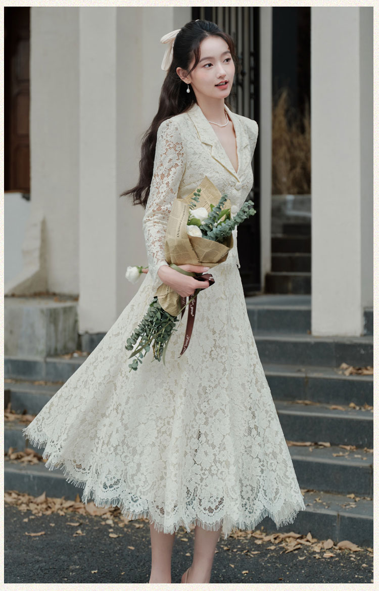 MY15520# 韩女约会 纯欲温柔蕾丝上衣收腰大裙摆长裙套装女裝貨源服裝批發