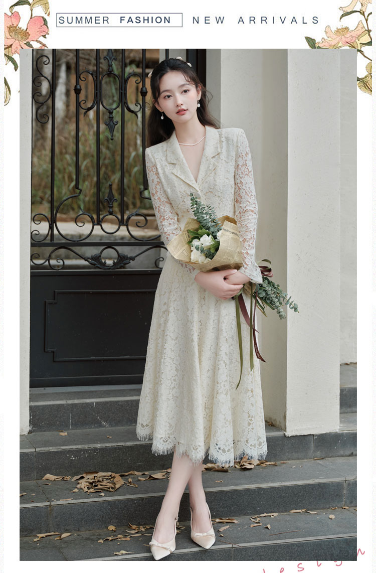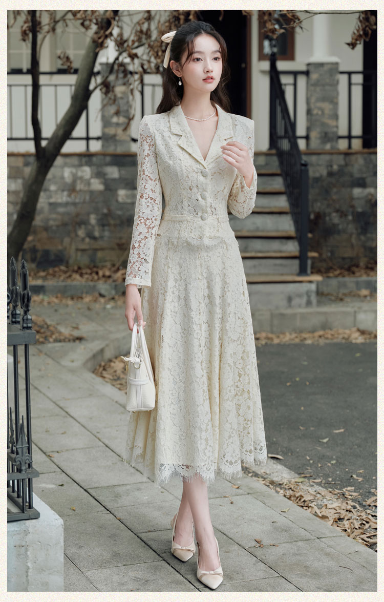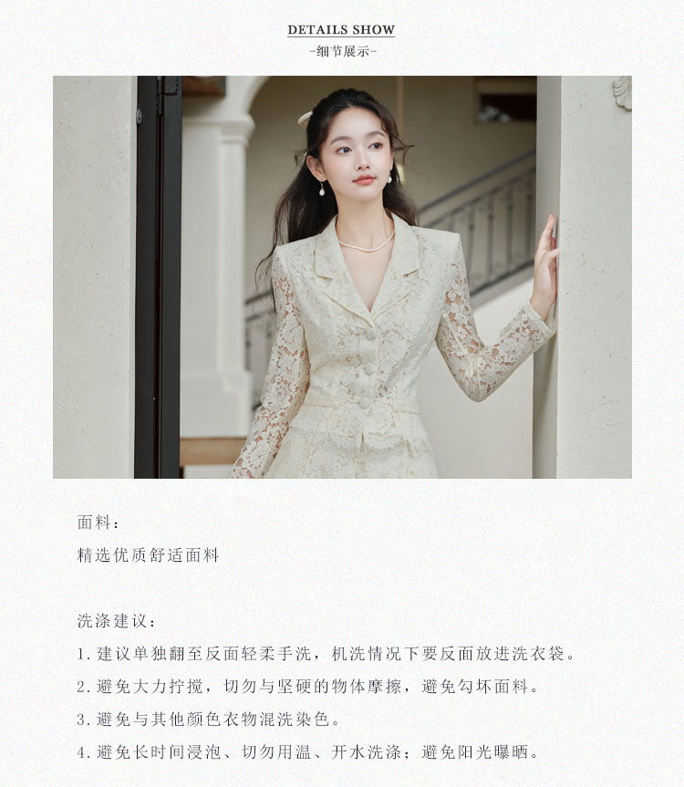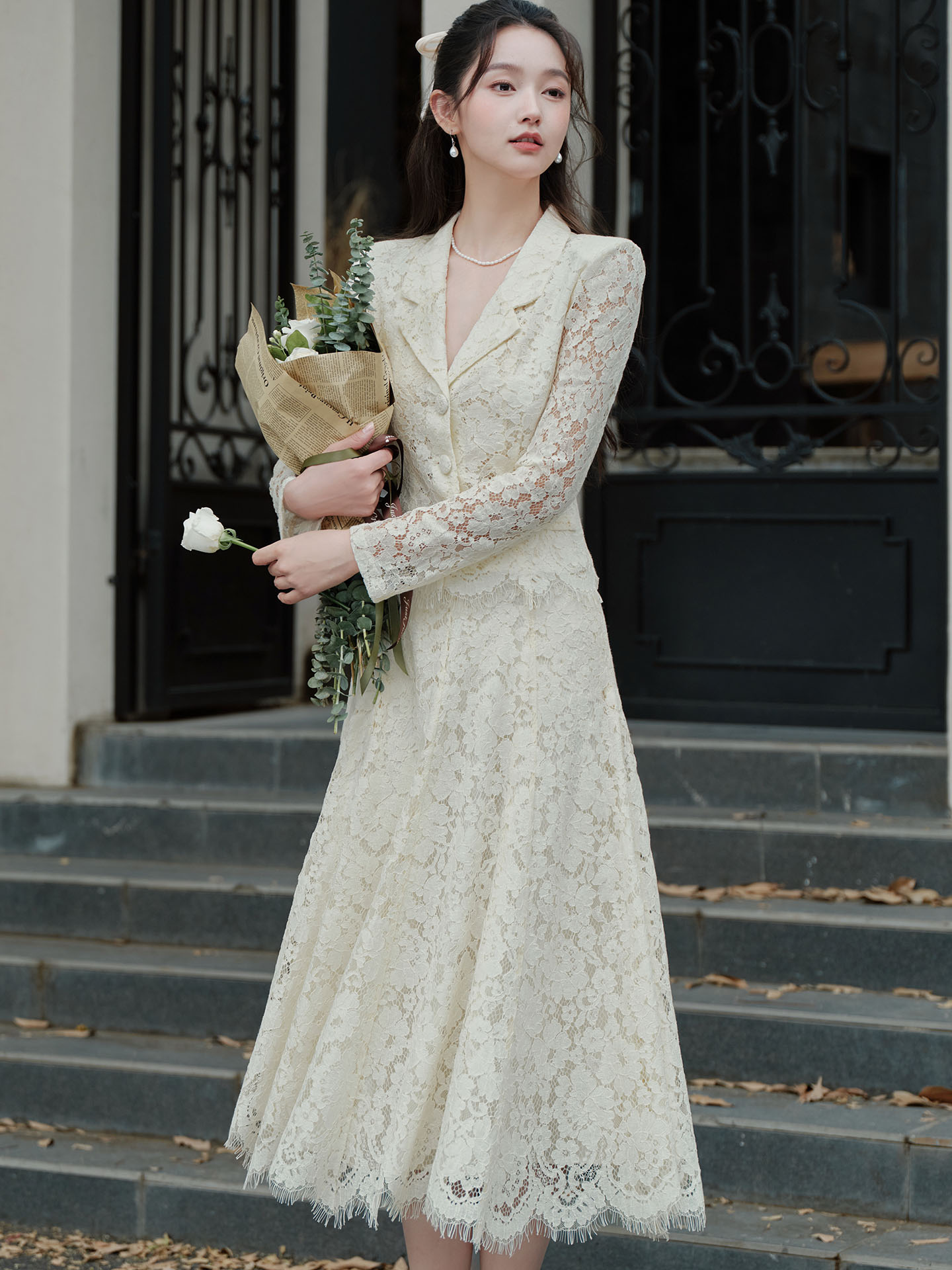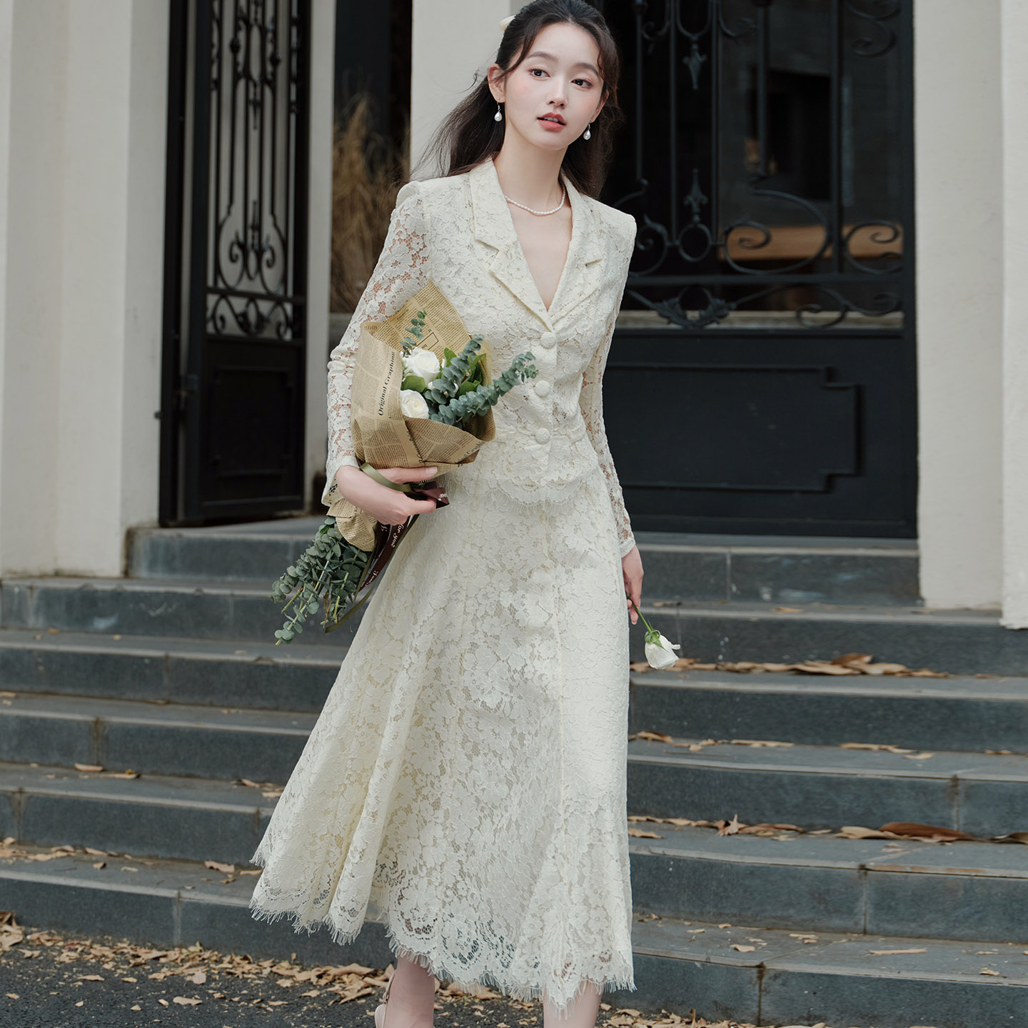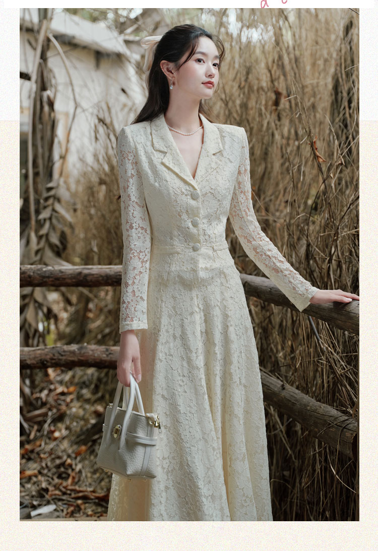 MY15520# 韩女约会 纯欲温柔蕾丝上衣收腰大裙摆长裙套装女裝貨源服裝批發