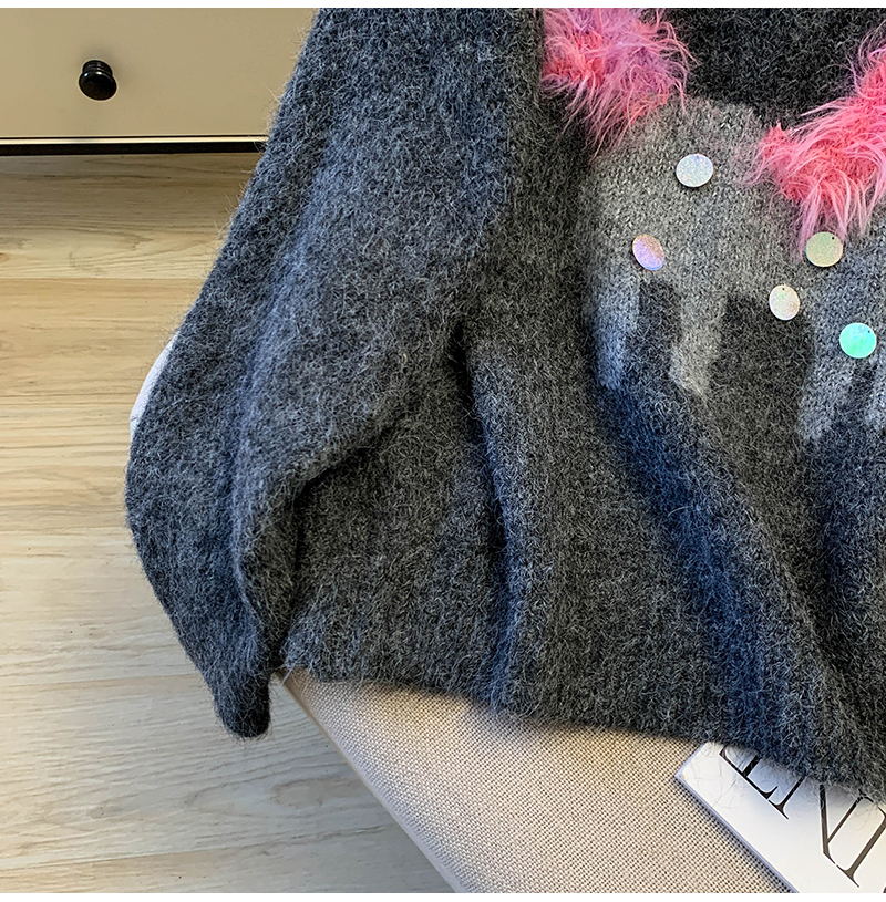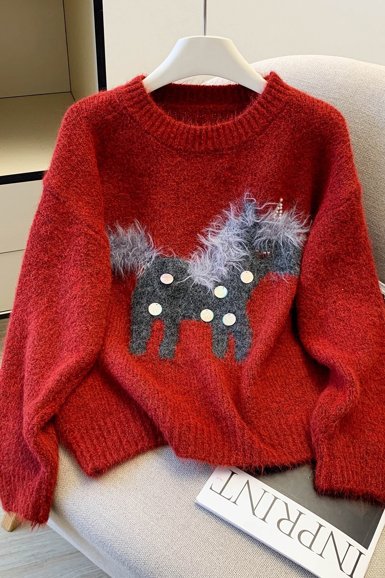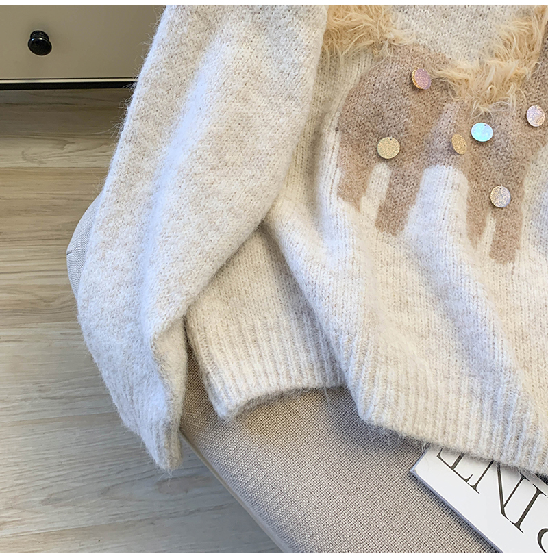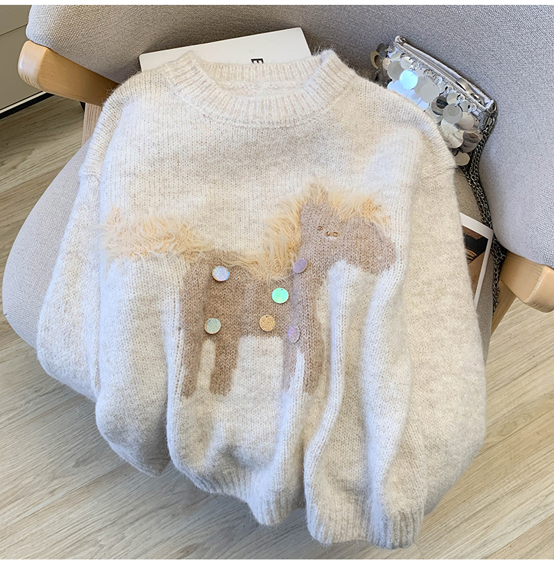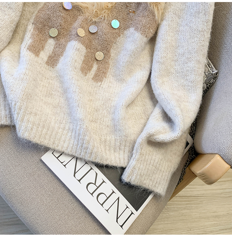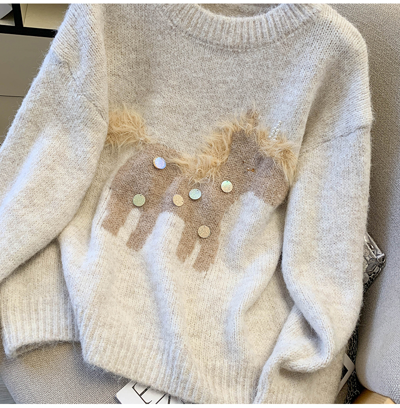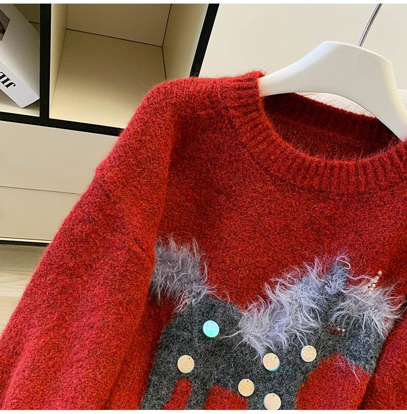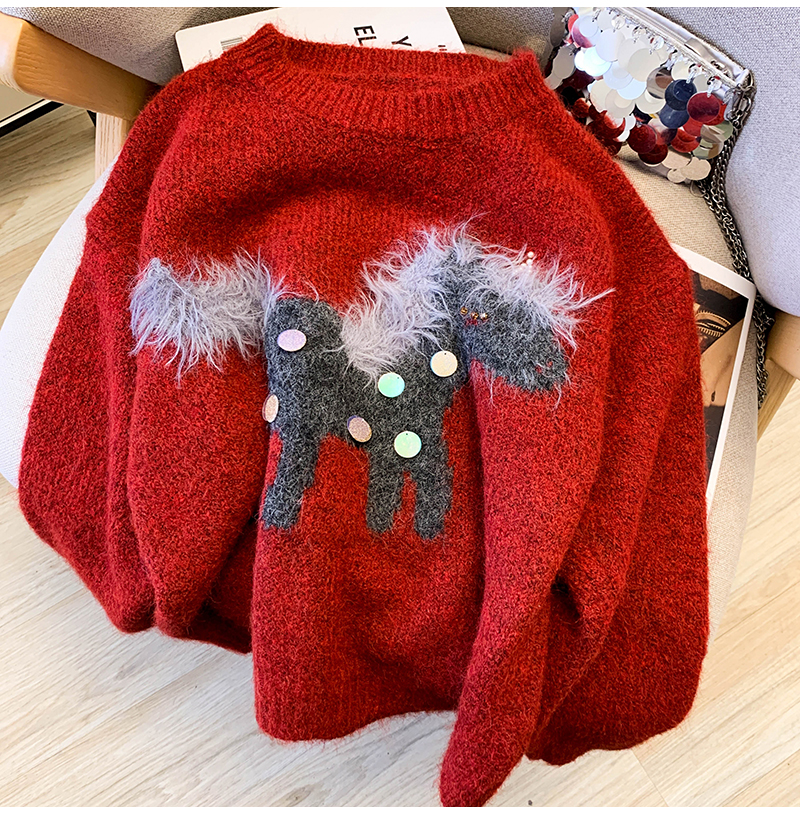 MY15529# INGCON圣诞小马 新年毛衣粗支缎染亮片苏利羊驼毛显瘦针织衫女冬女裝貨源服裝批發