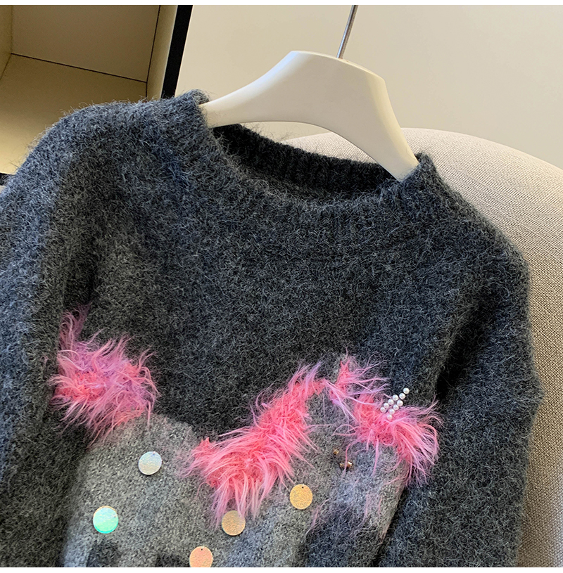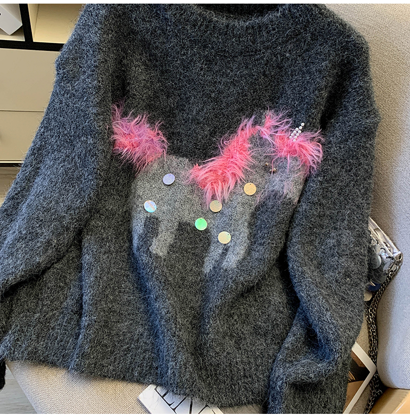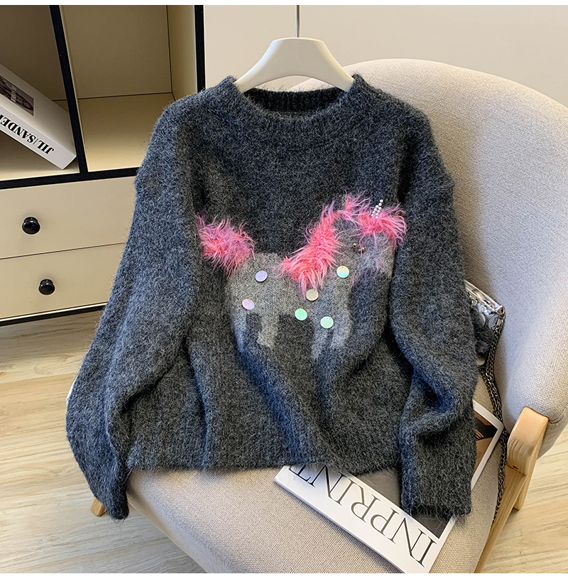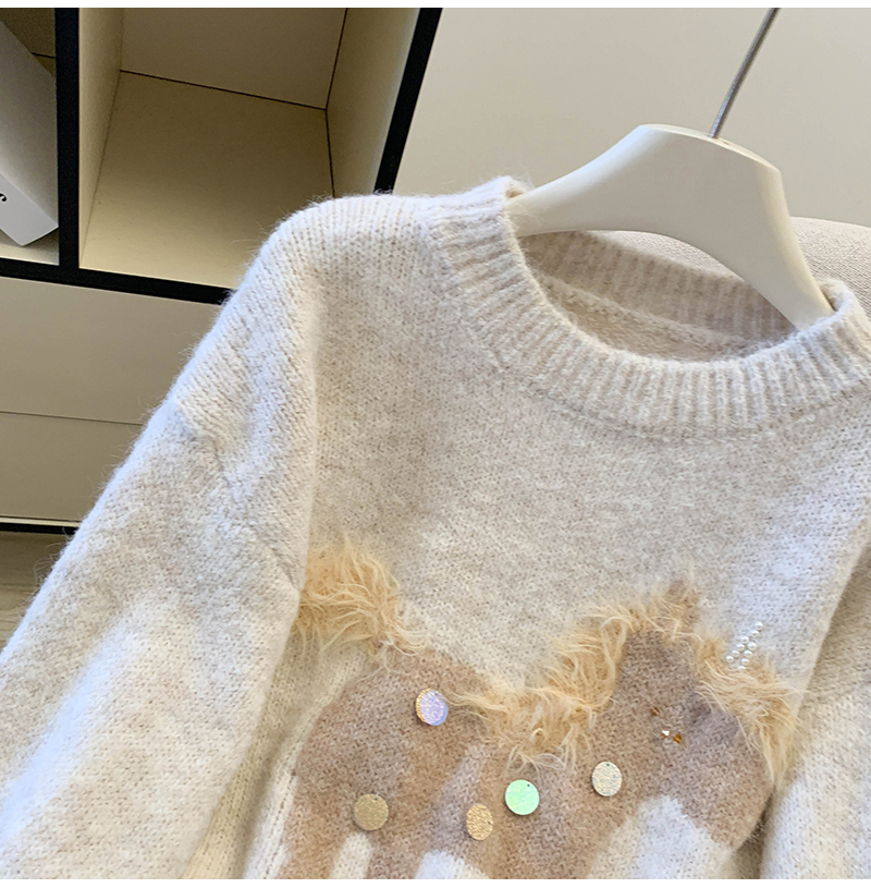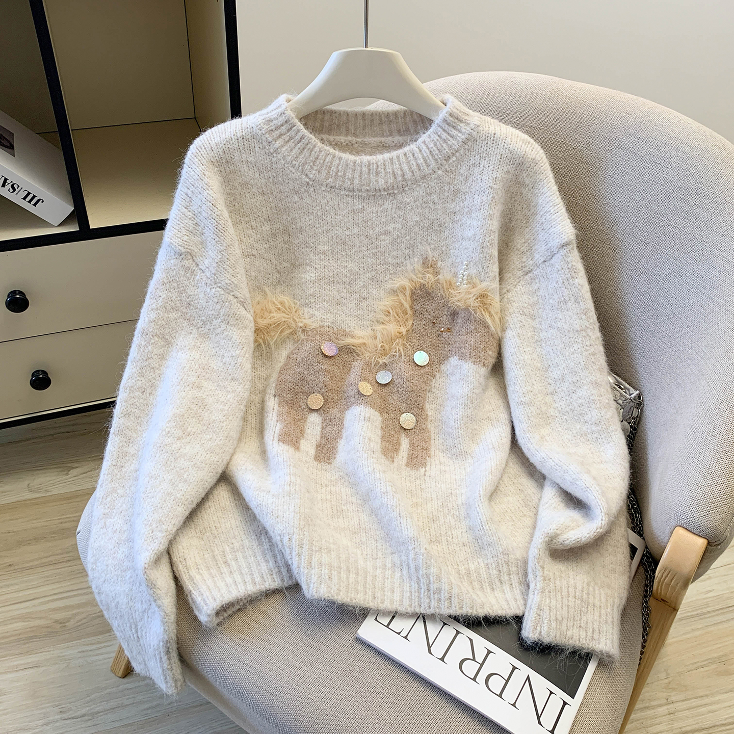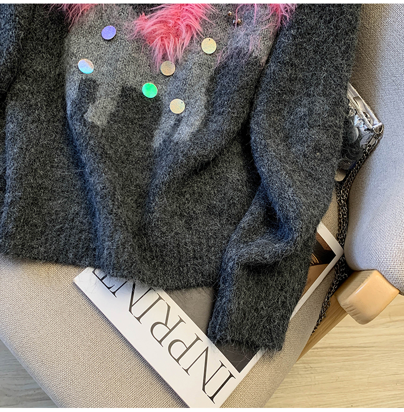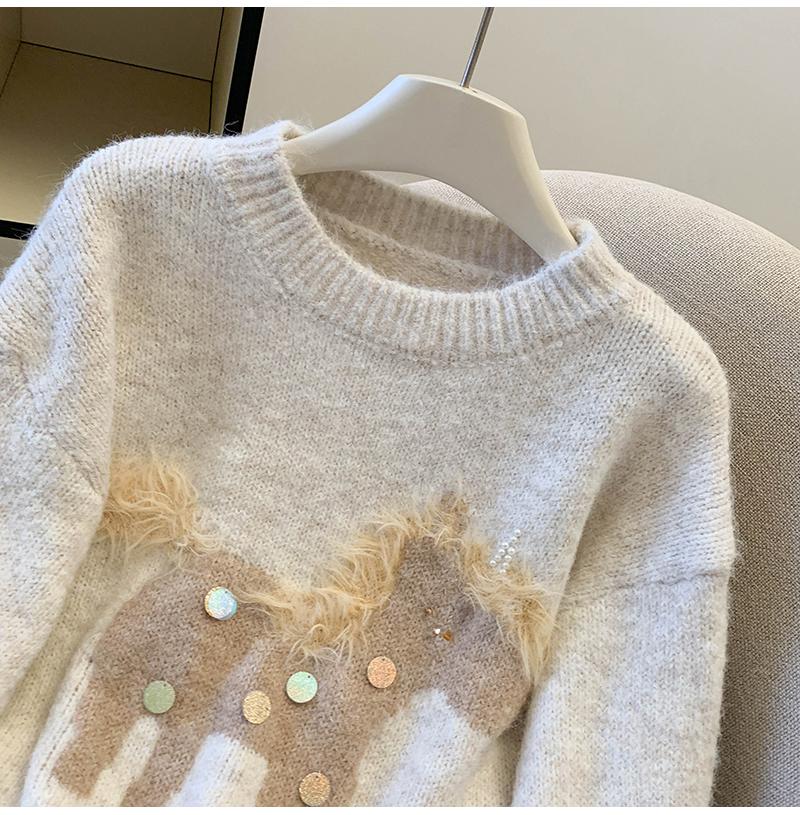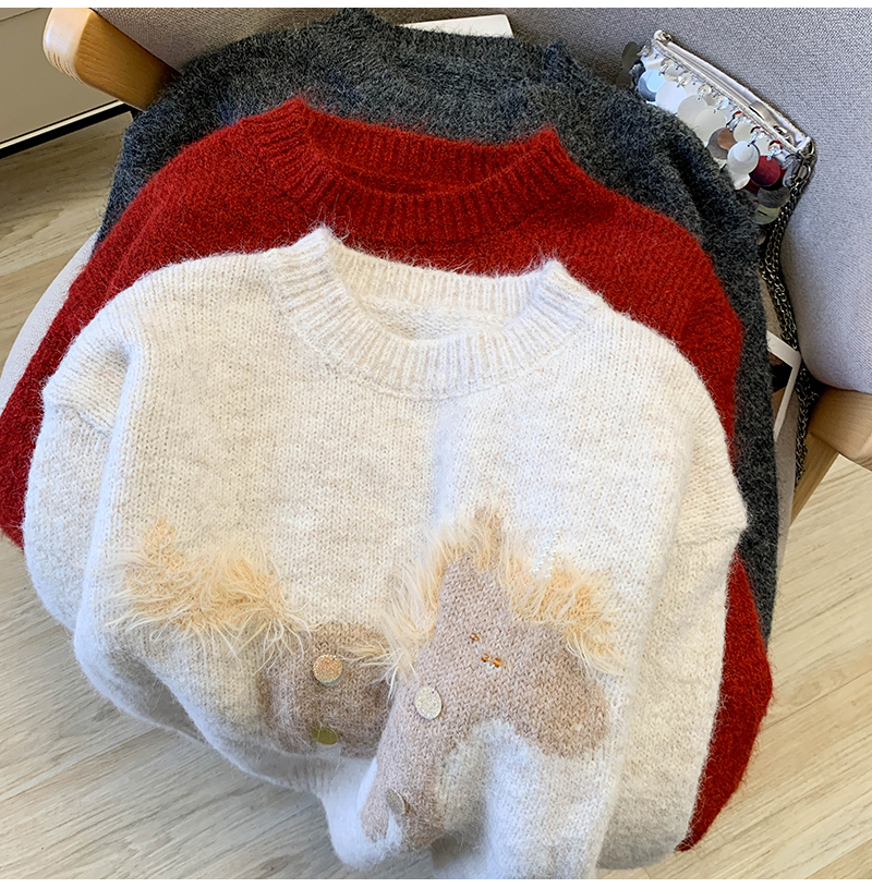 MY15529# INGCON圣诞小马 新年毛衣粗支缎染亮片苏利羊驼毛显瘦针织衫女冬女裝貨源服裝批發