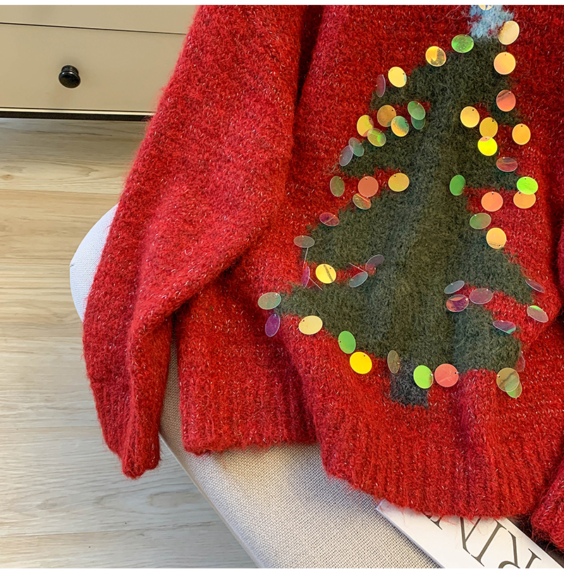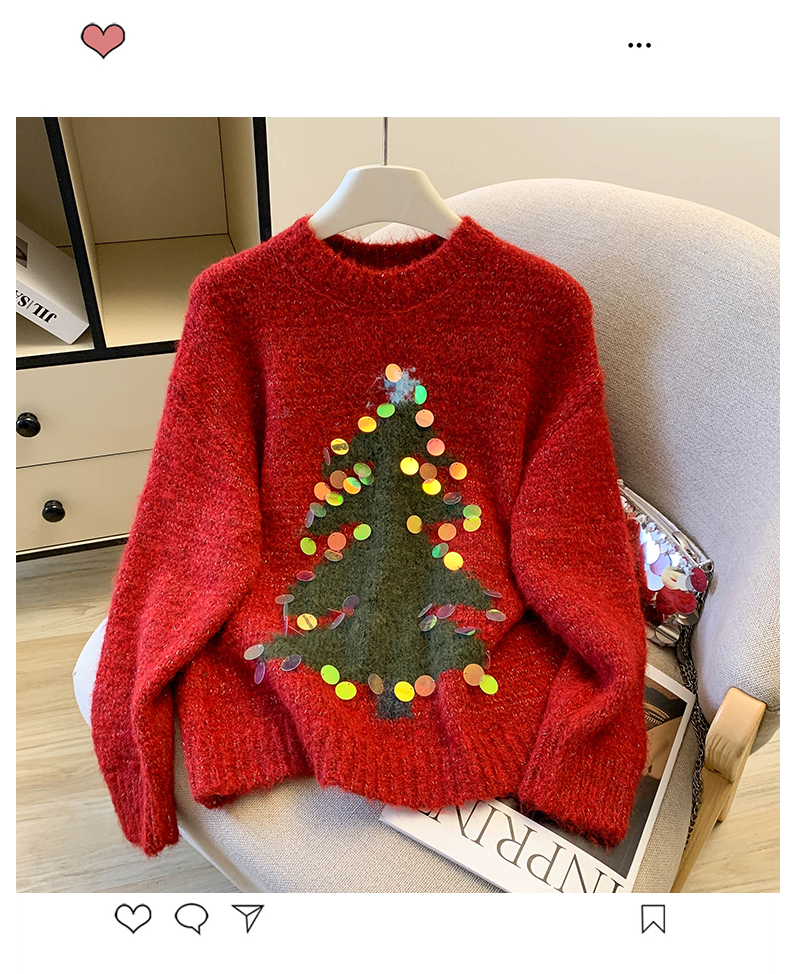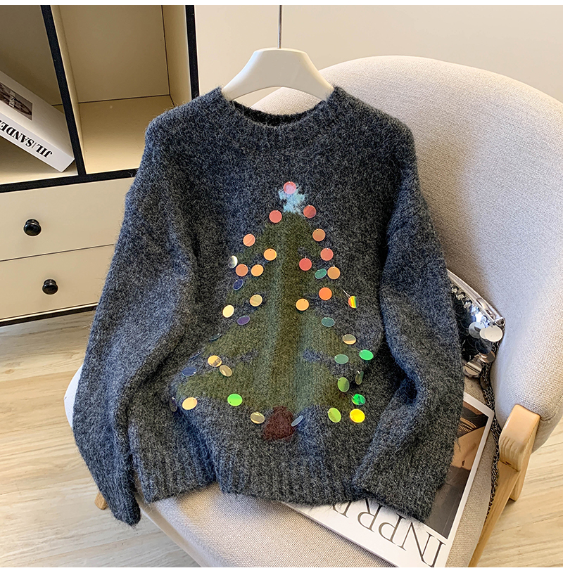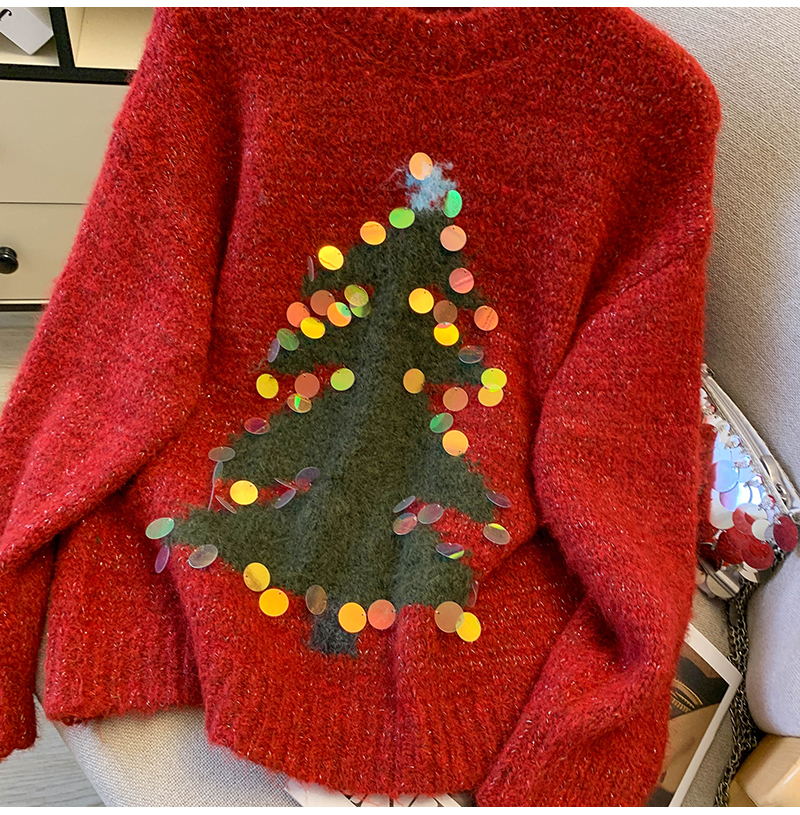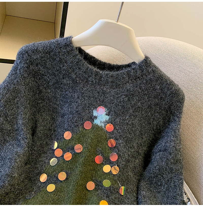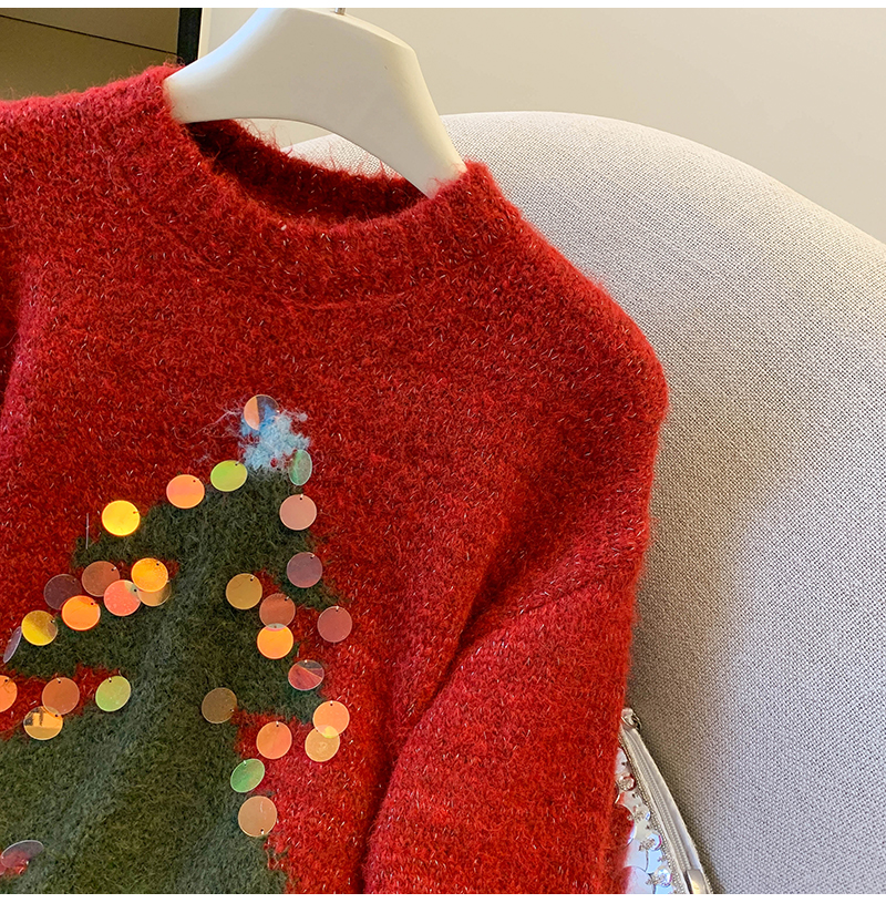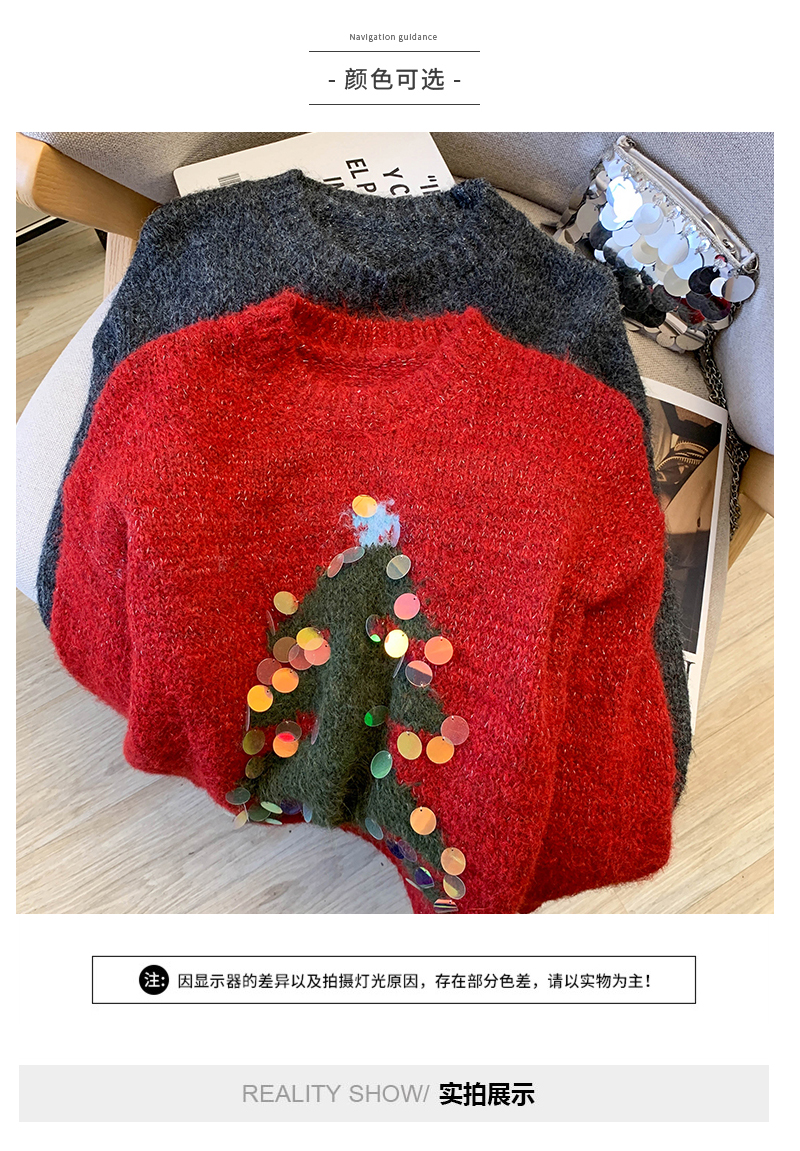 MY15530# 圣诞亮片圆领毛衣新款秋冬加厚奶fufu慵懒小个子内搭针织衫女裝貨源服裝批發