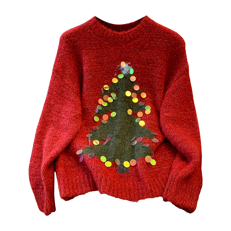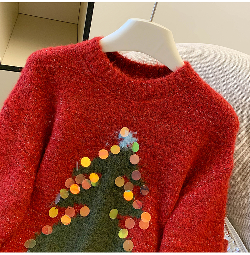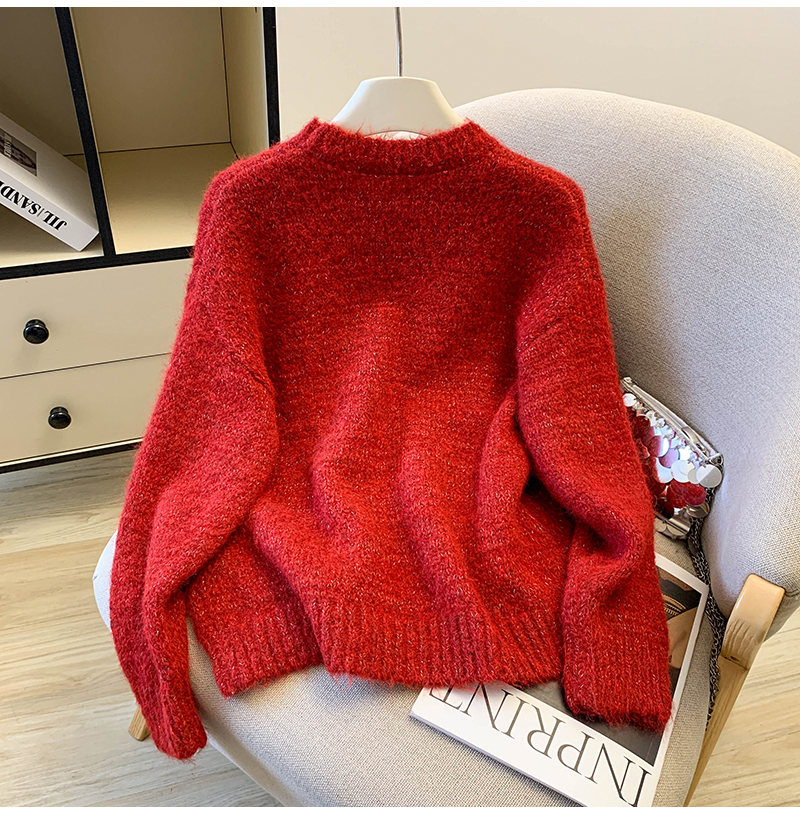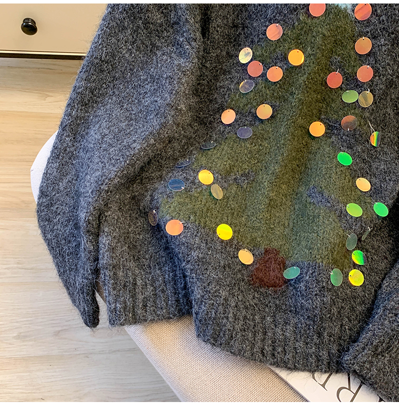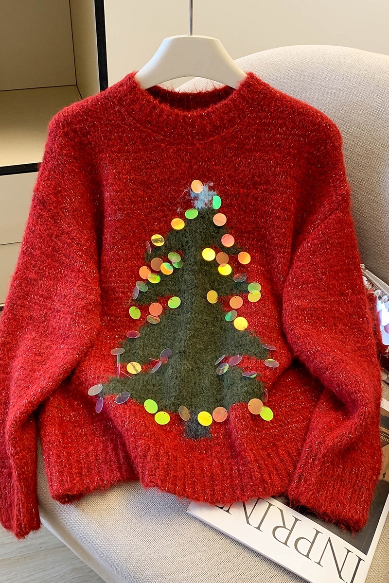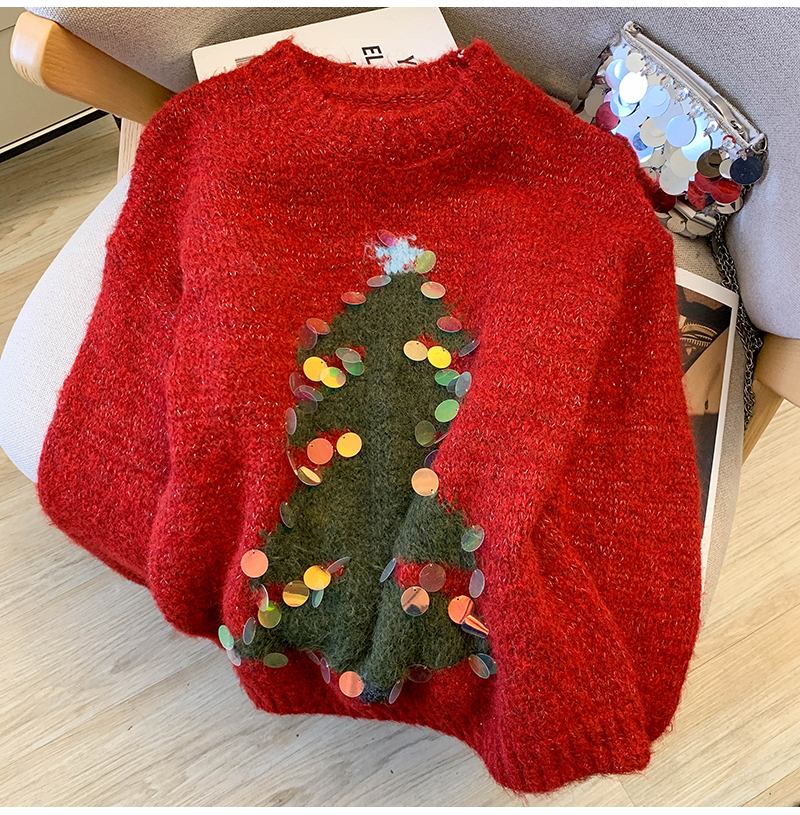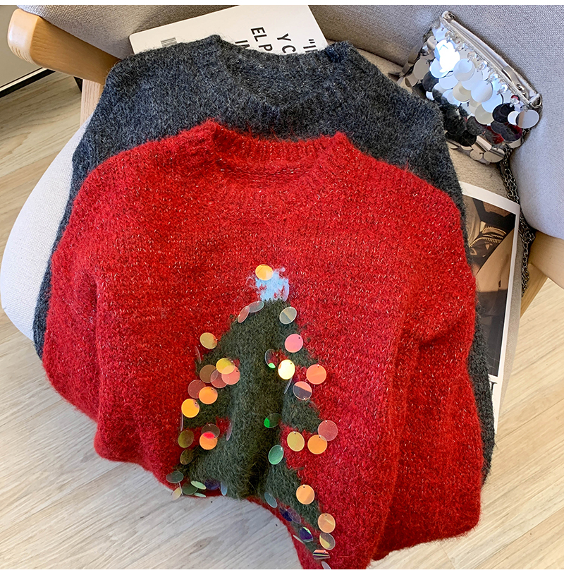 MY15530# 圣诞亮片圆领毛衣新款秋冬加厚奶fufu慵懒小个子内搭针织衫女裝貨源服裝批發