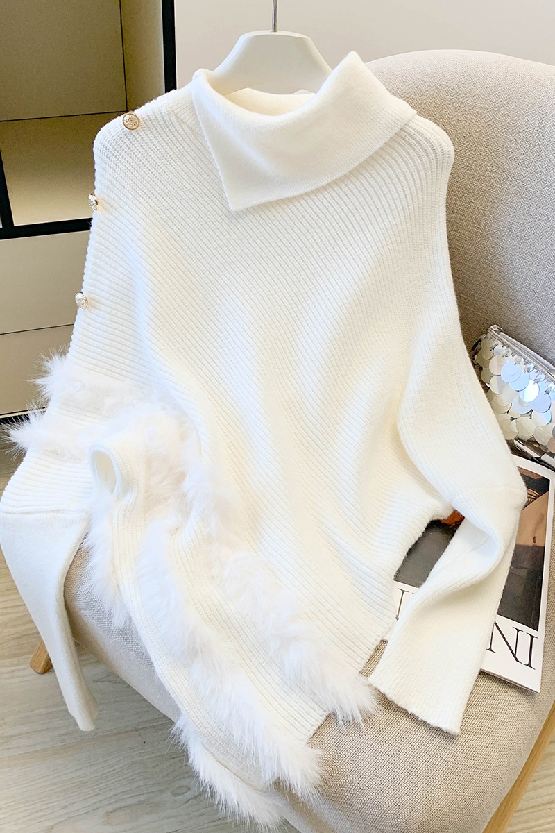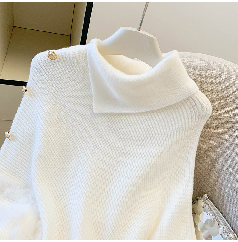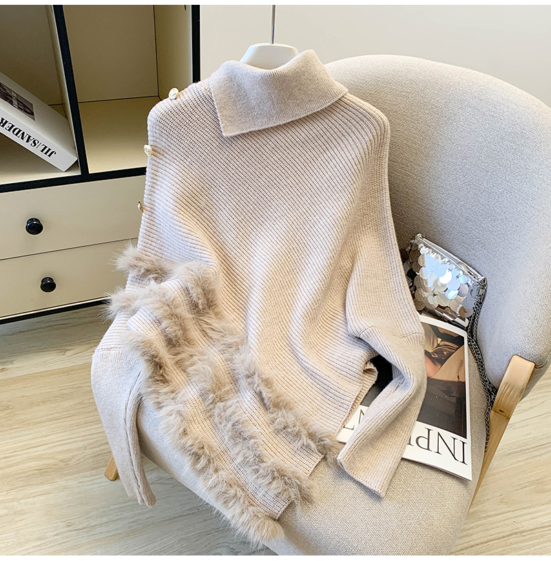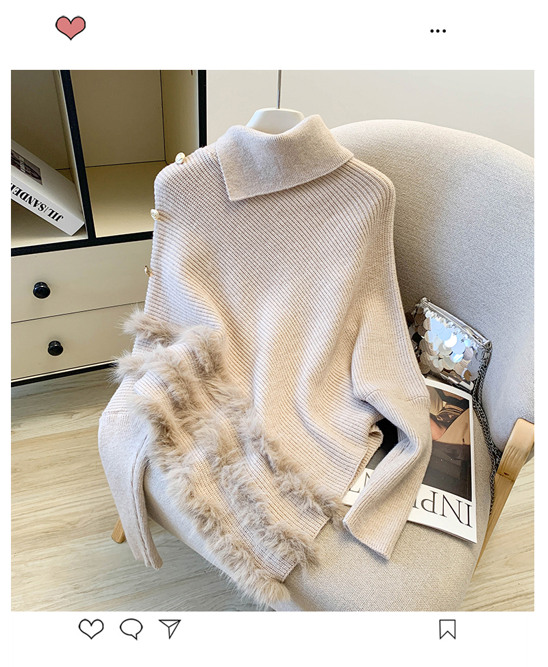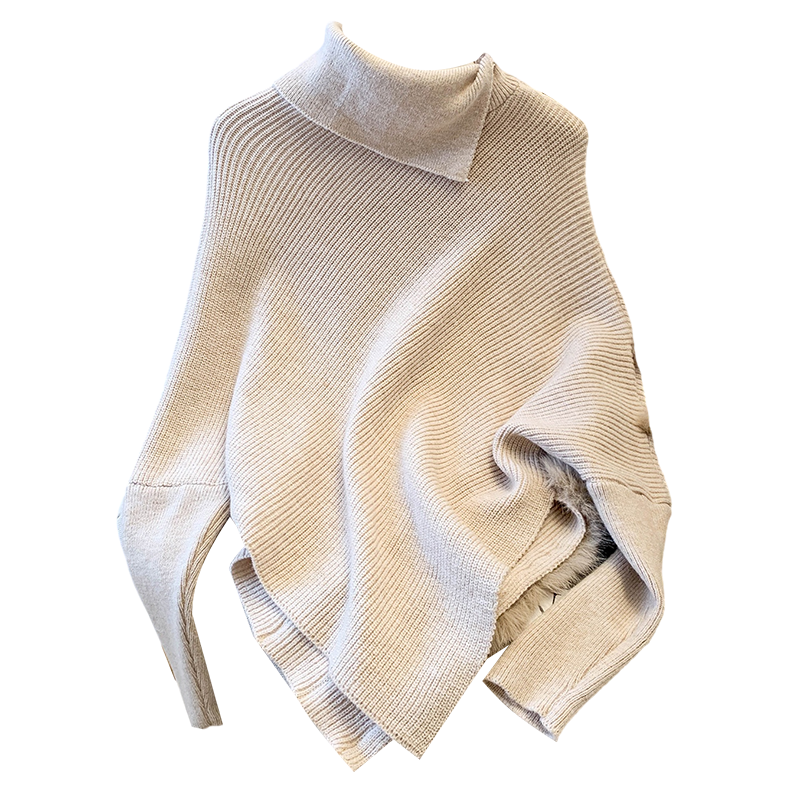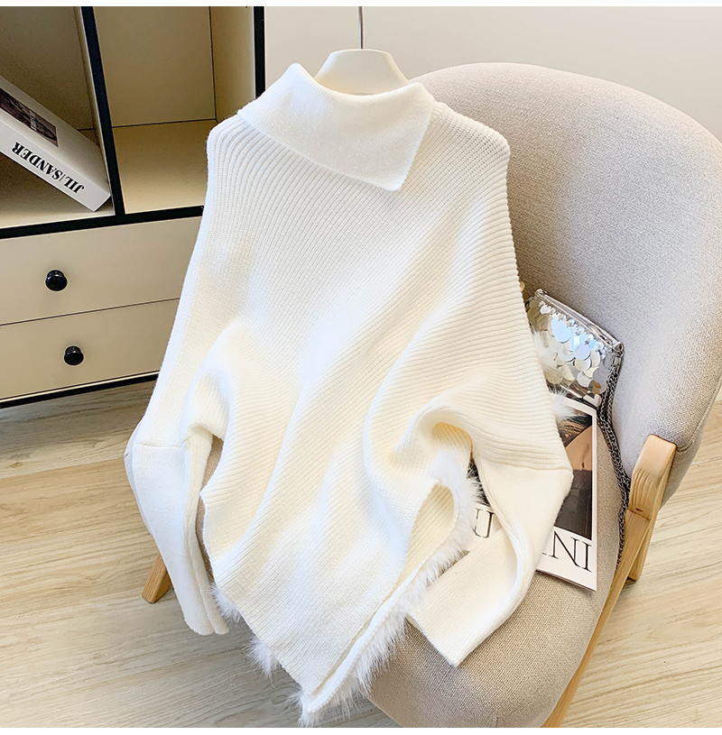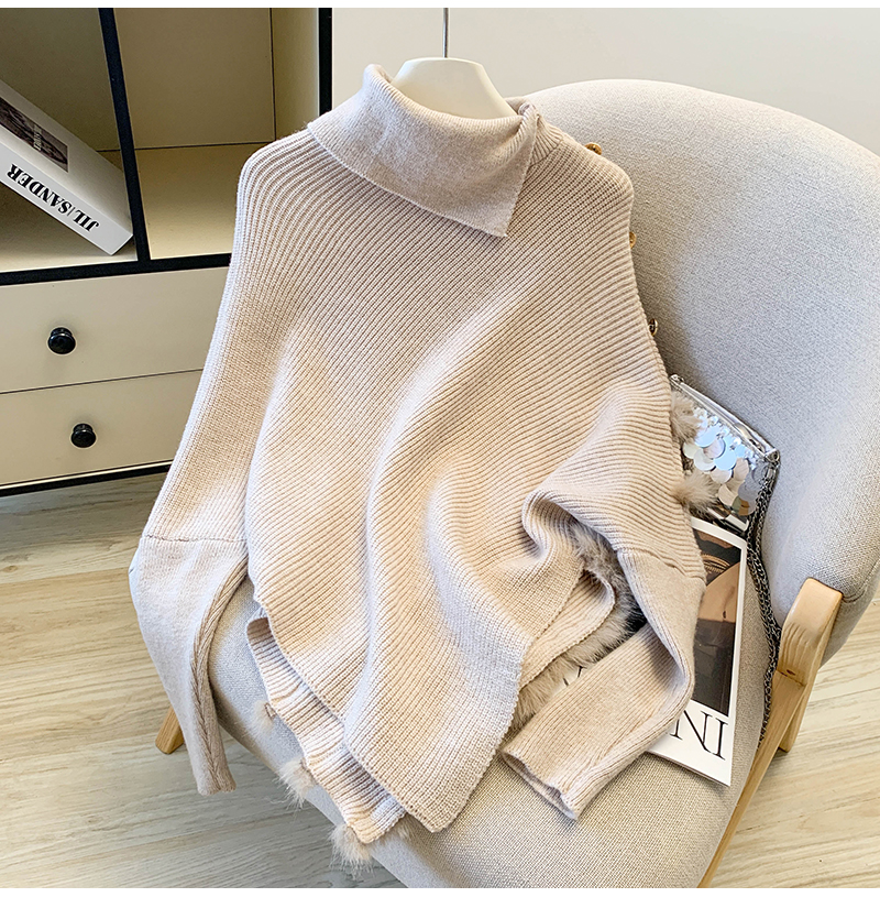MY15532# 高领堆堆领蝙蝠袖打底毛衣女宽慵懒风高级感不规则内搭针织衫女裝貨源服裝批發