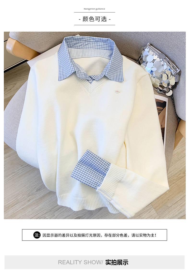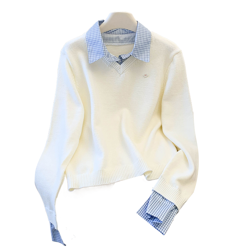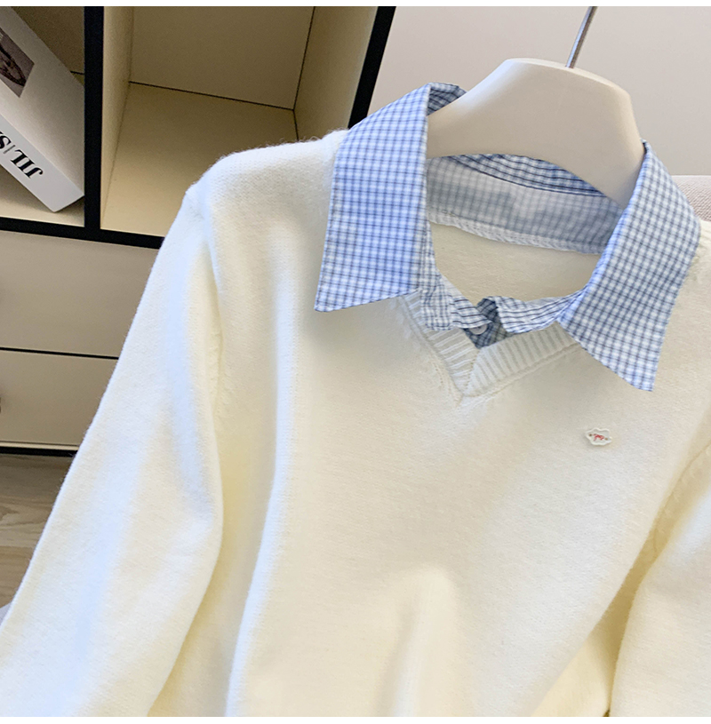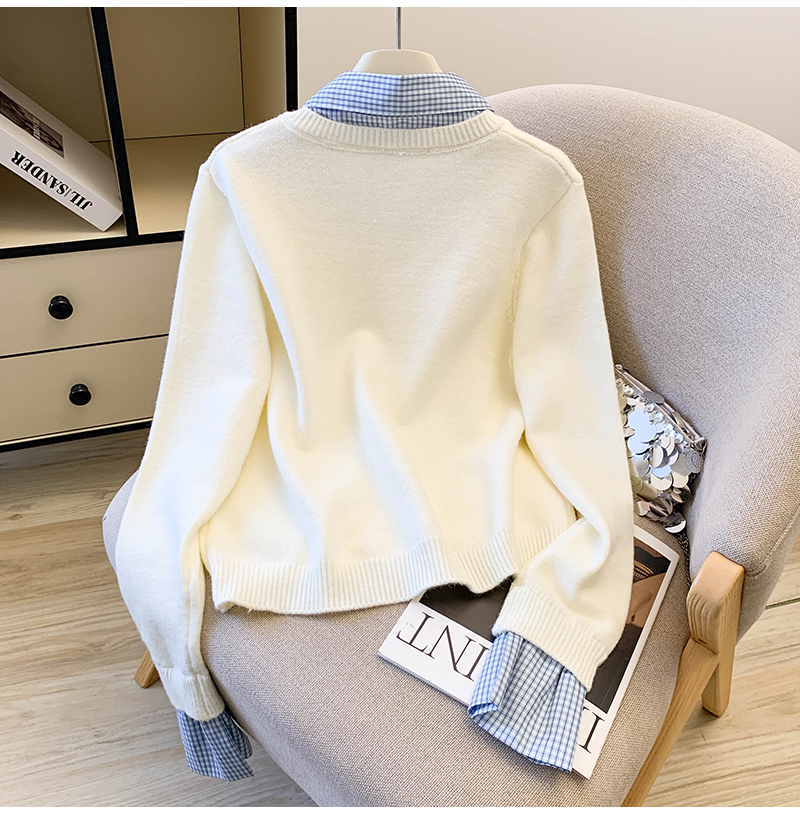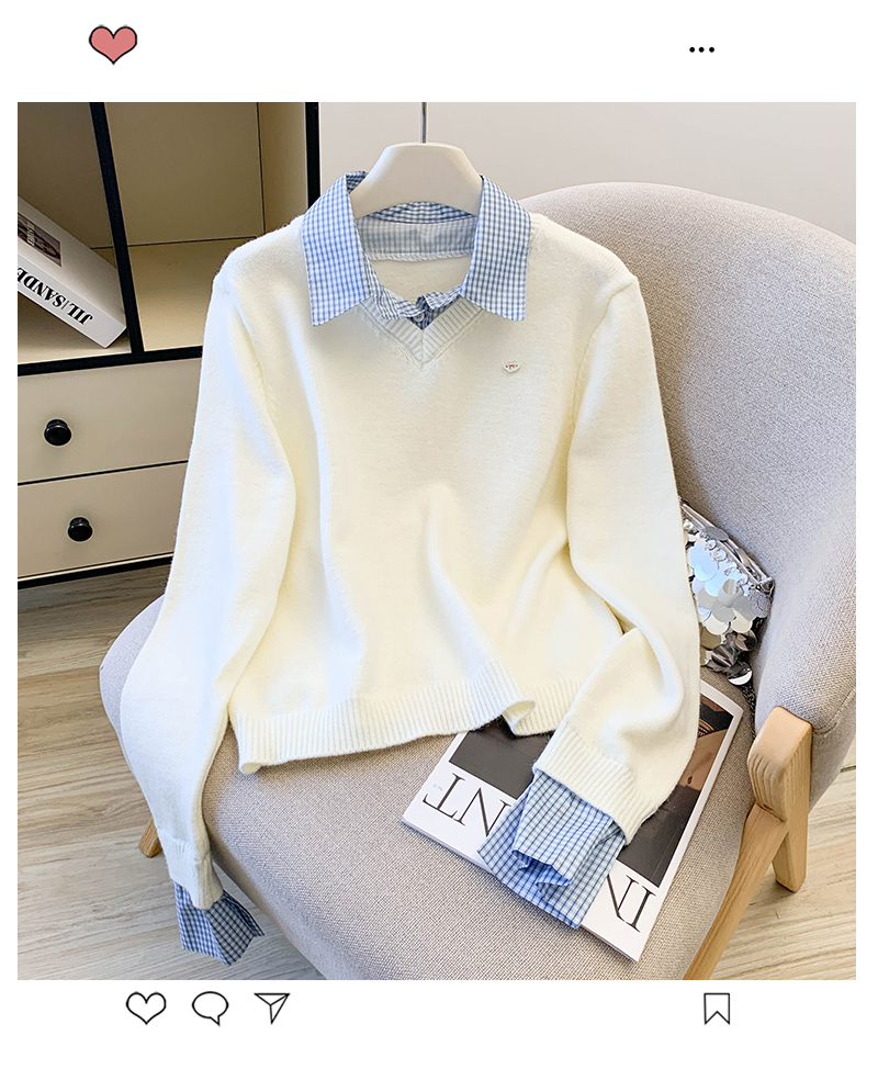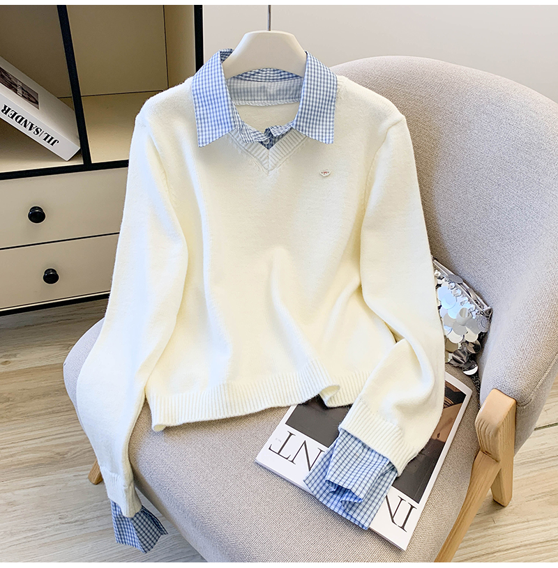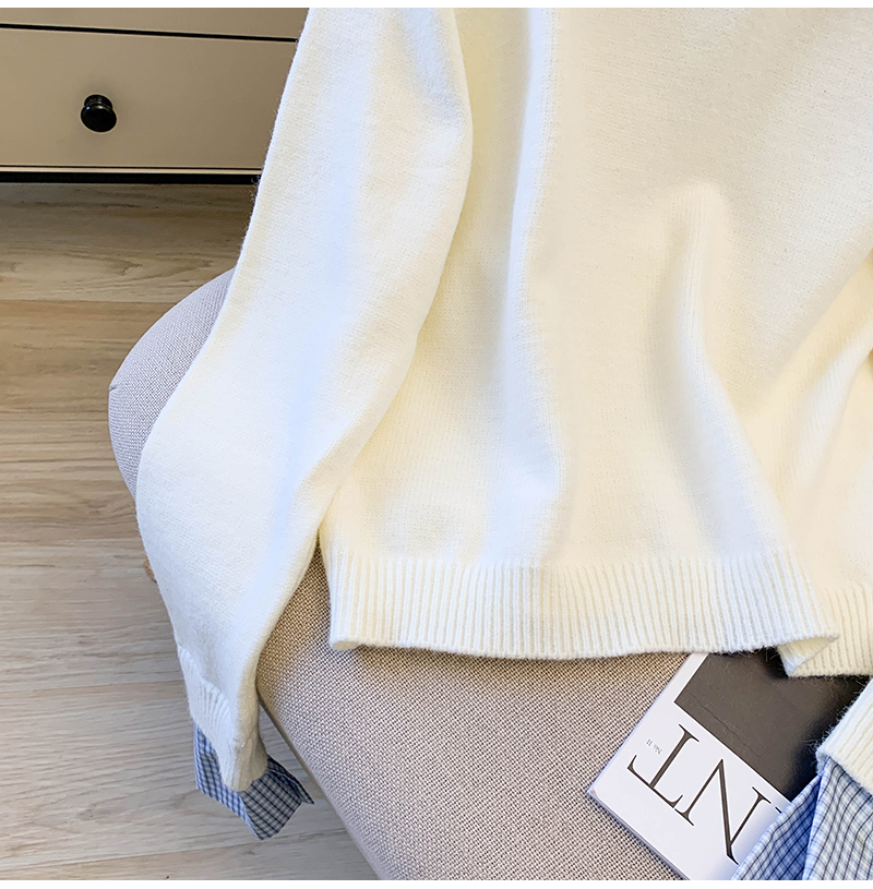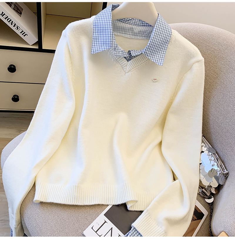 MY15535# 红人馆白色毛衣女款慵懒高级感上衣套头外穿百搭假两件针织衫女裝貨源服裝批發
