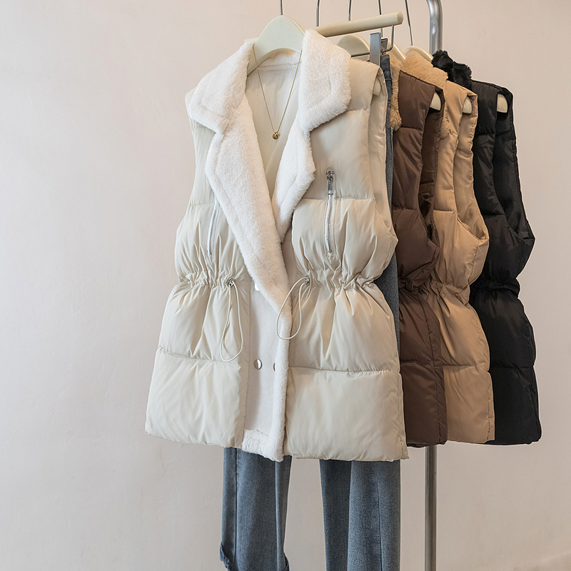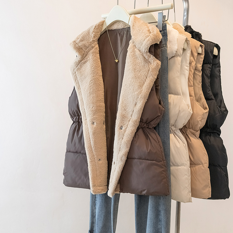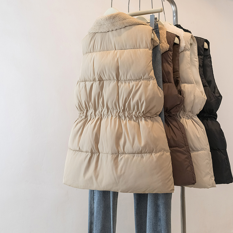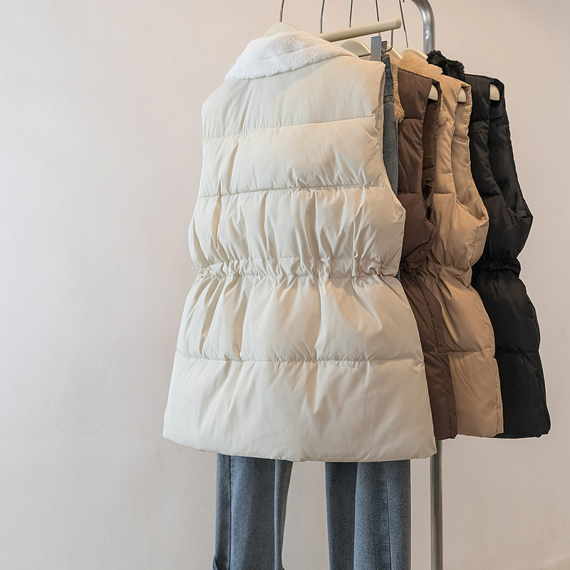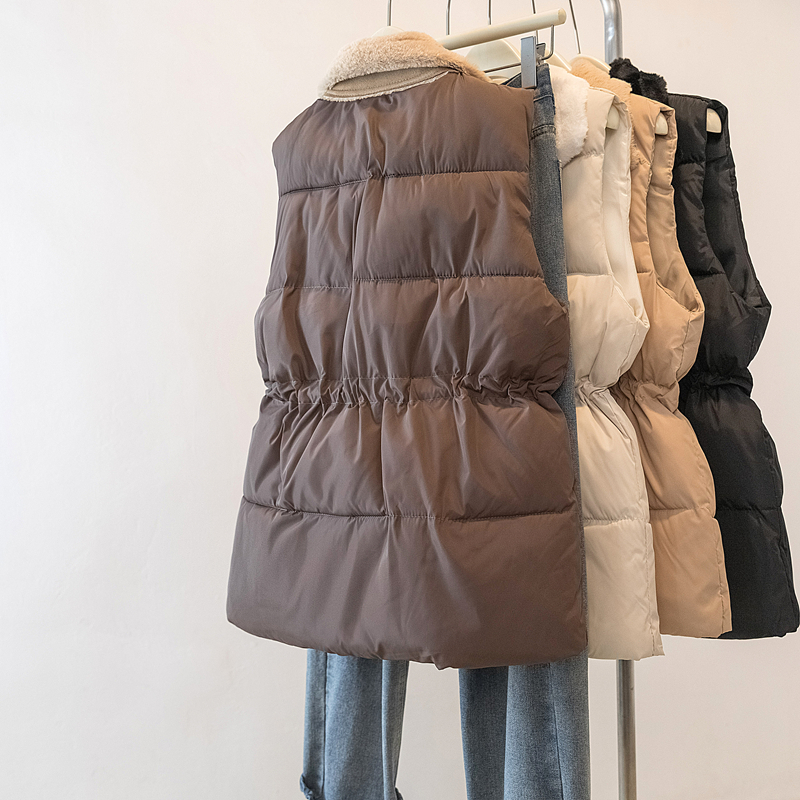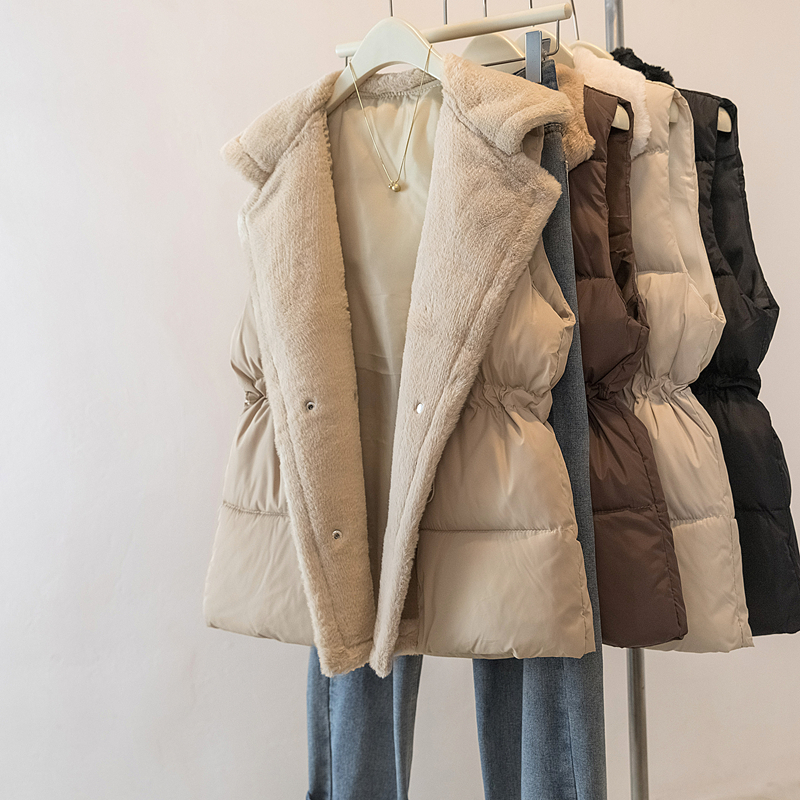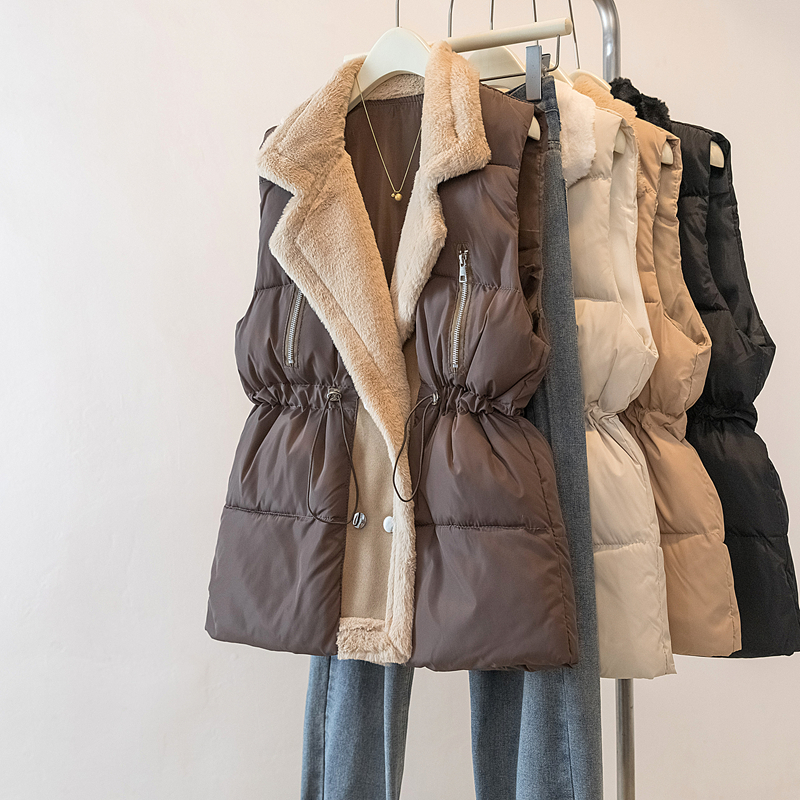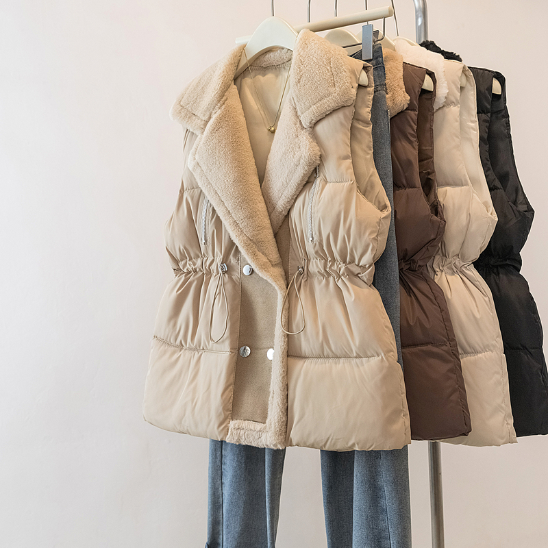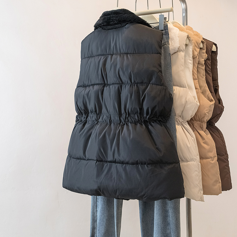 MY15550# 大码女装新款羊羔毛领拼接无袖棉衣马甲时尚收腰百搭外套女裝貨源服裝批發