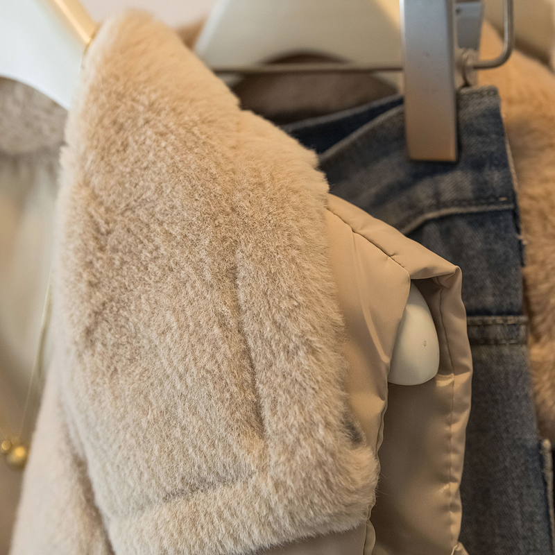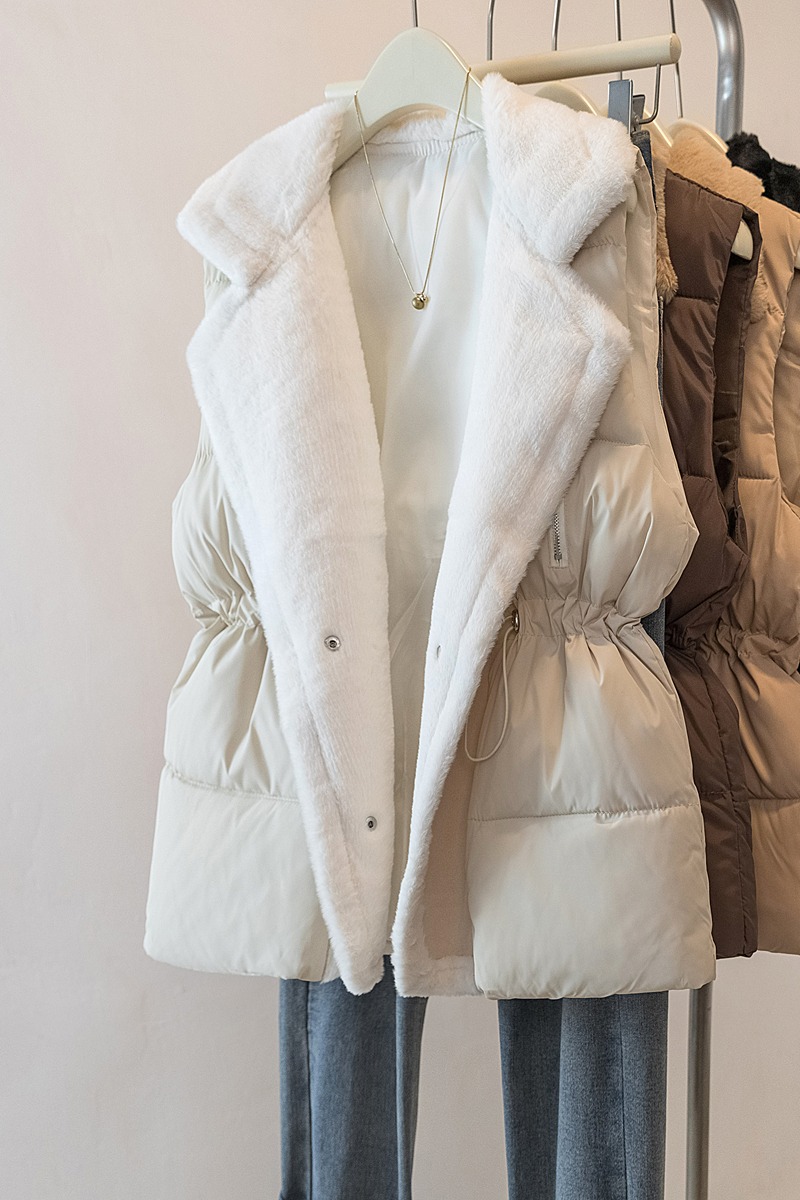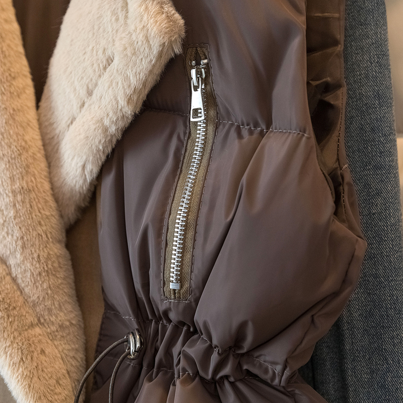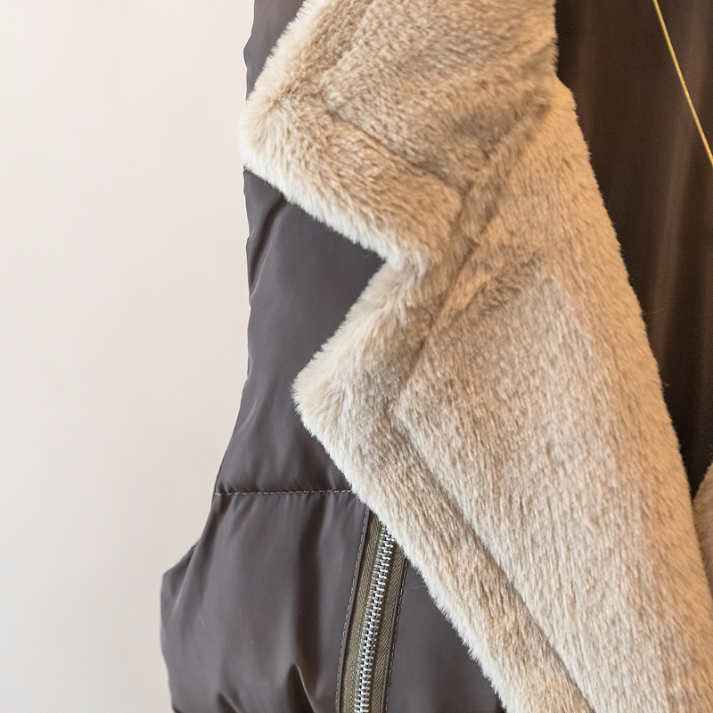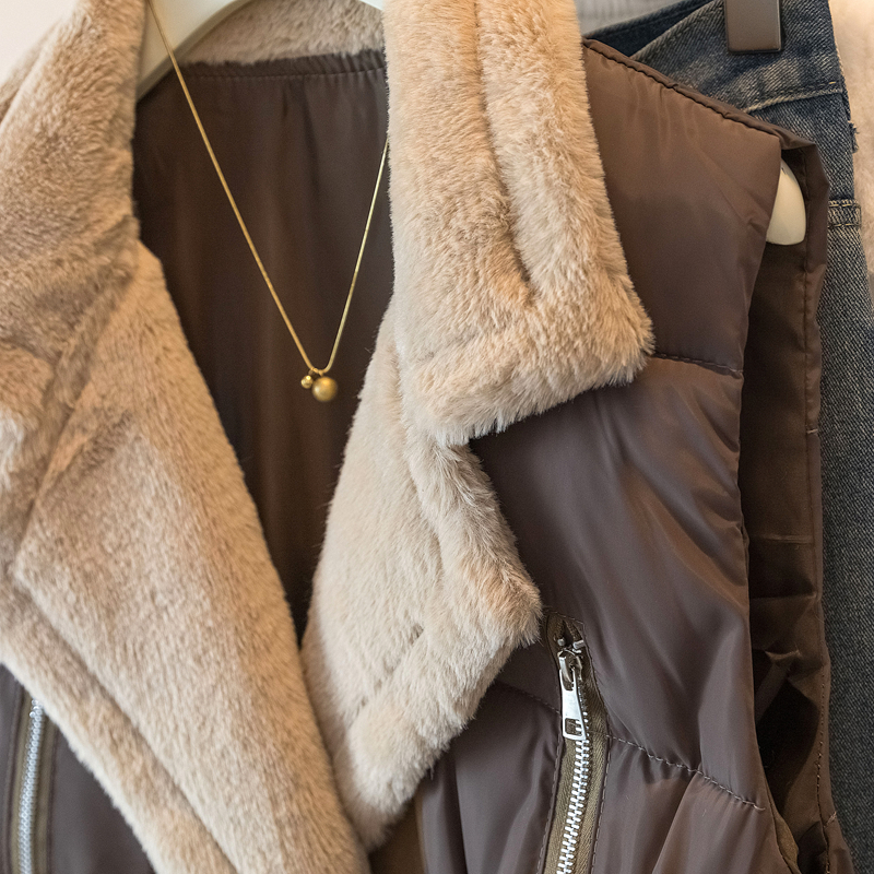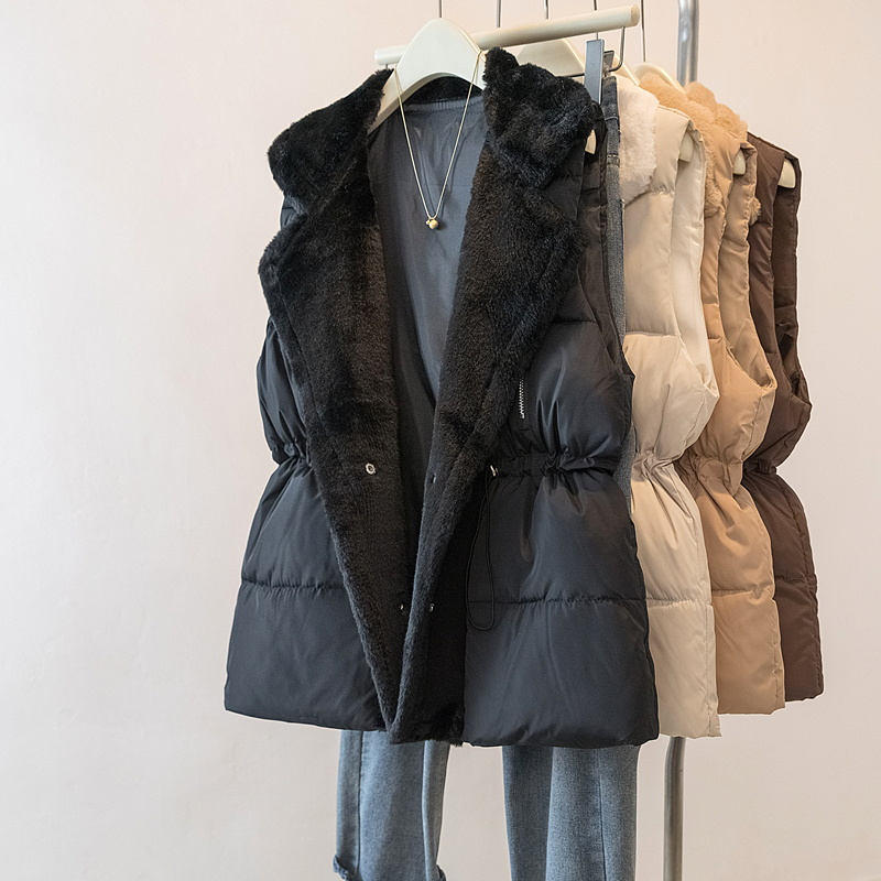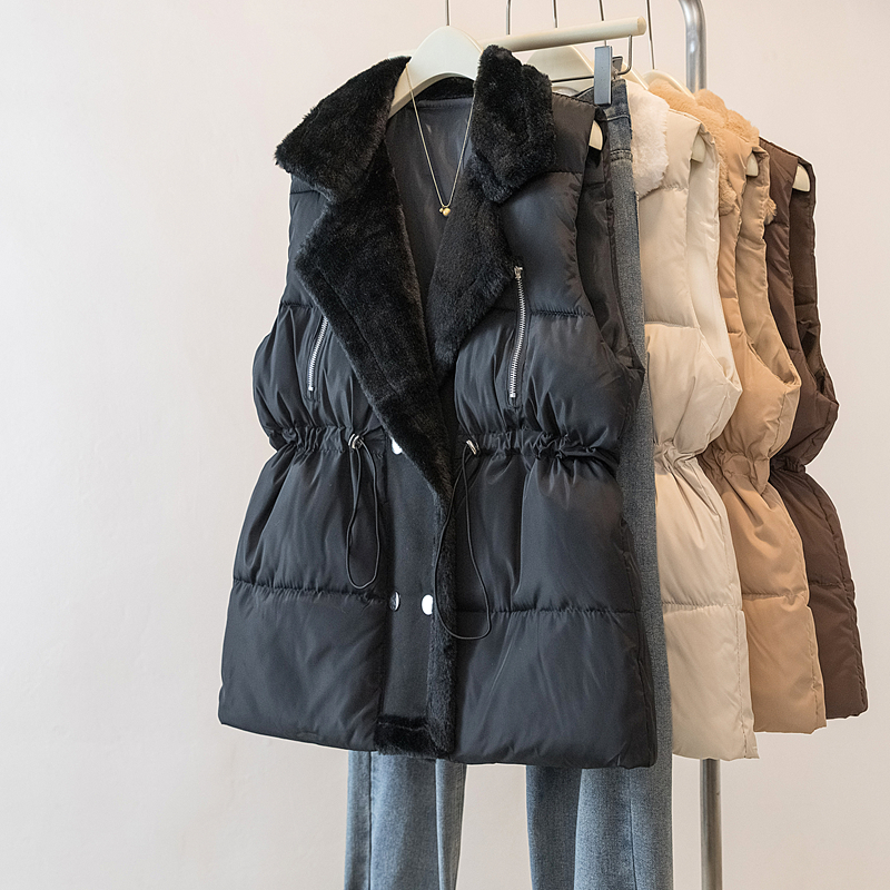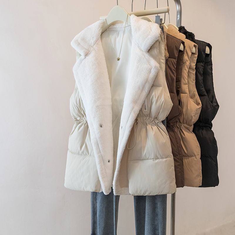 MY15550# 大码女装新款羊羔毛领拼接无袖棉衣马甲时尚收腰百搭外套女裝貨源服裝批發