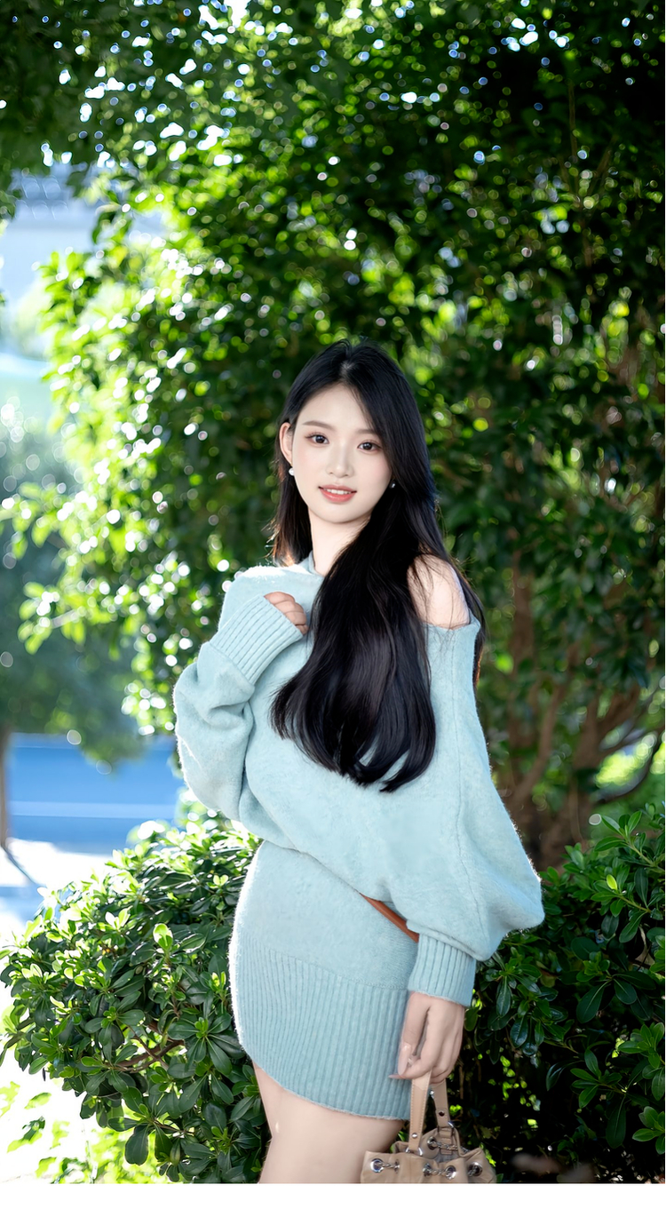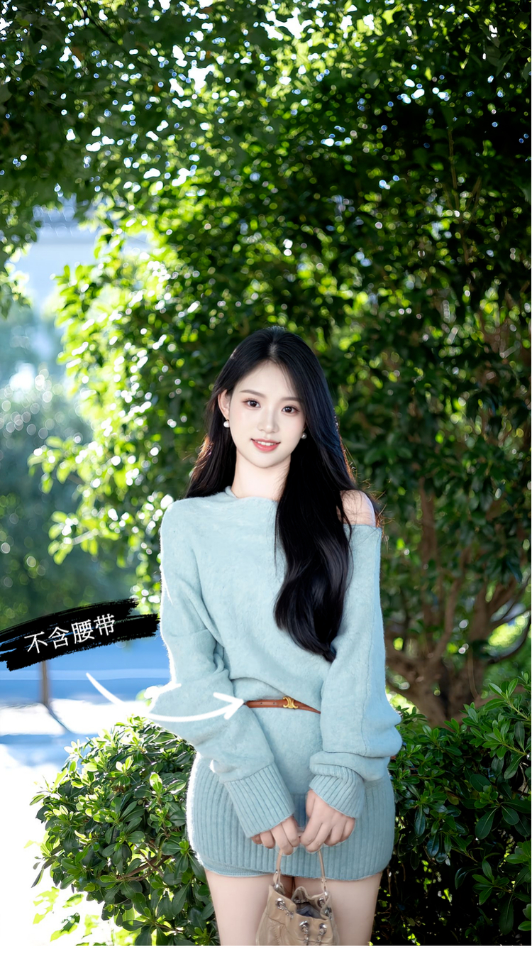 MY15552# 韩国莱克茵蓝色一字领斜肩针织毛衣连衣裙小个子心机夜店OL超短裙女裝貨源服裝批發