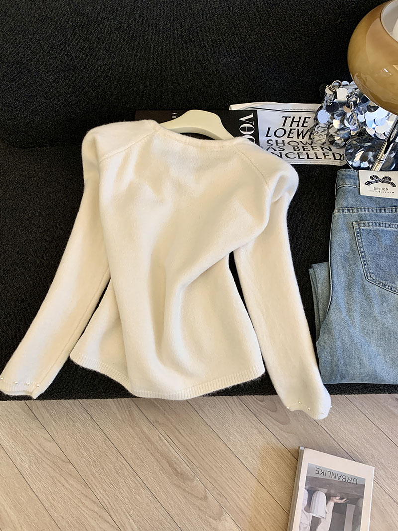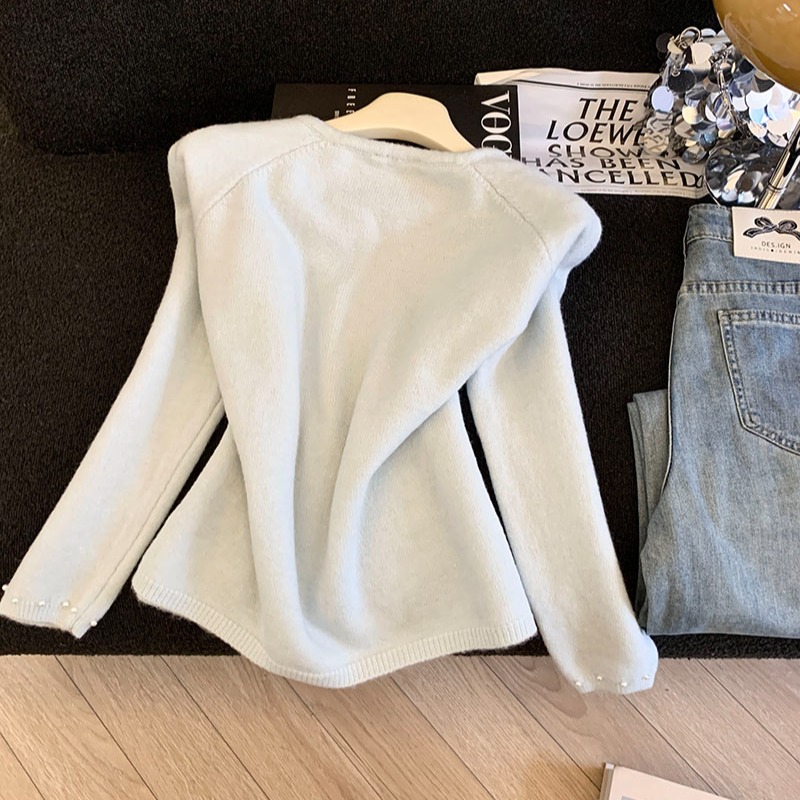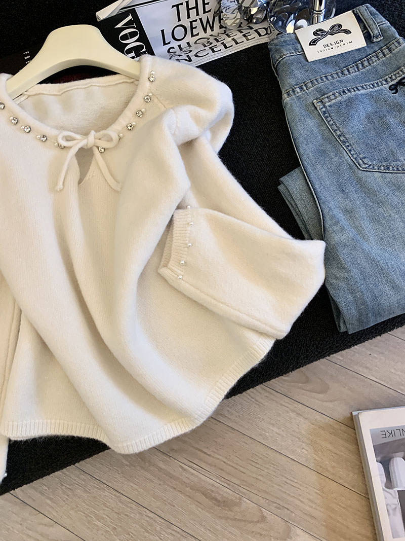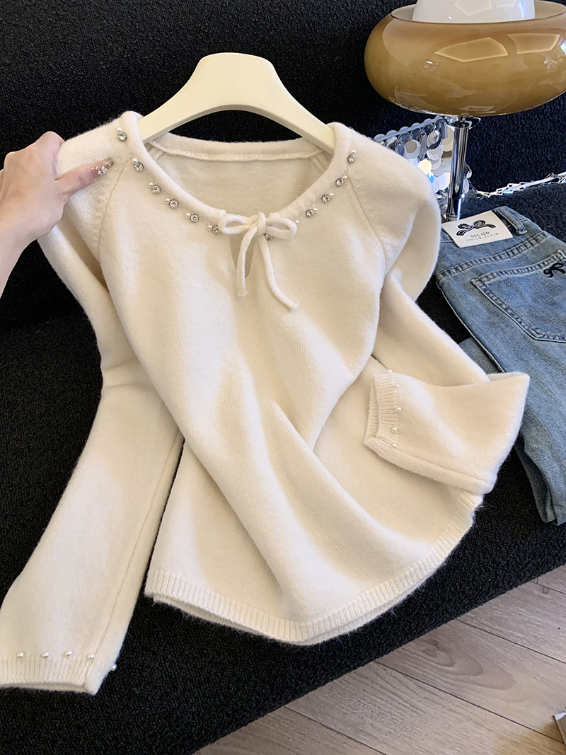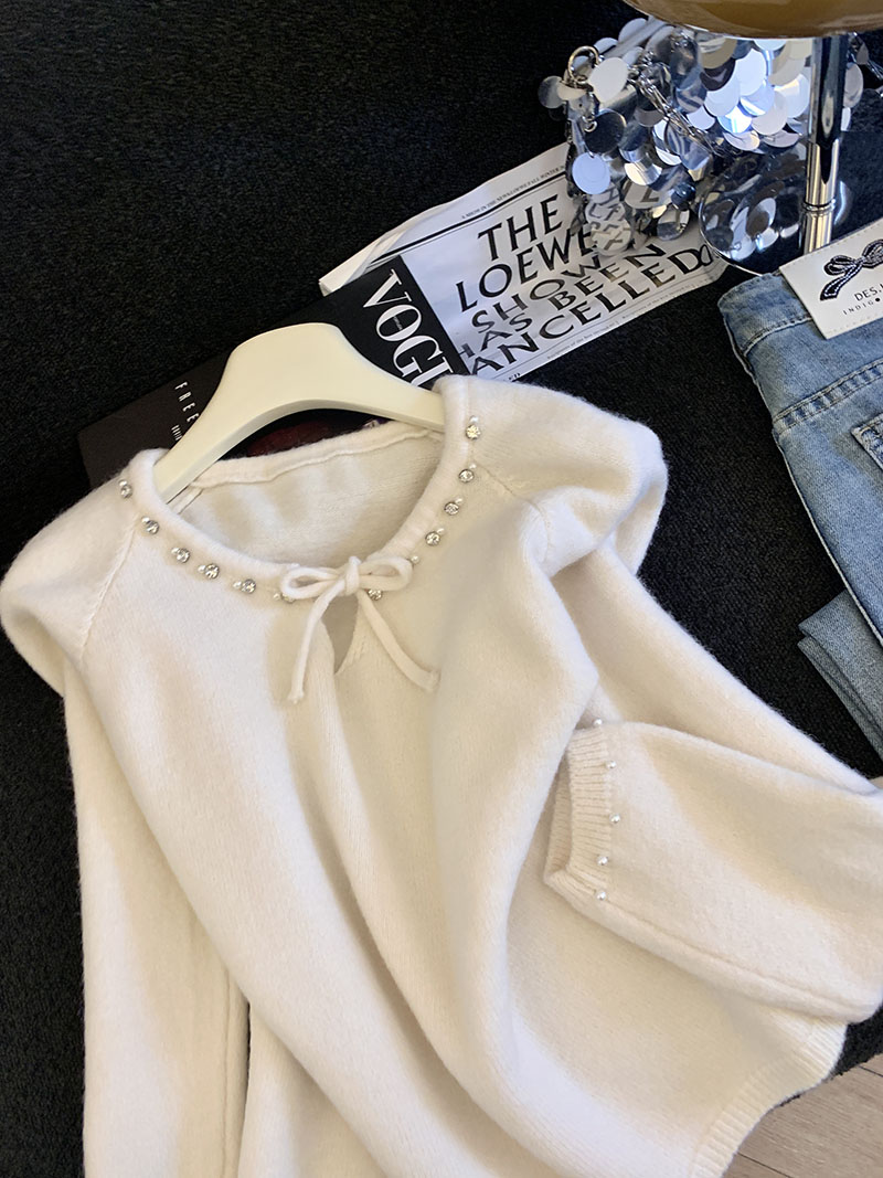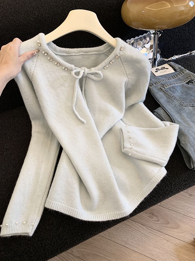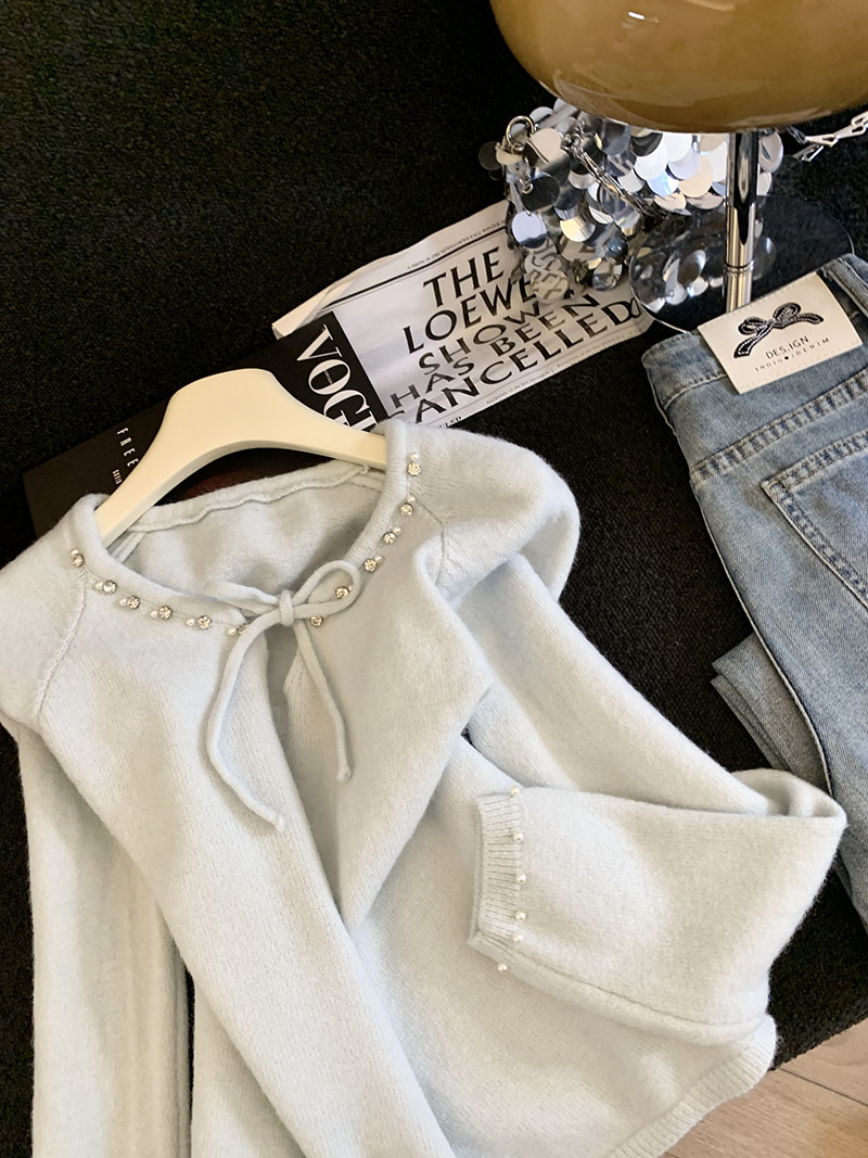 MY15556# 温柔风系带蝴蝶结长袖针织衫新款法式重工钉钻软糯毛衣女裝貨源服裝批發